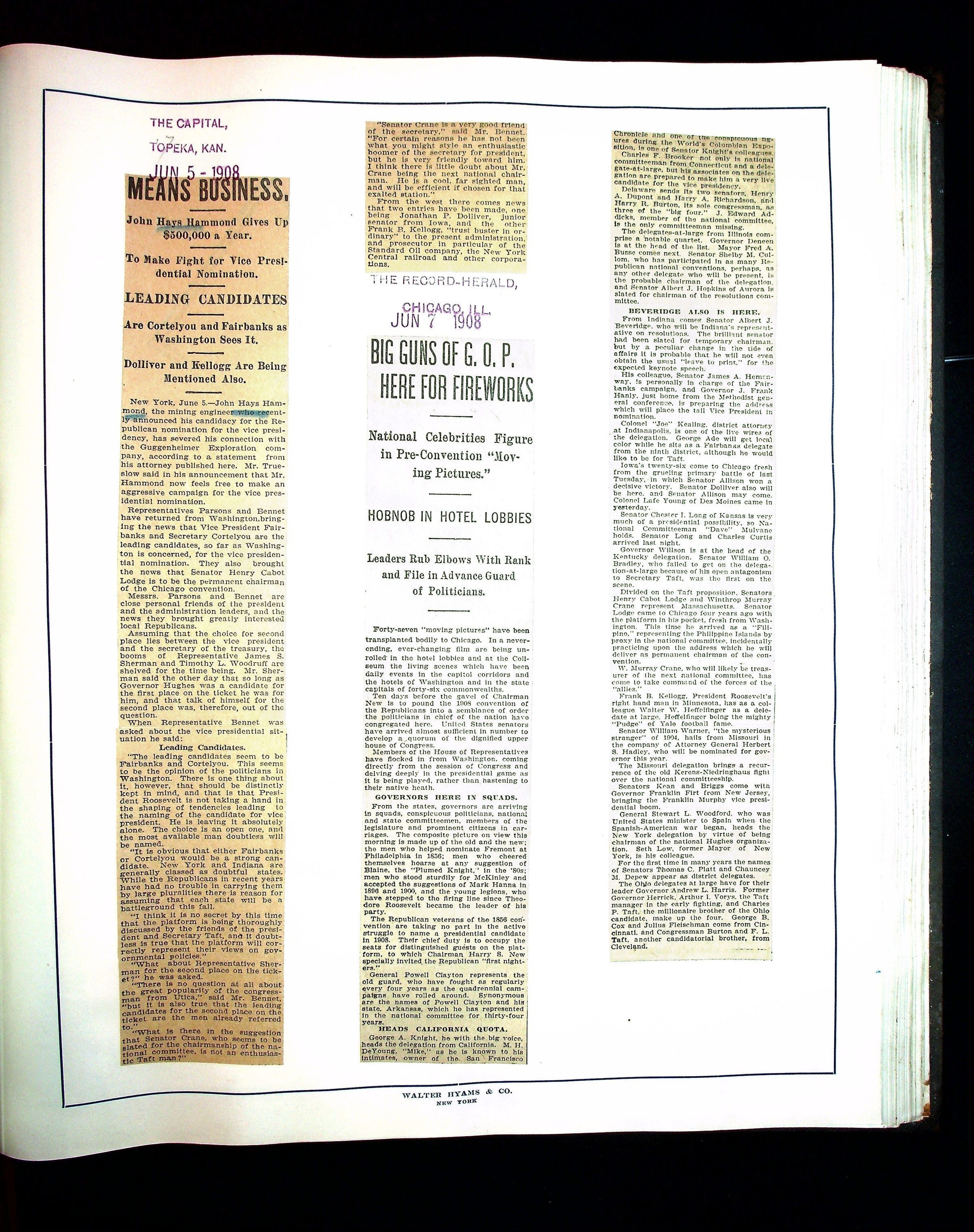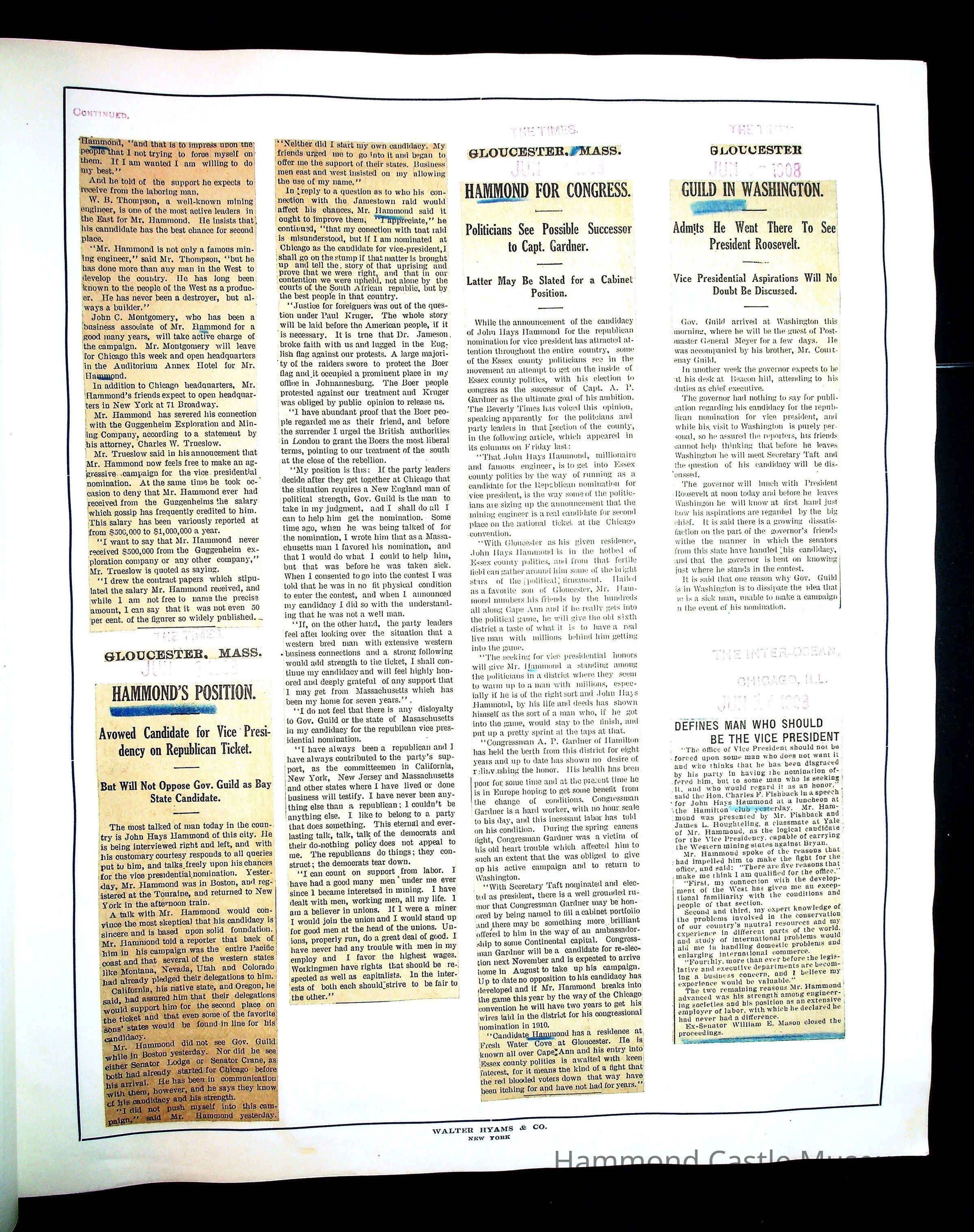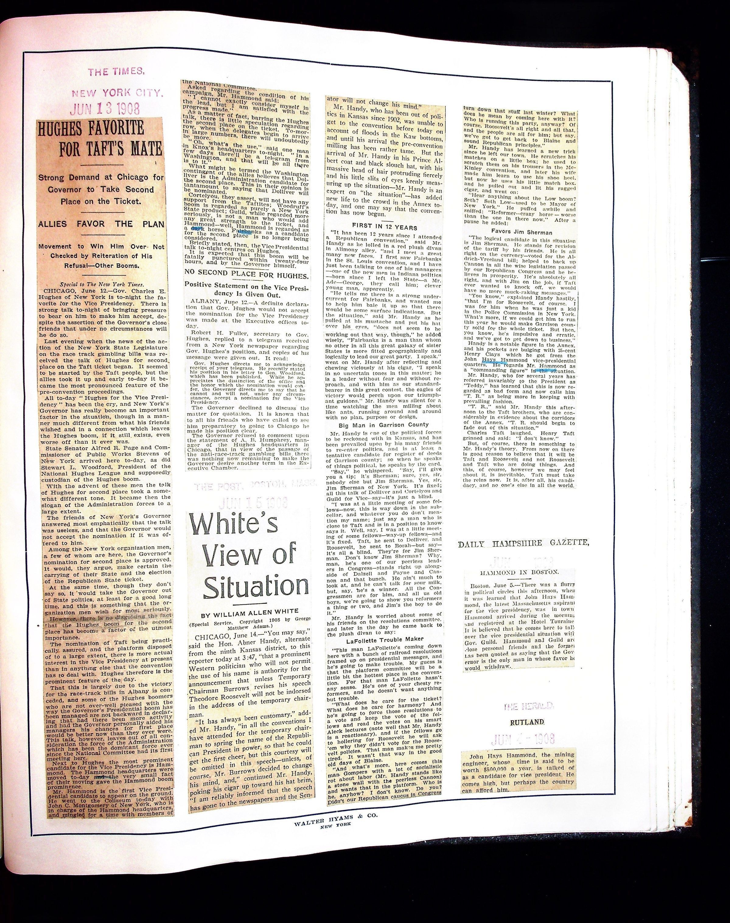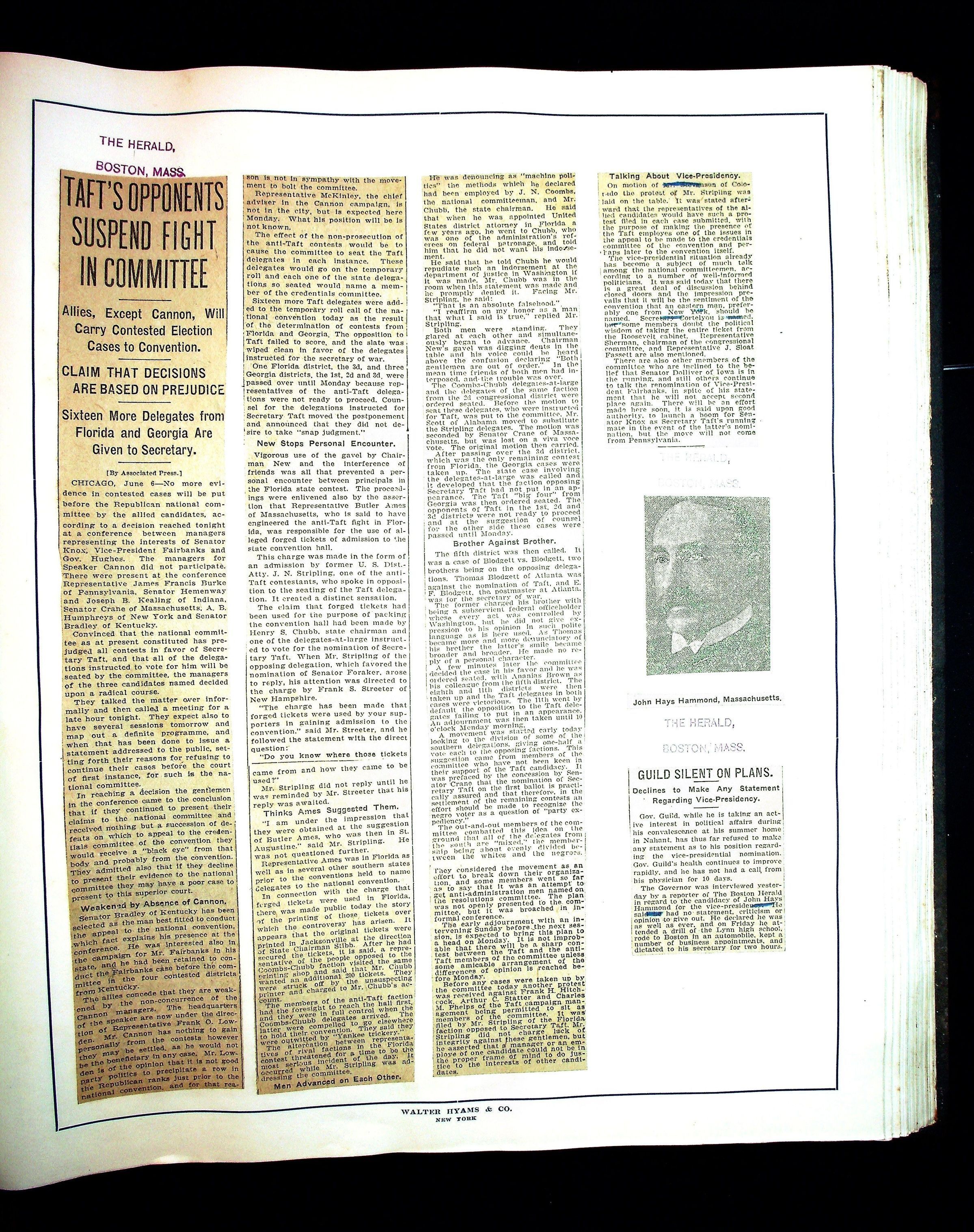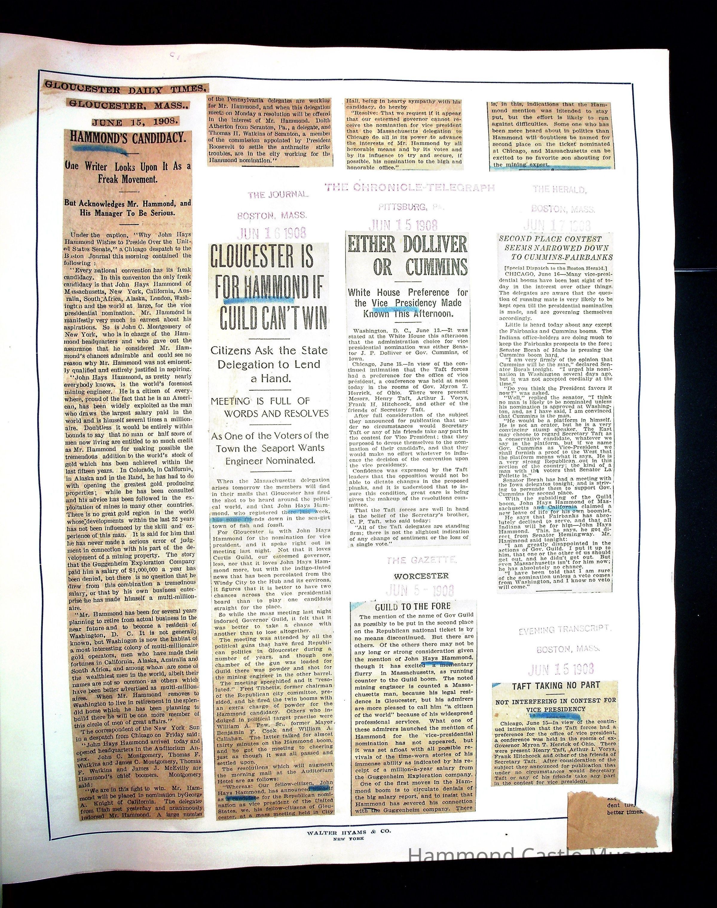Articles & Images from Taft campaign & John Hays Hammond Sr vice-presidency run
