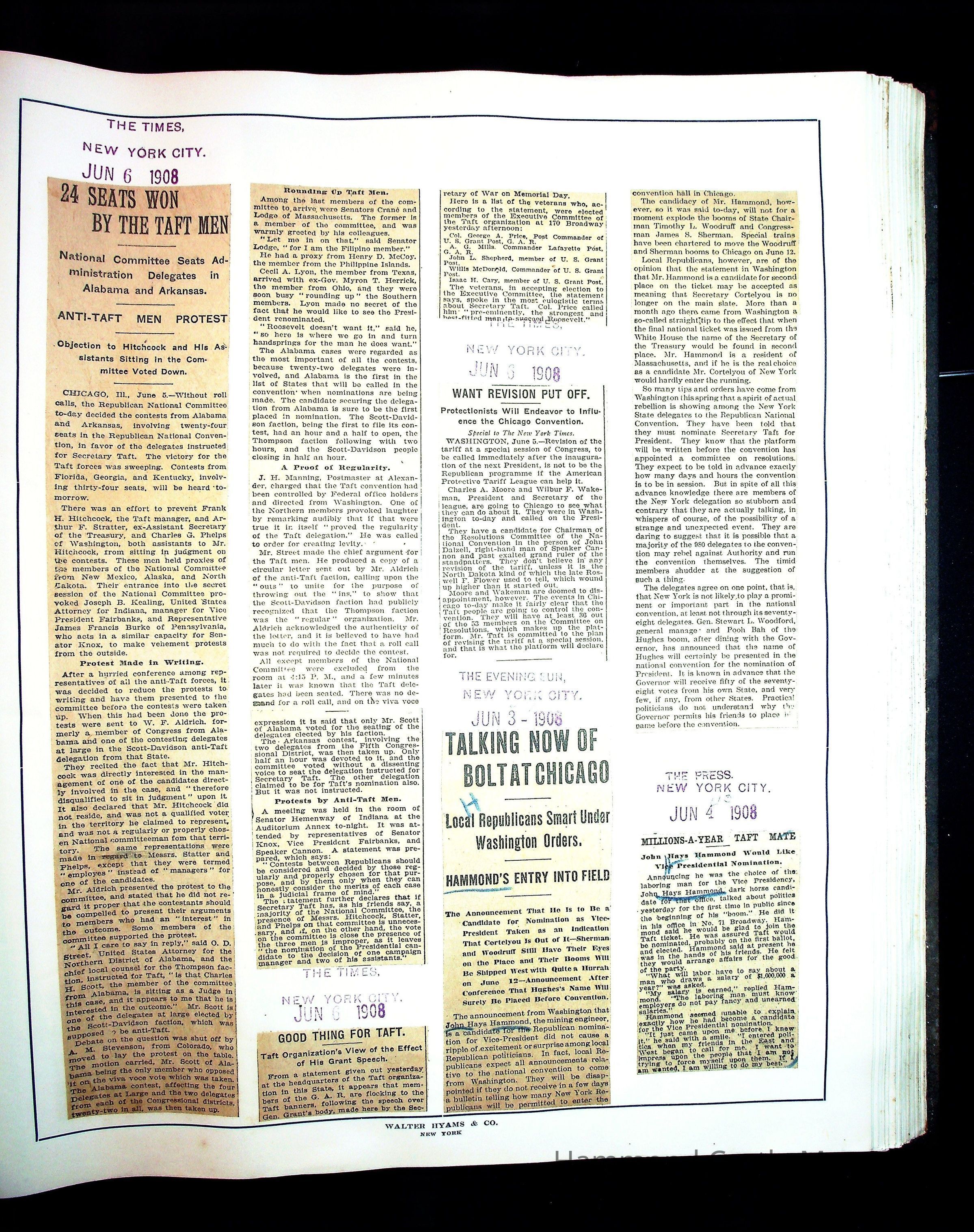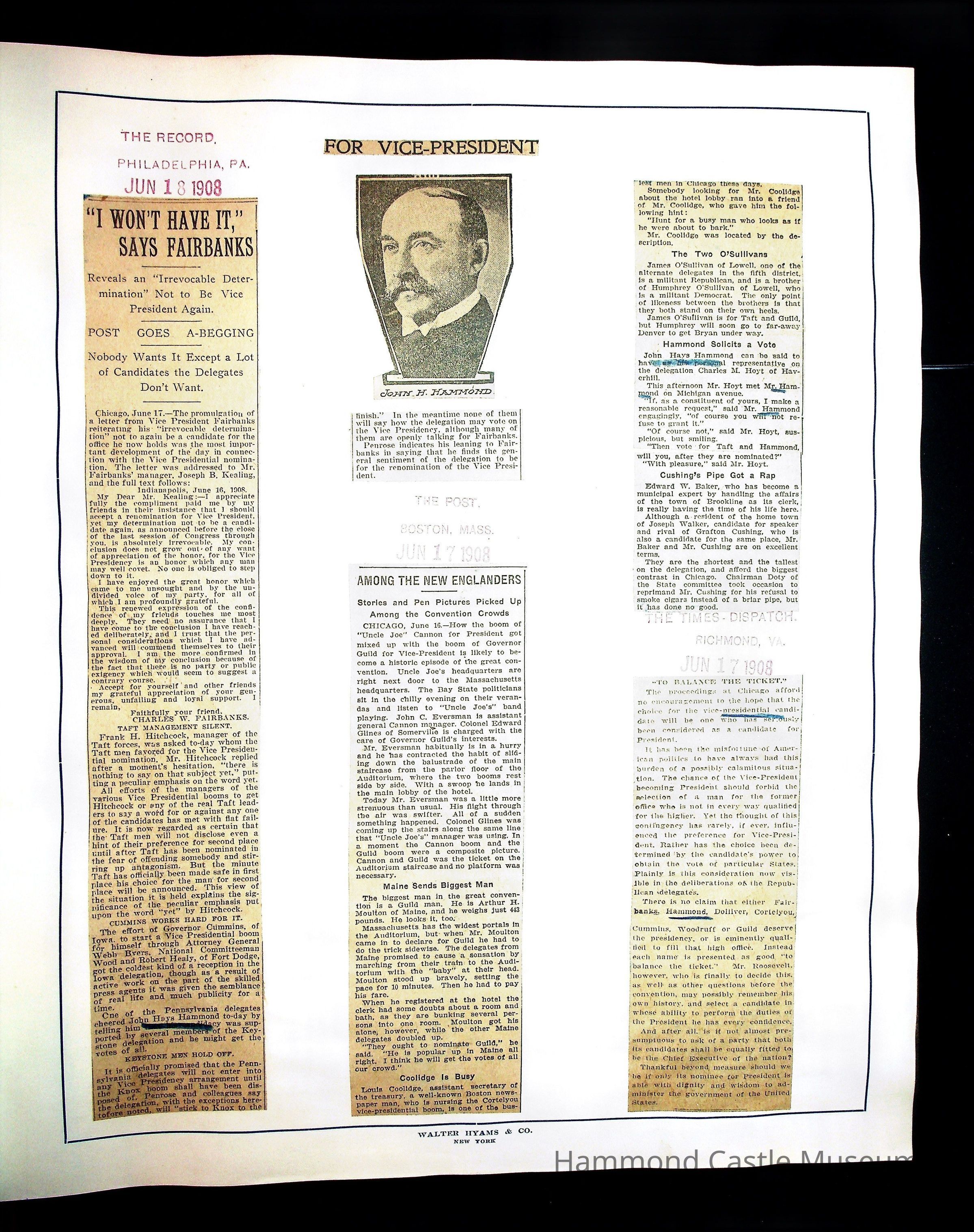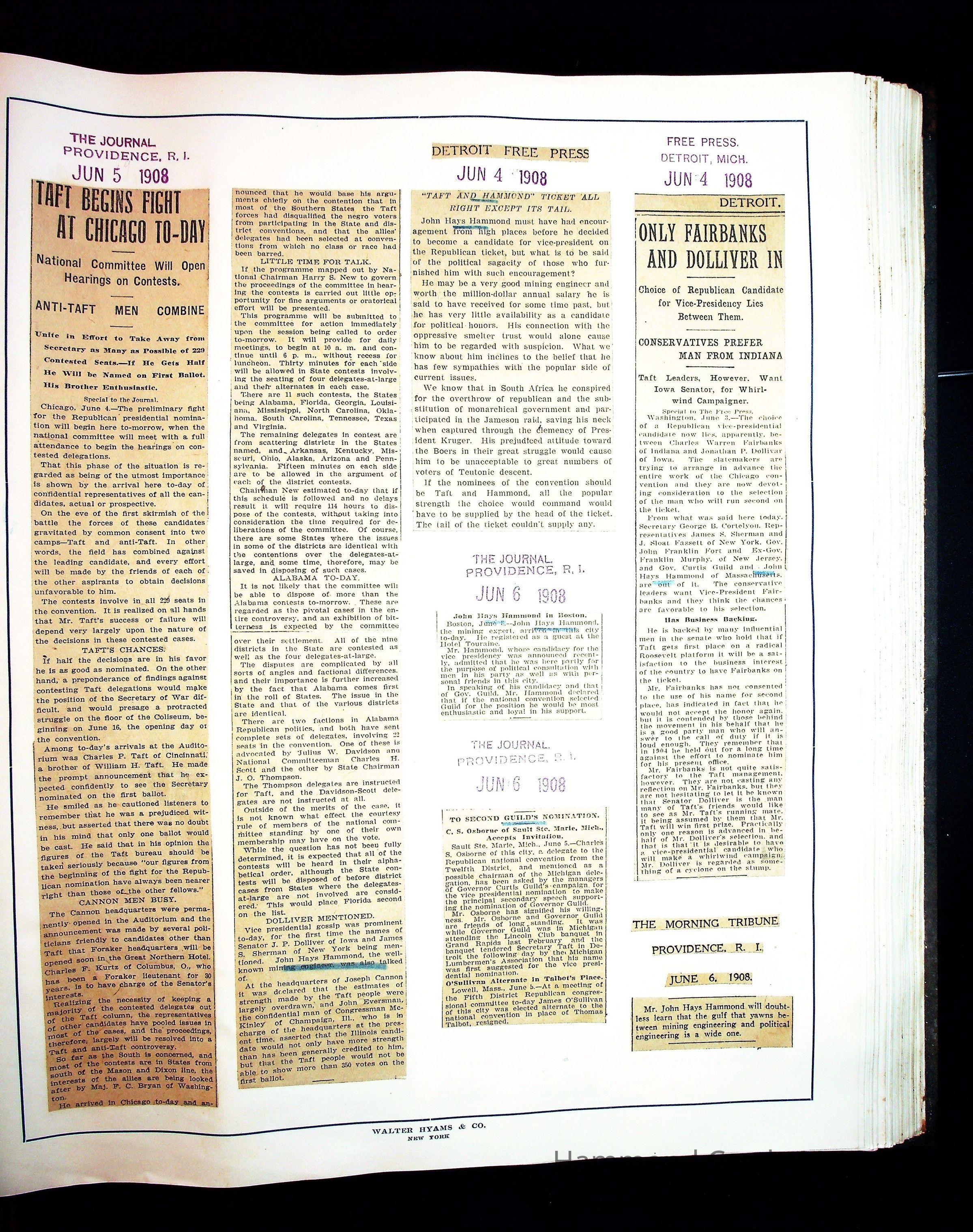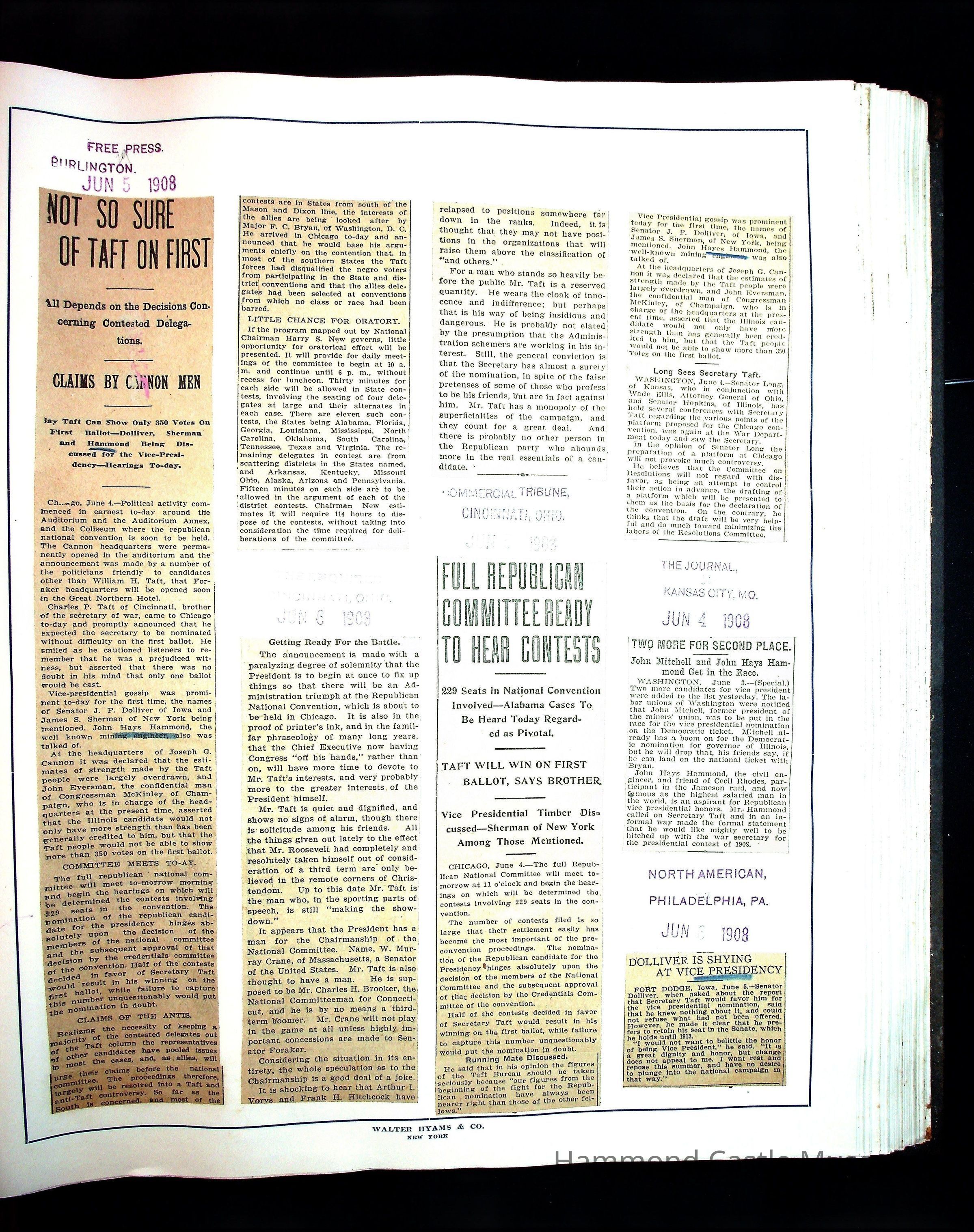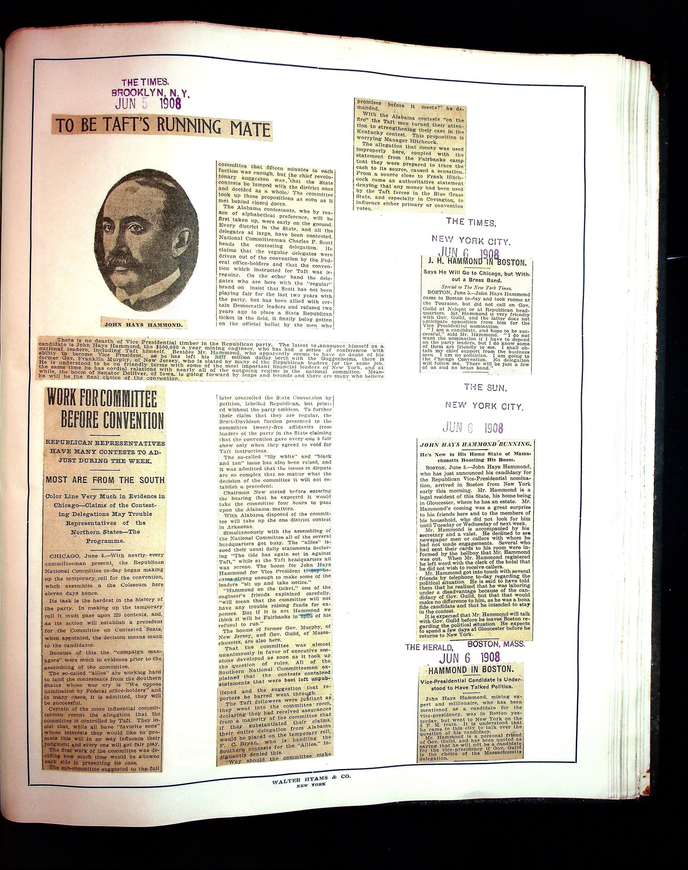 Articles & Images from Taft campaign & John Hays Hammond Sr vice-presidency run