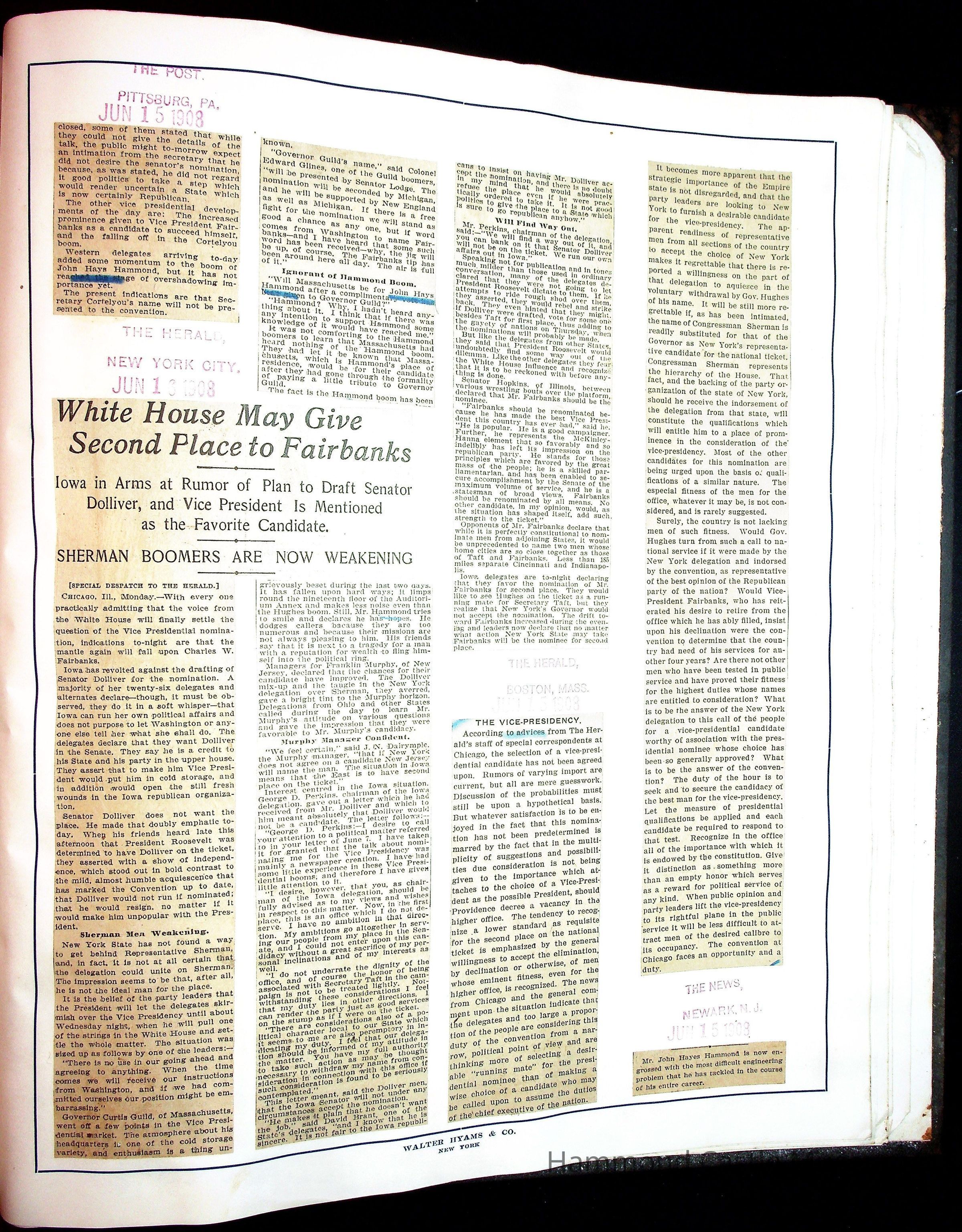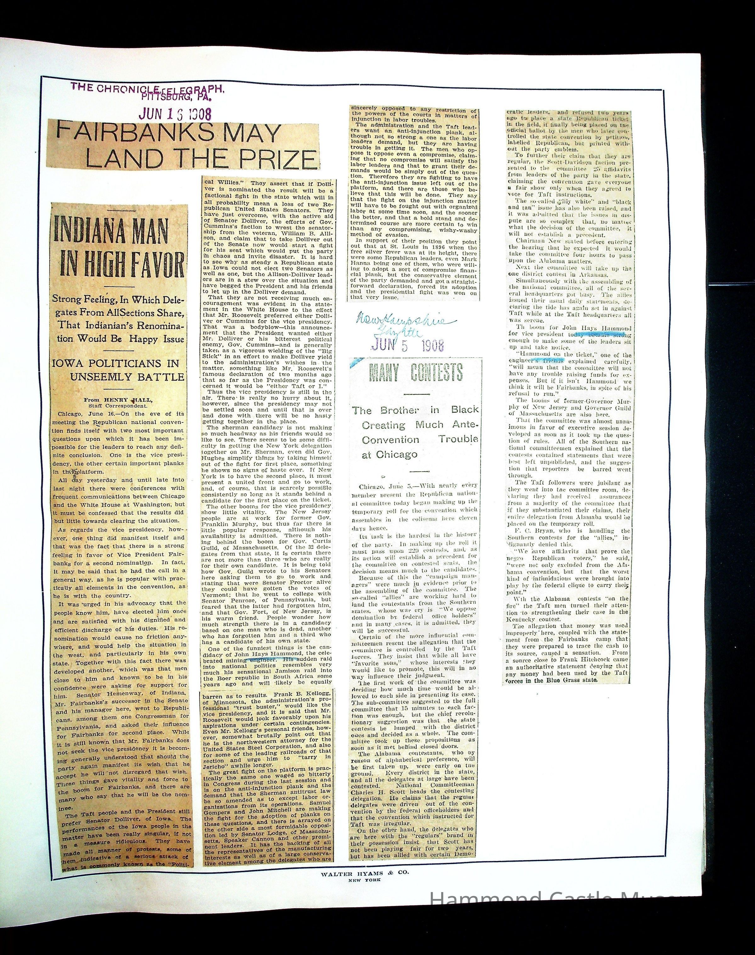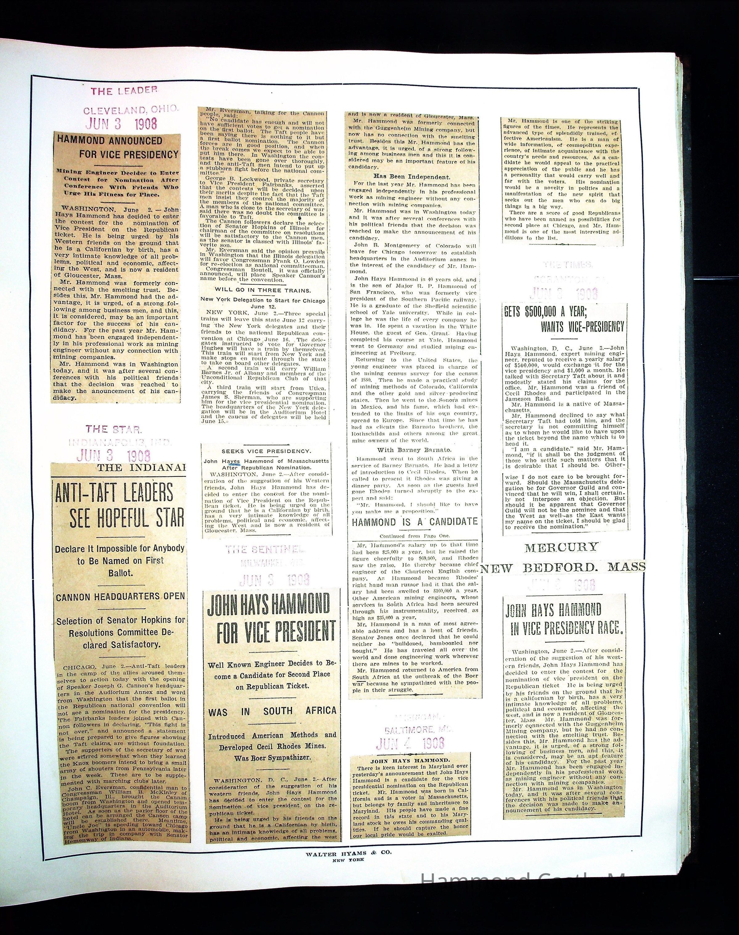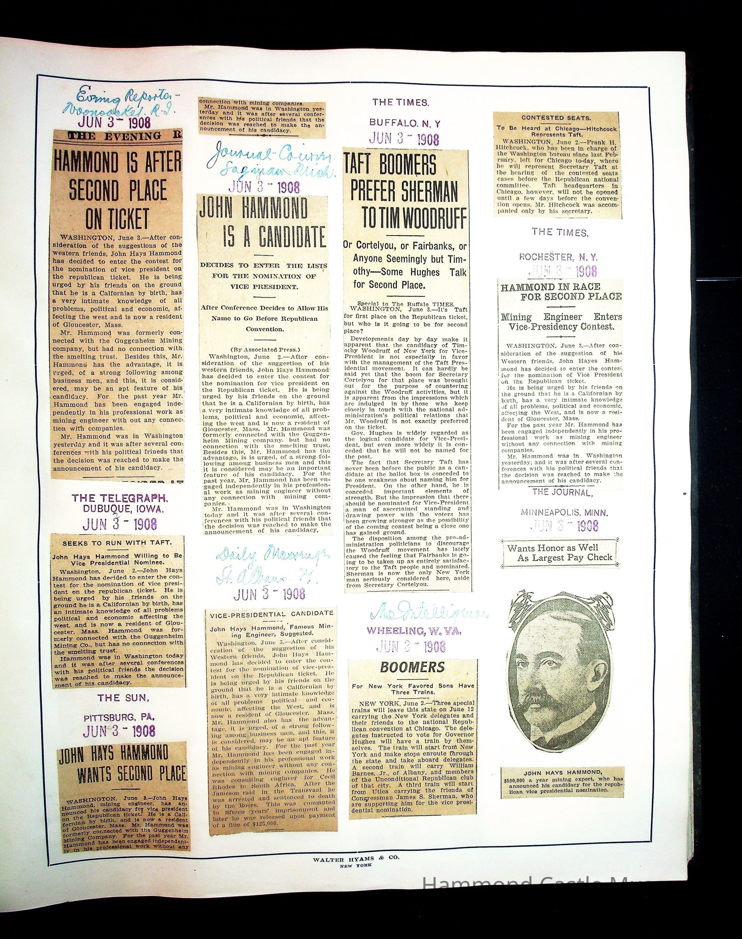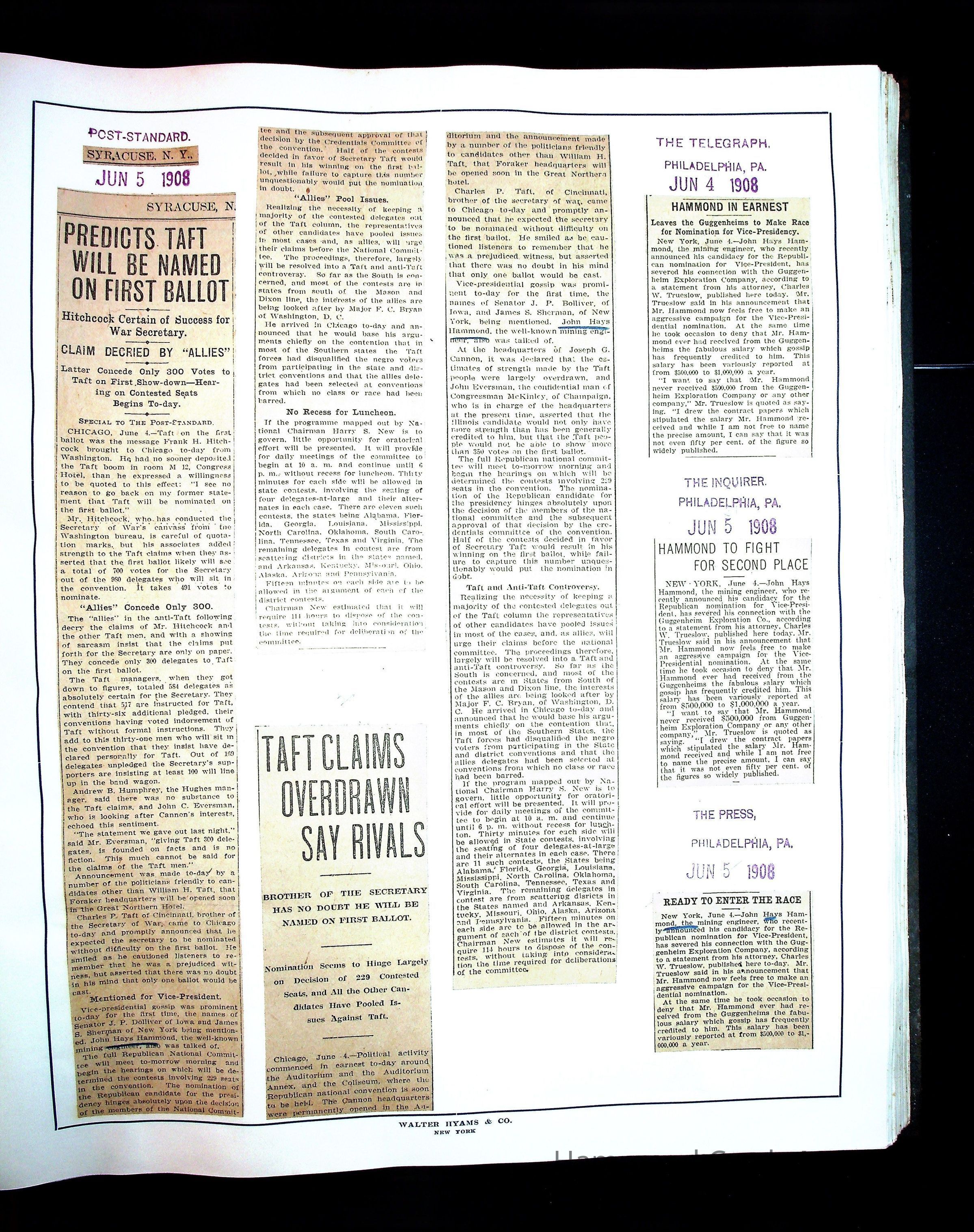 Articles & Images from Taft campaign & John Hays Hammond Sr vice-presidency run