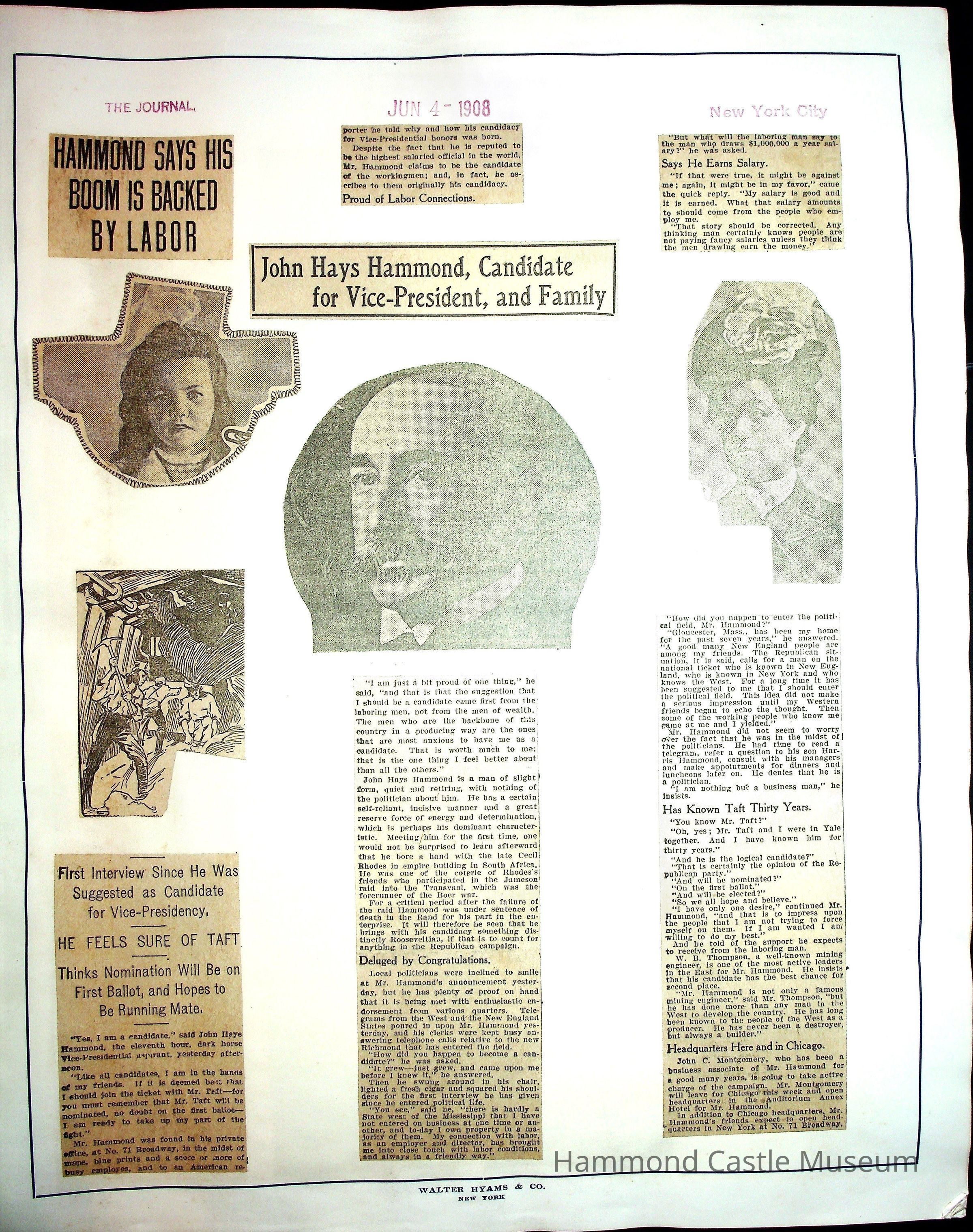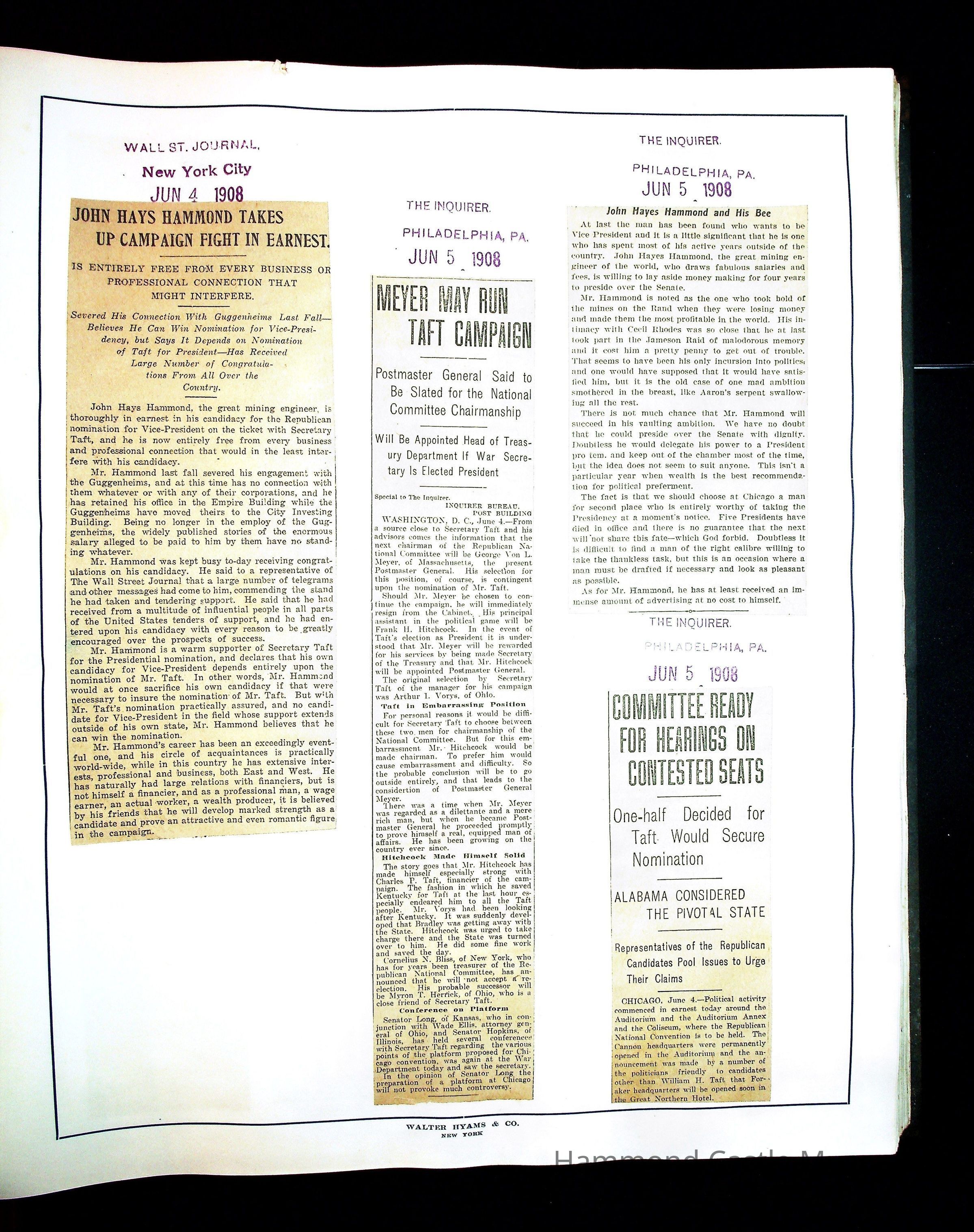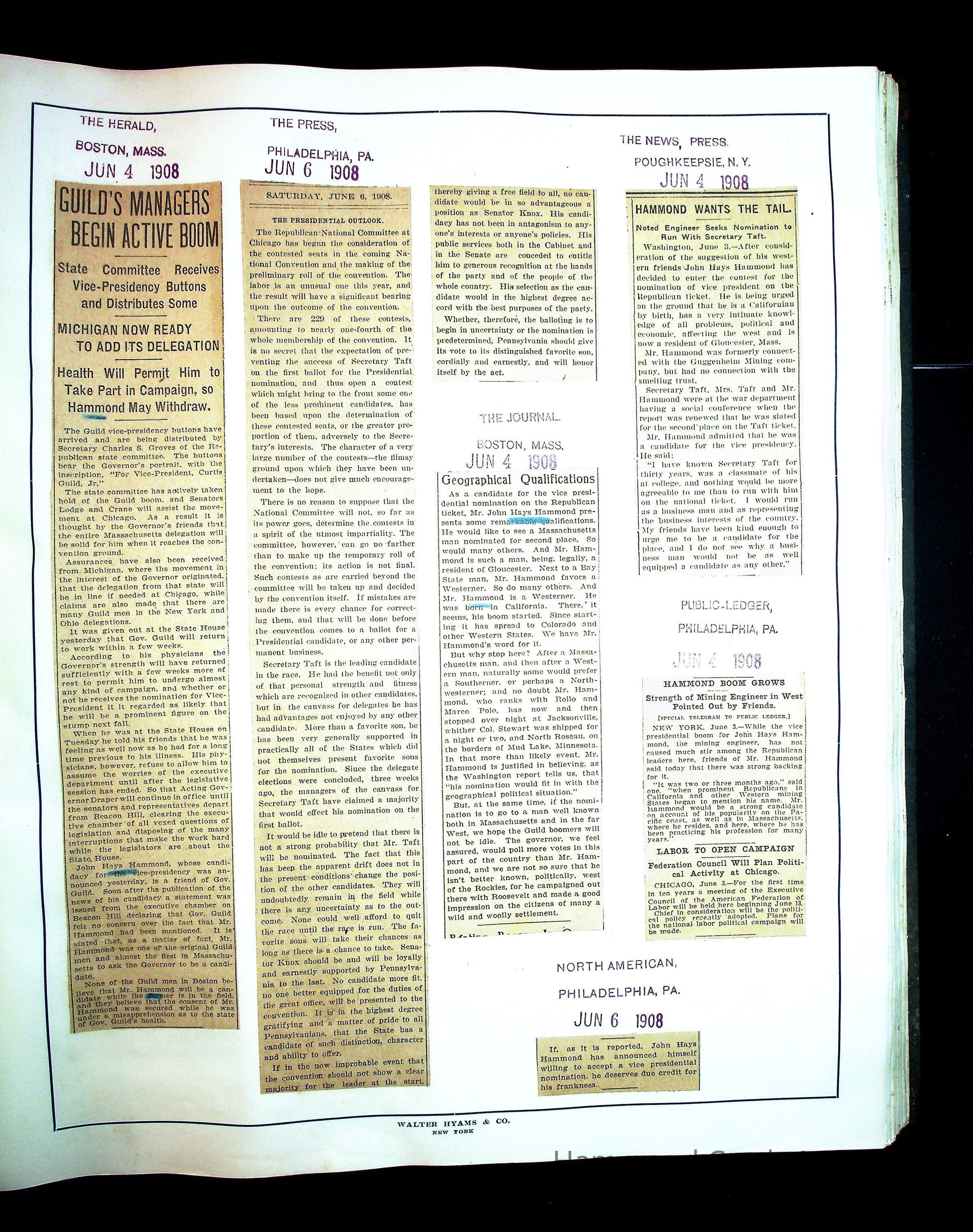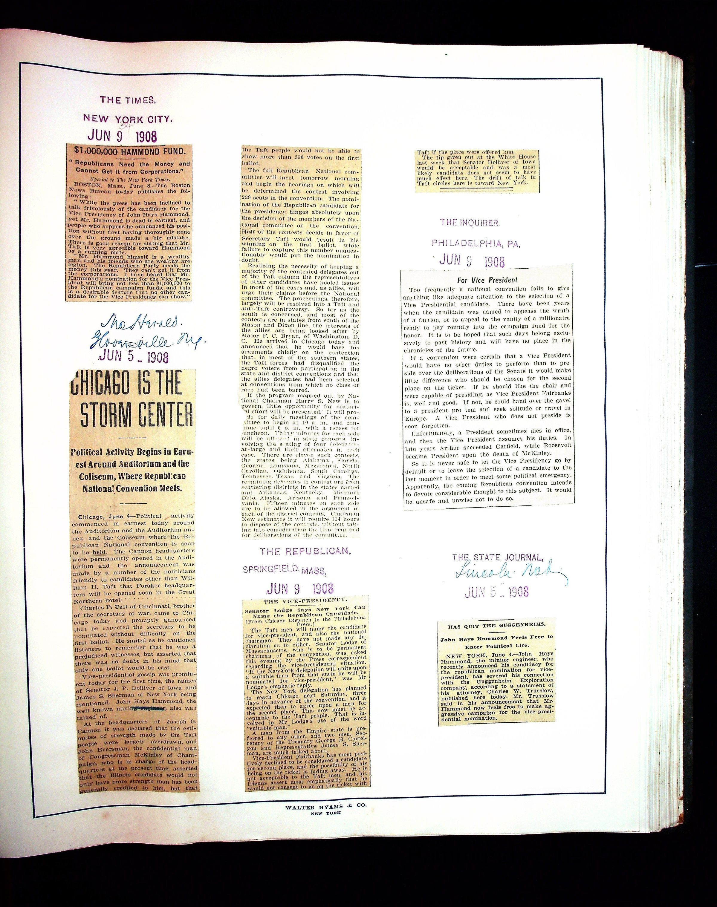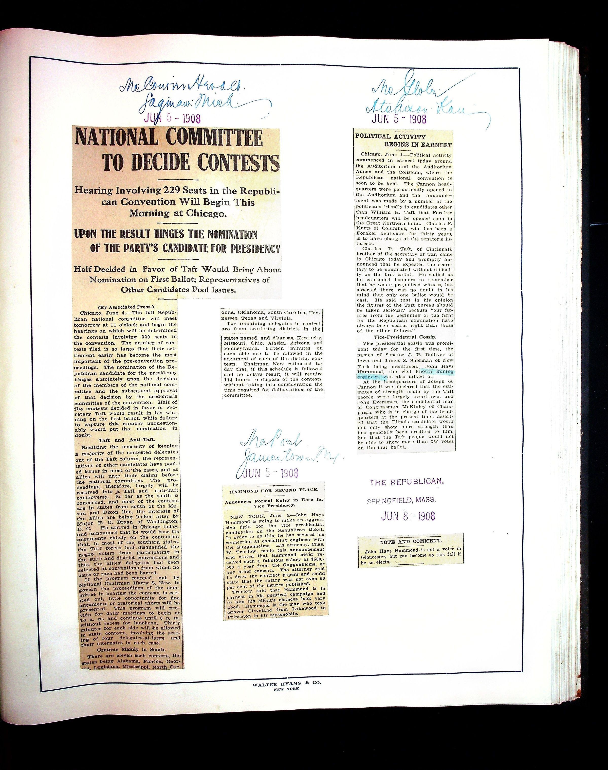 Articles & Images from Taft campaign & John Hays Hammond Sr vice-presidency run