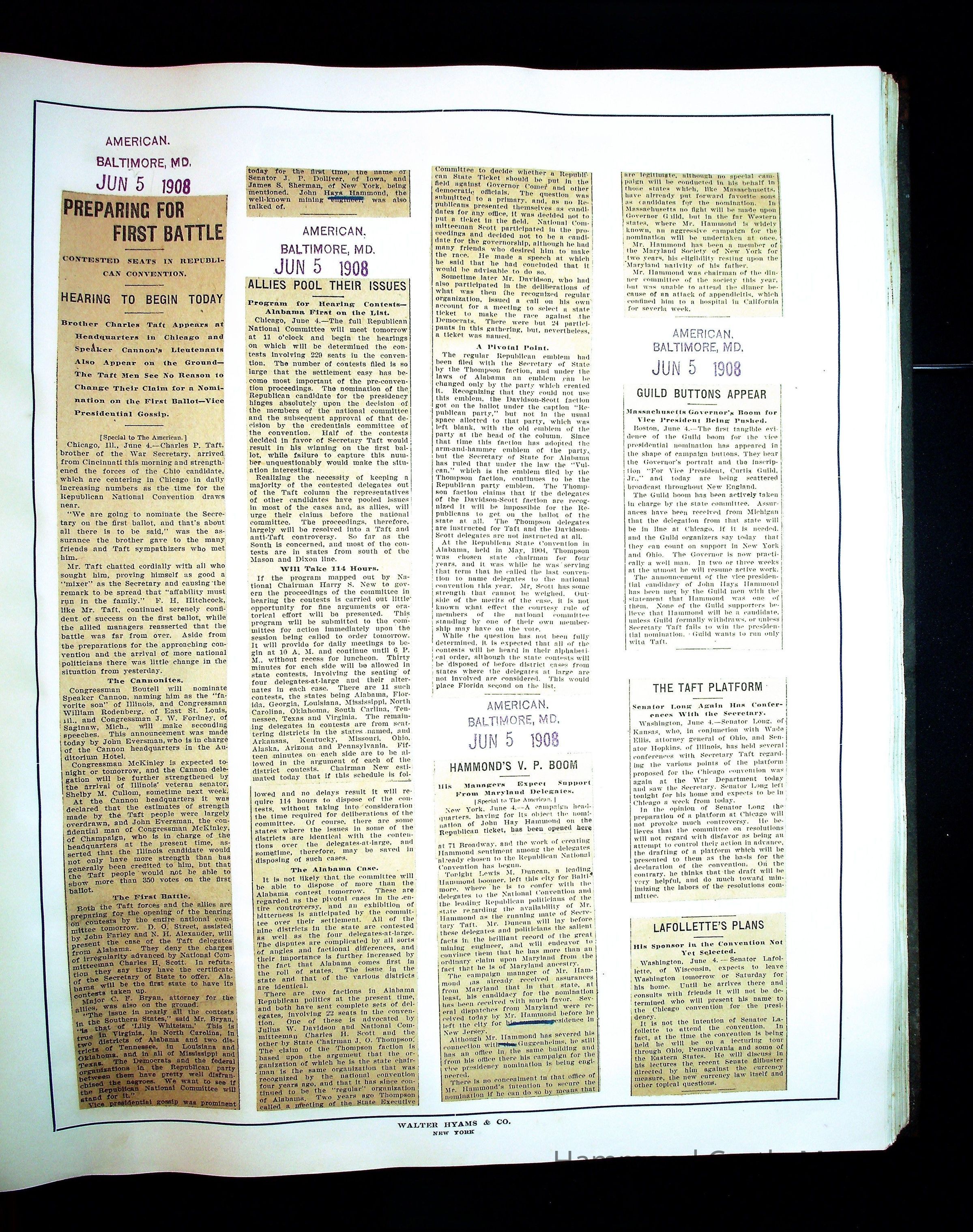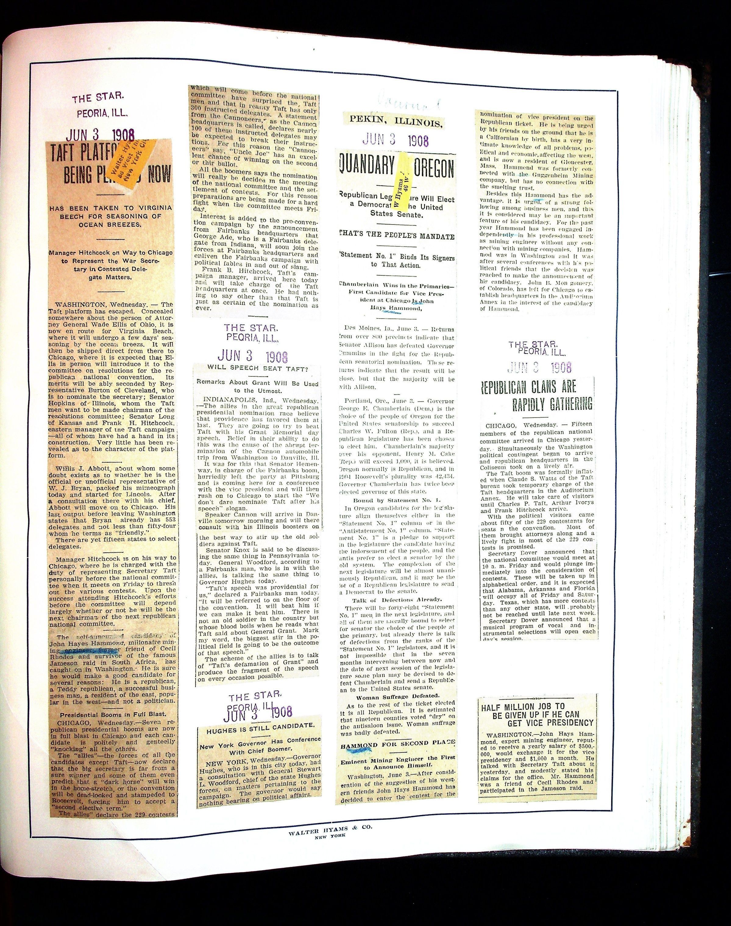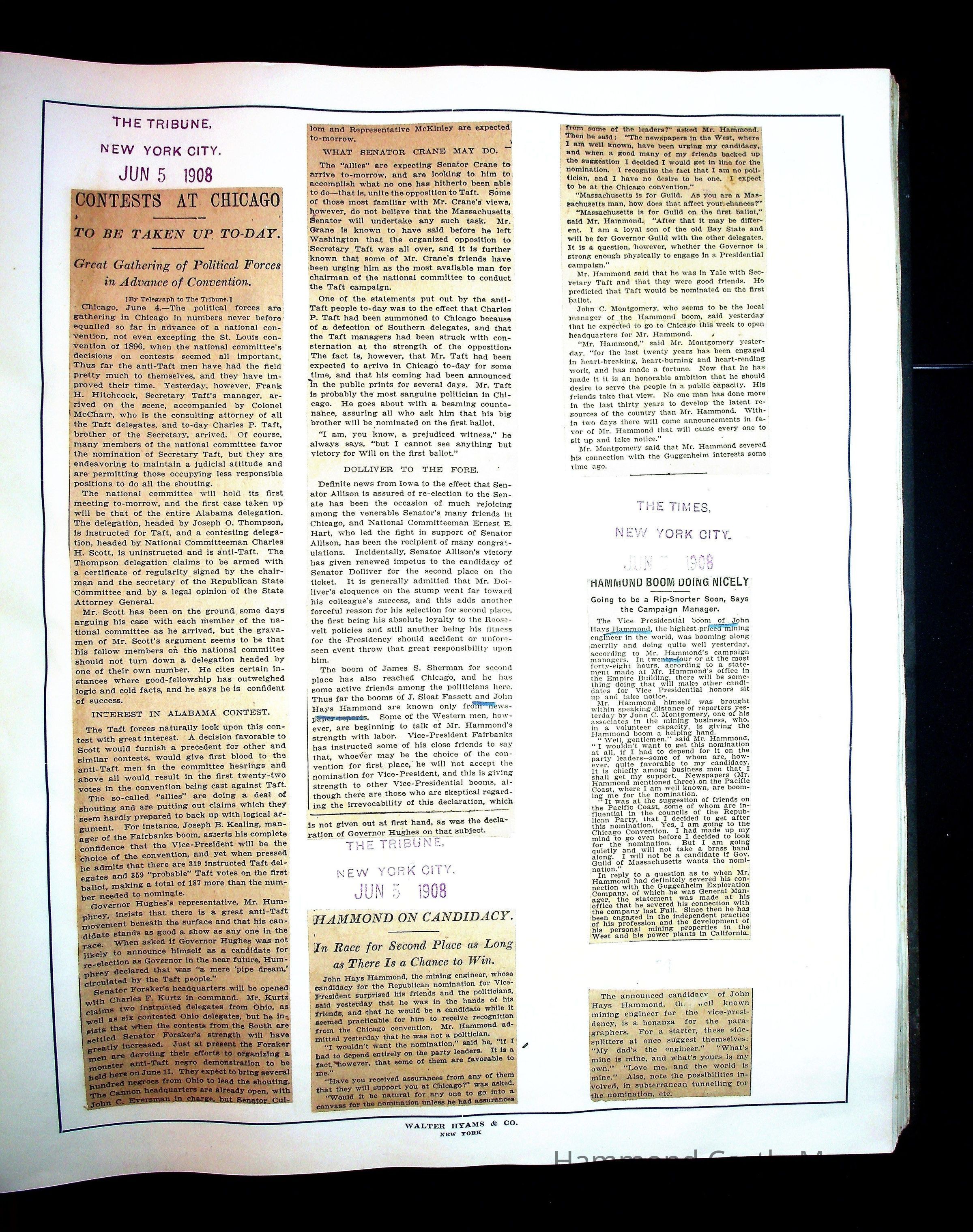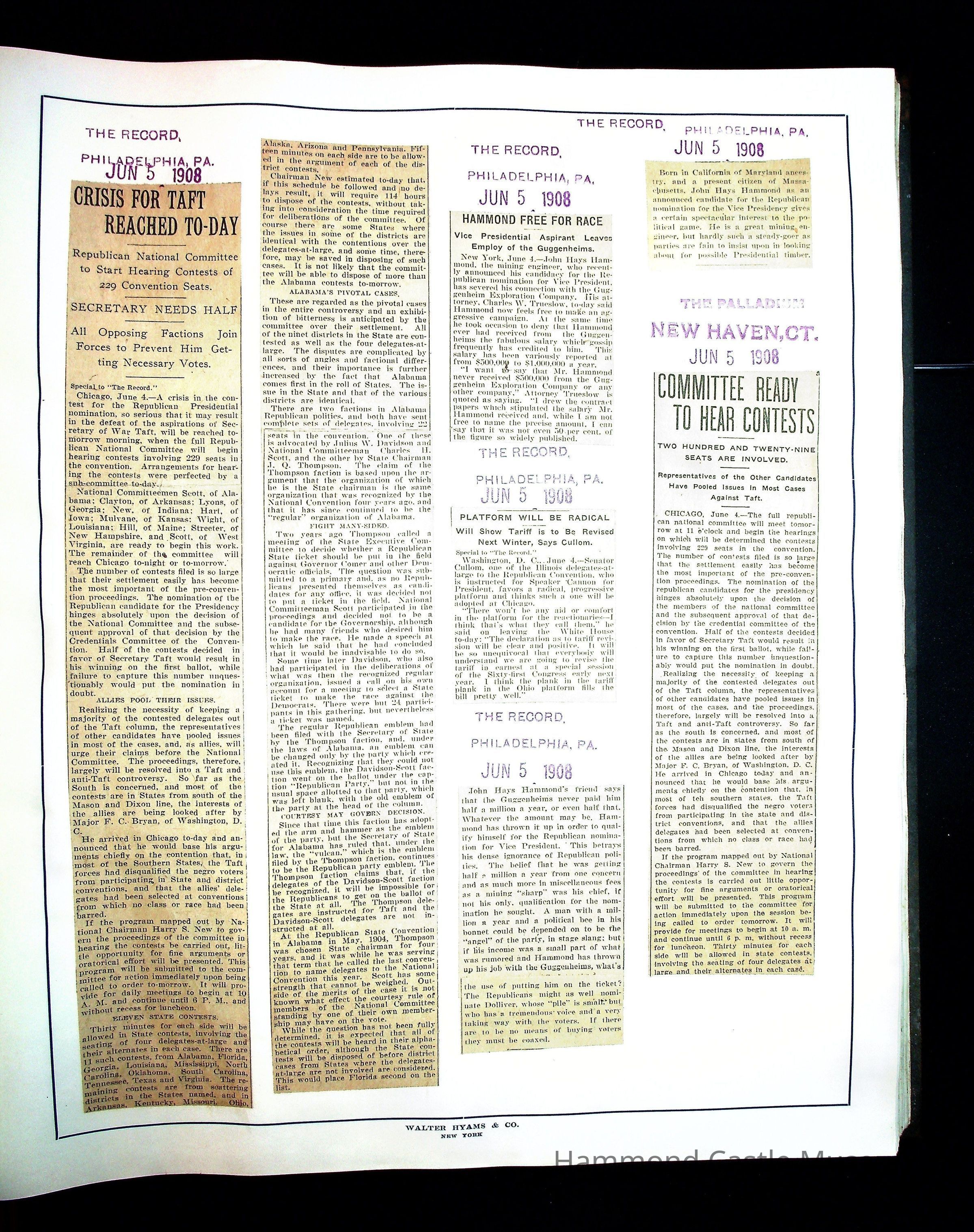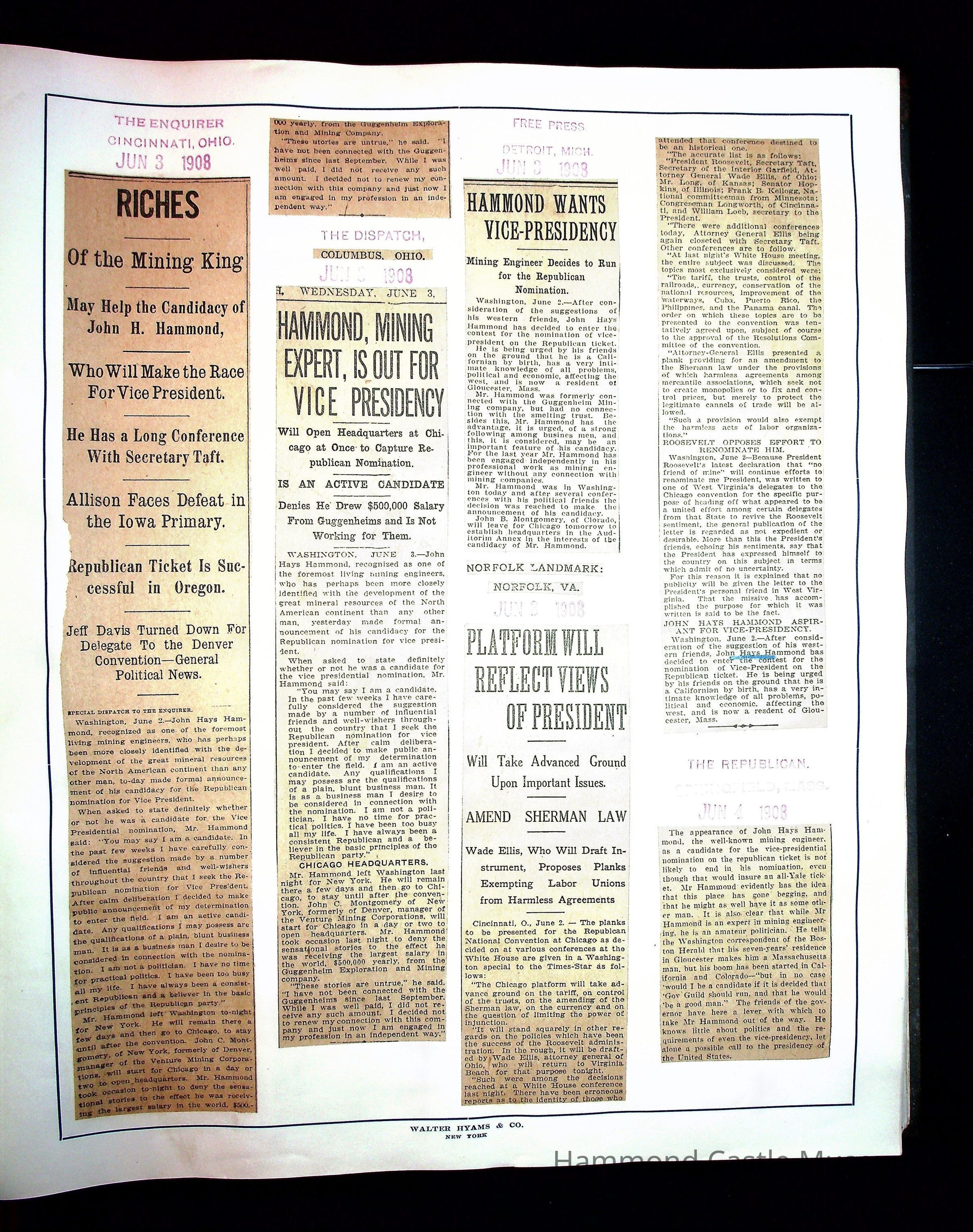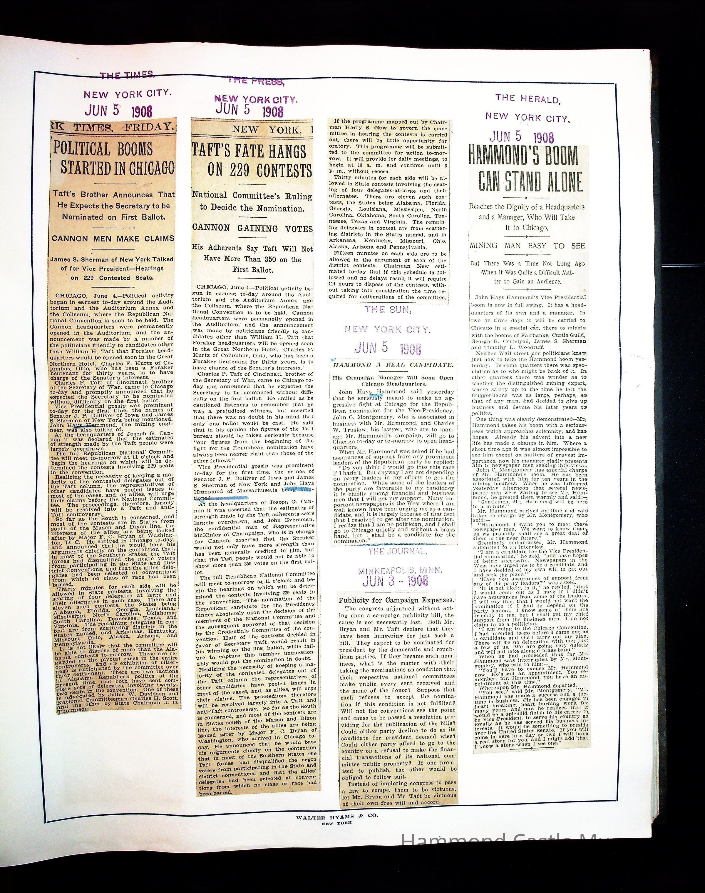 Articles & Images from Taft campaign & John Hays Hammond Sr vice-presidency run