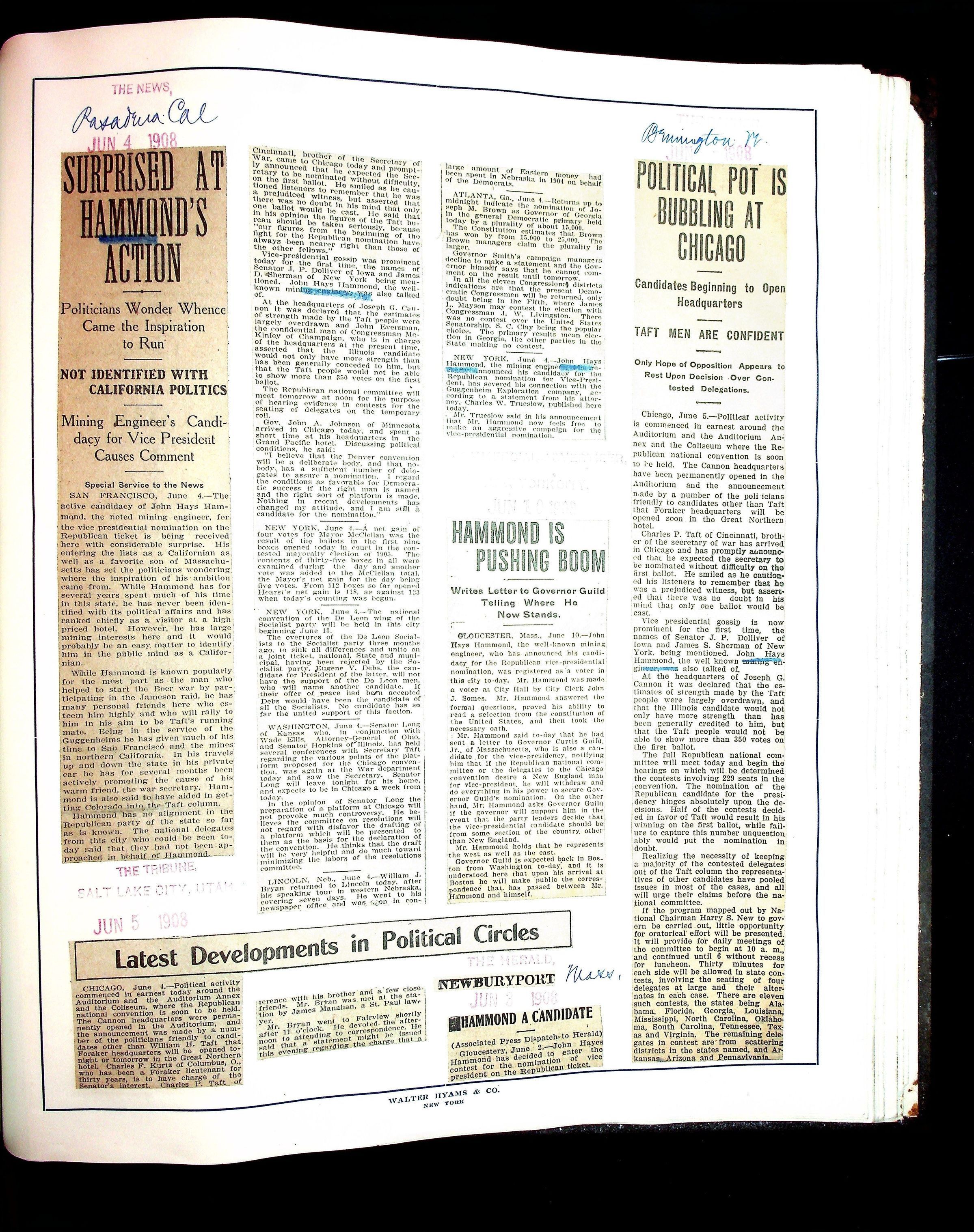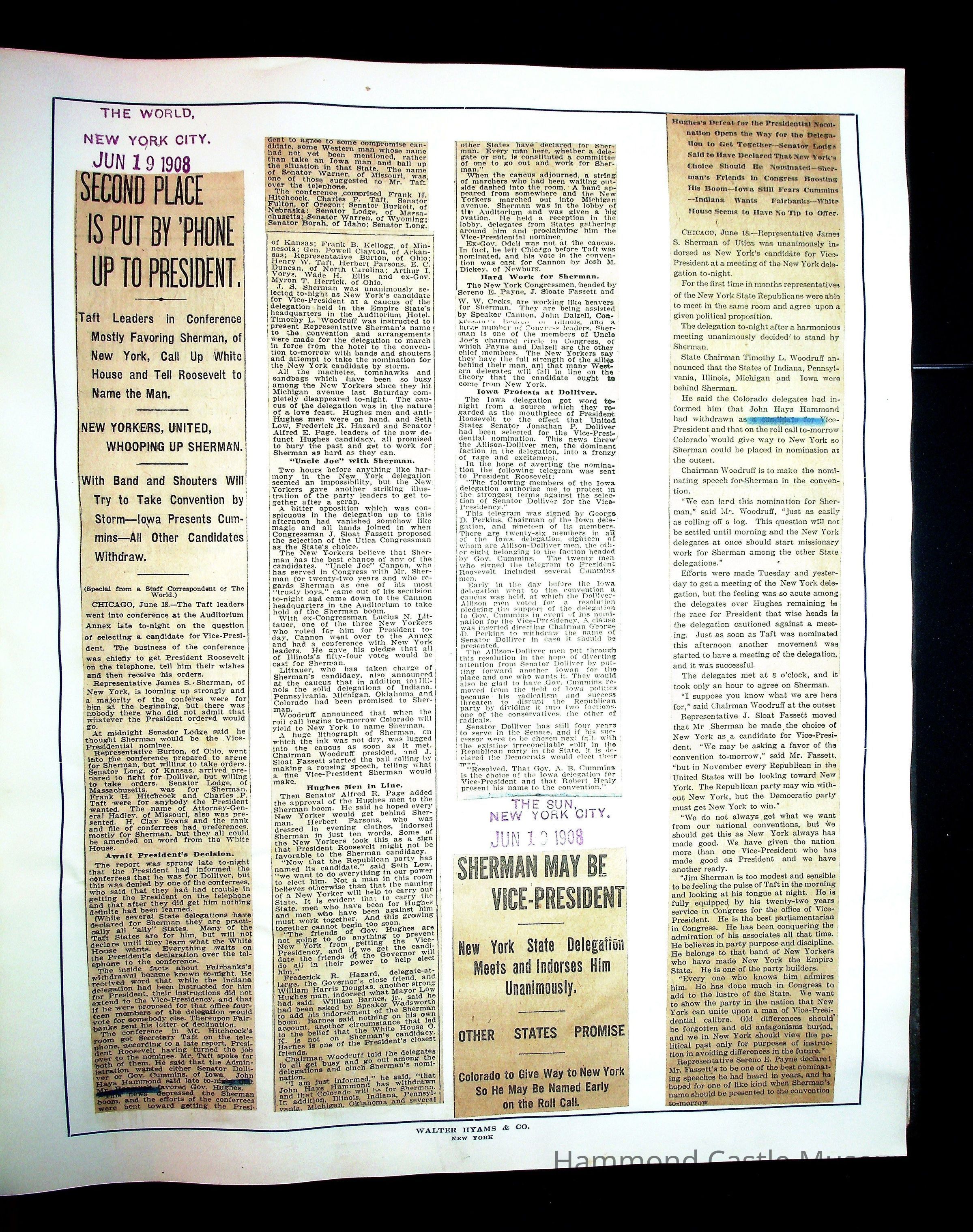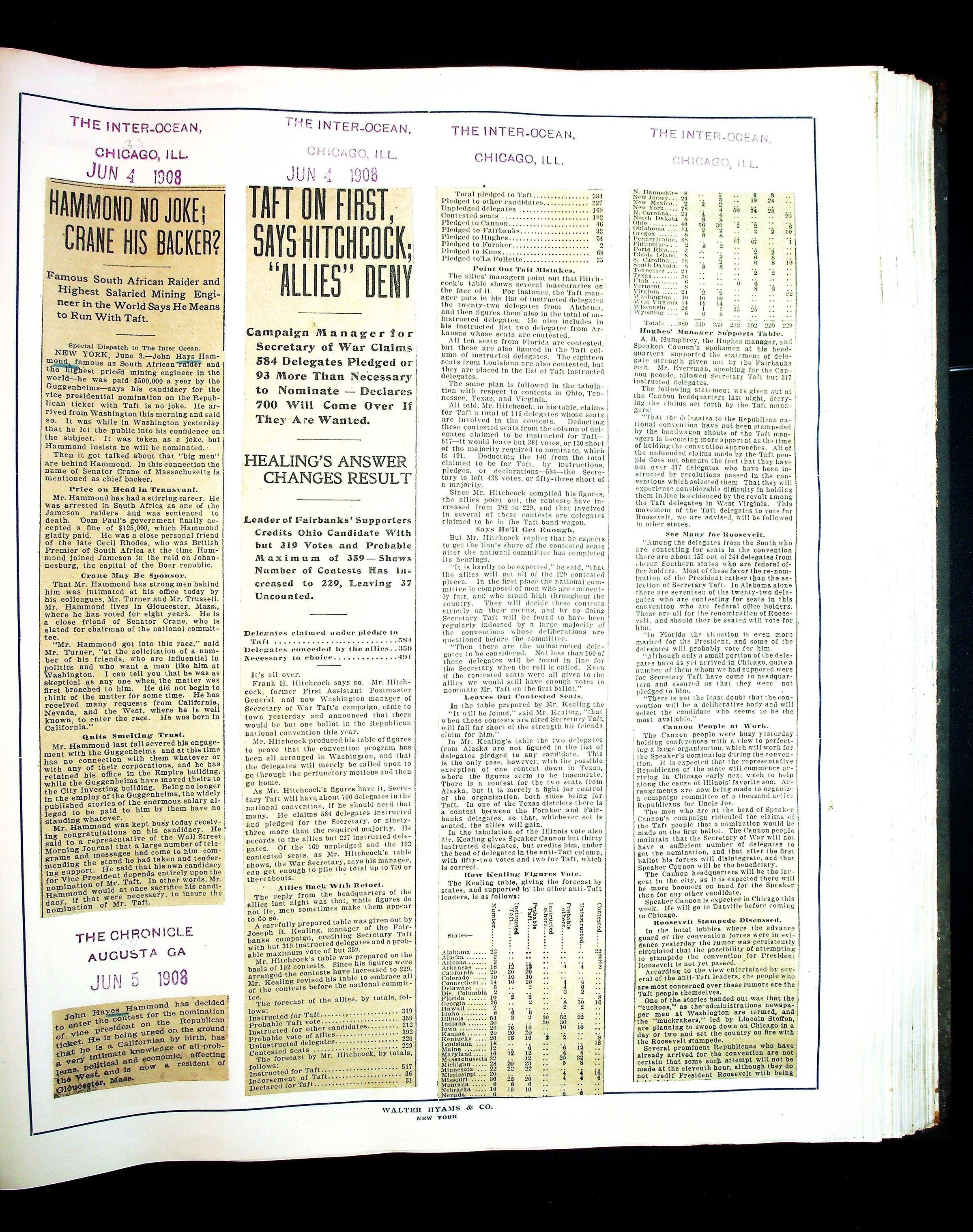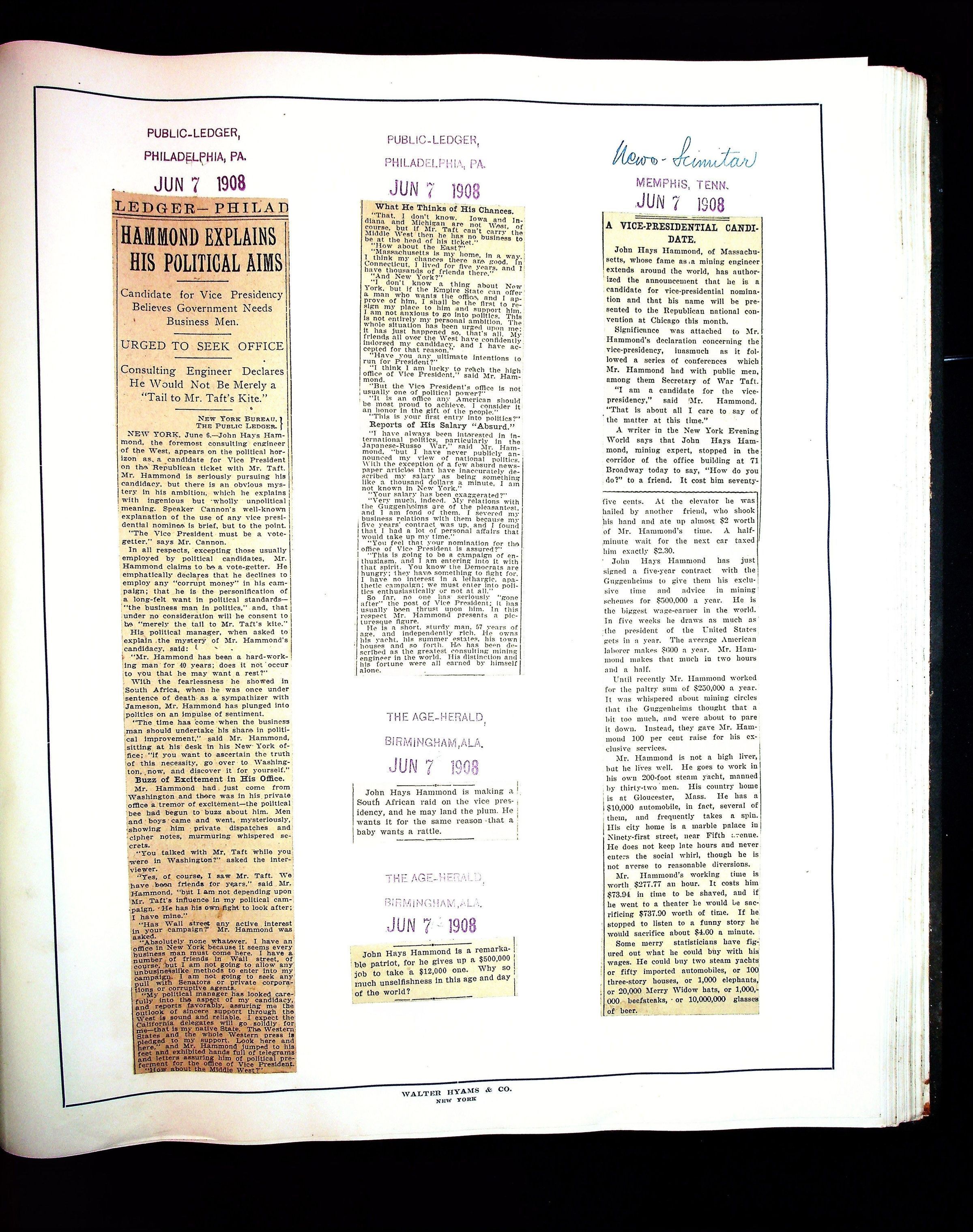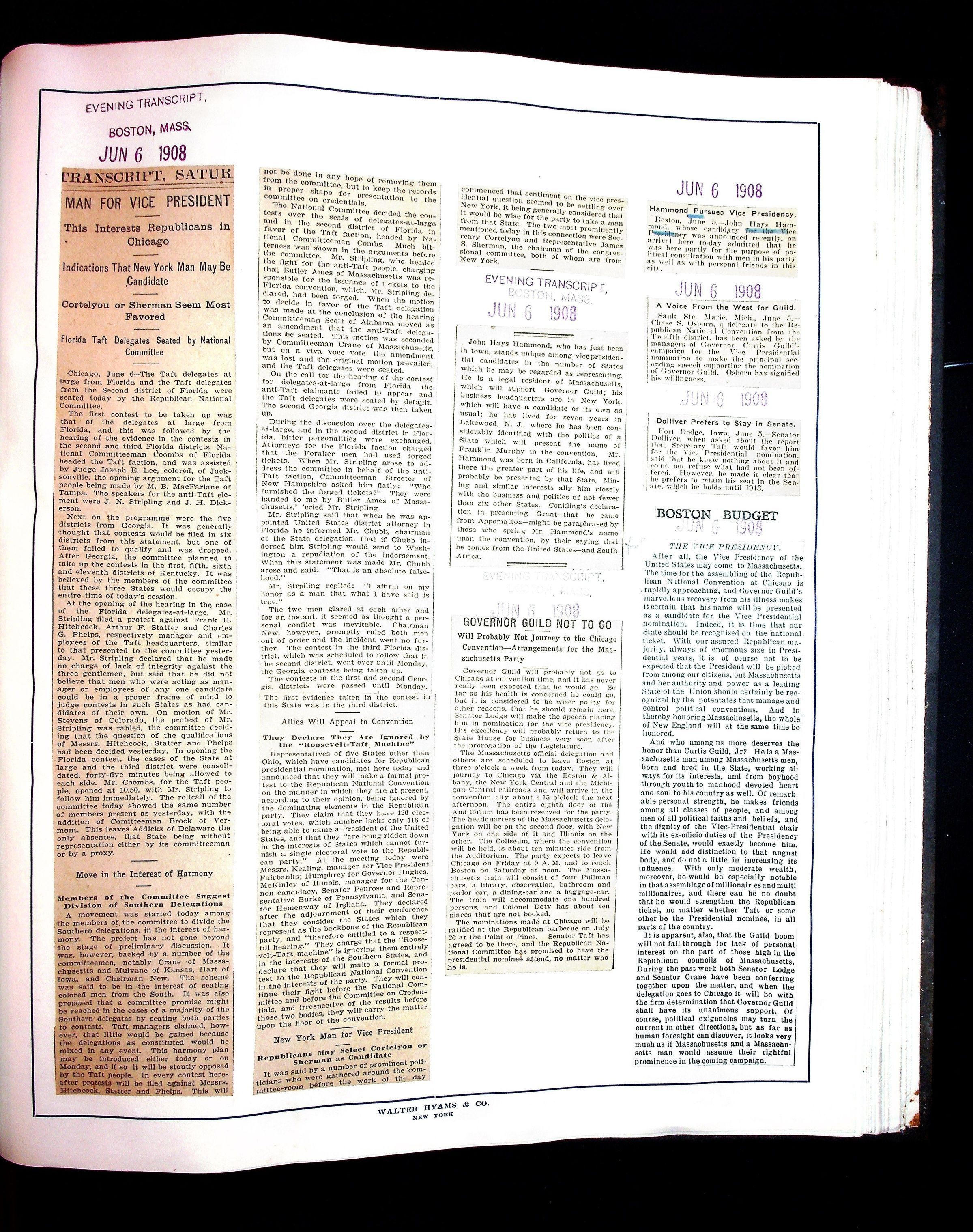 Articles & Images from Taft campaign & John Hays Hammond Sr vice-presidency run