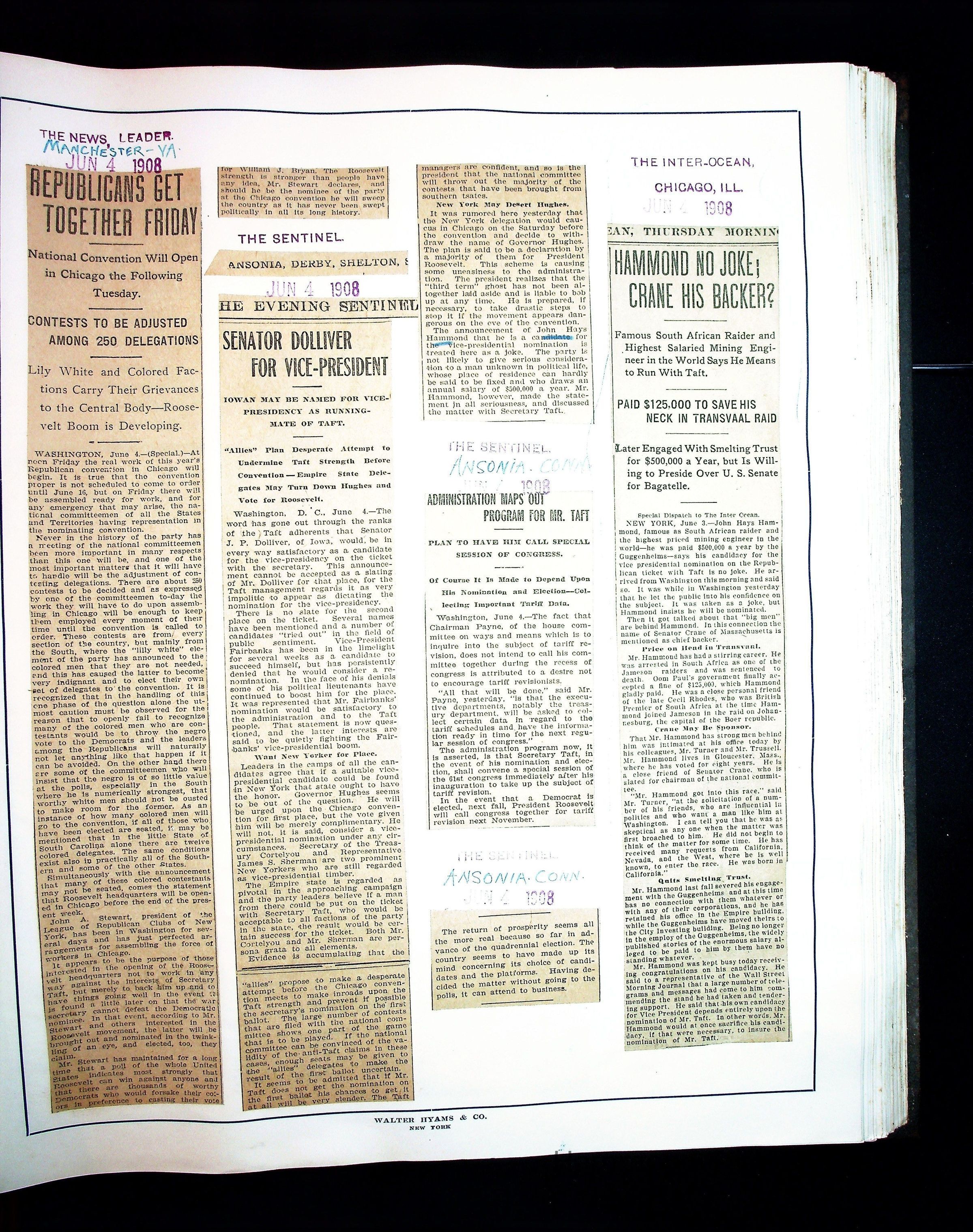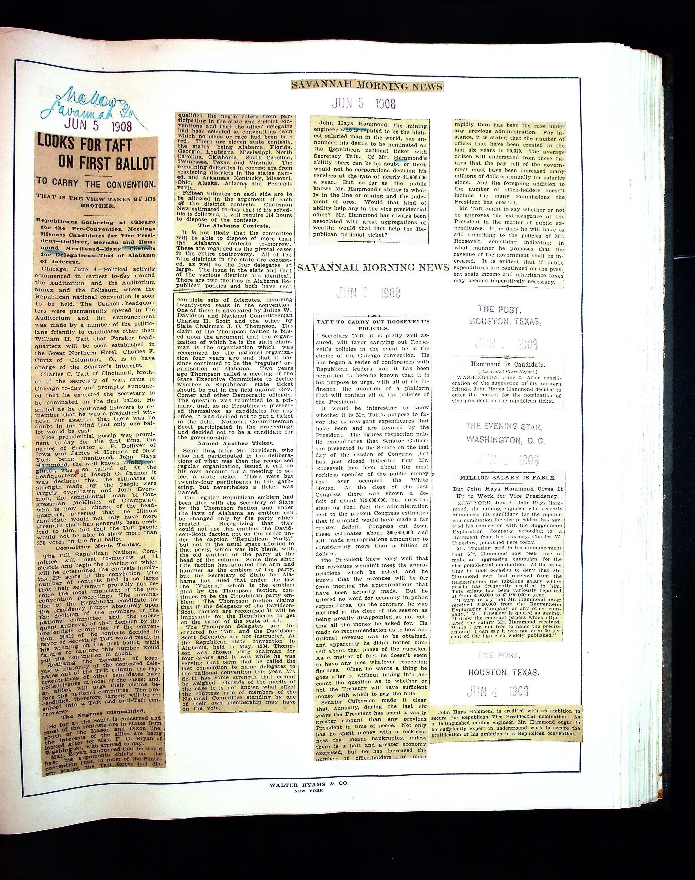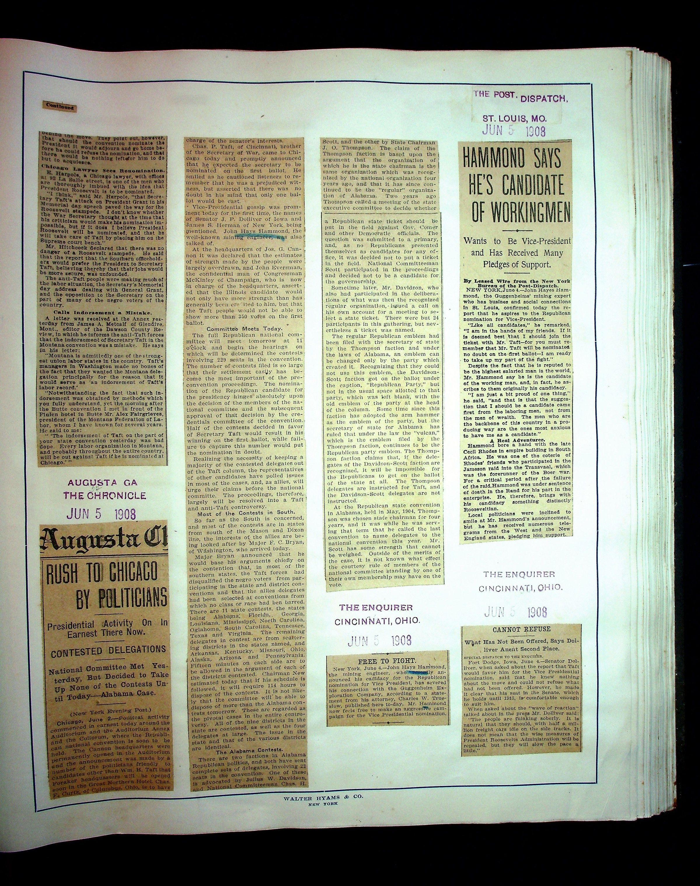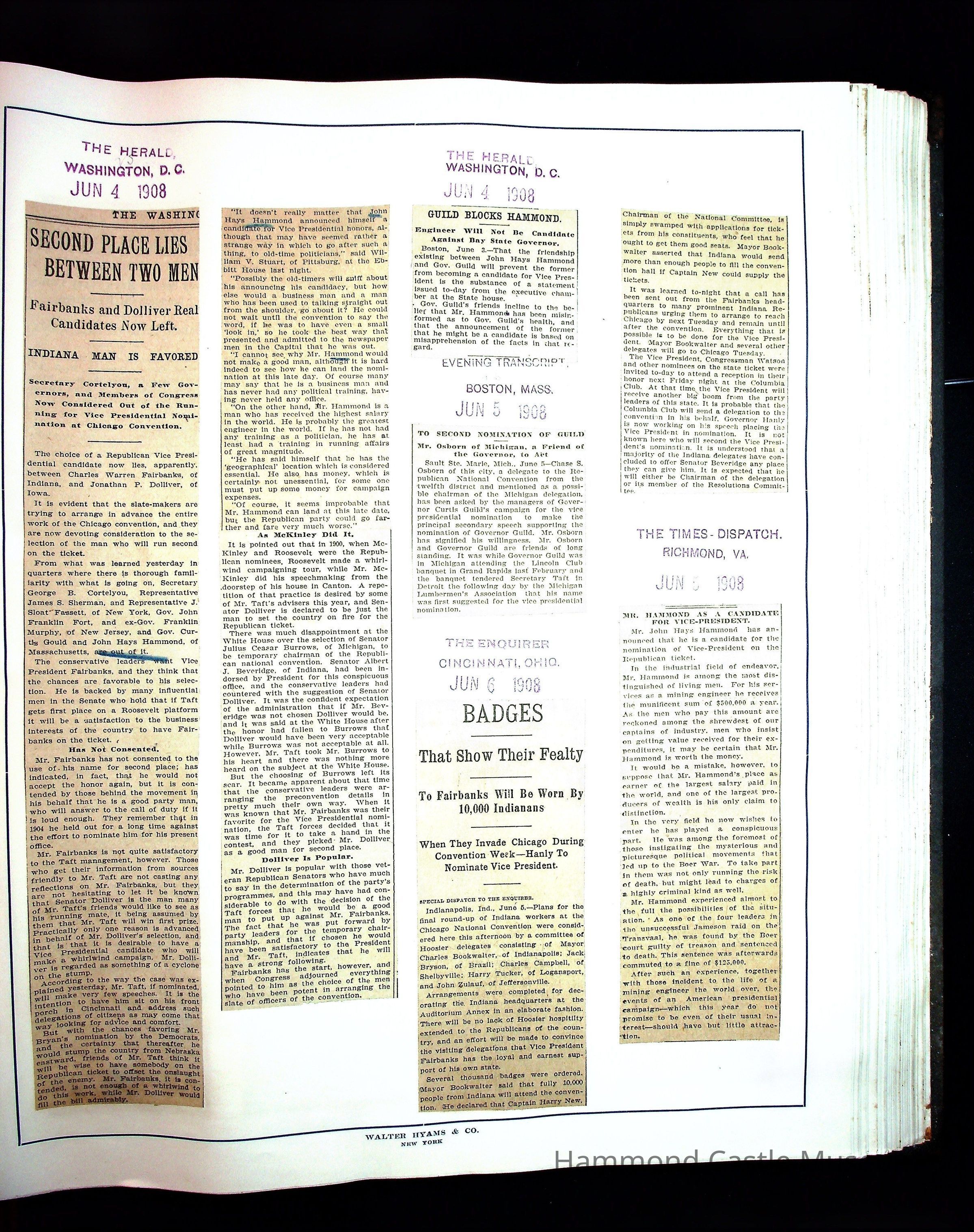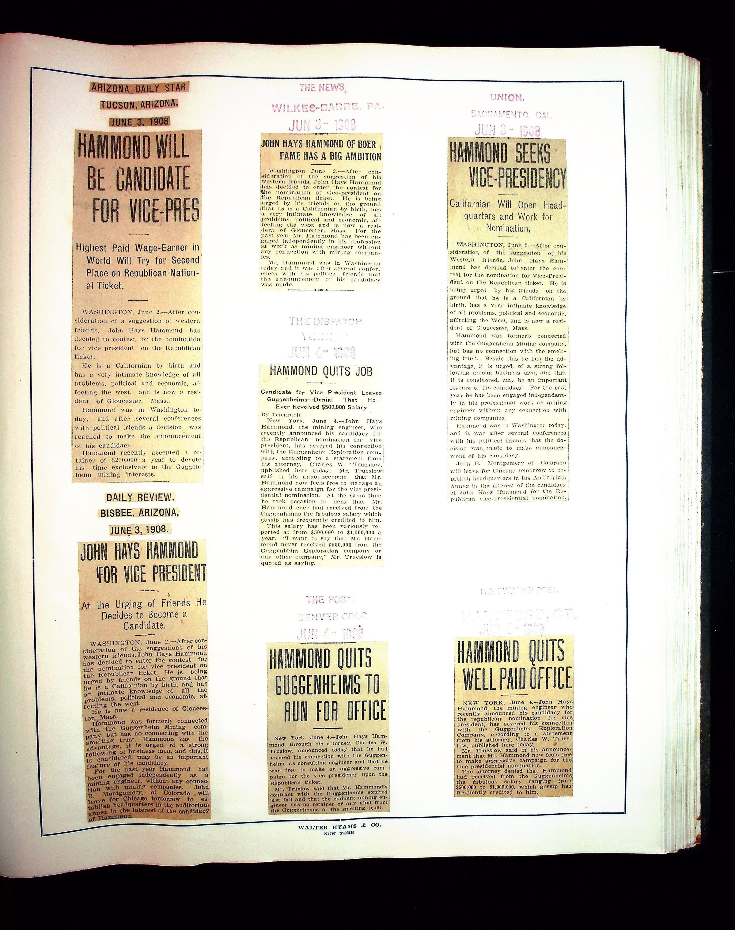 Articles & Images from Taft campaign & John Hays Hammond Sr vice-presidency run