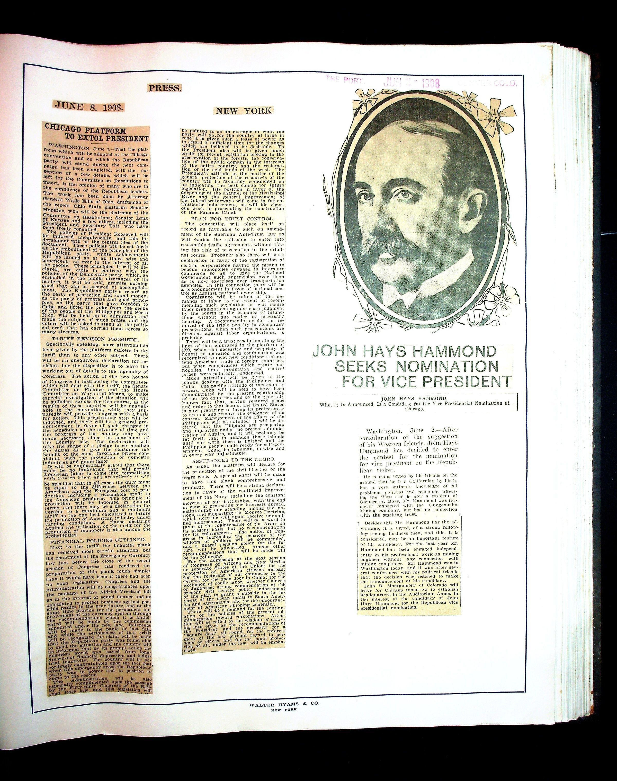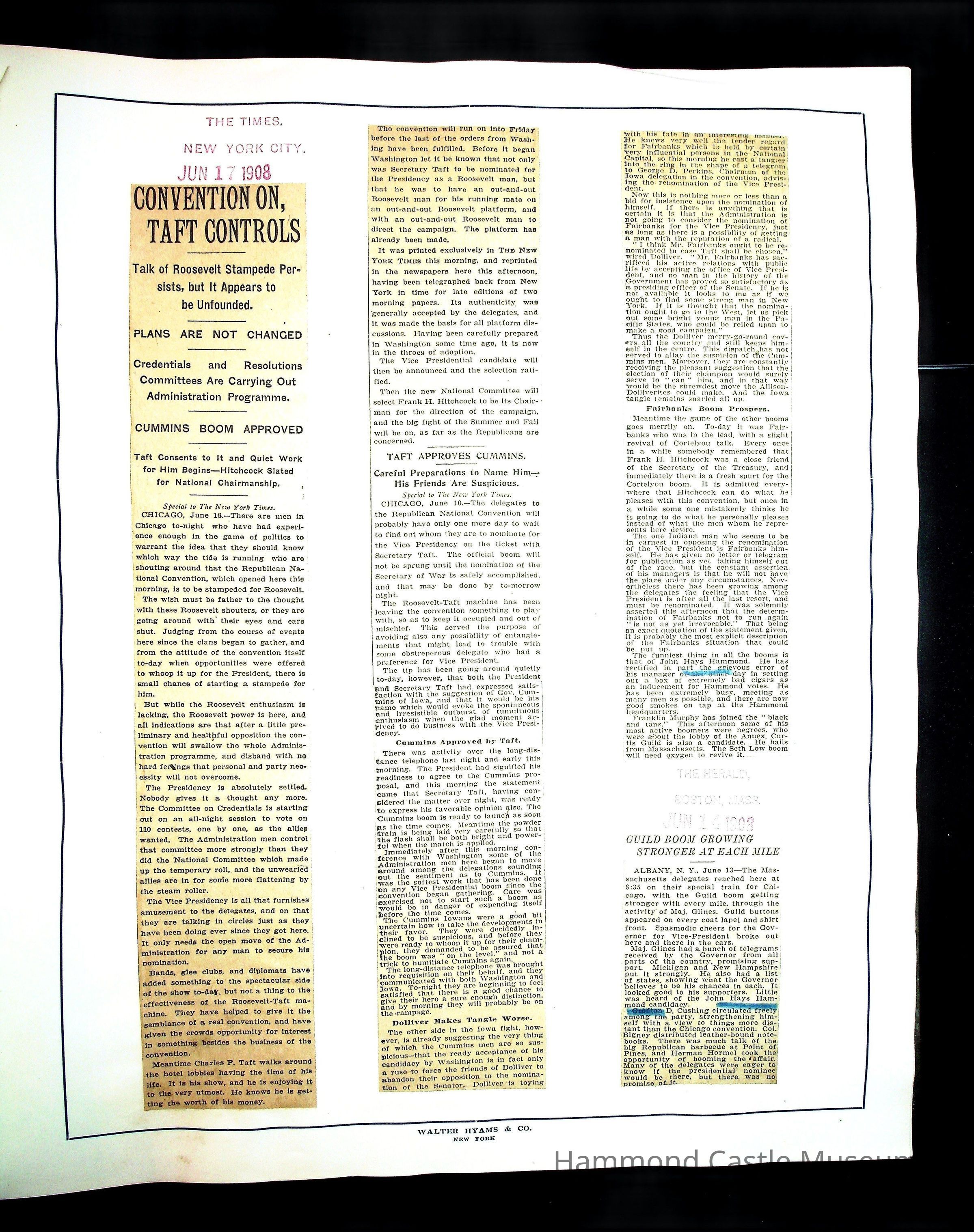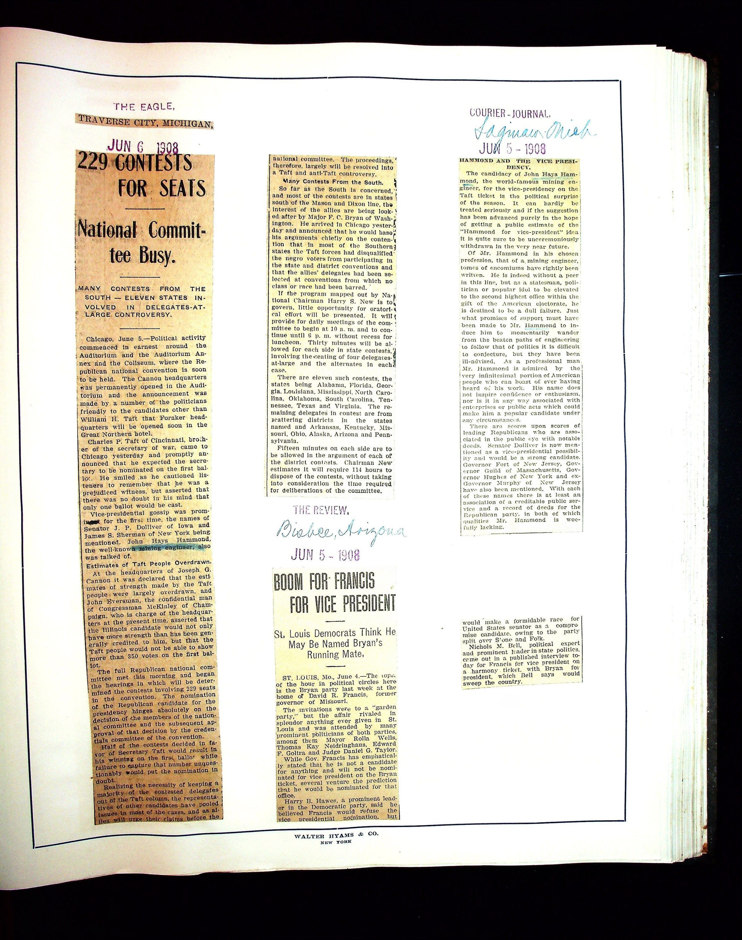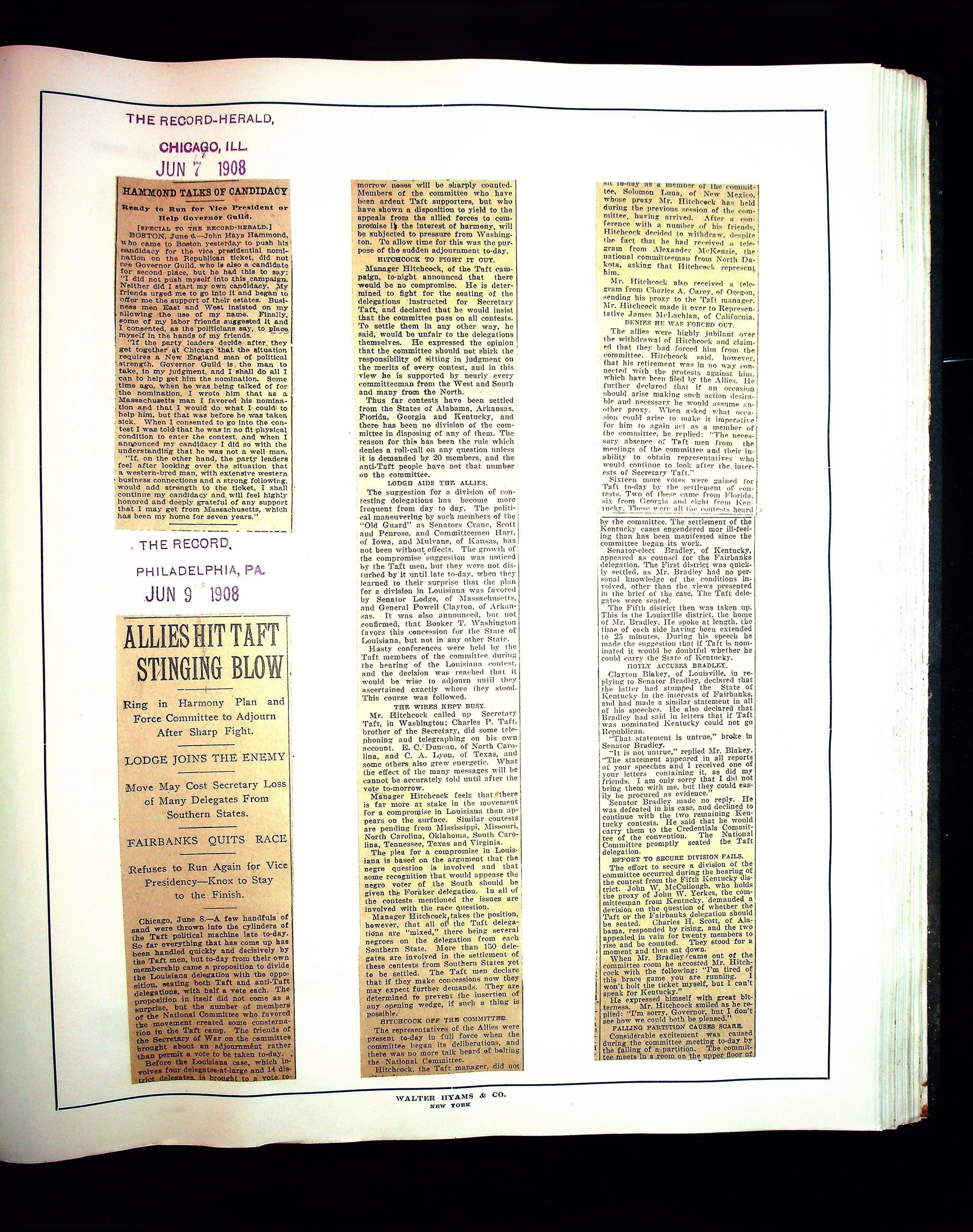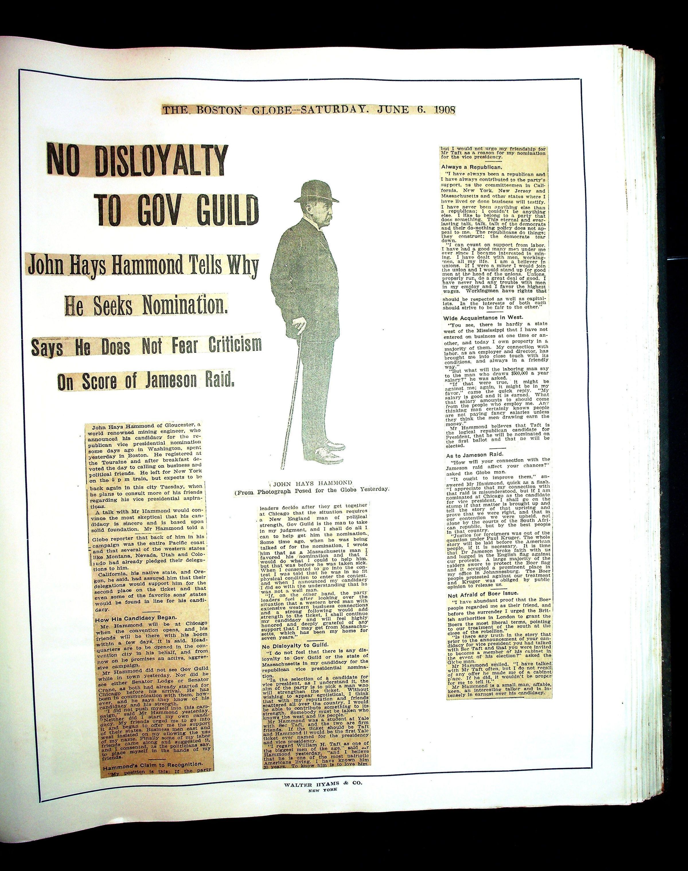 Articles & Images from Taft campaign & John Hays Hammond Sr vice-presidency run