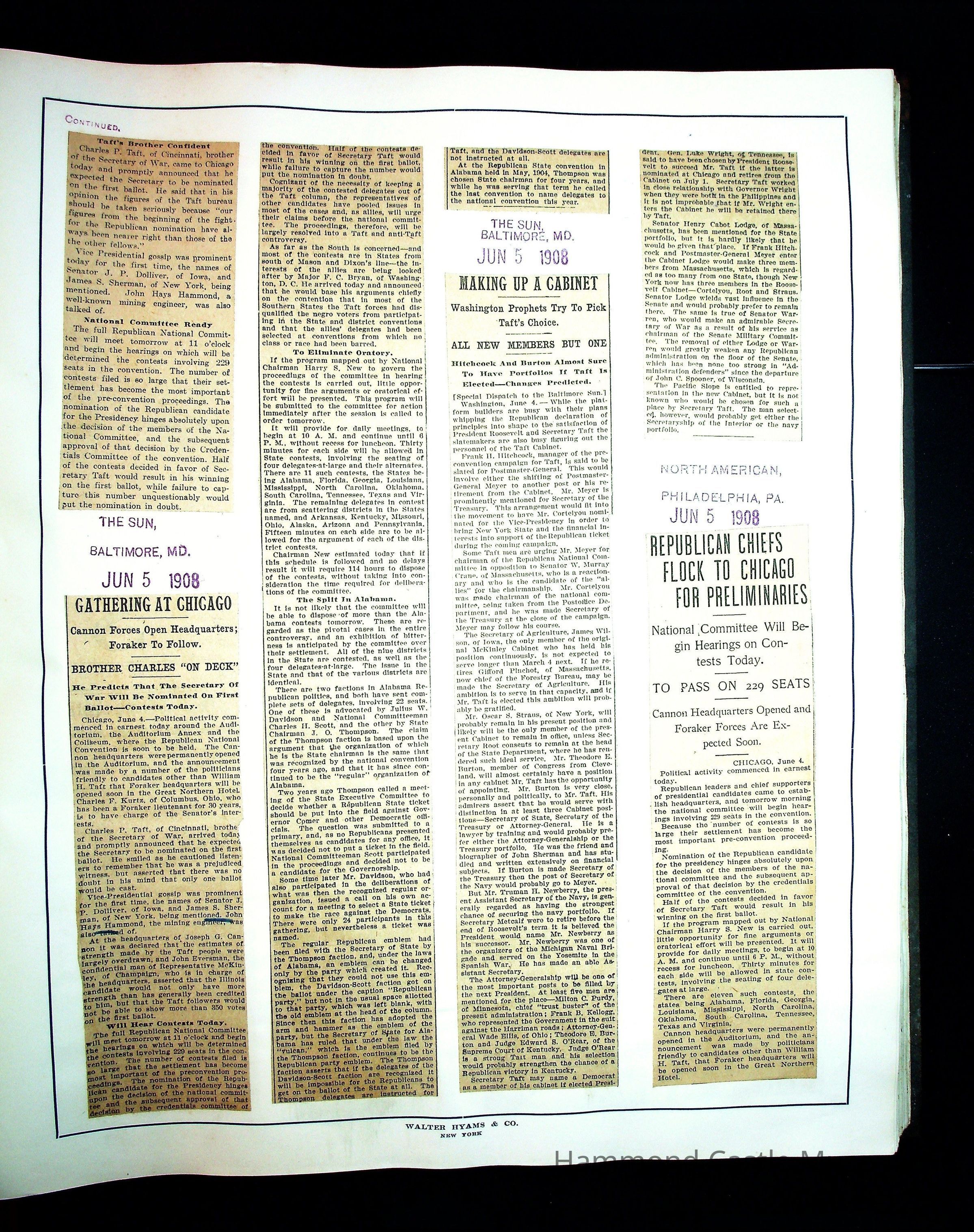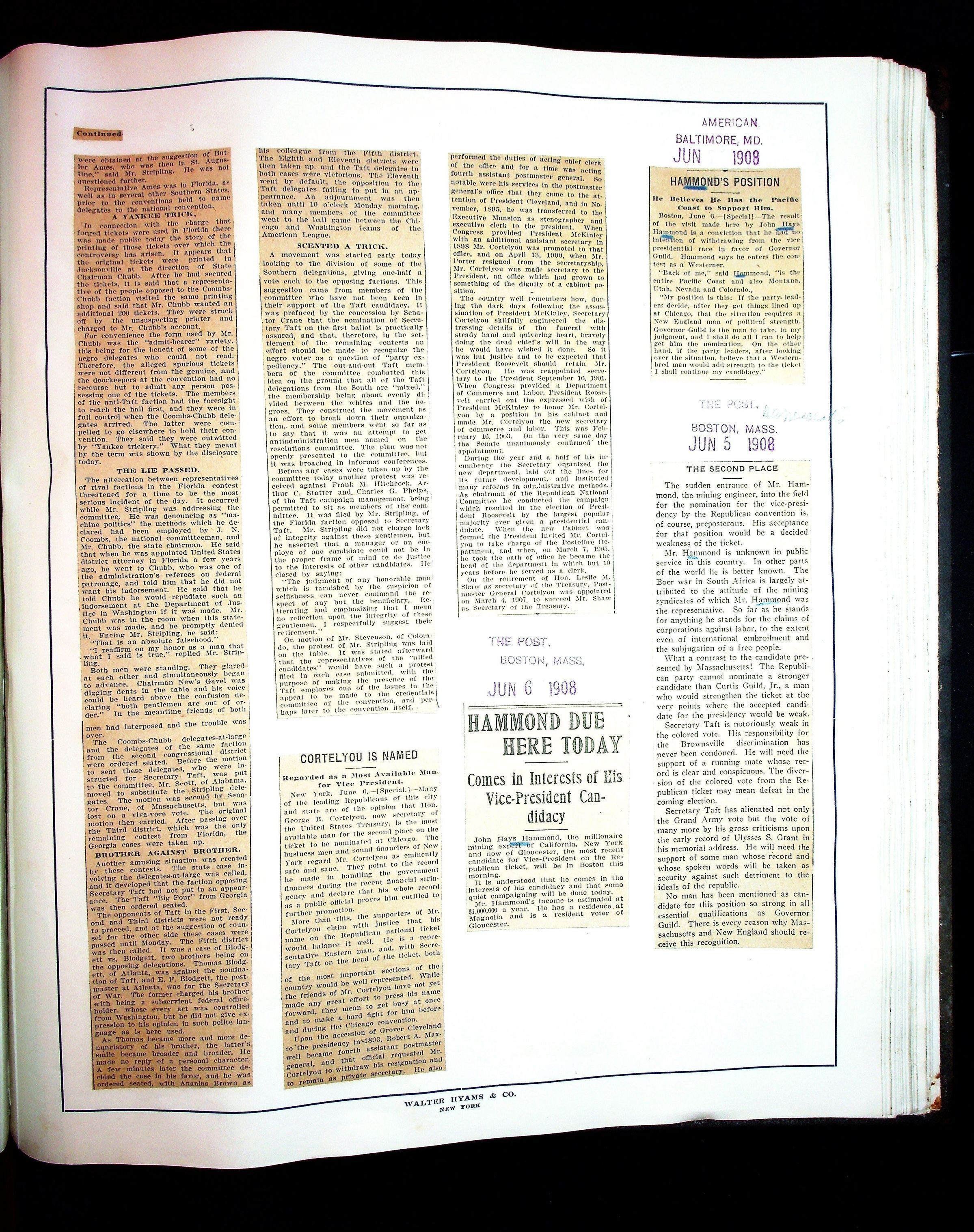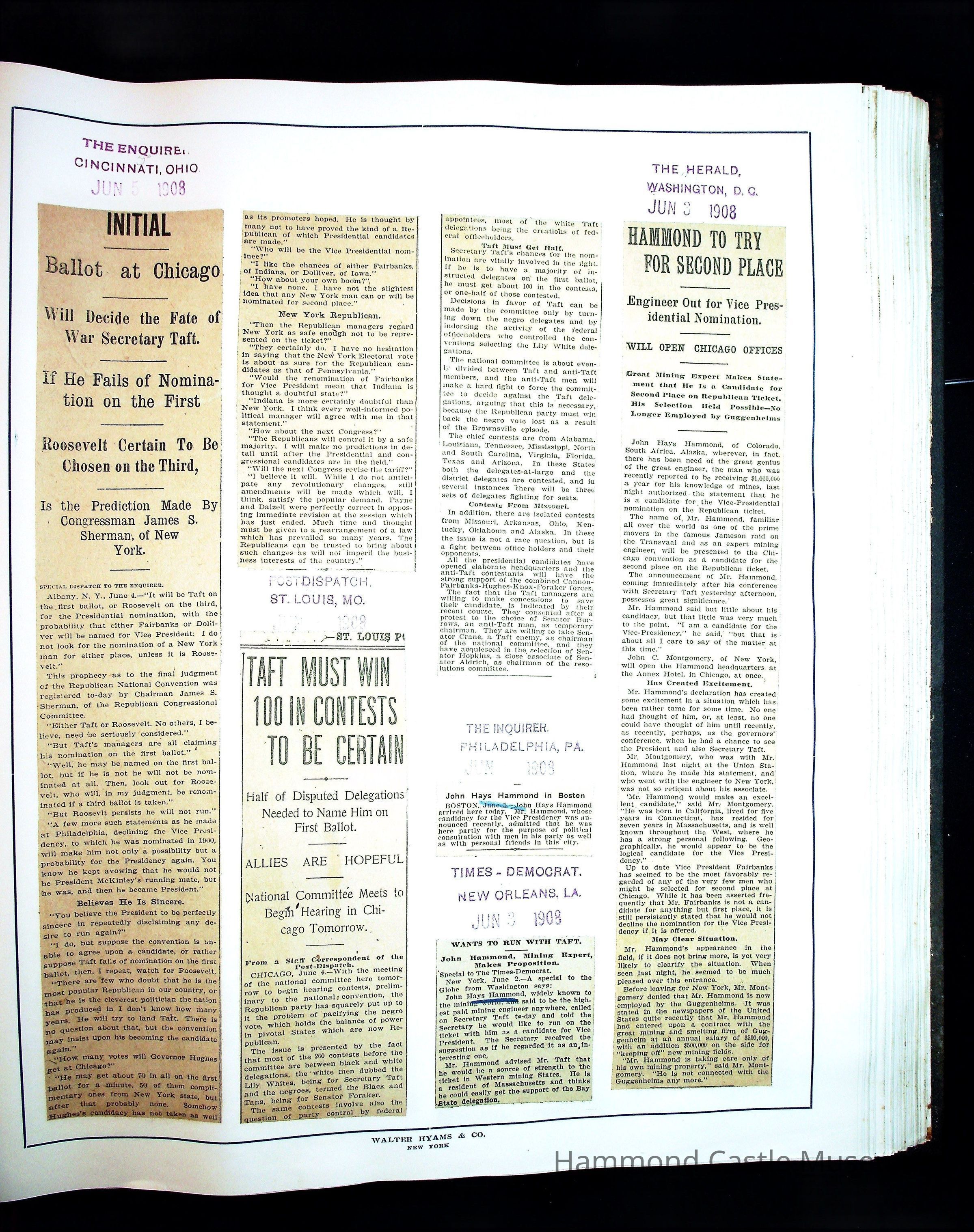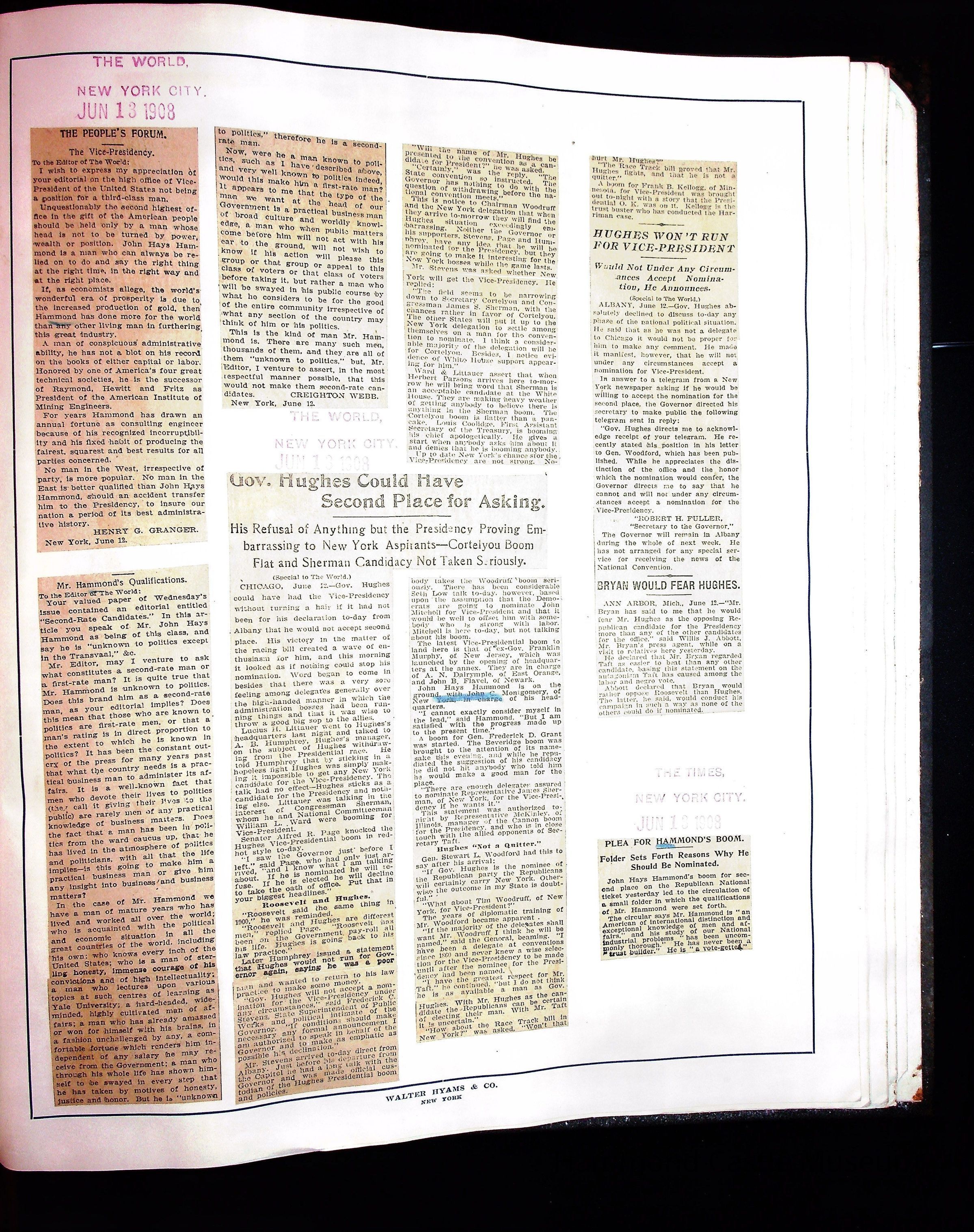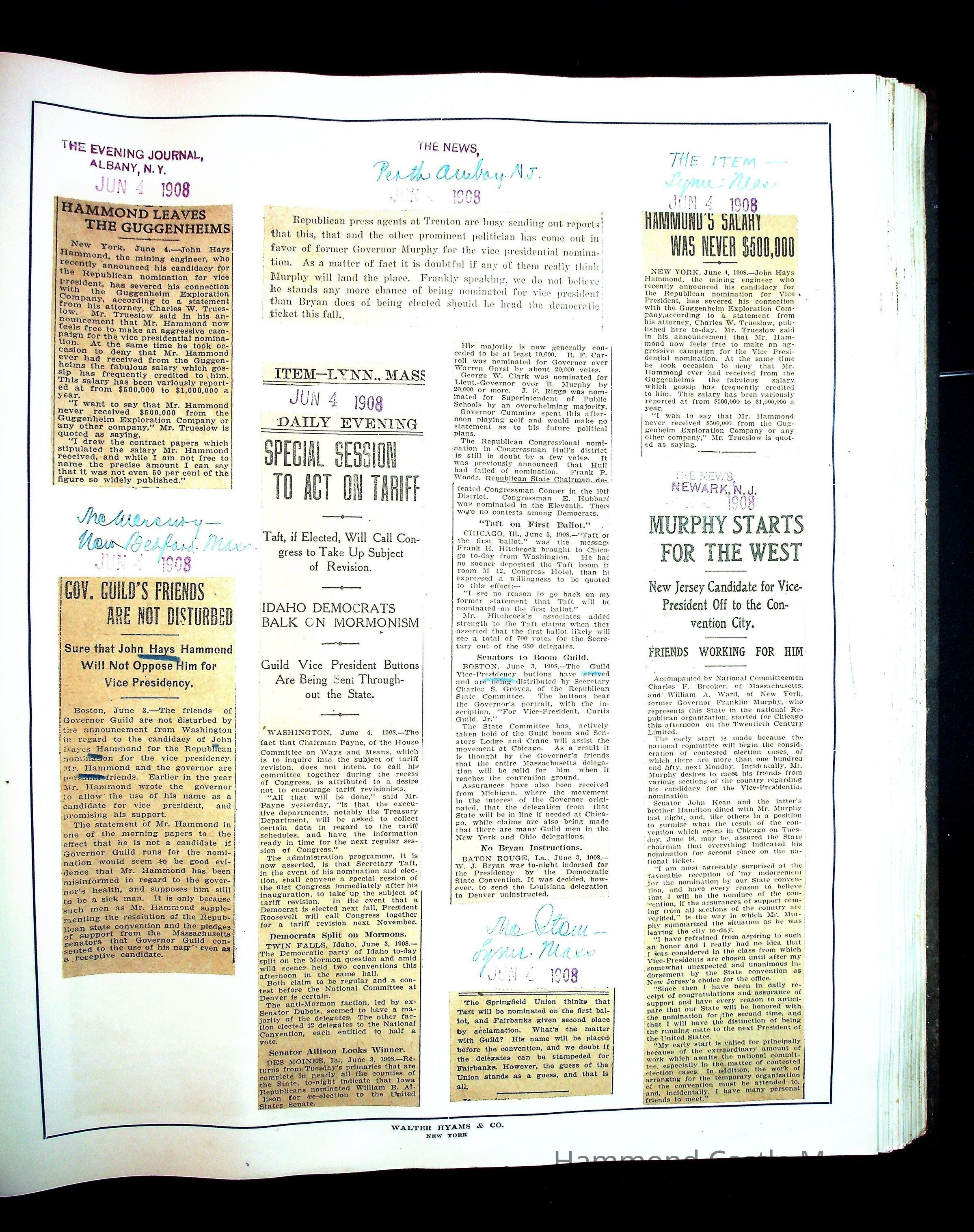 Articles & Images from Taft campaign & John Hays Hammond Sr vice-presidency run