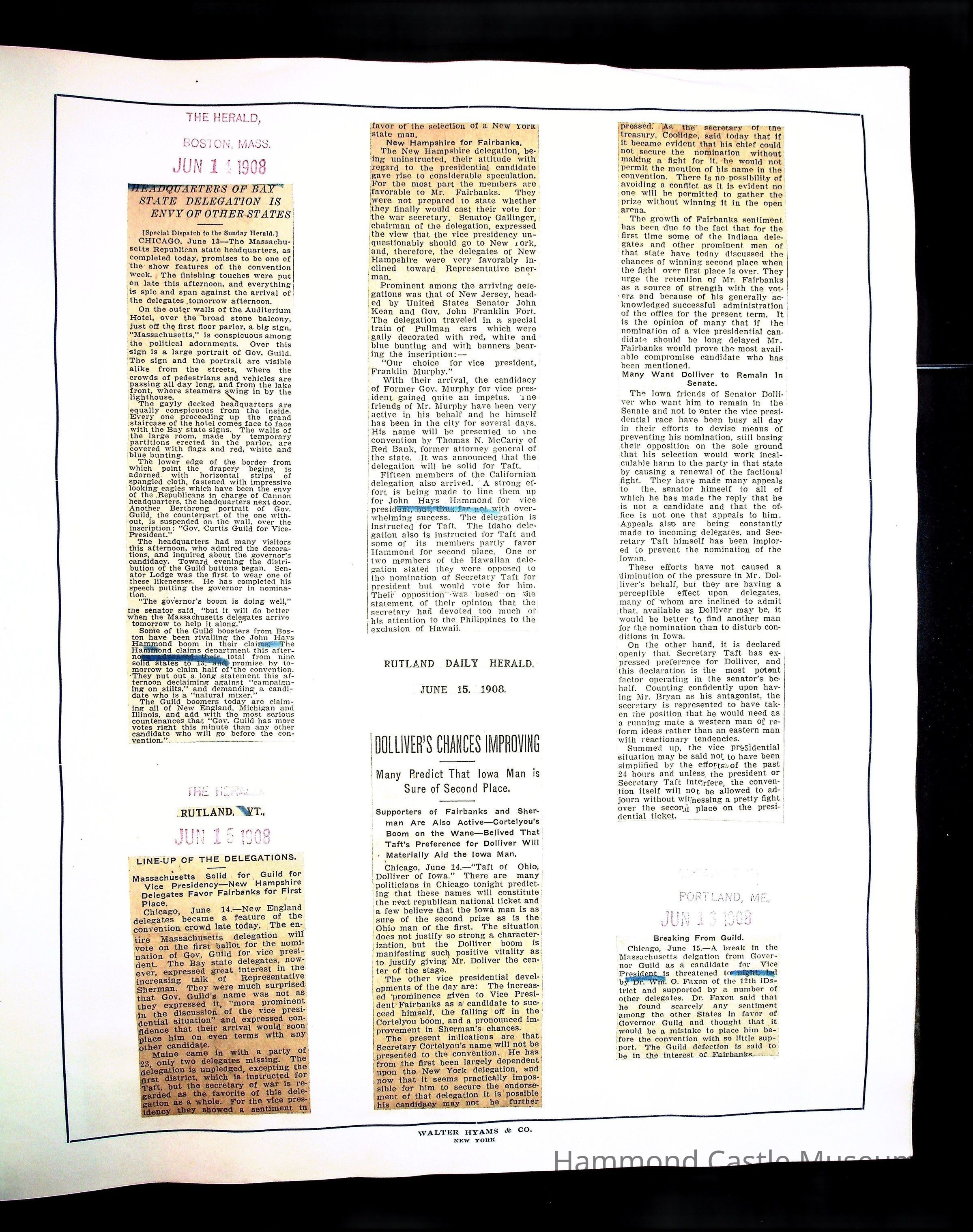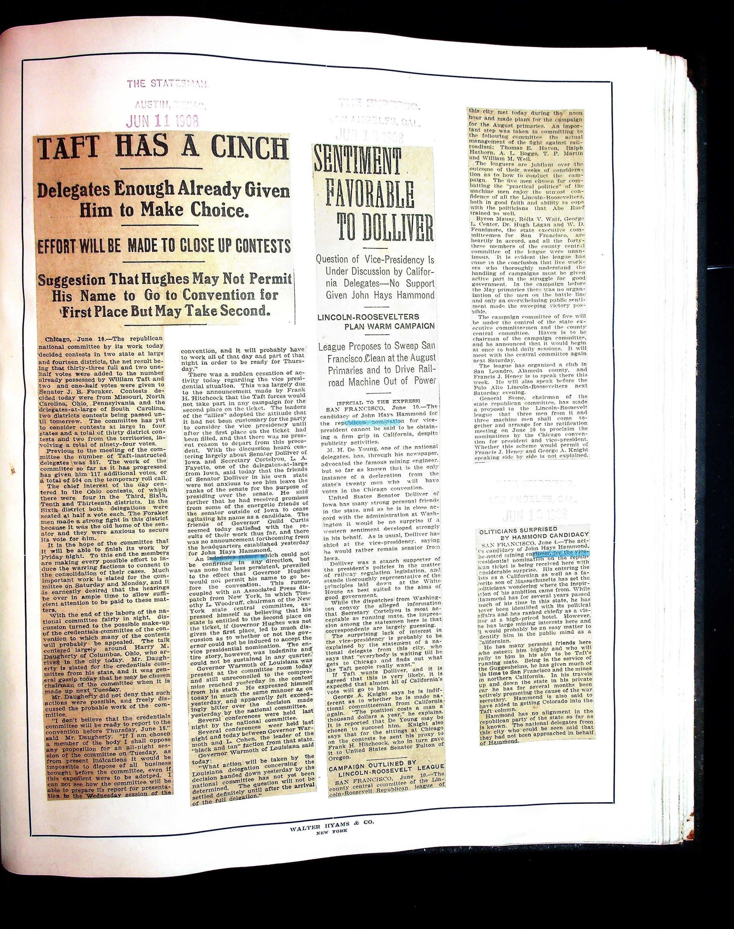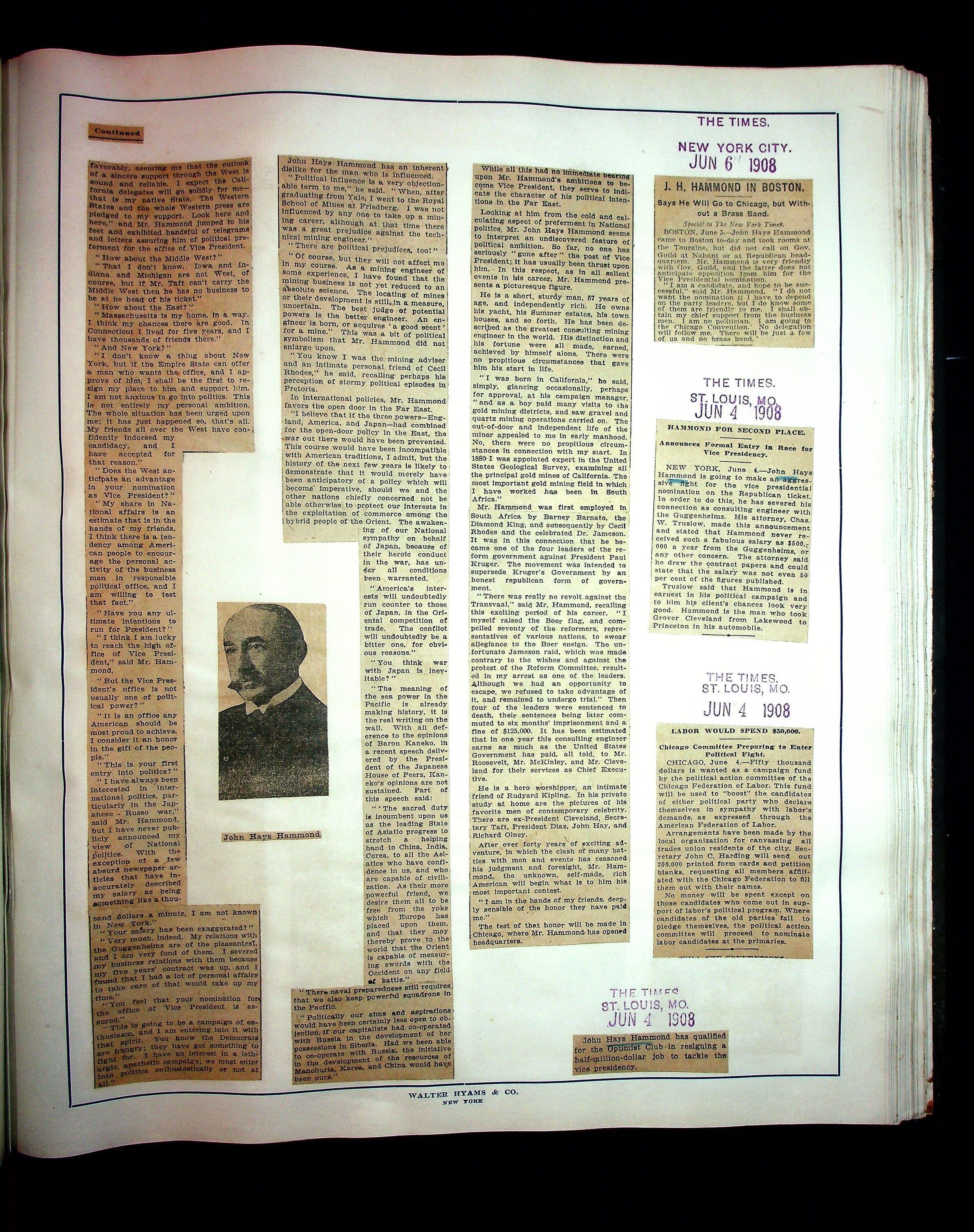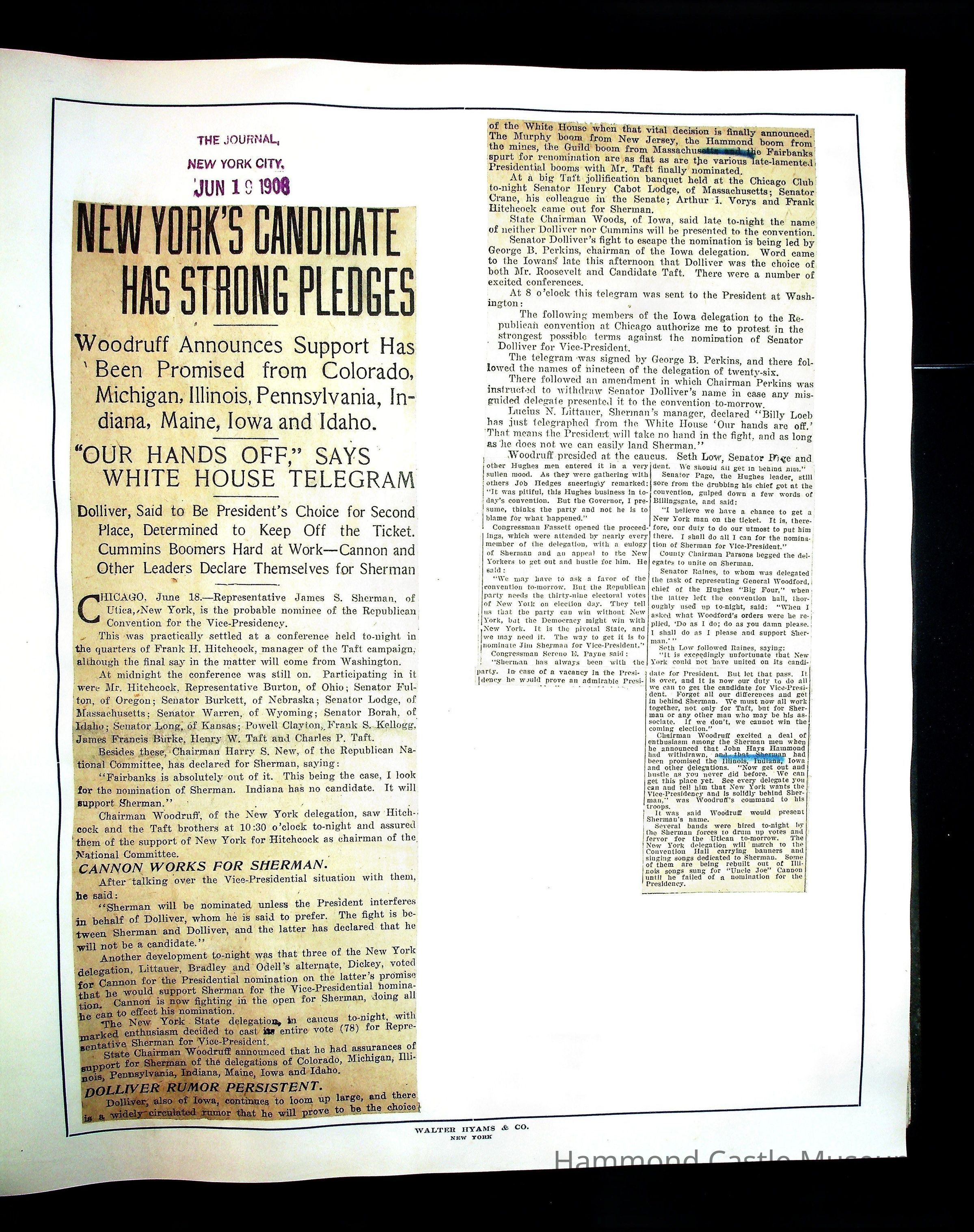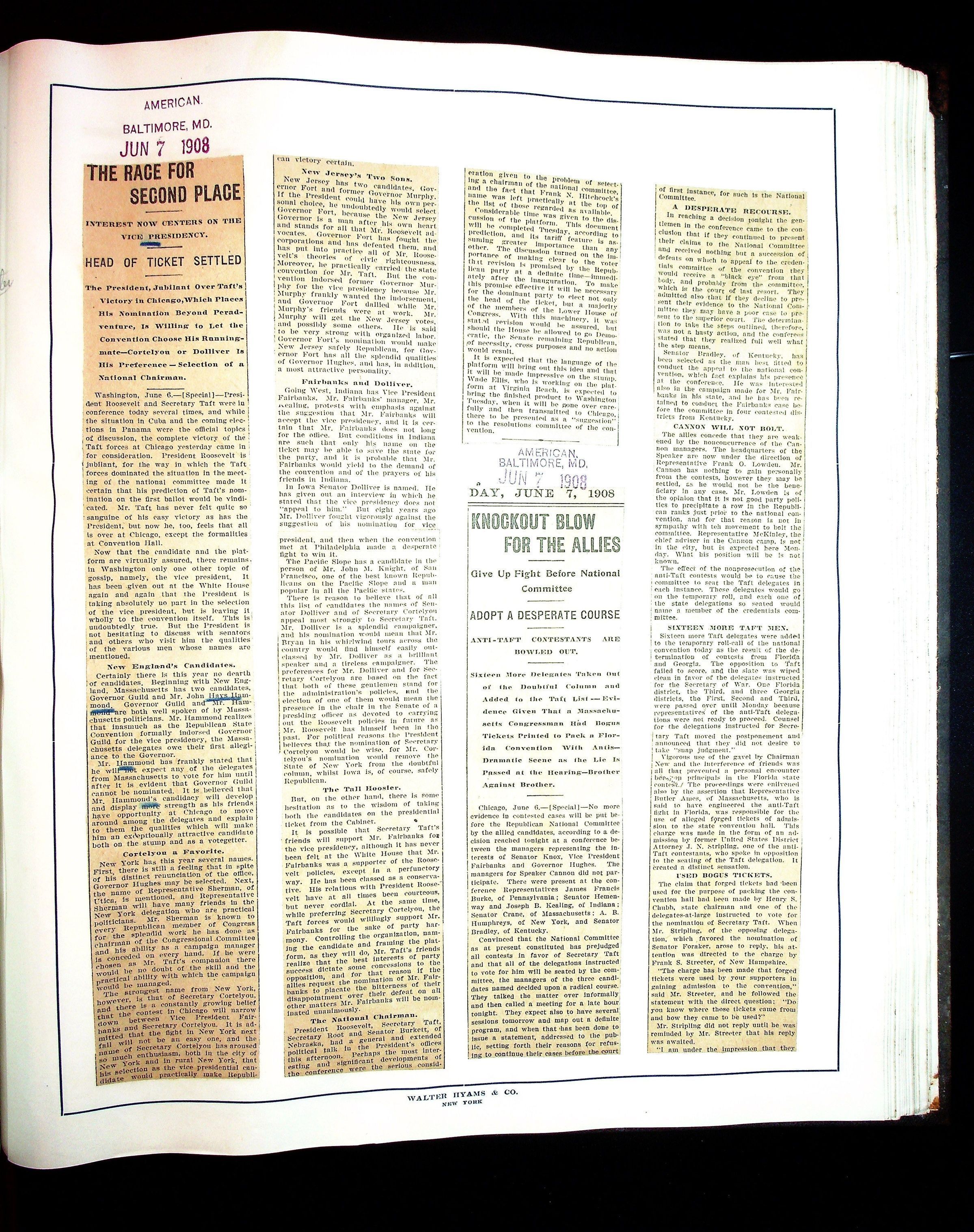 Articles & Images from Taft campaign & John Hays Hammond Sr vice-presidency run