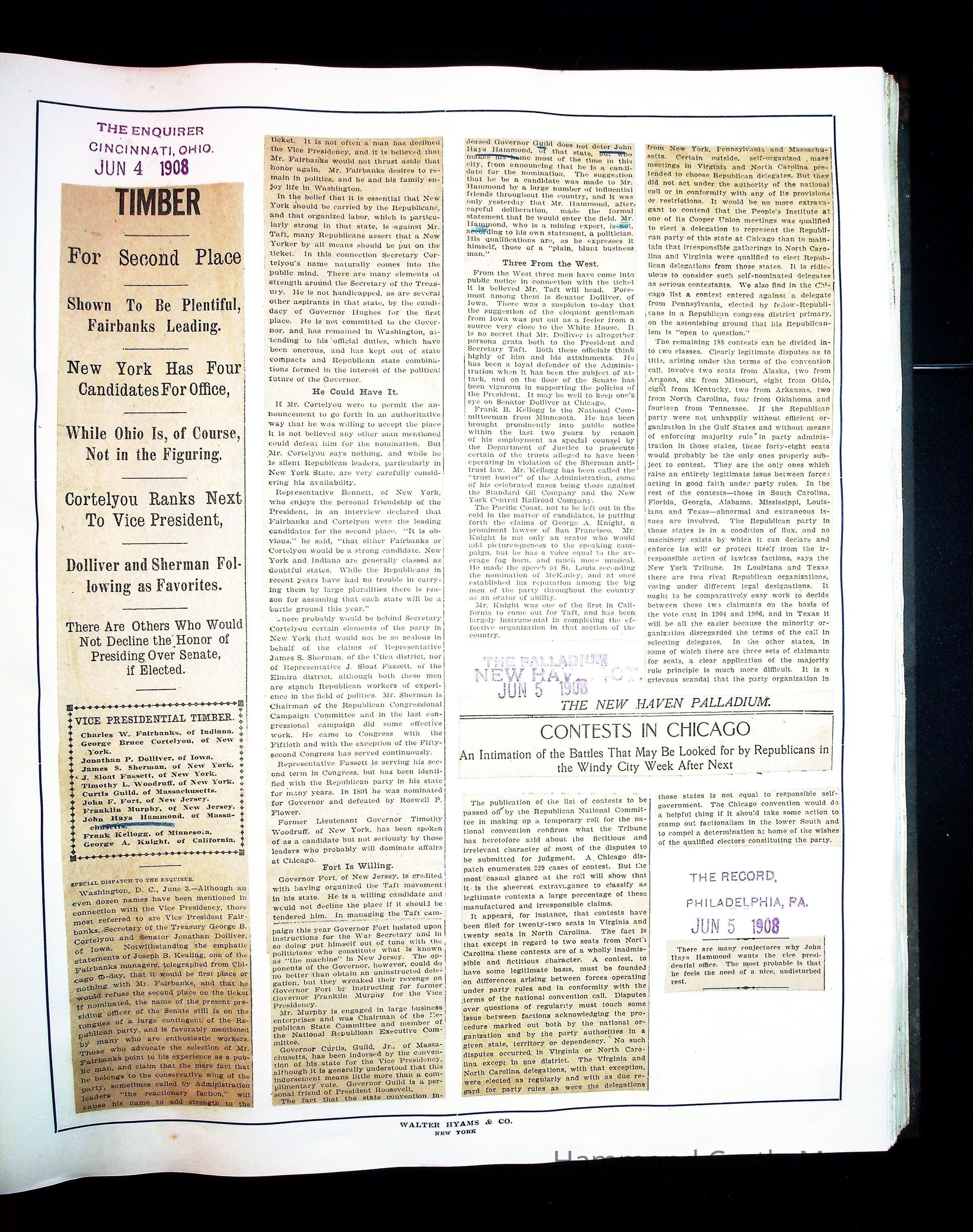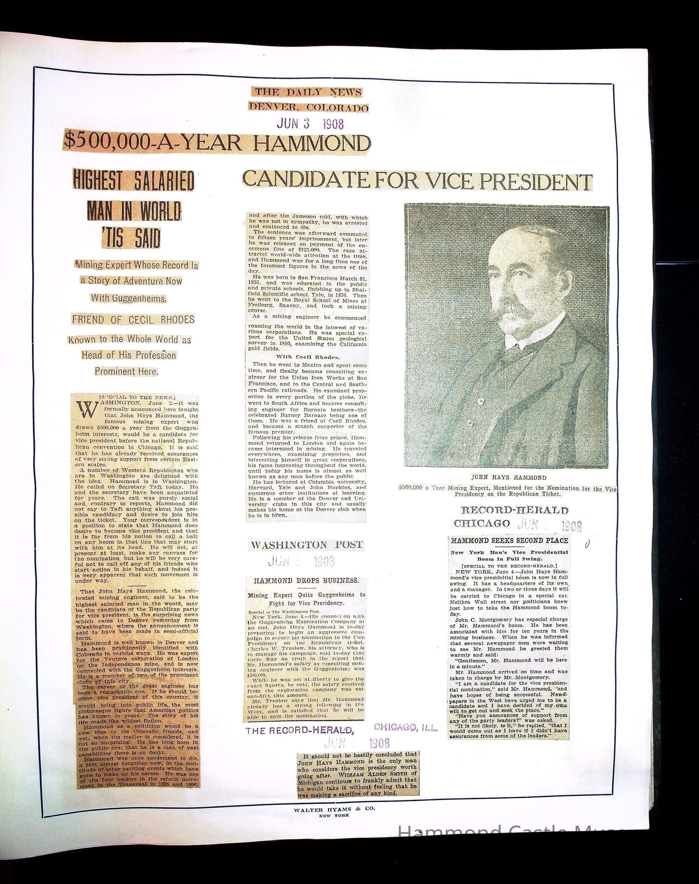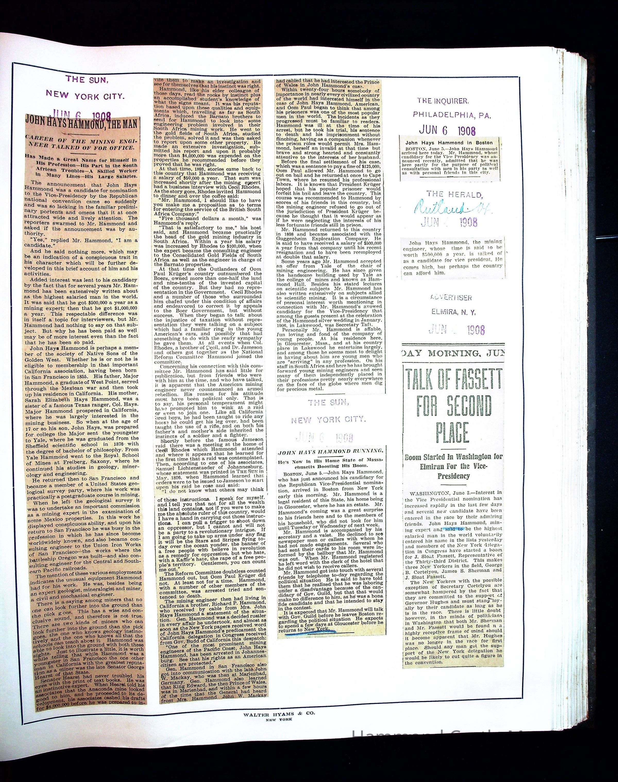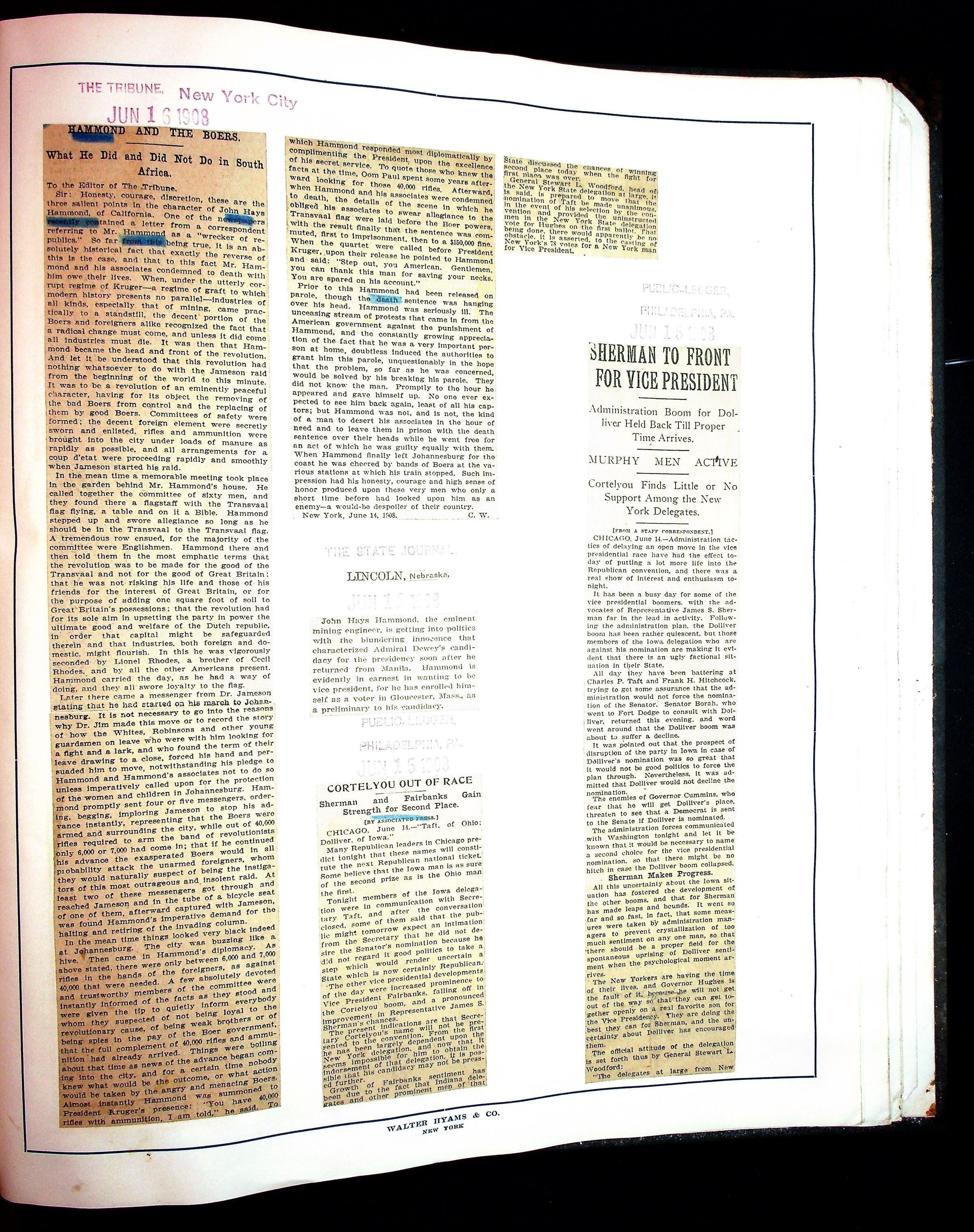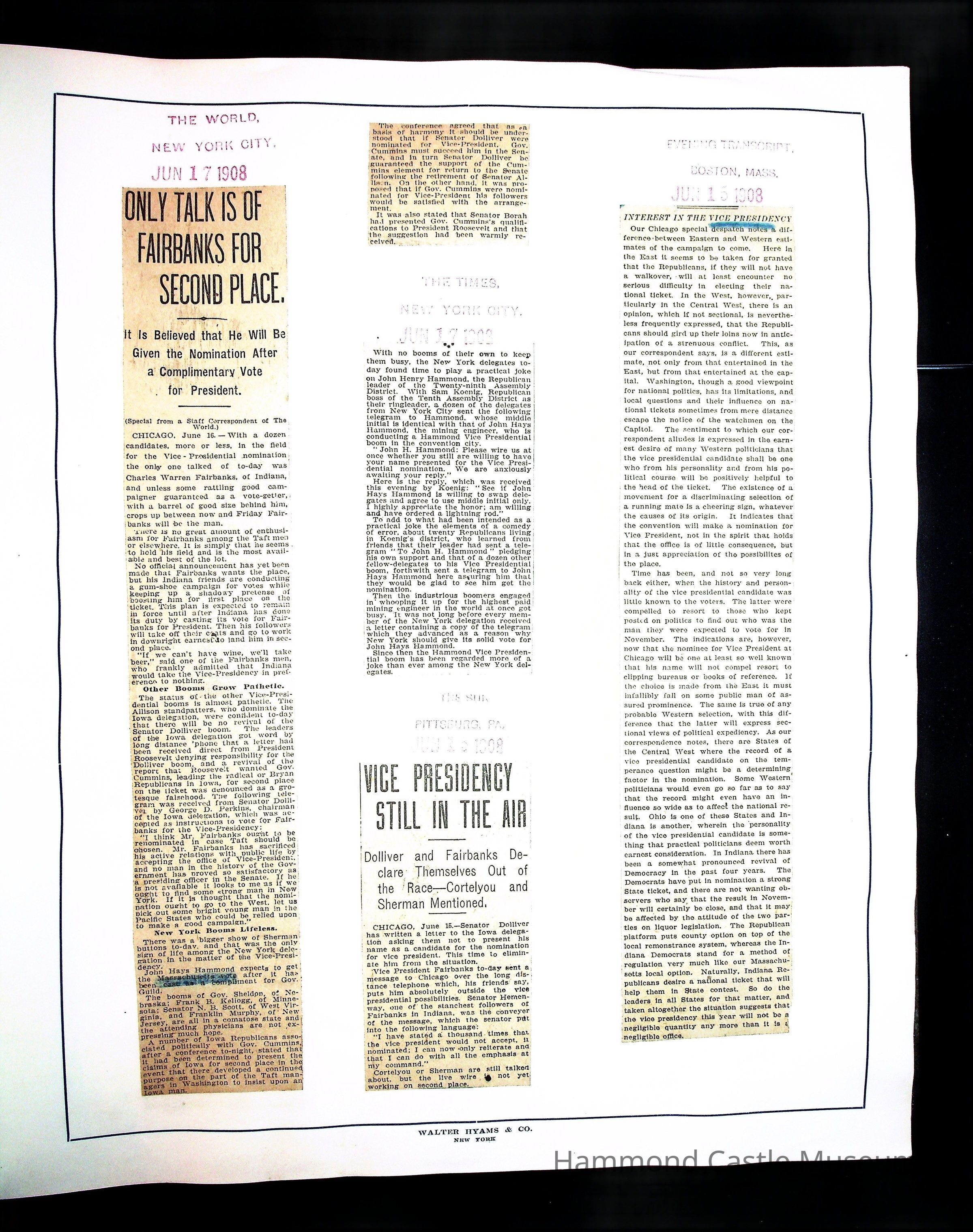 Articles & Images from Taft campaign & John Hays Hammond Sr vice-presidency run