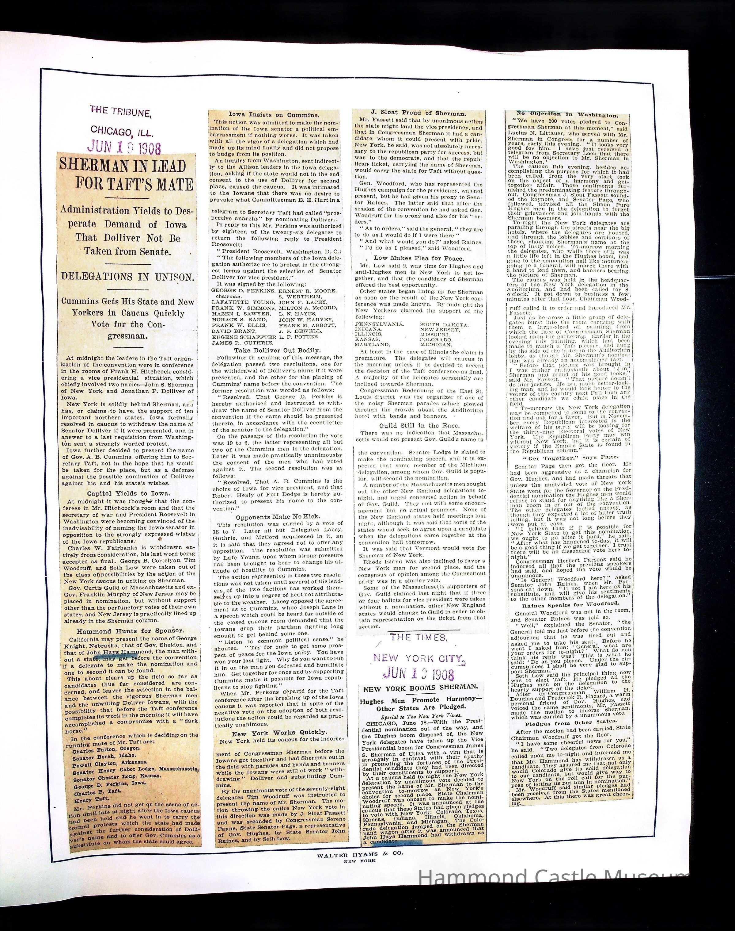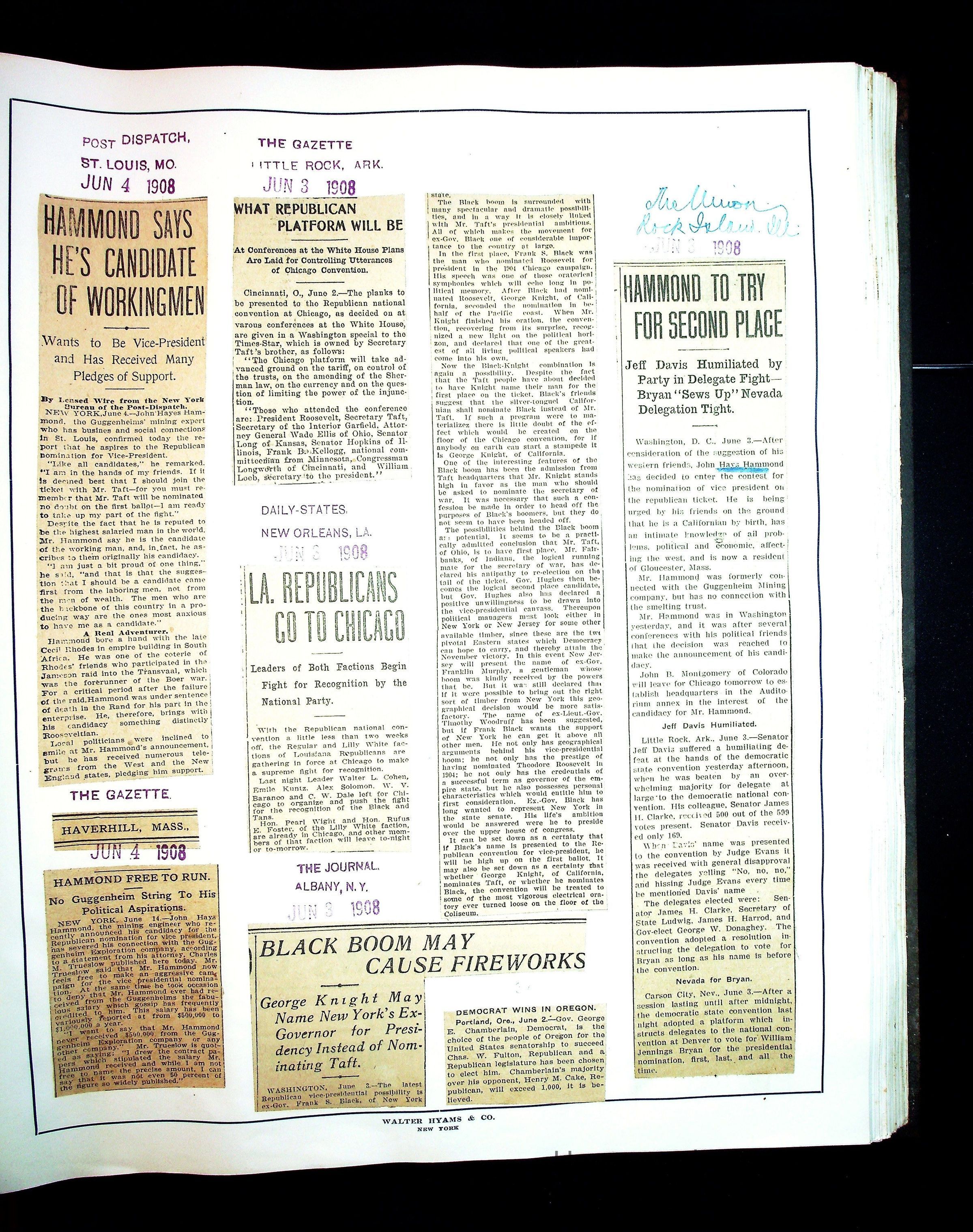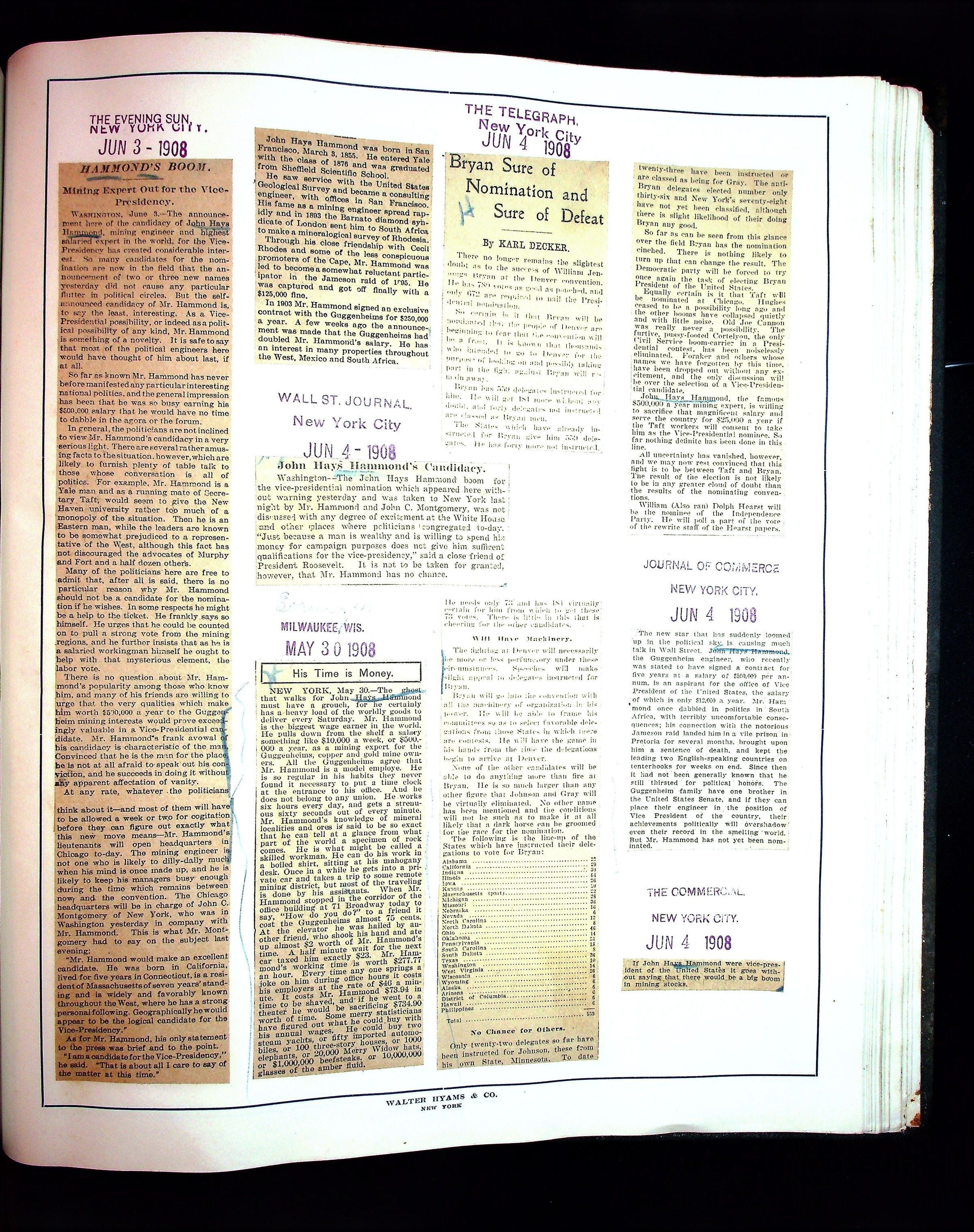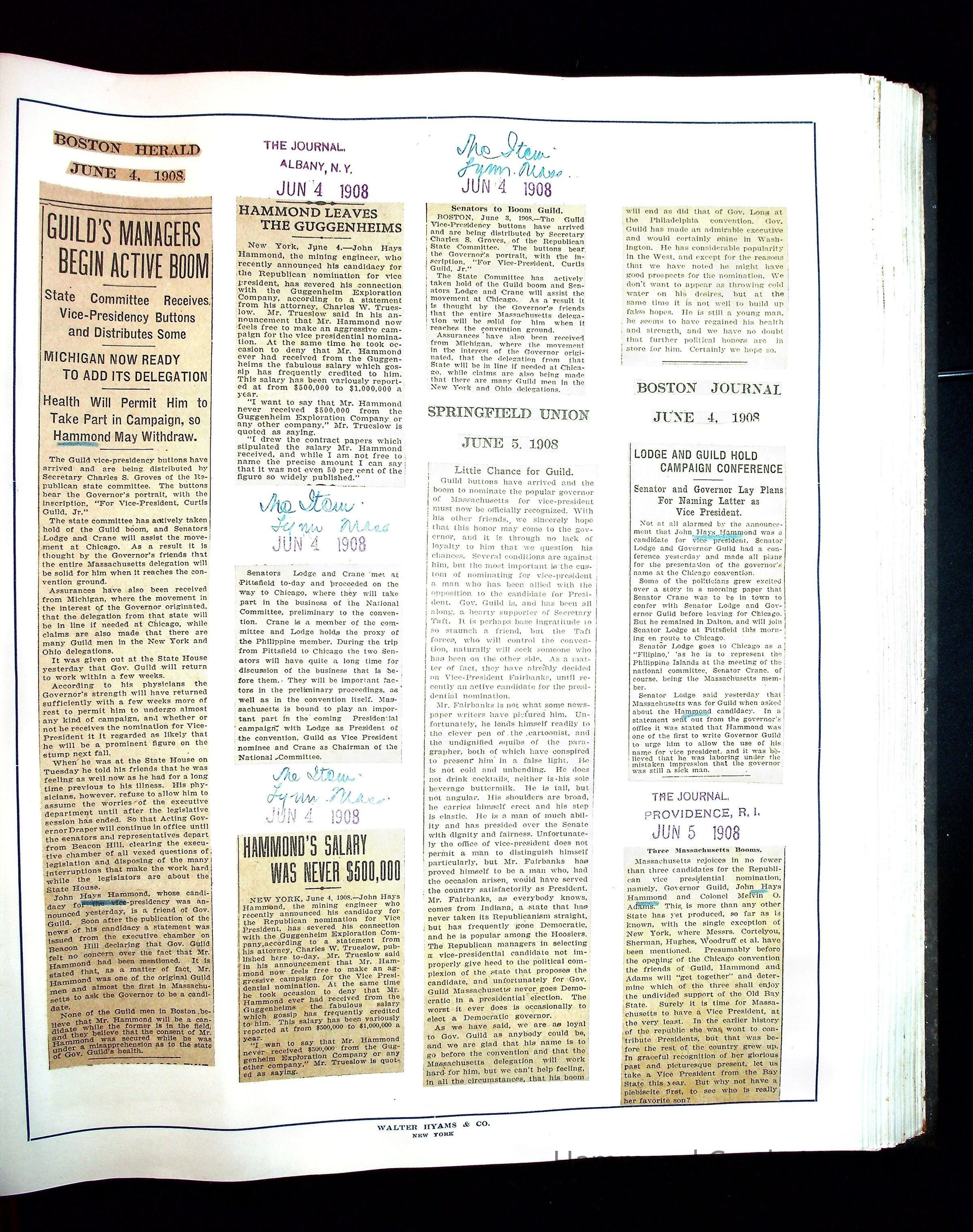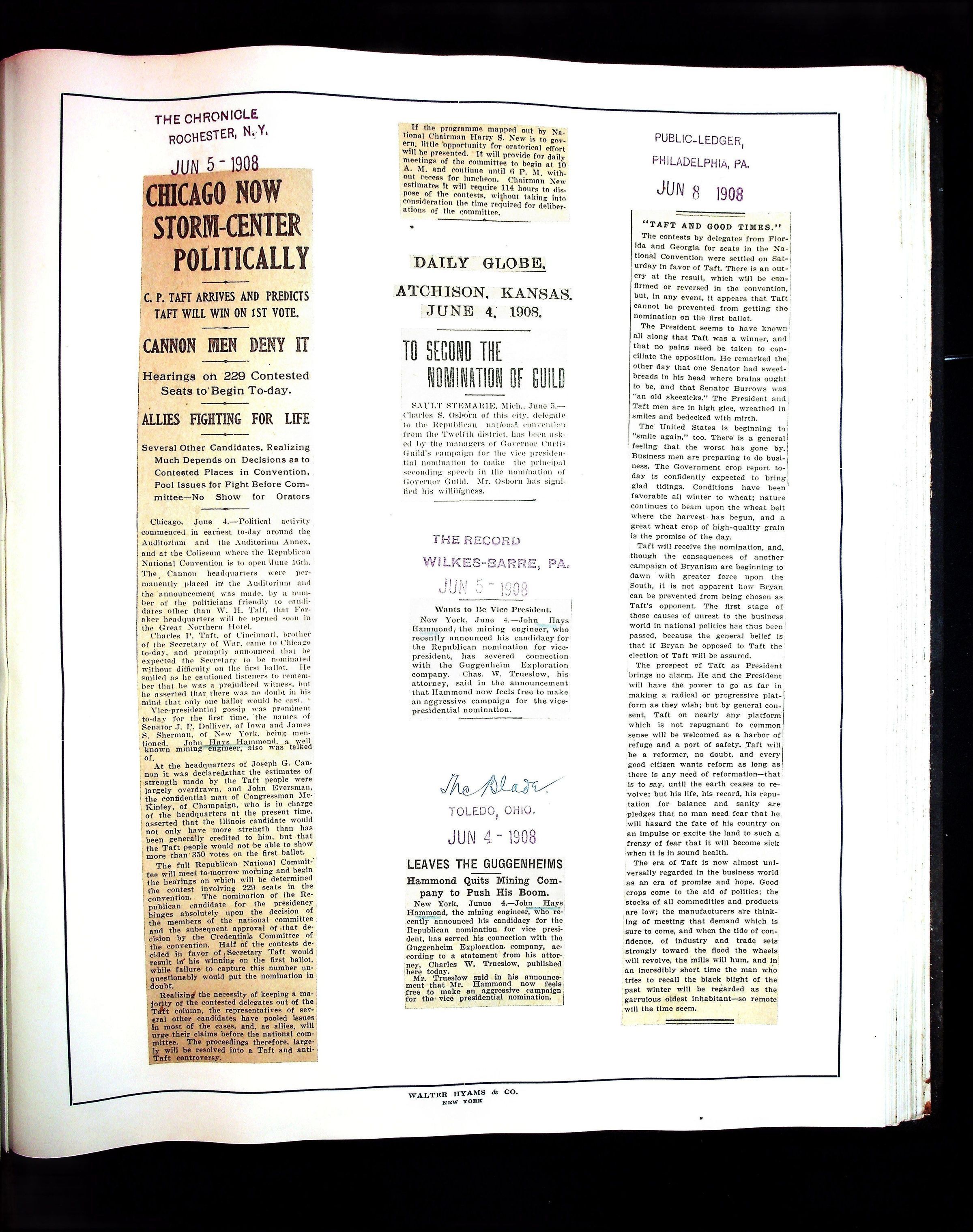 Articles & Images from Taft campaign & John Hays Hammond Sr vice-presidency run