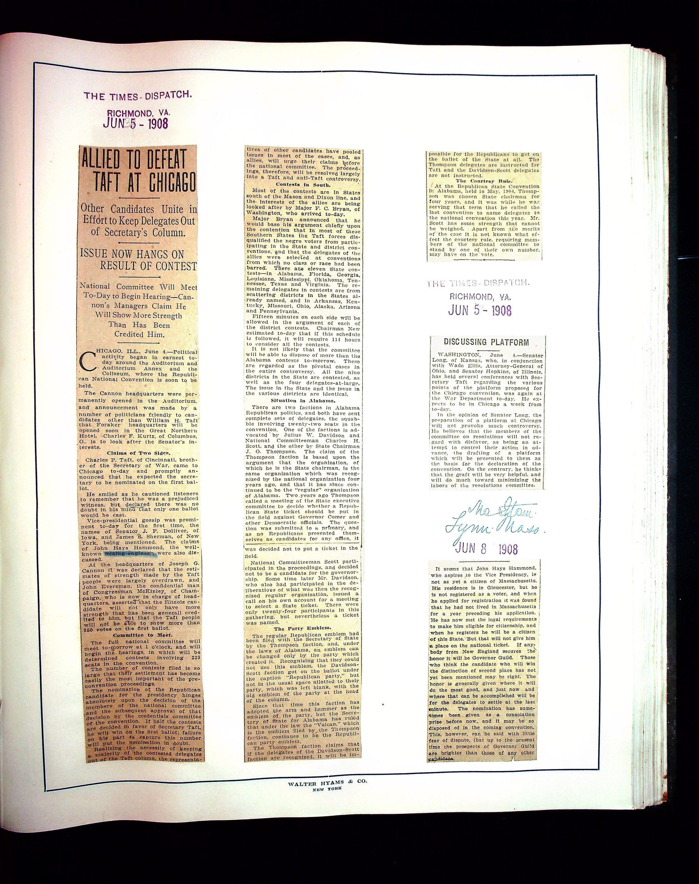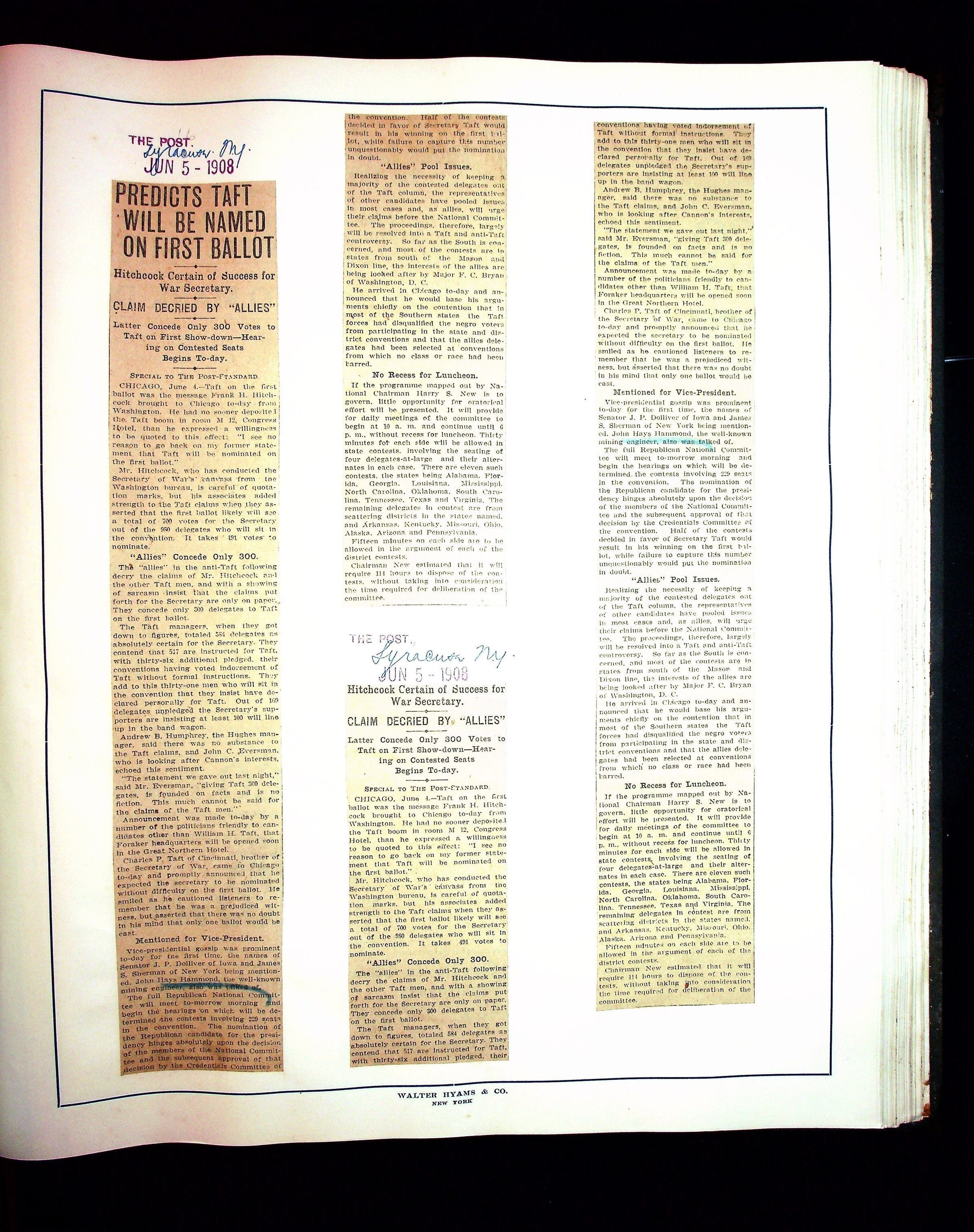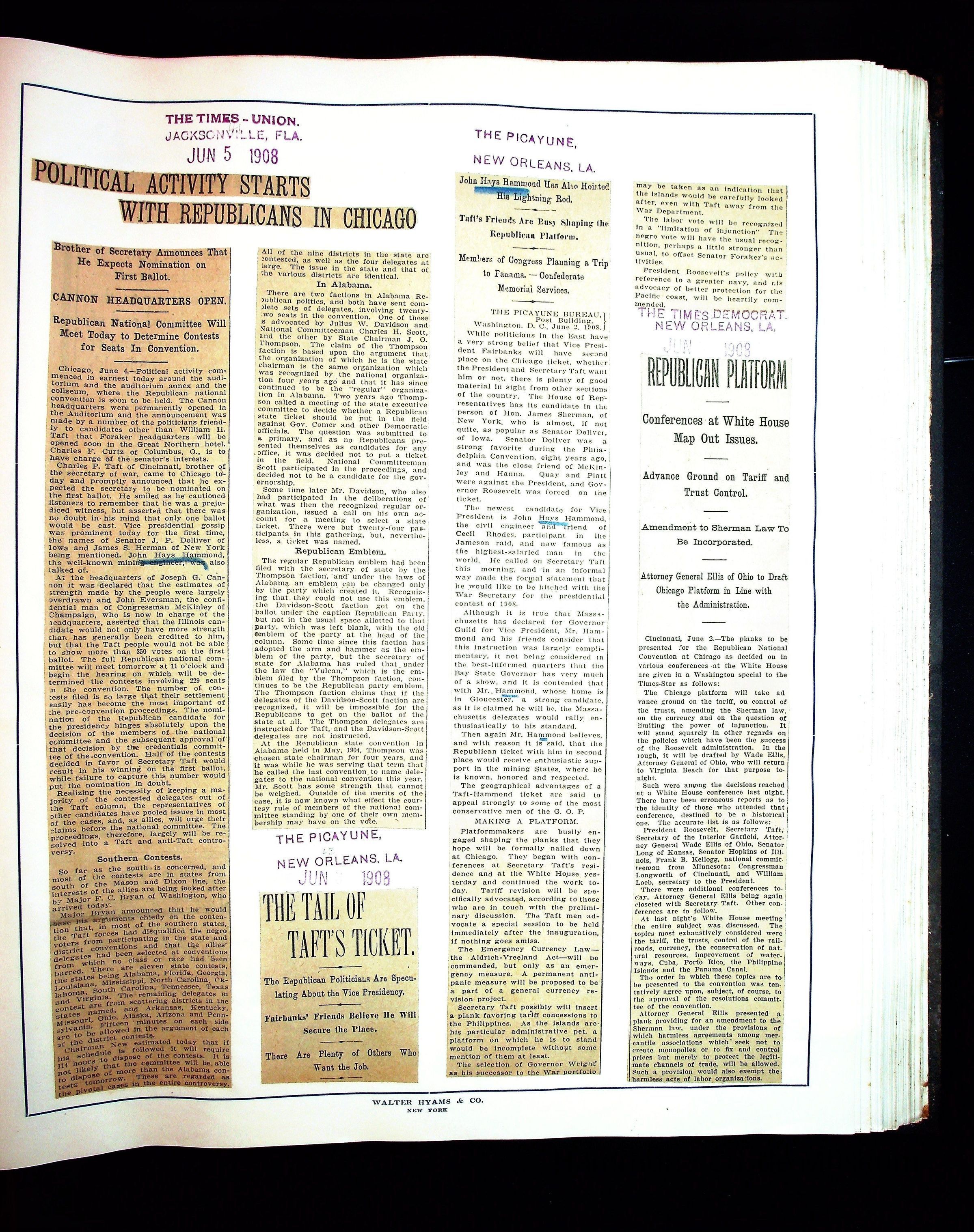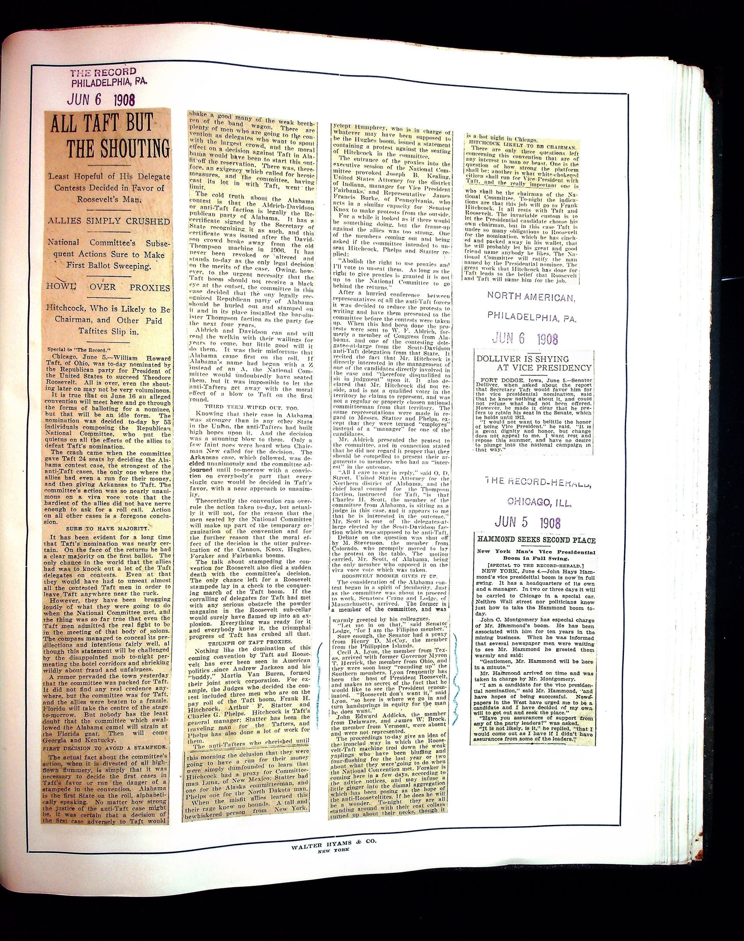 JHH 1908 Vol 1 - Taft Campaign ScrapbookEntry/Object ID