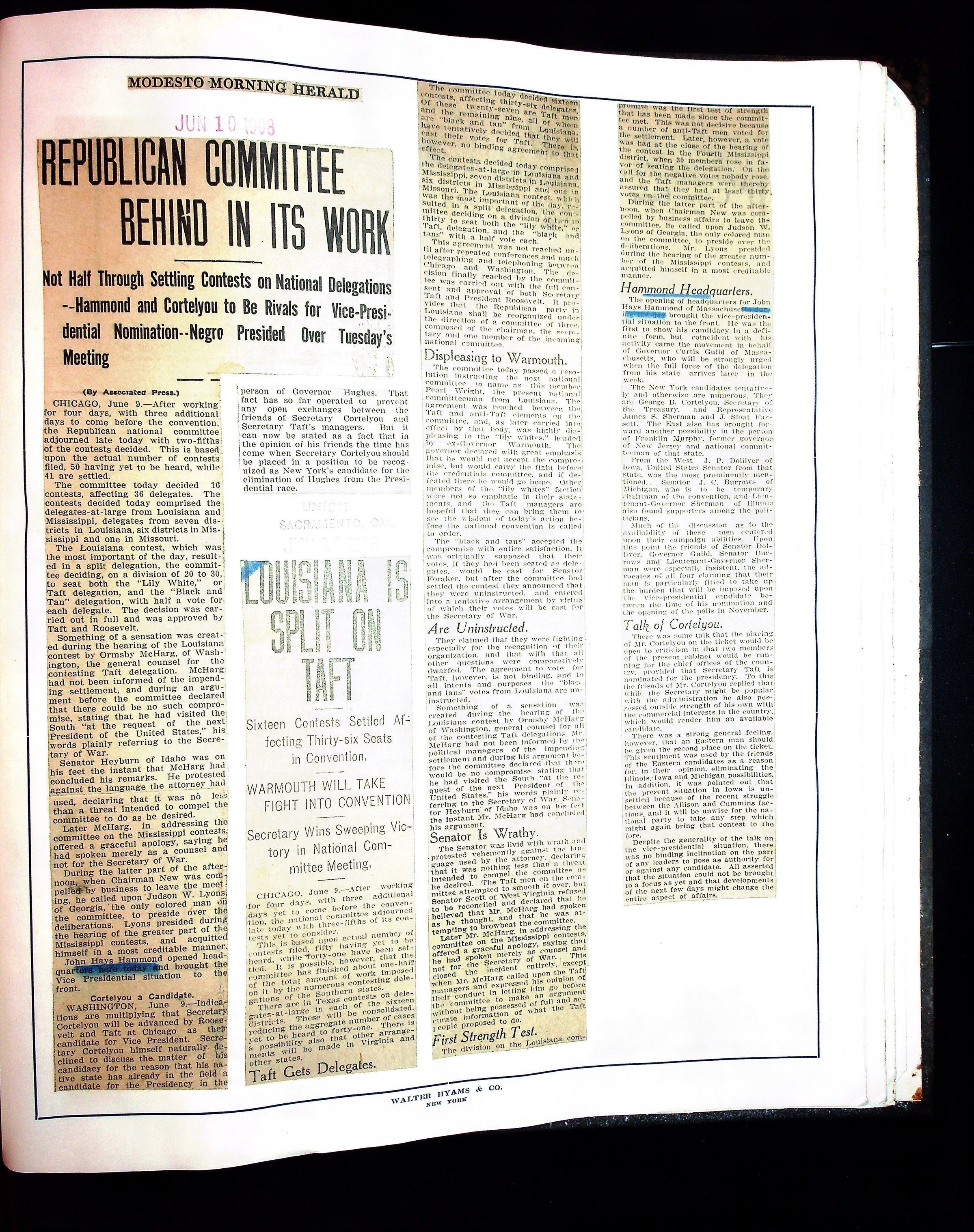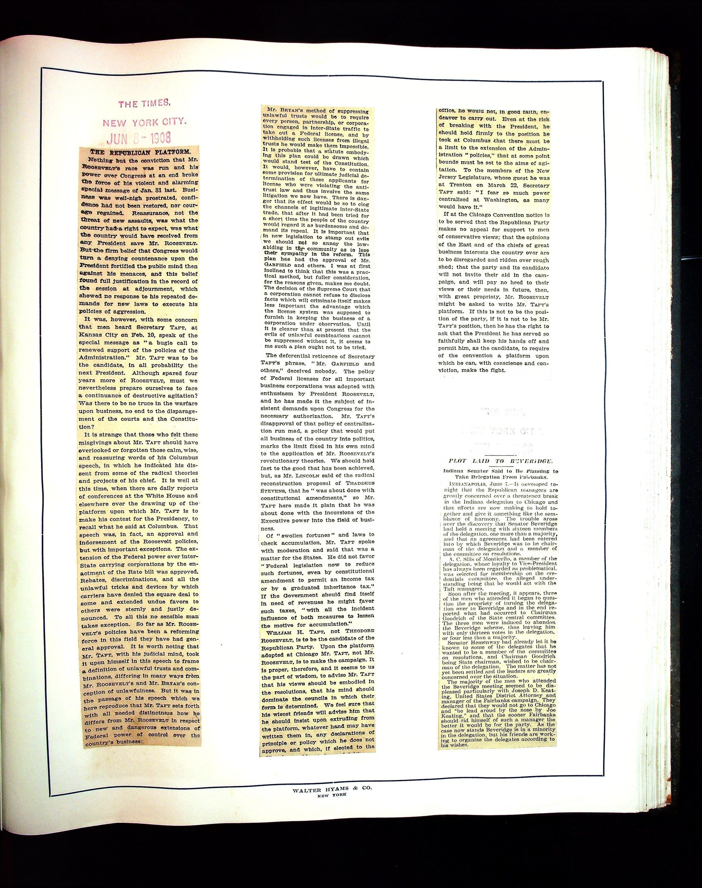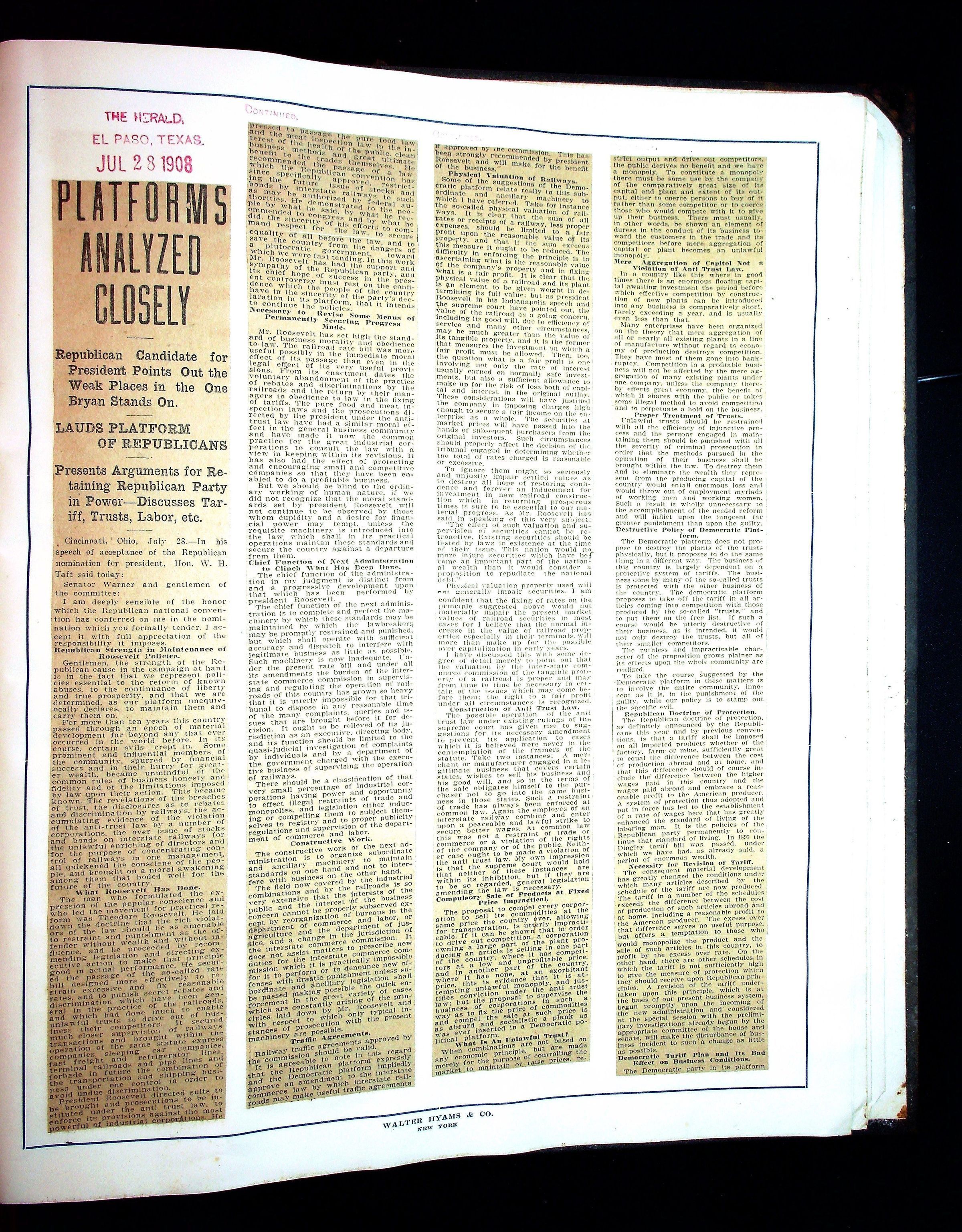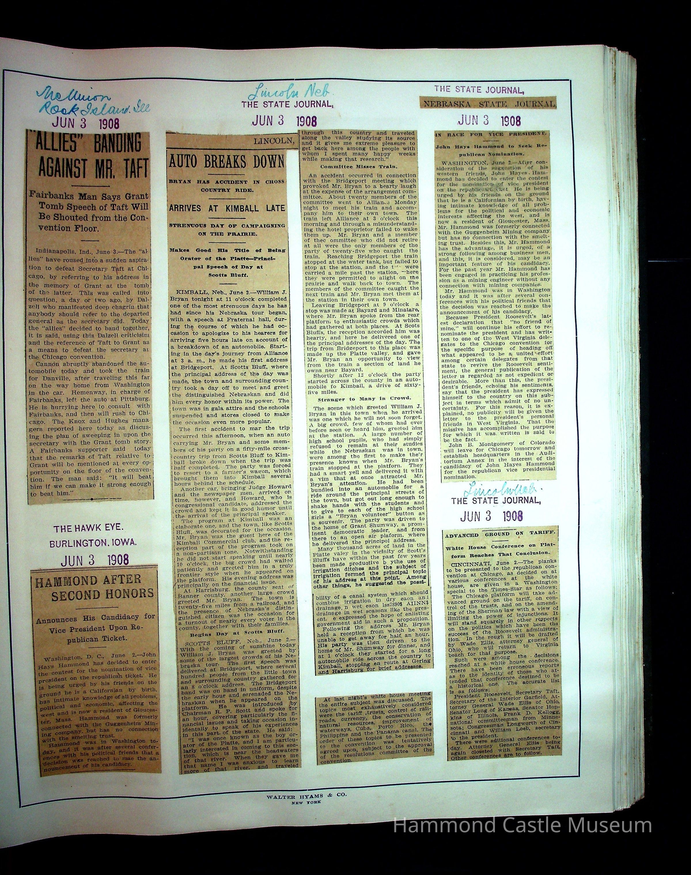 JHH 1908 Vol 1 - Taft Campaign ScrapbookEntry/Object ID