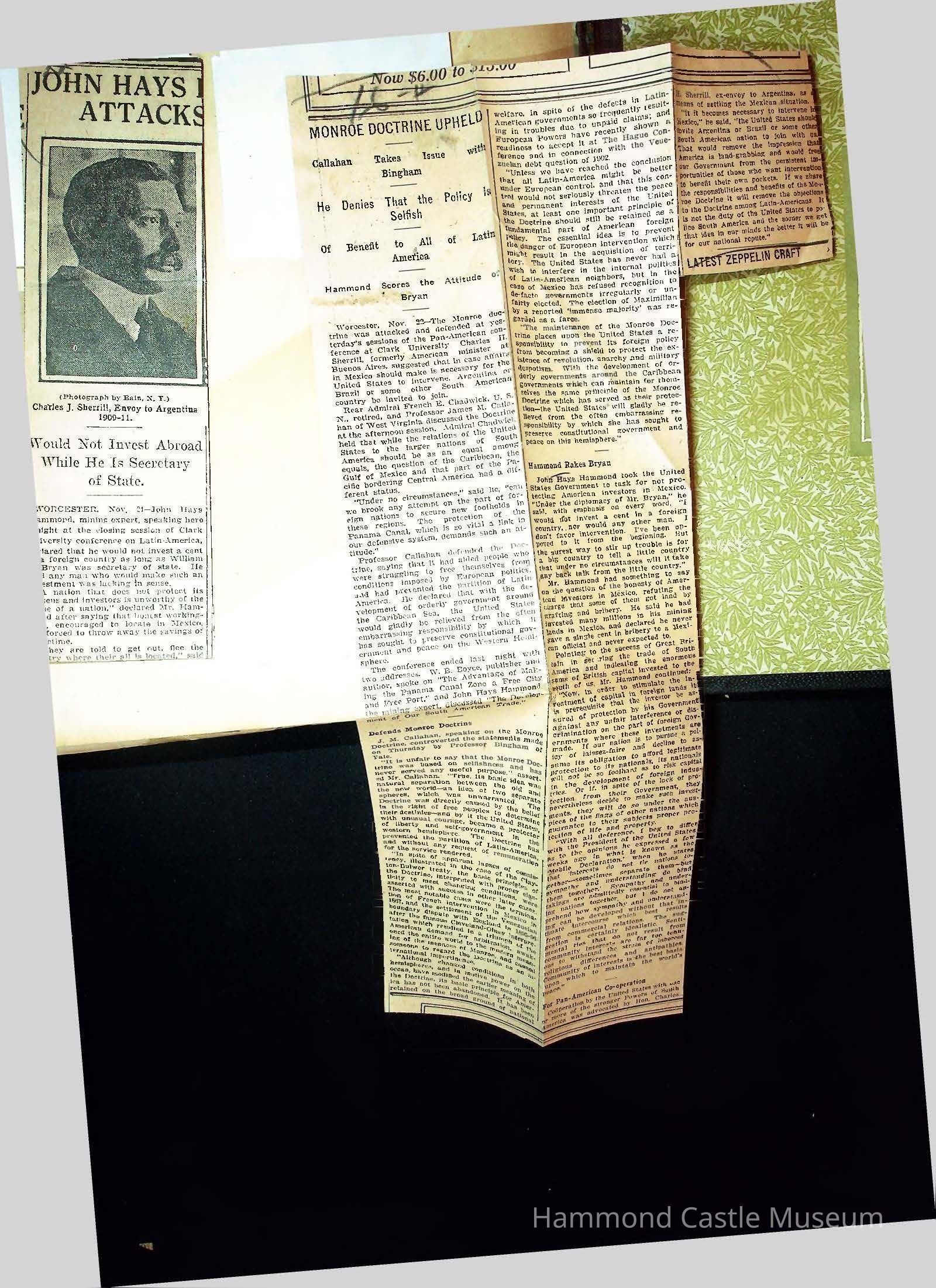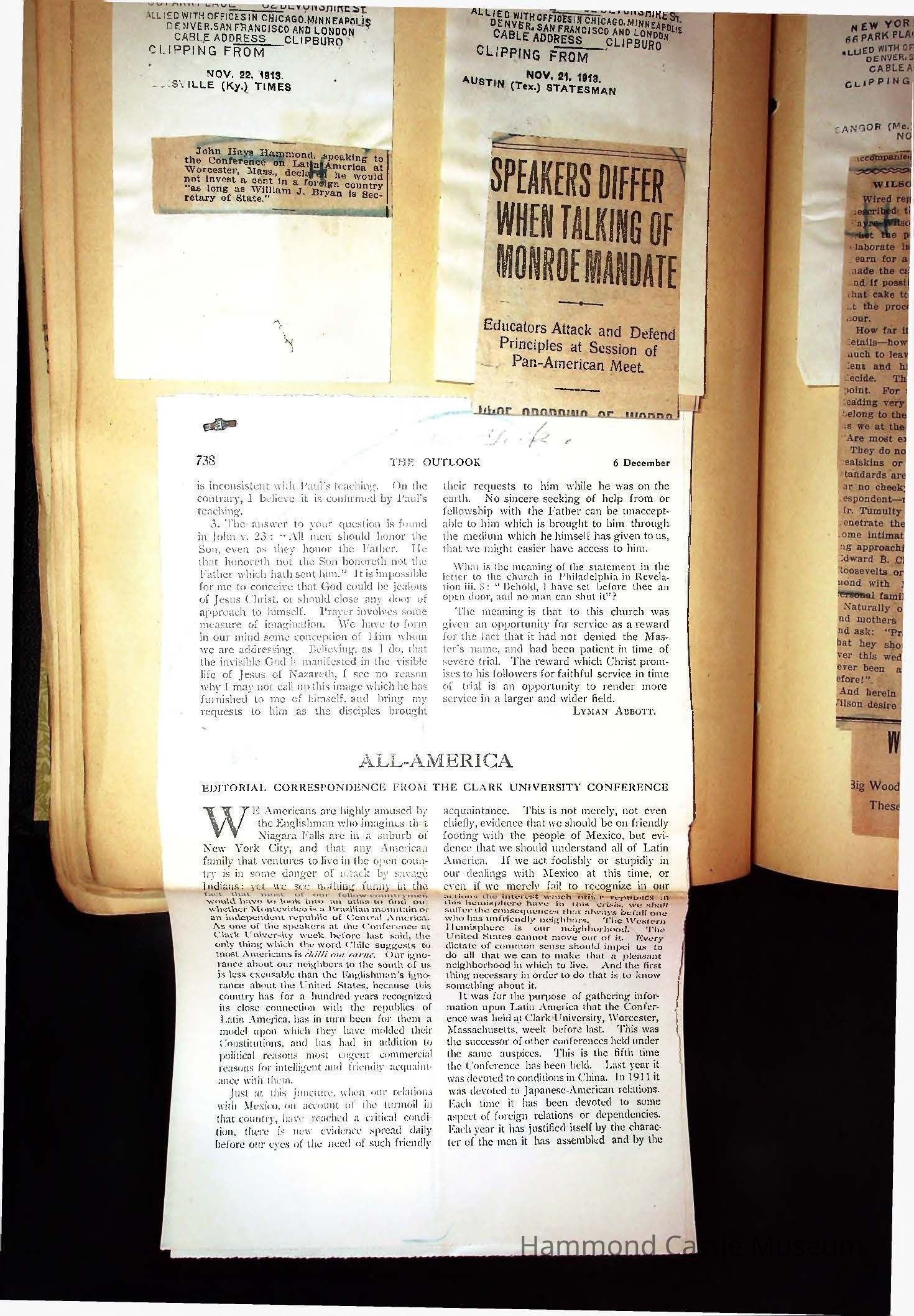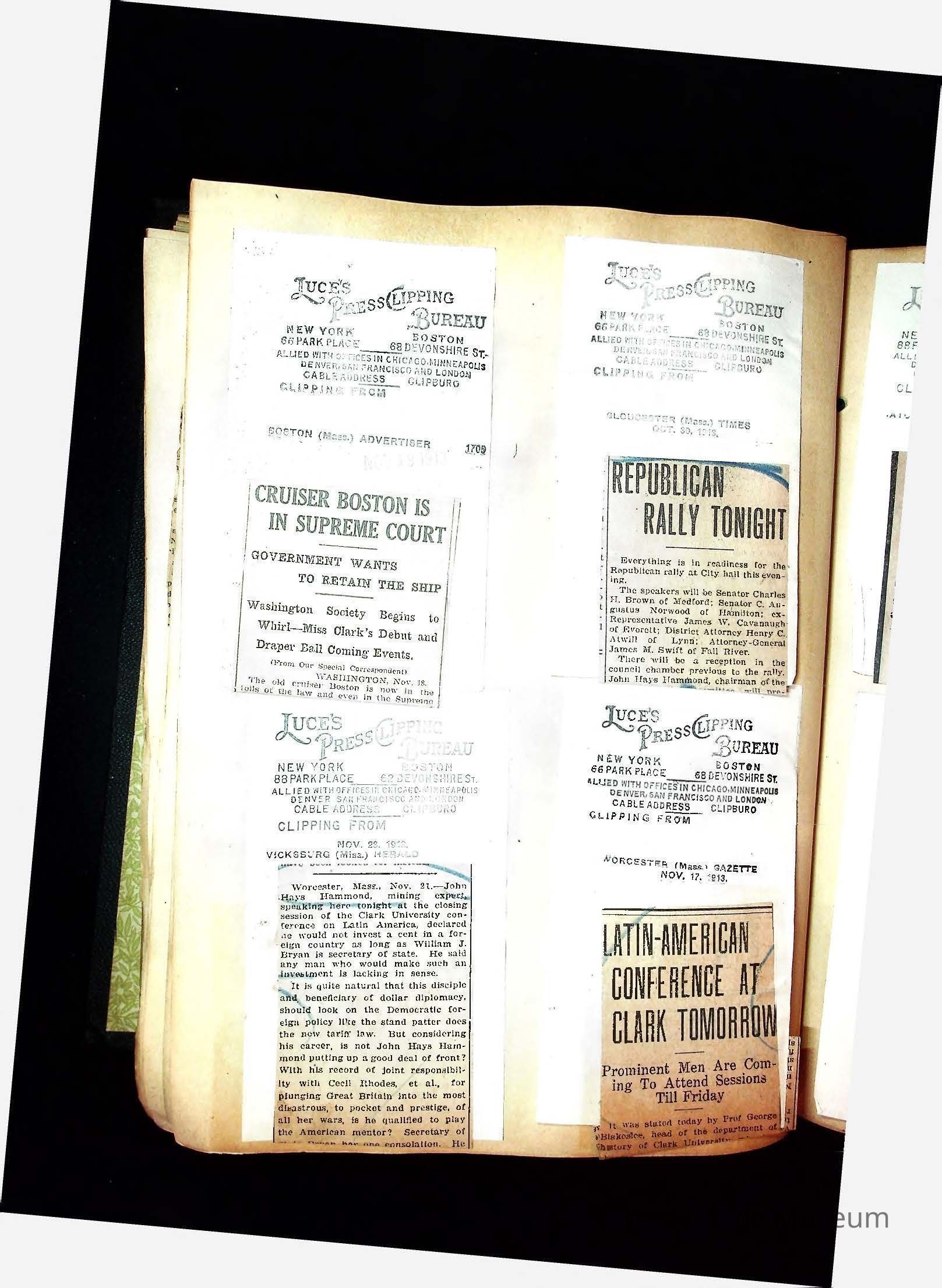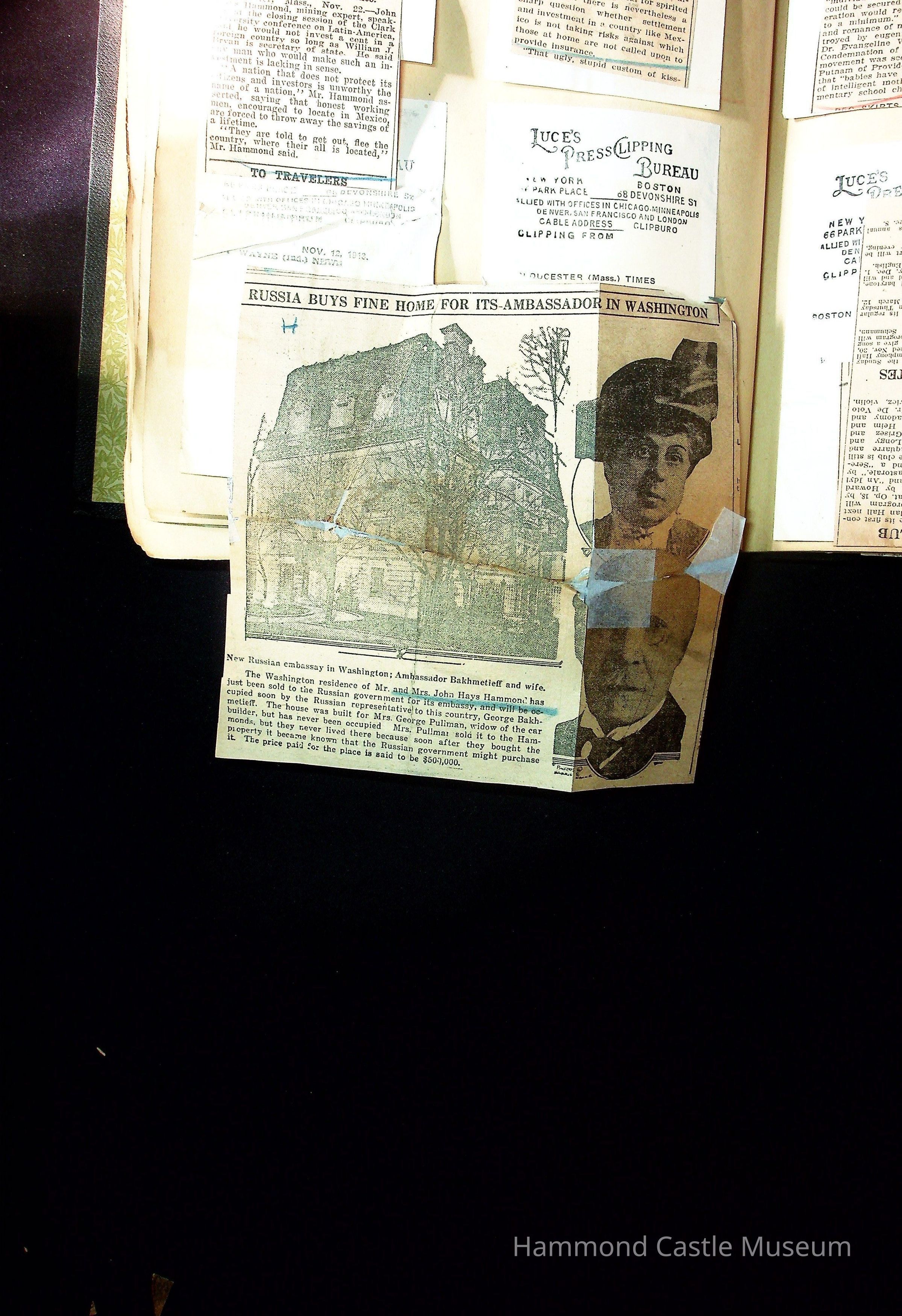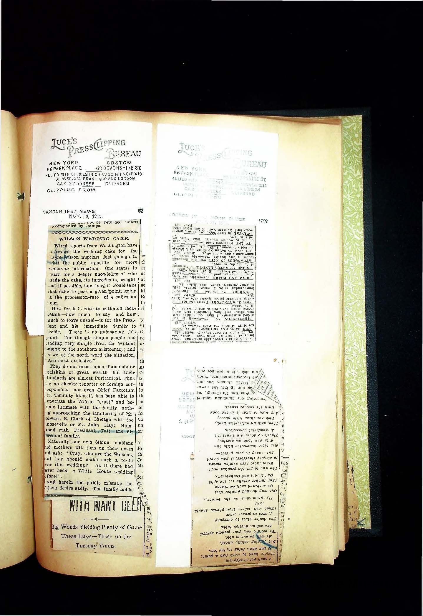 1913 scrapbook of newspaper articles about John Hays Hammond (Sr) and Mrs. Hammond covering governmental policies, Sherman Act, Eugenics & politics.