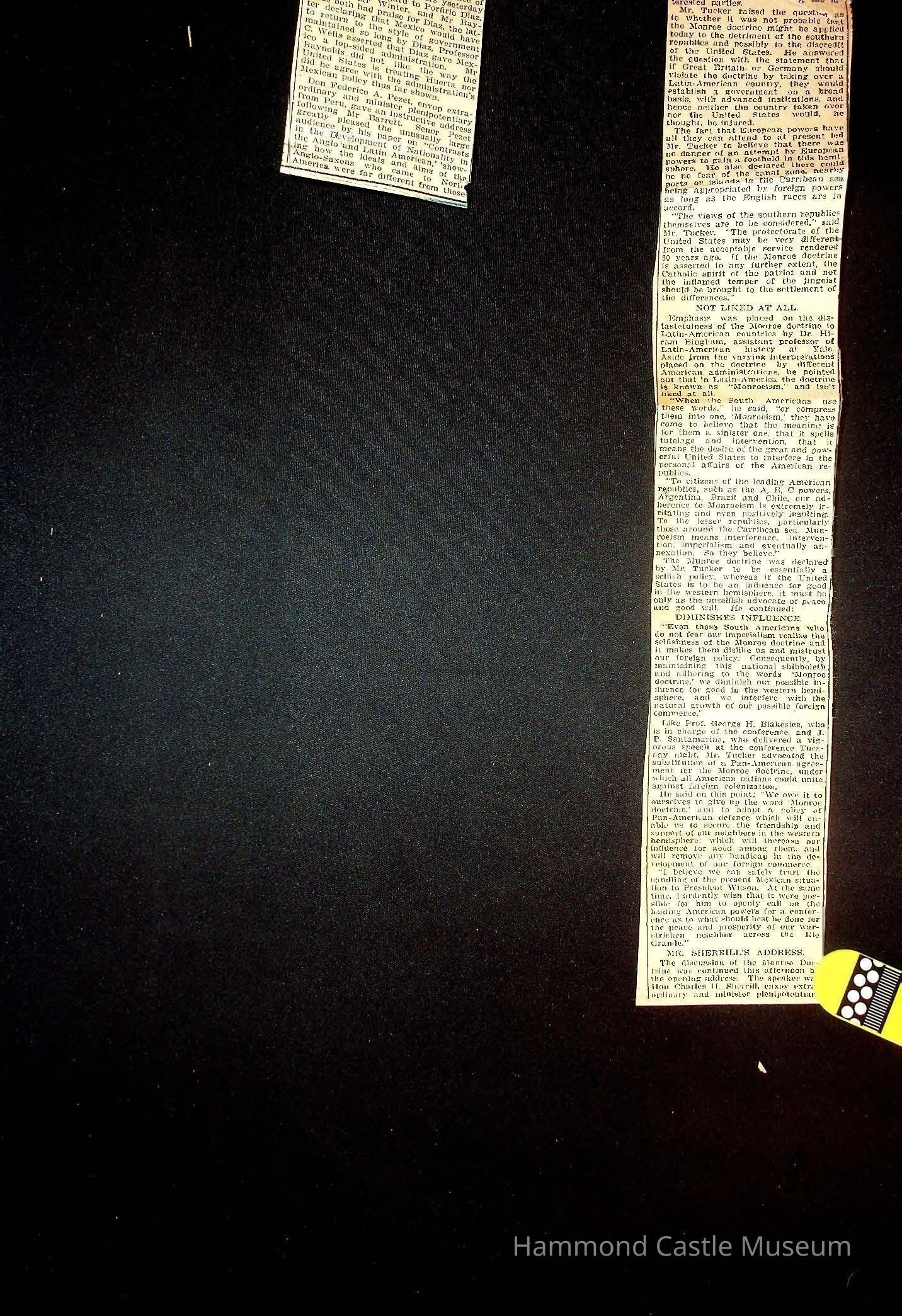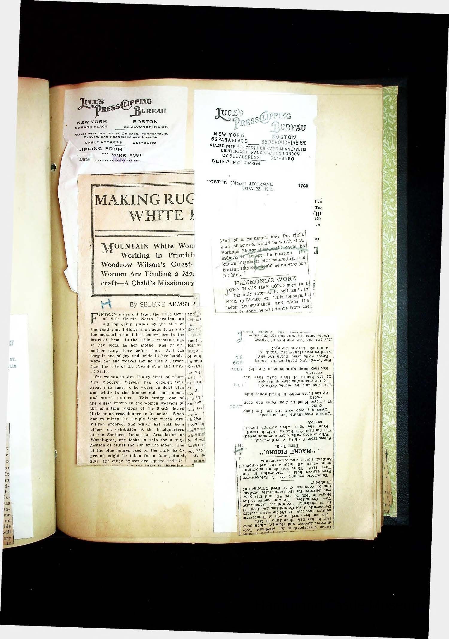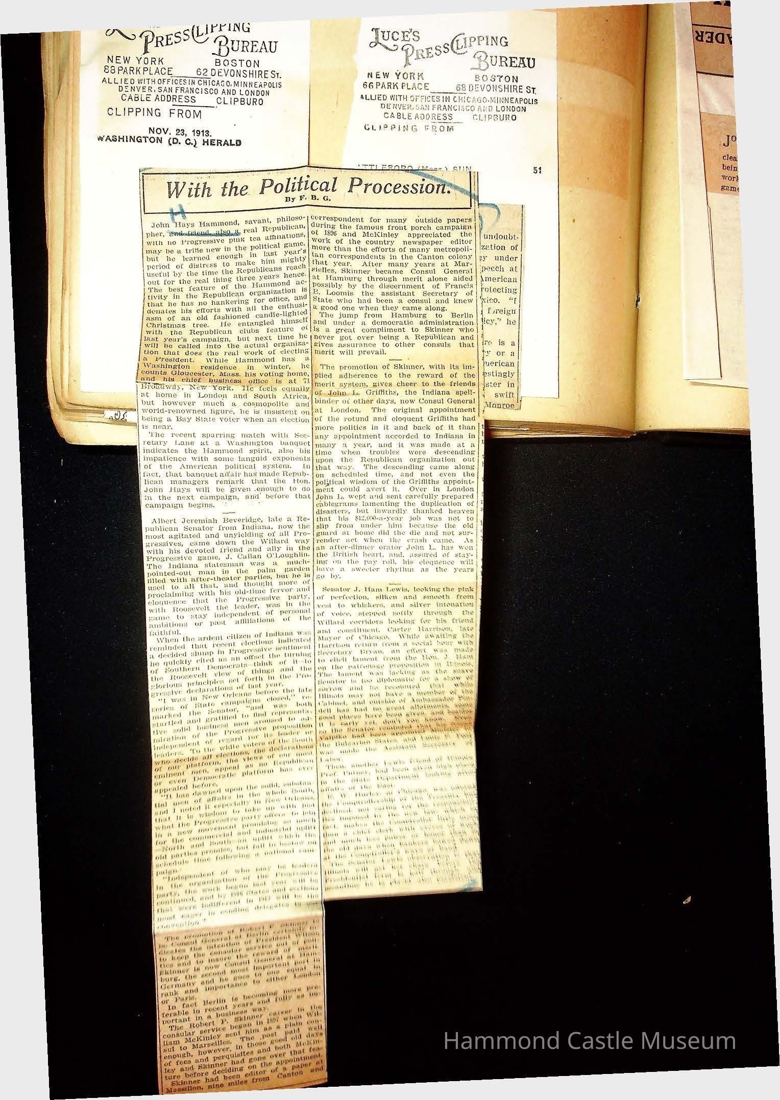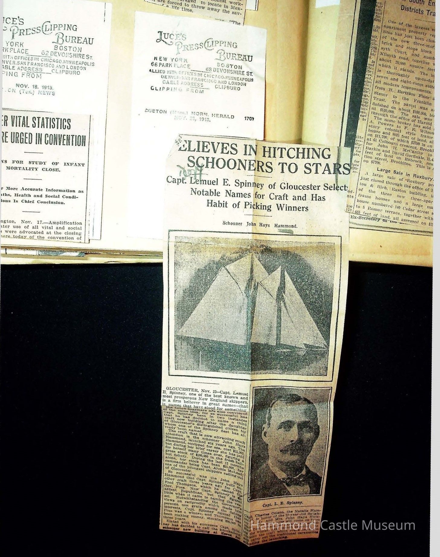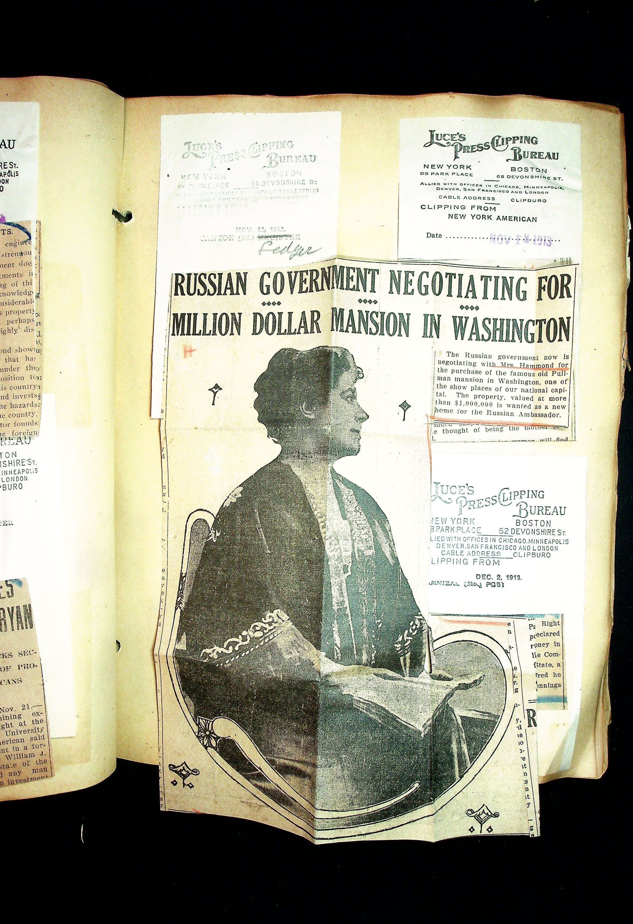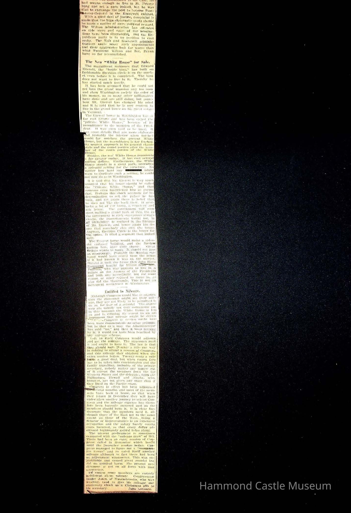 1913 scrapbook of newspaper articles about John Hays Hammond (Sr) and Mrs. Hammond covering governmental policies, Sherman Act, Eugenics & politics.