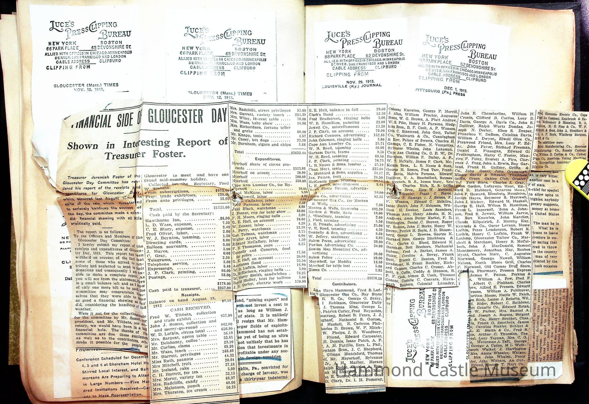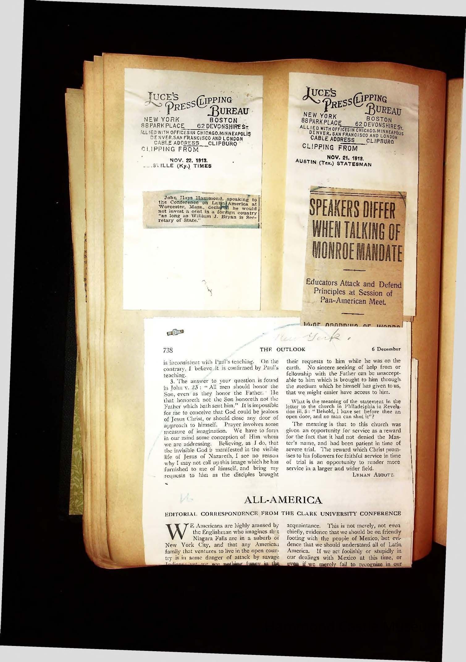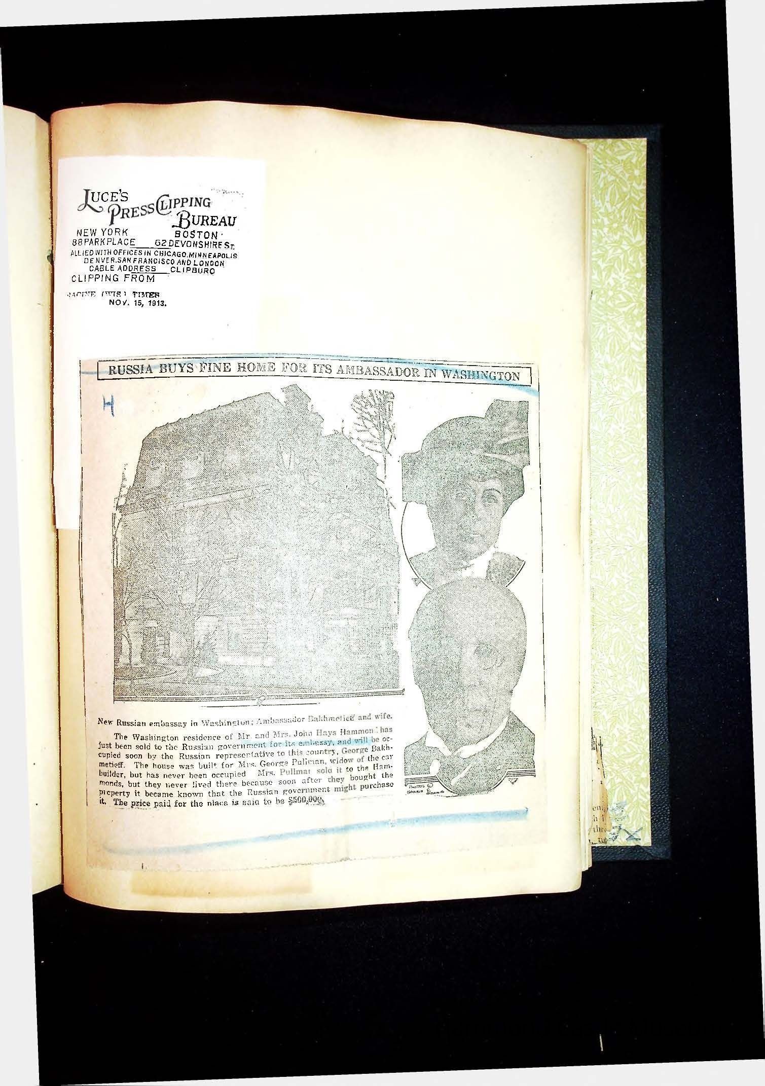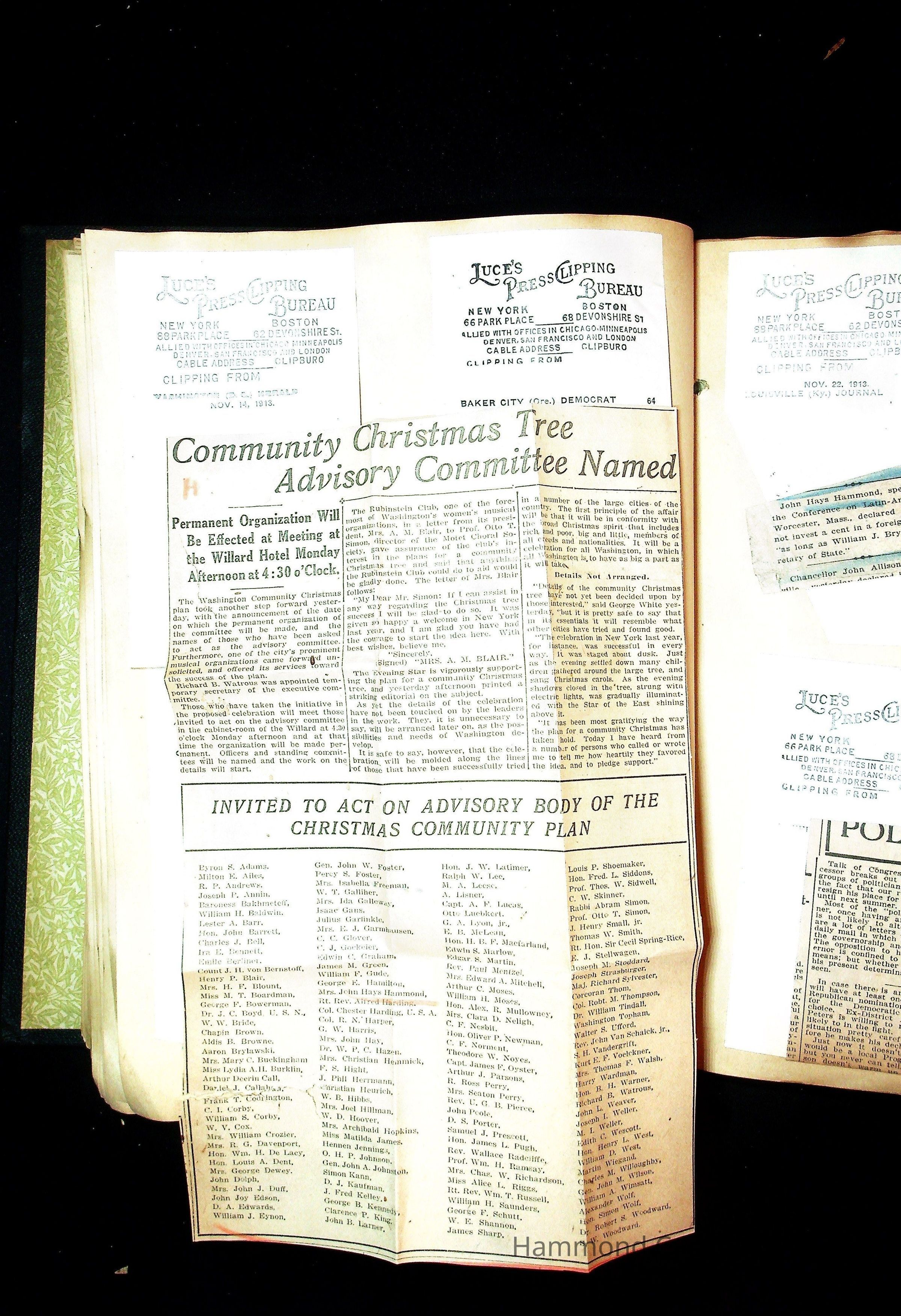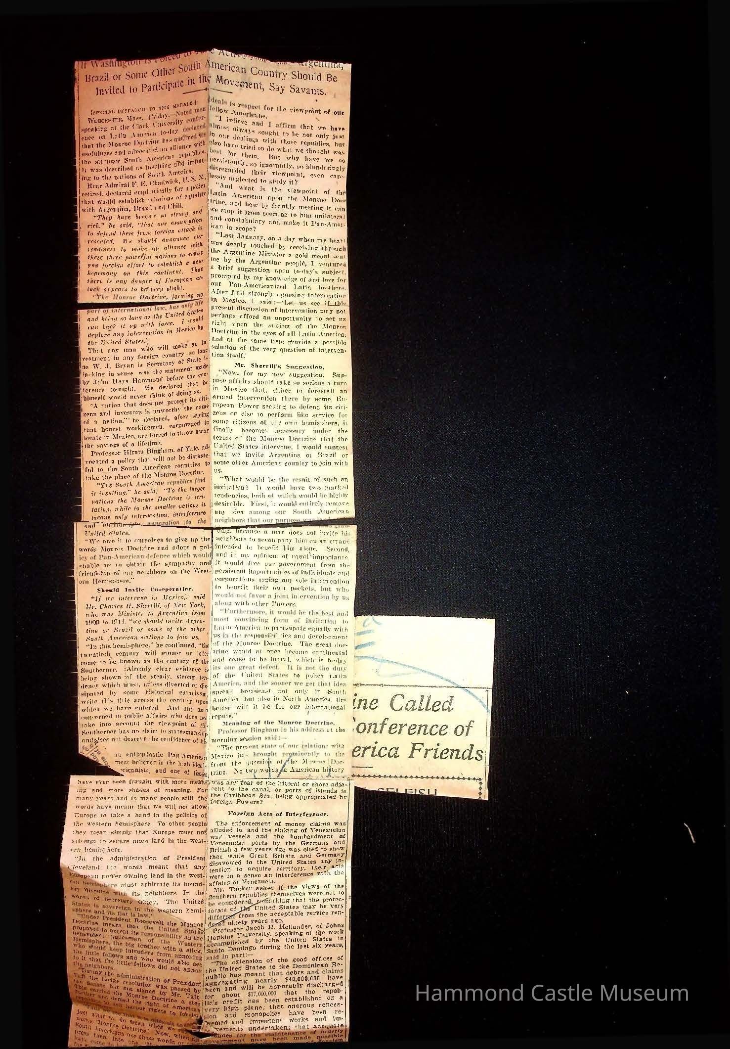 1913 scrapbook of newspaper articles about John Hays Hammond (Sr) and Mrs. Hammond covering governmental policies, Sherman Act, Eugenics & politics.