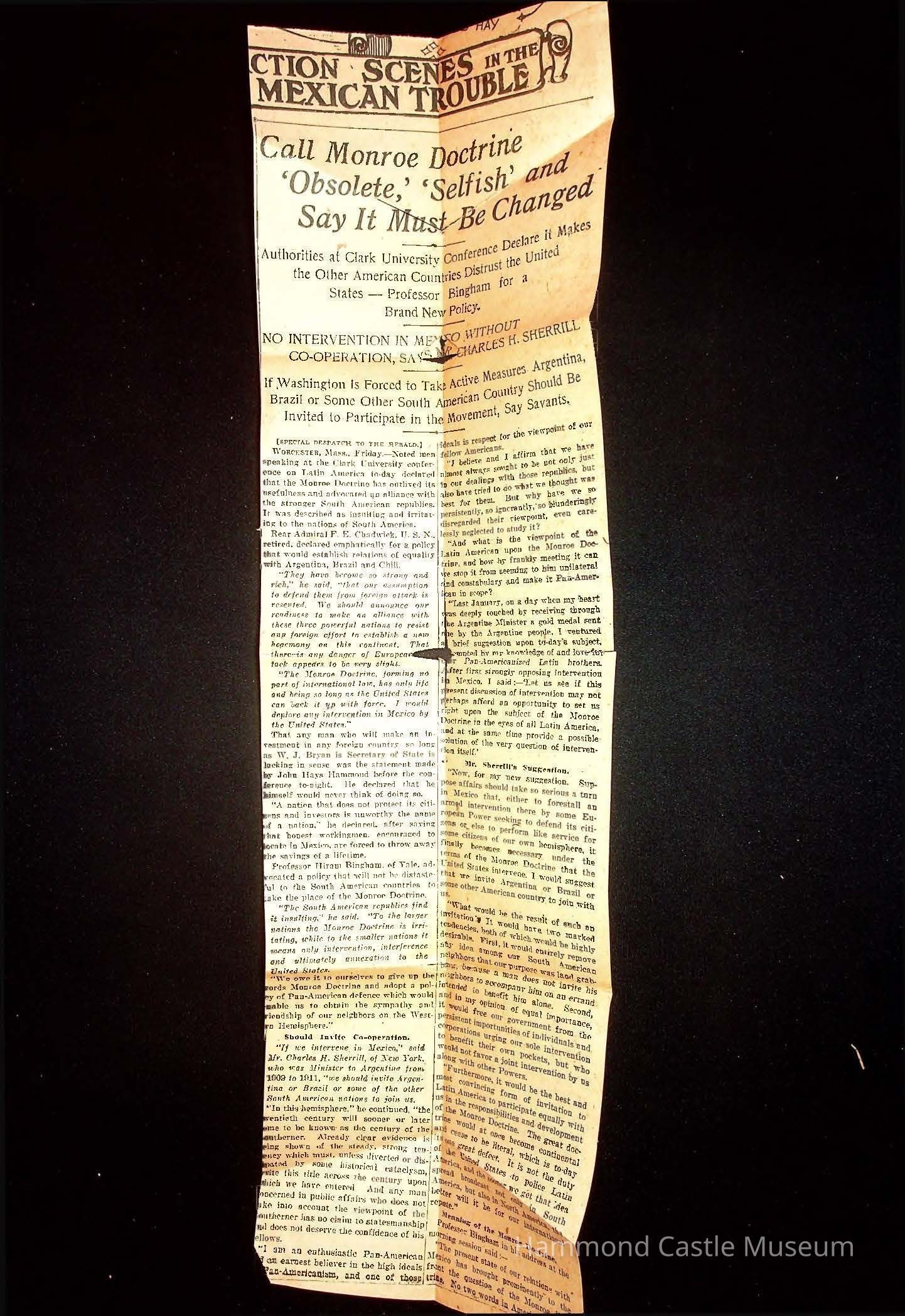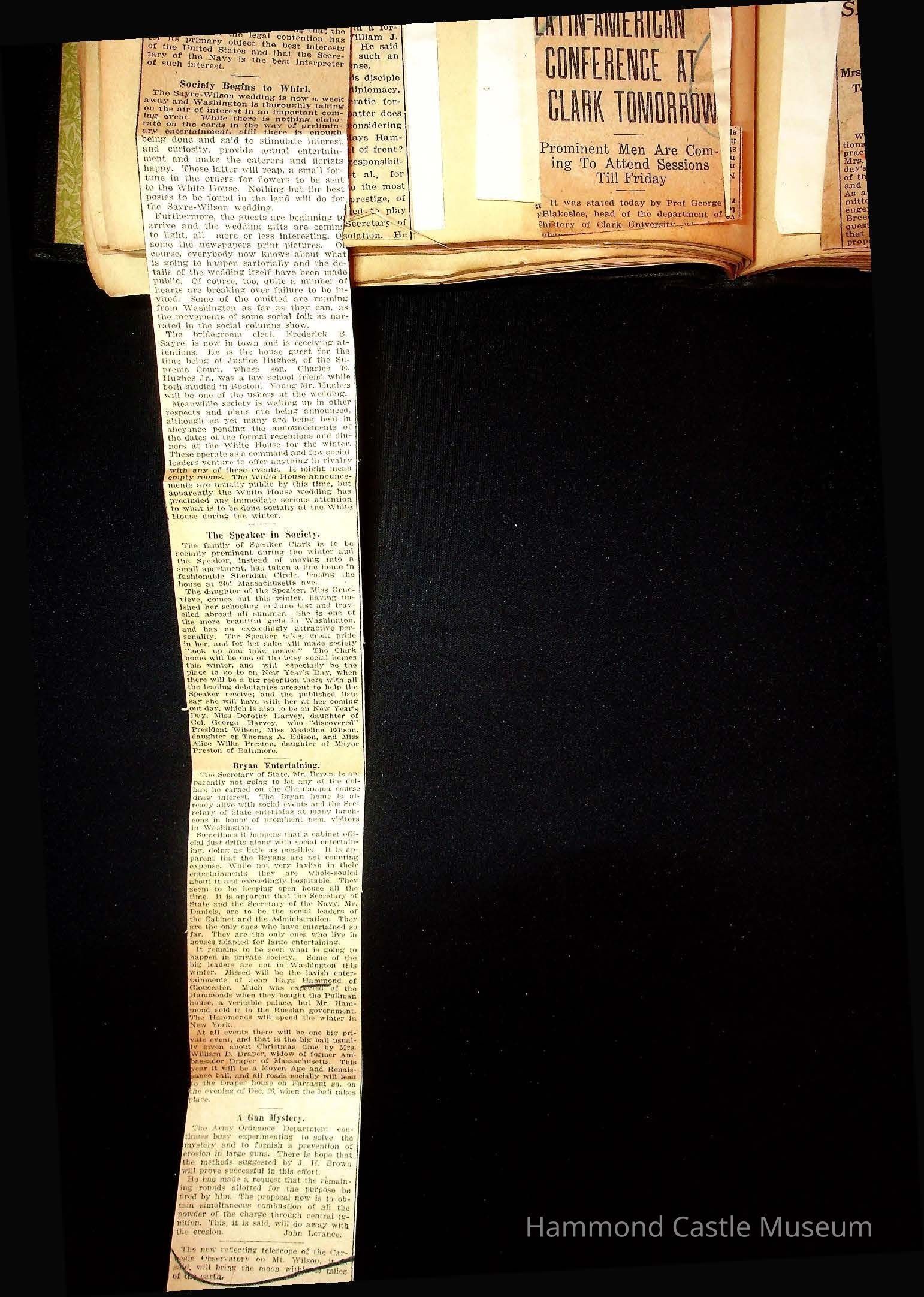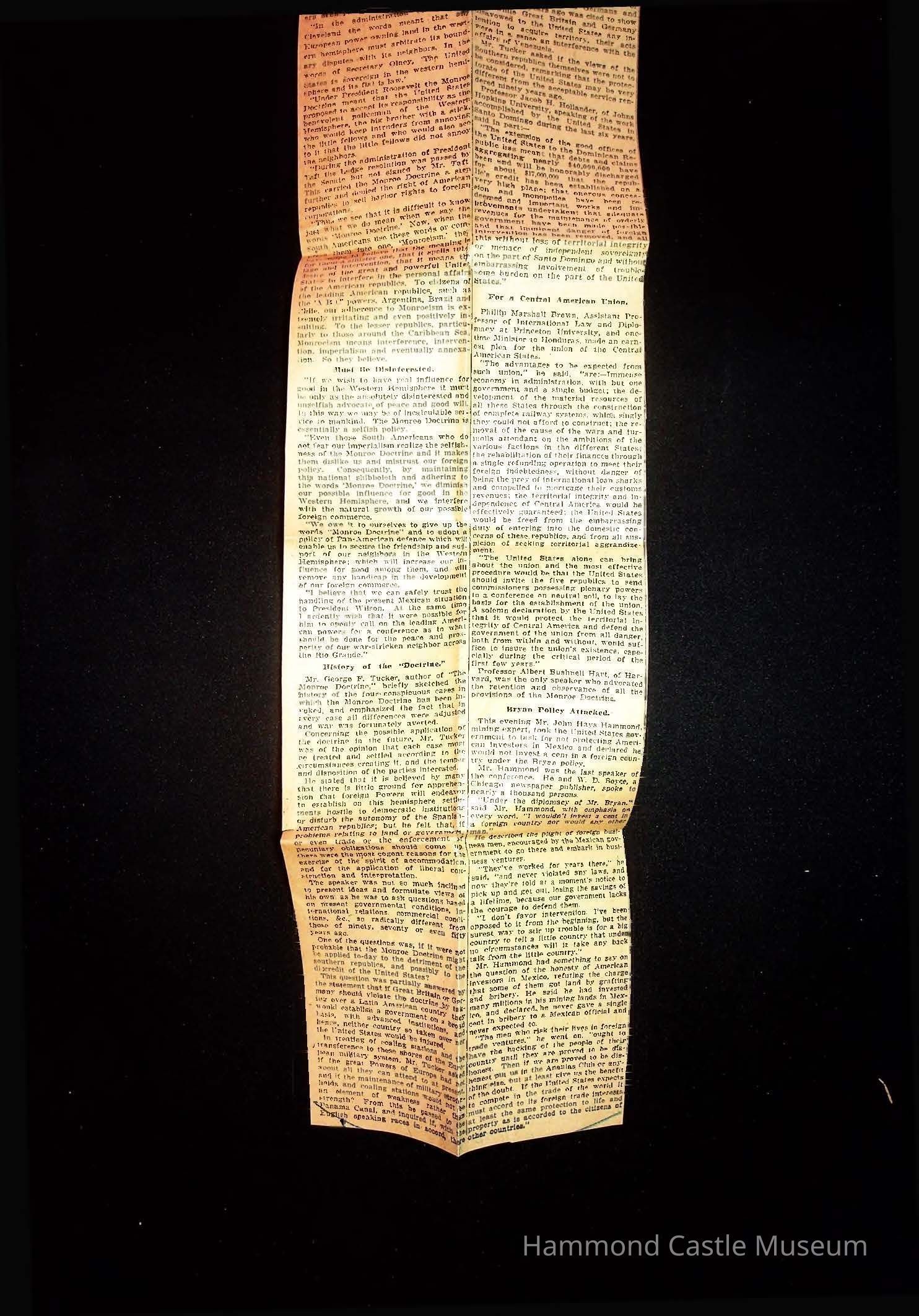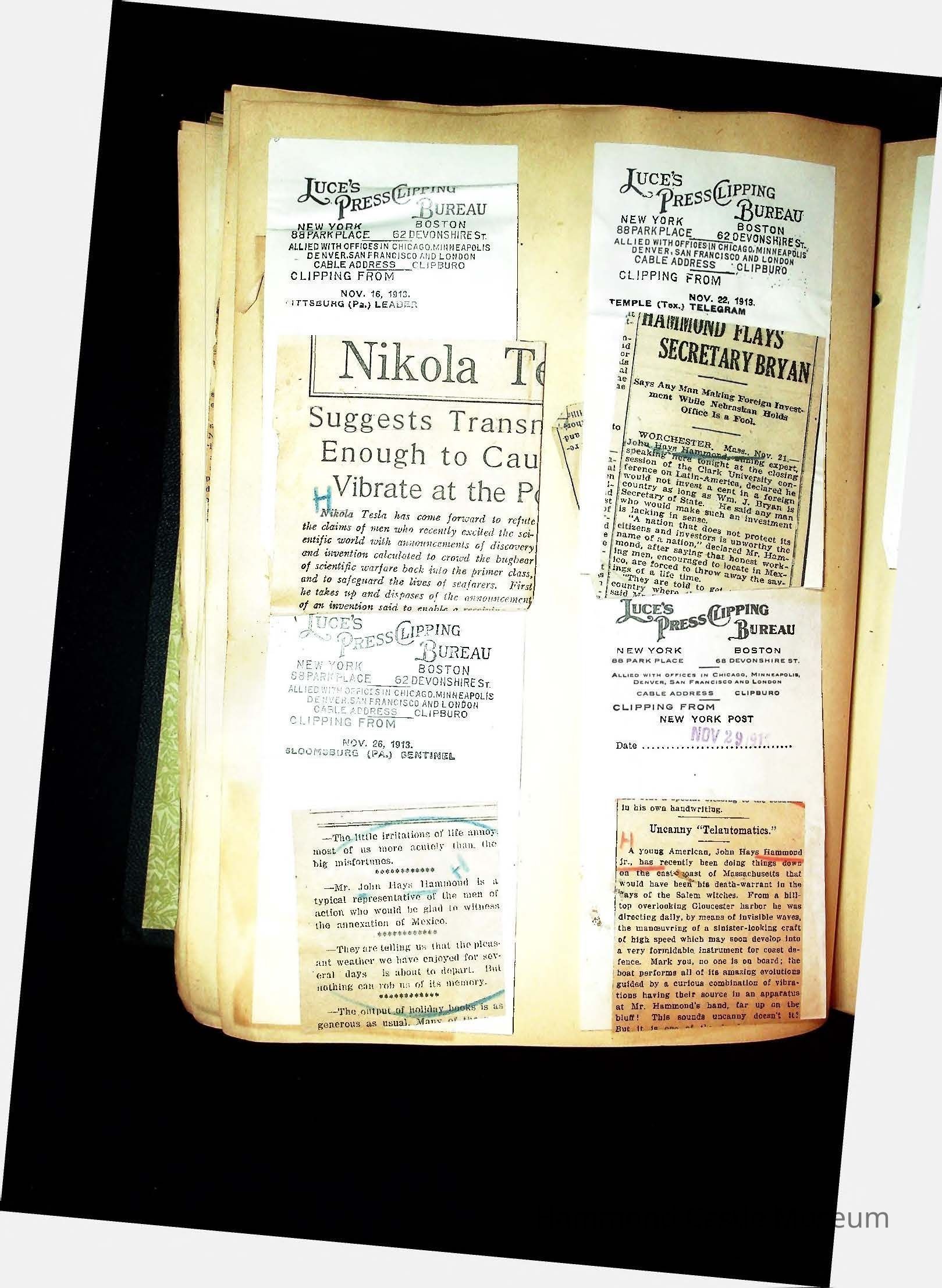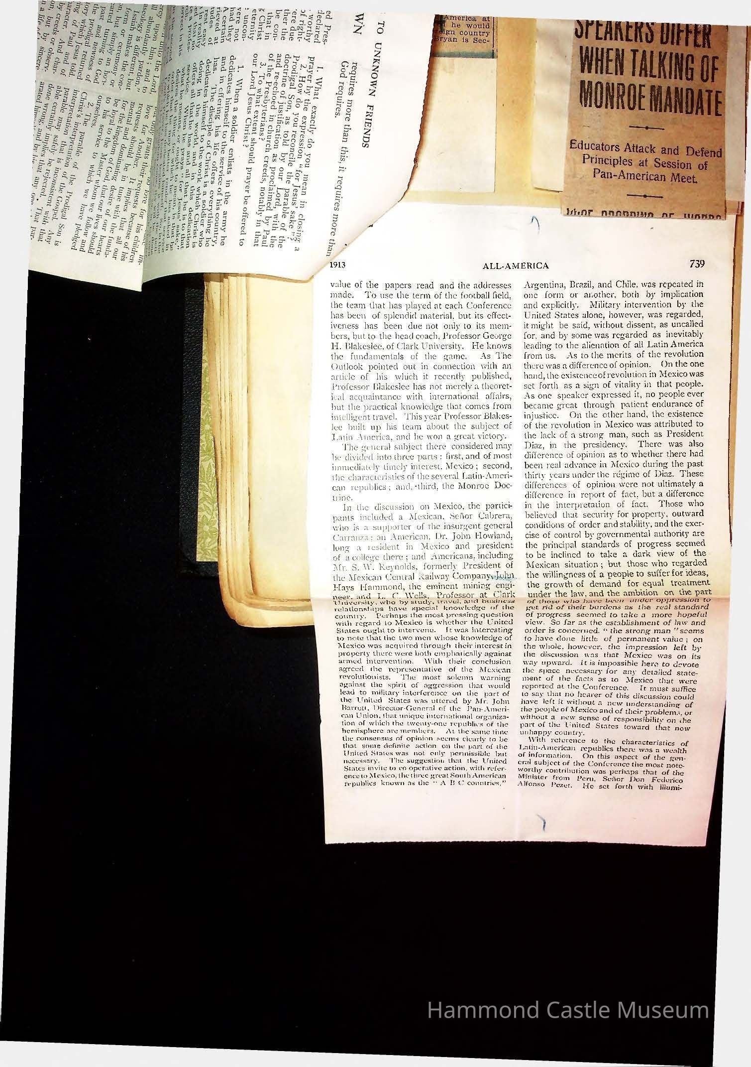 1913 scrapbook of newspaper articles about John Hays Hammond (Sr) and Mrs. Hammond covering governmental policies, Sherman Act, Eugenics & politics.
