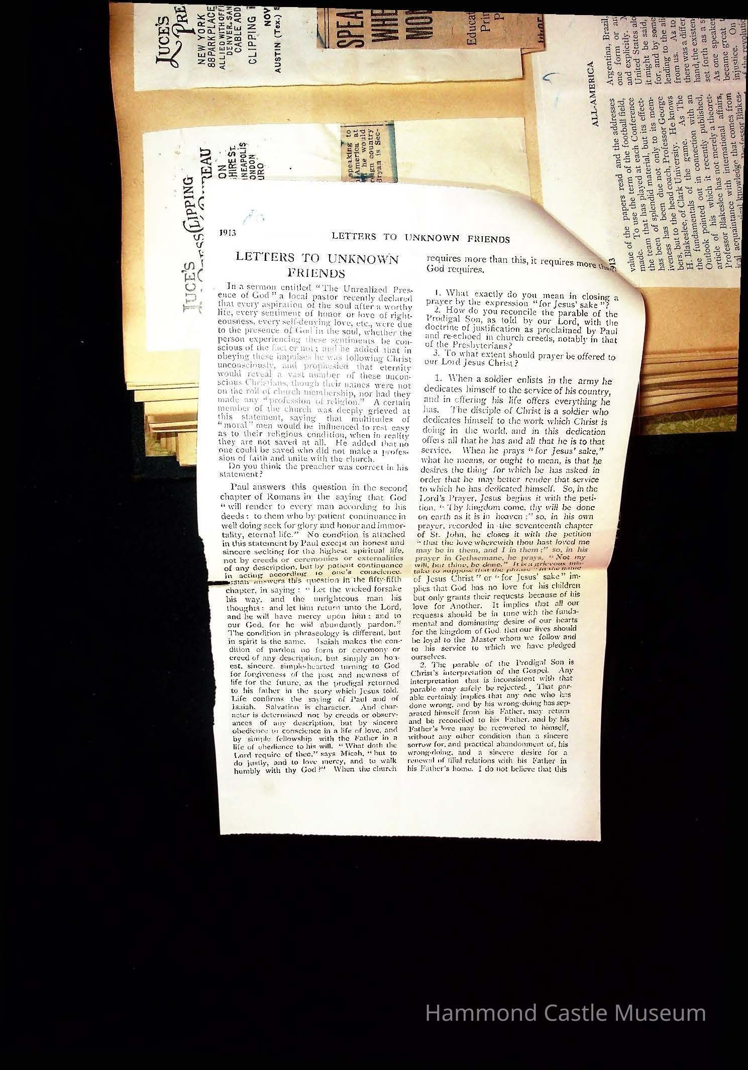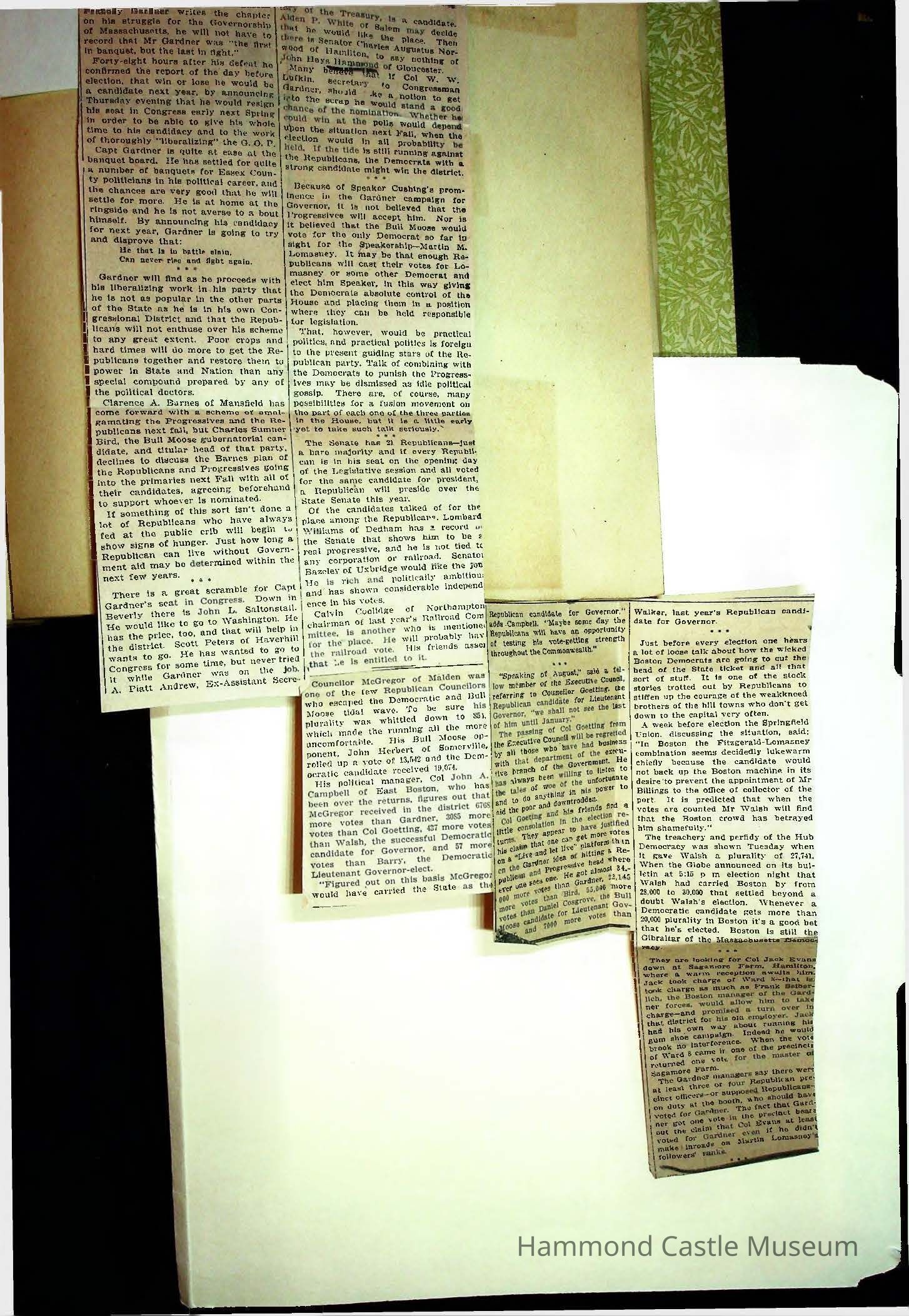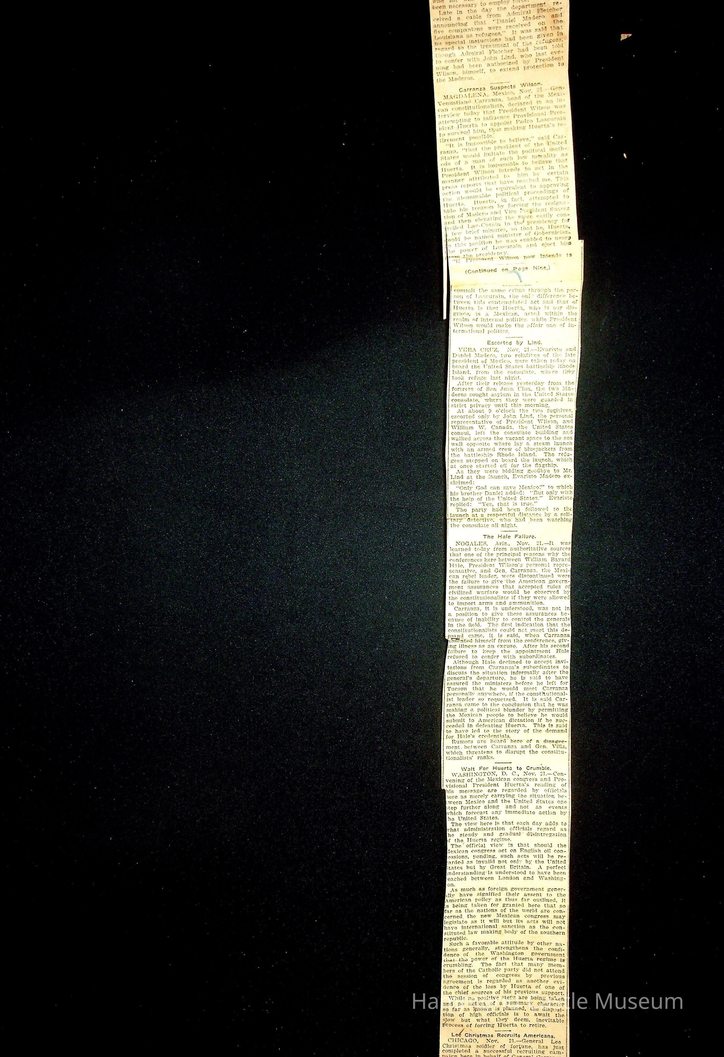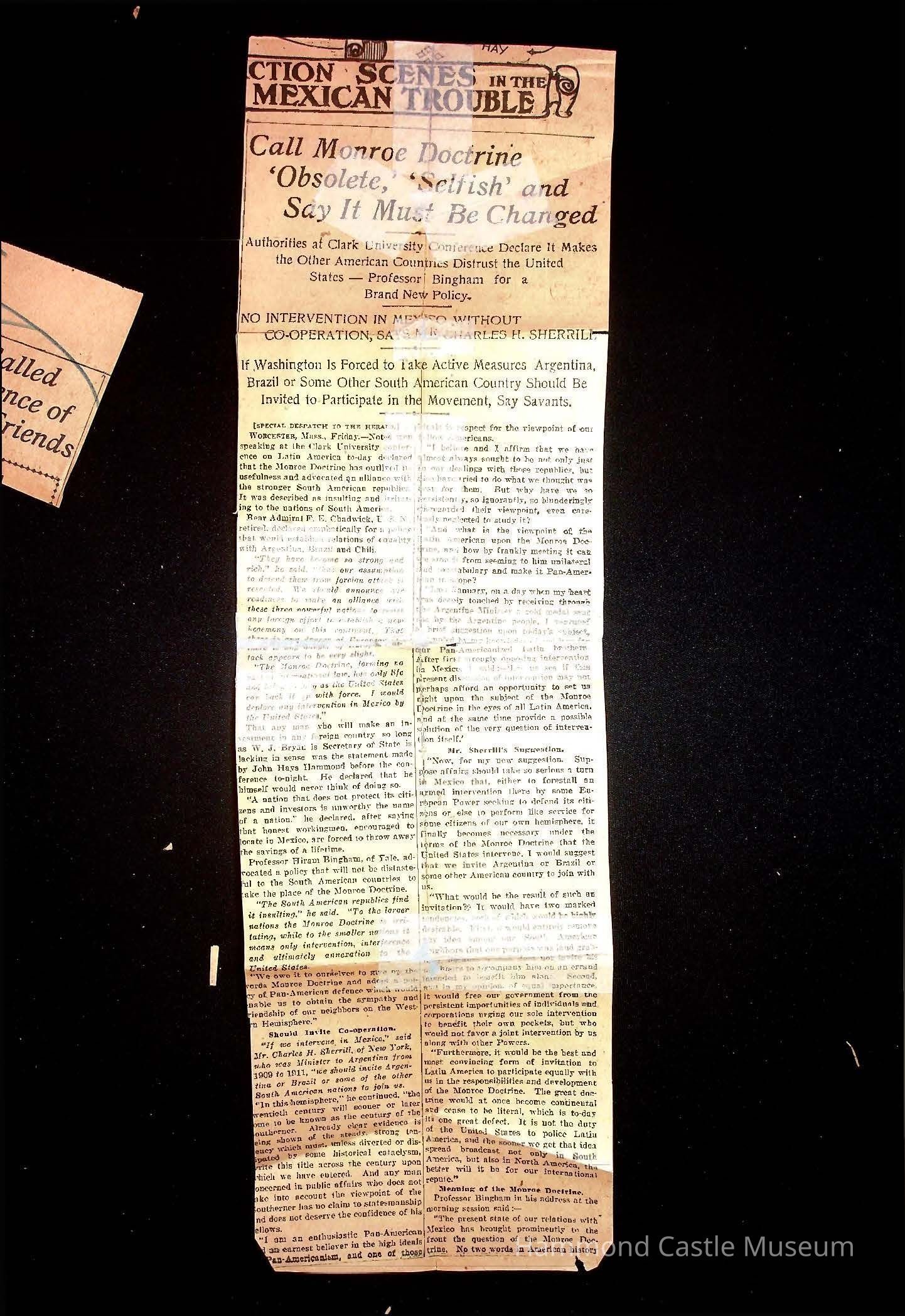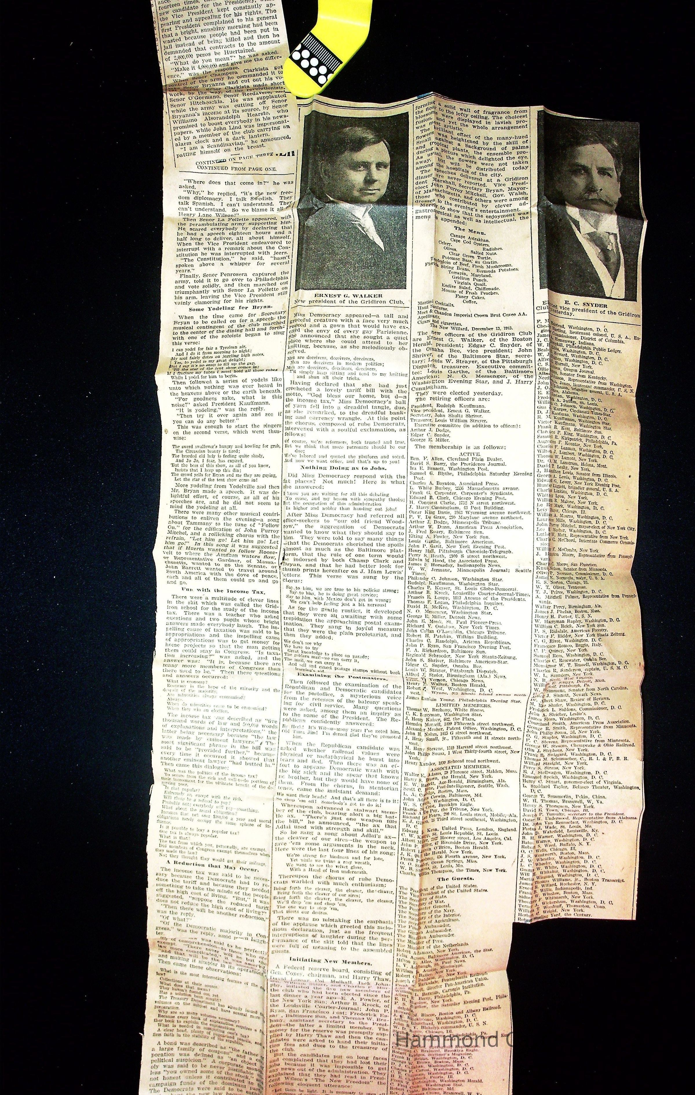 1913 scrapbook of newspaper articles about John Hays Hammond (Sr) and Mrs. Hammond covering governmental policies, Sherman Act, Eugenics & politics.