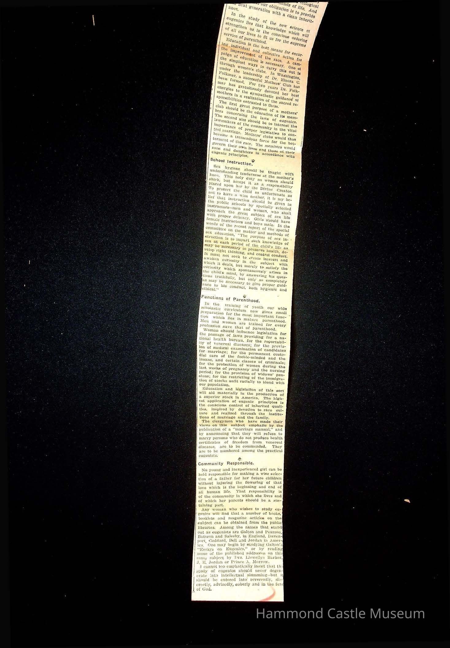 JHH 1913 - Gov't policies, Eugenics, Politics ScrapbookEntry/Object ID