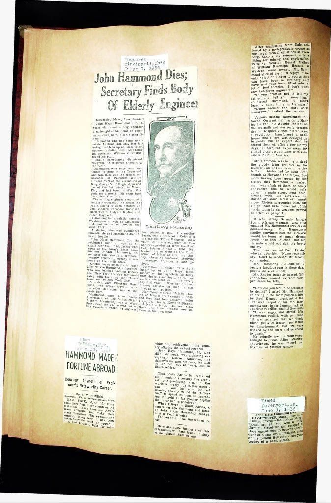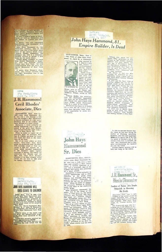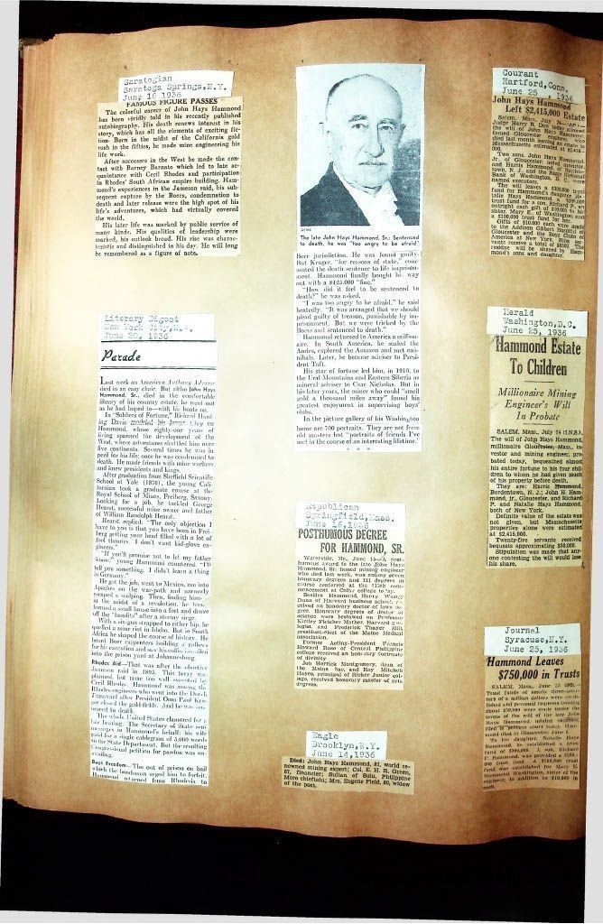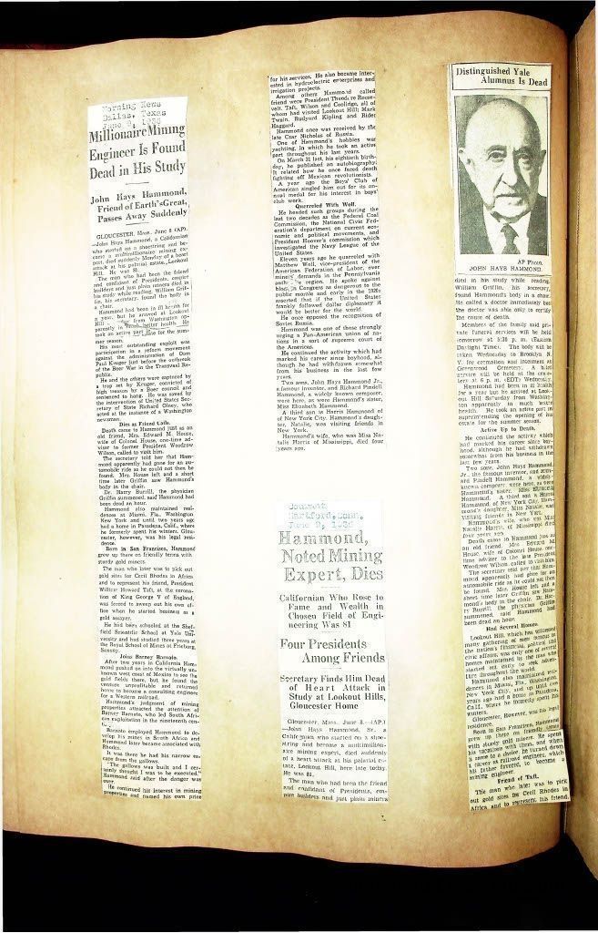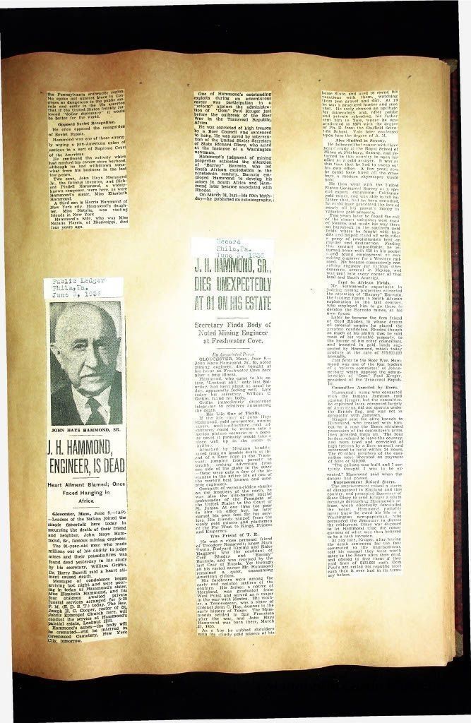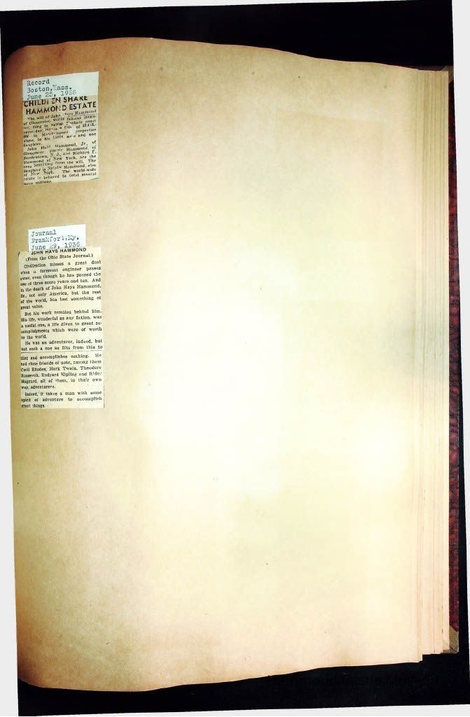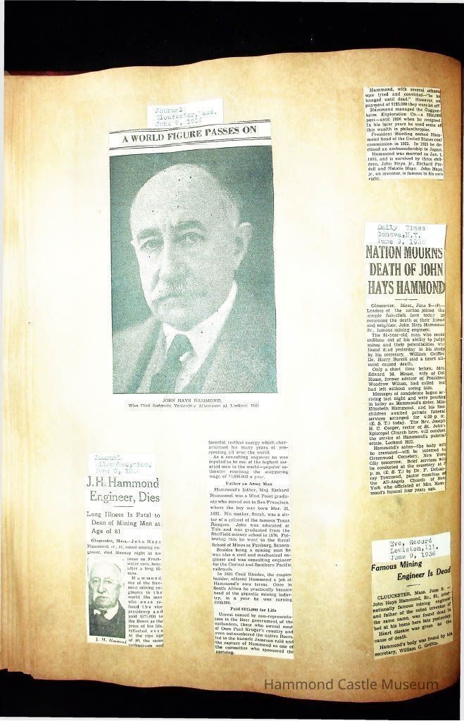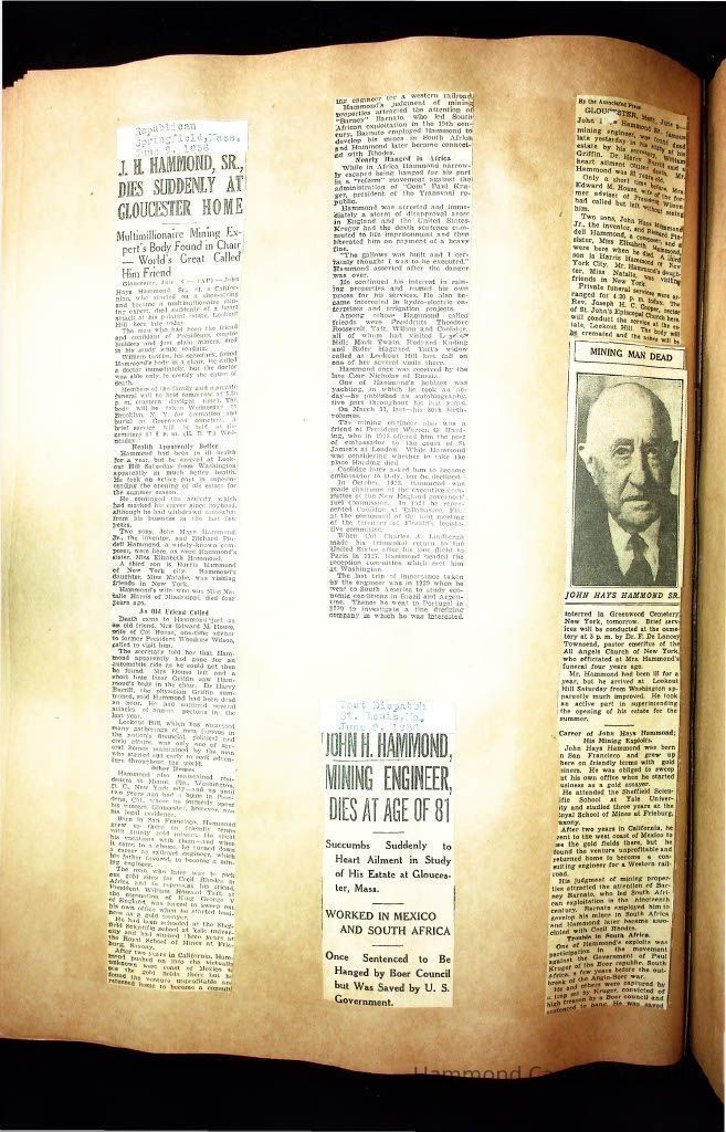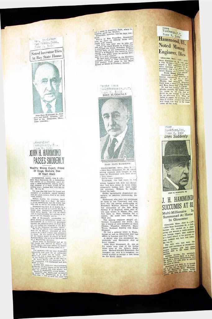 JHH 1936 - In Memoriam scrapbook Articles about John Hays Hammond Sr's death *see index