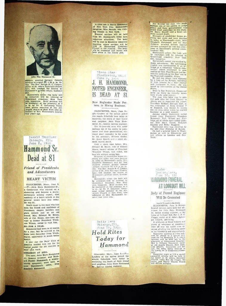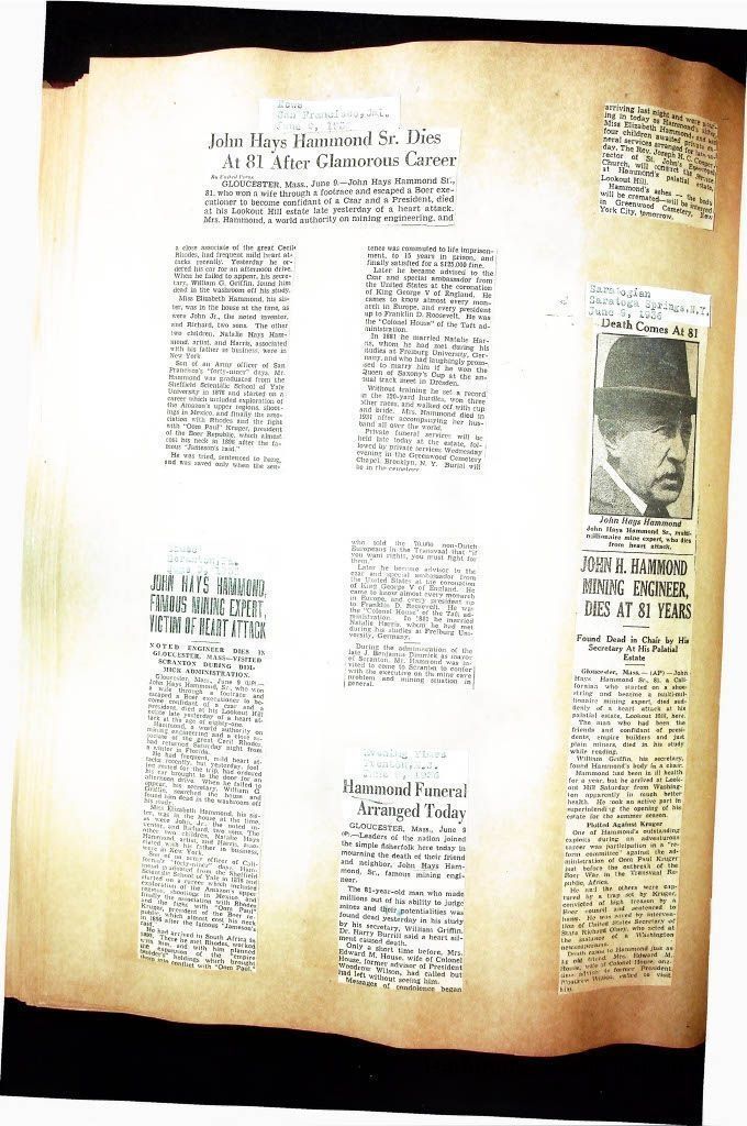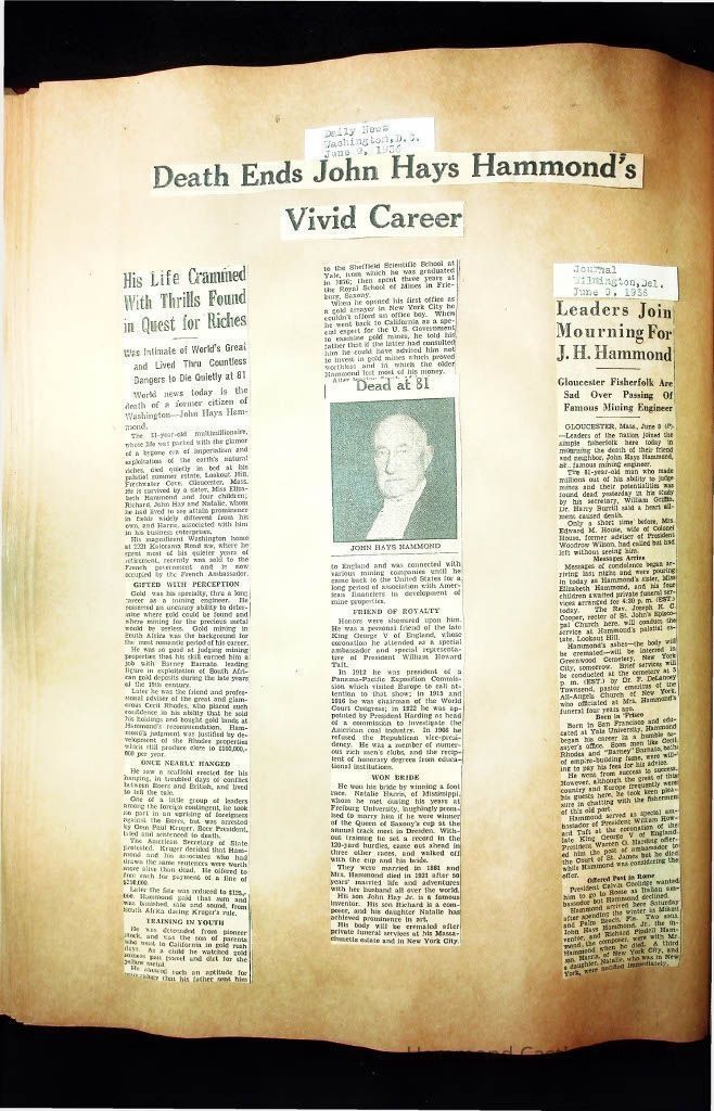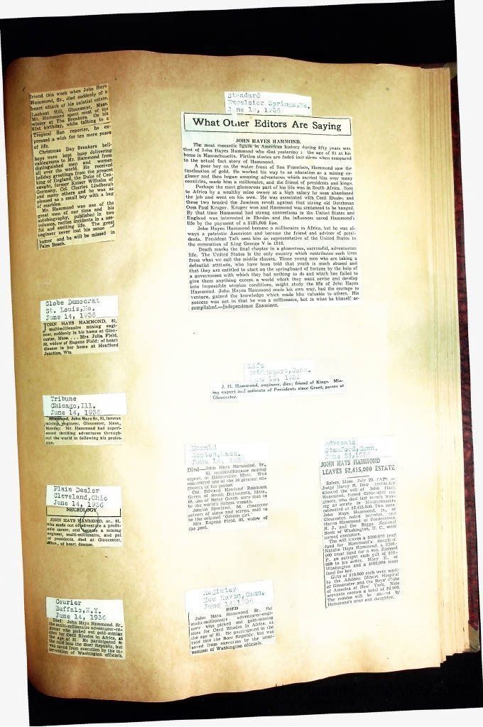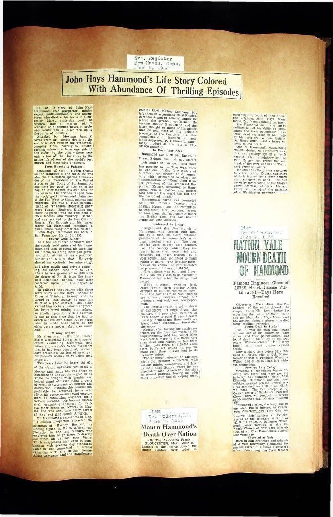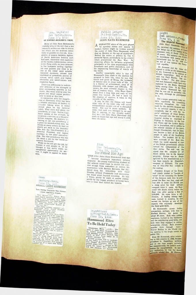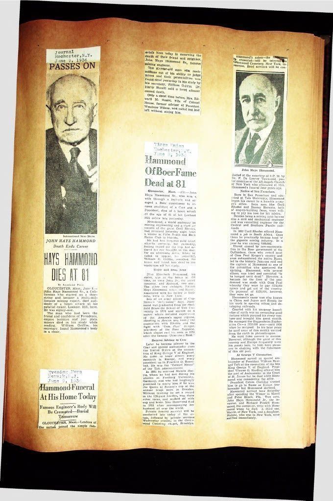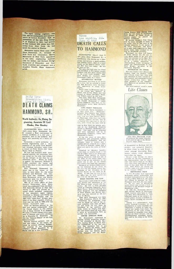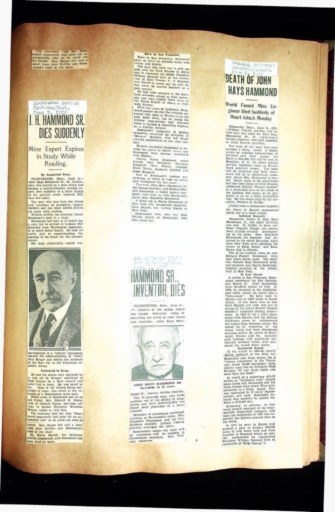 JHH 1936 - In Memoriam scrapbook Articles about John Hays Hammond Sr's death *see index