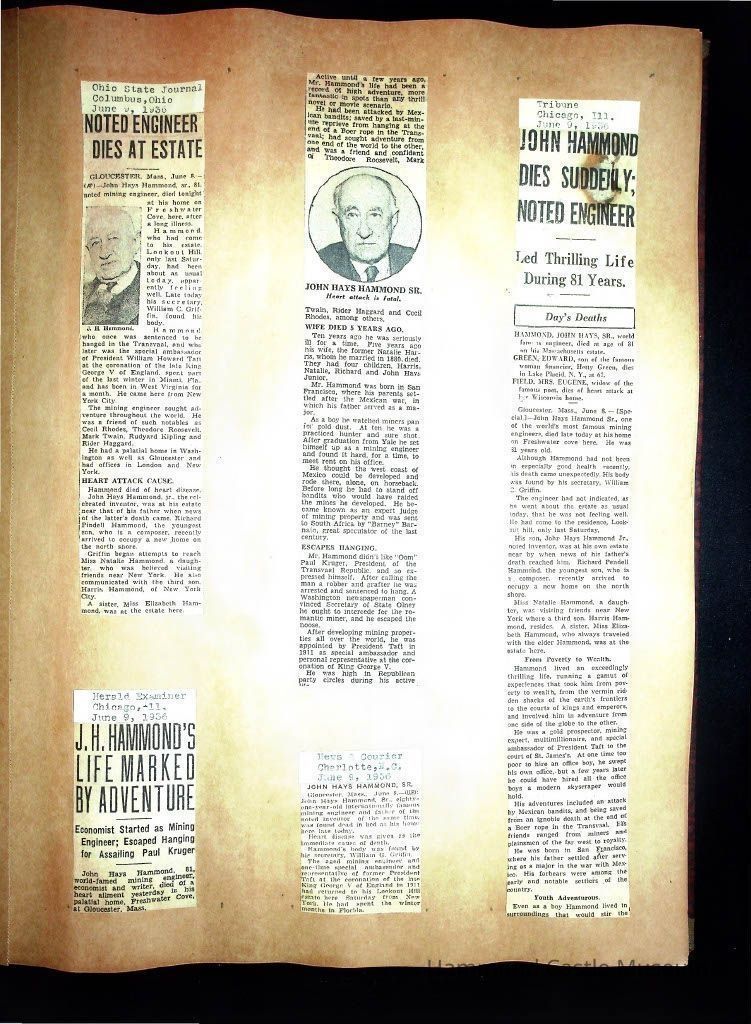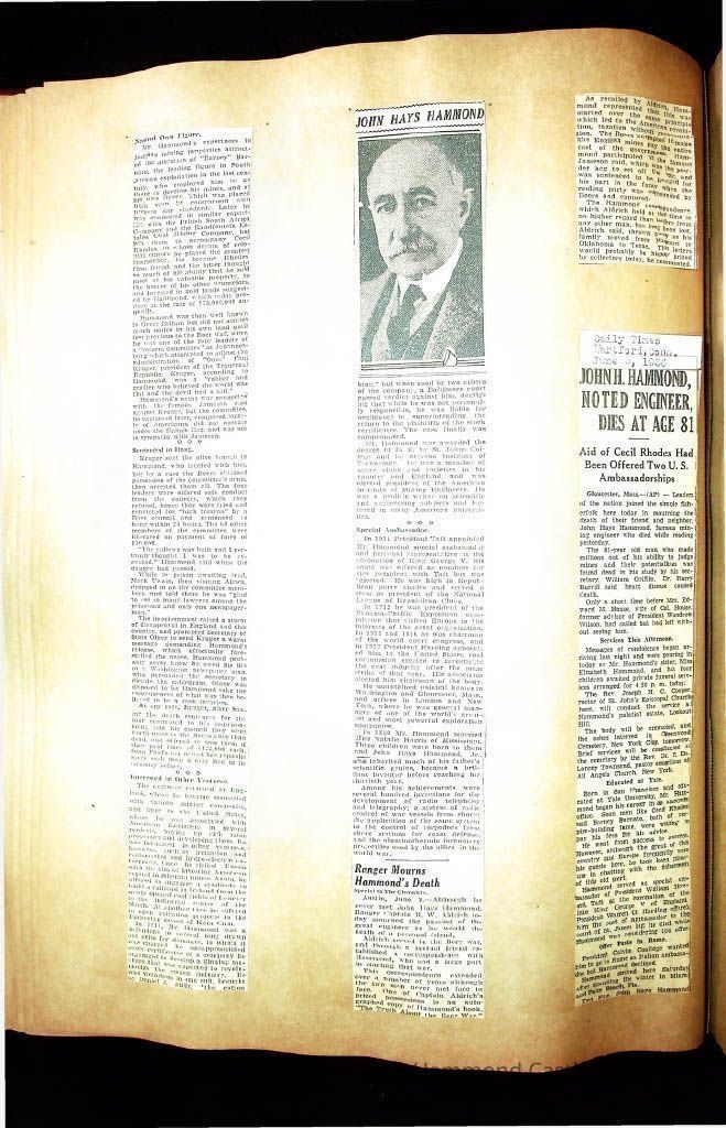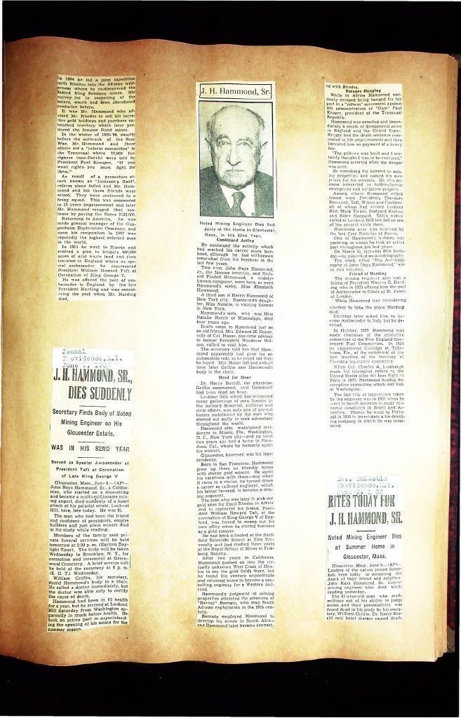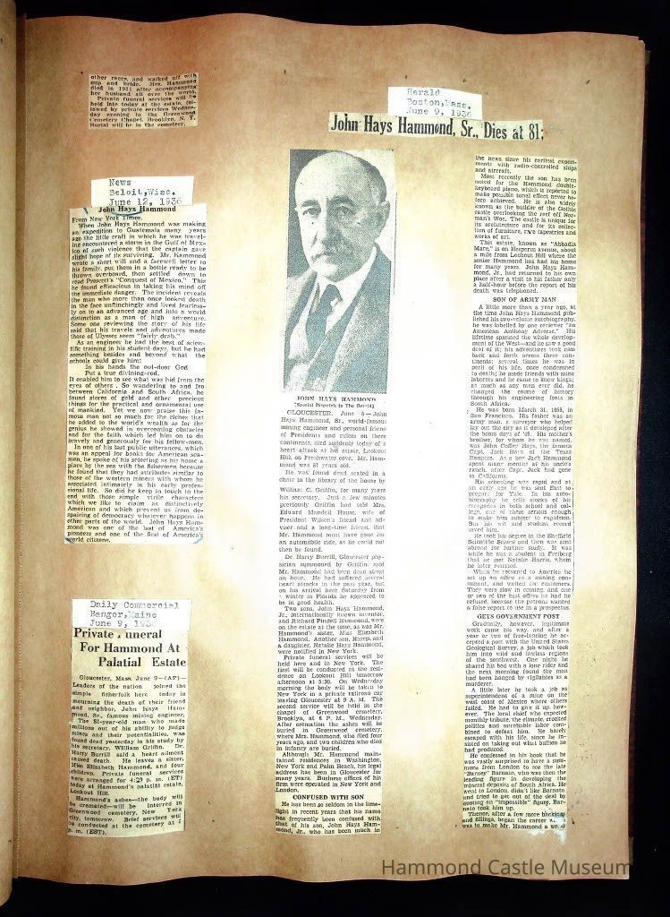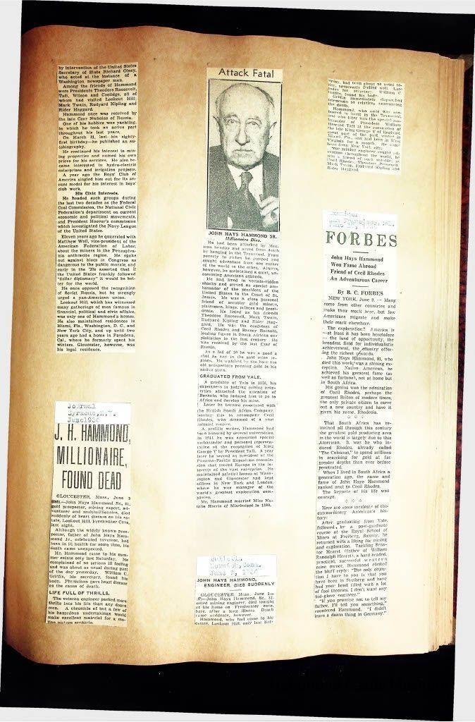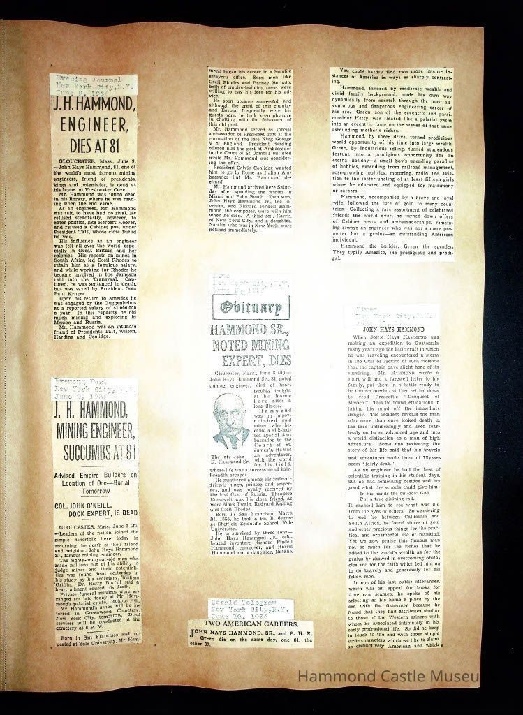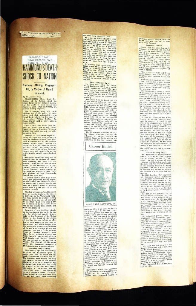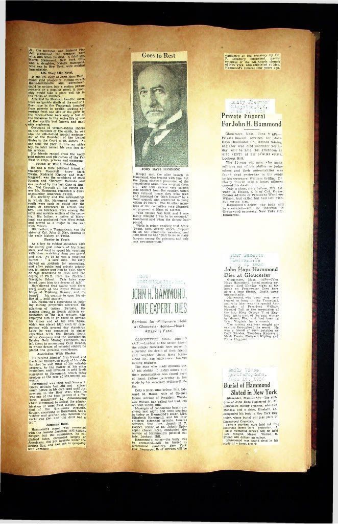 JHH 1936 - In Memoriam scrapbook Articles about John Hays Hammond Sr's death *see index
