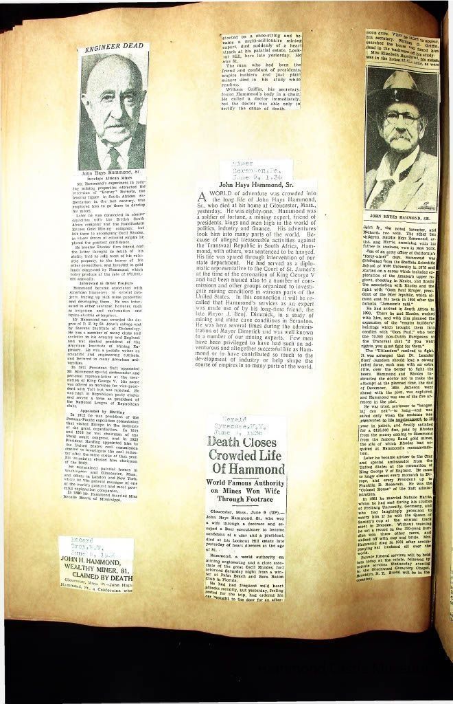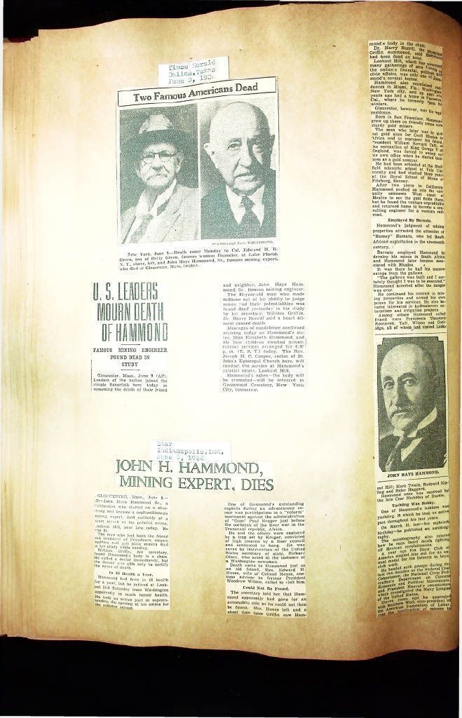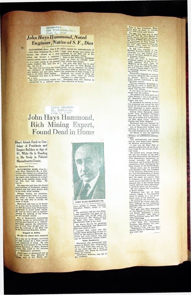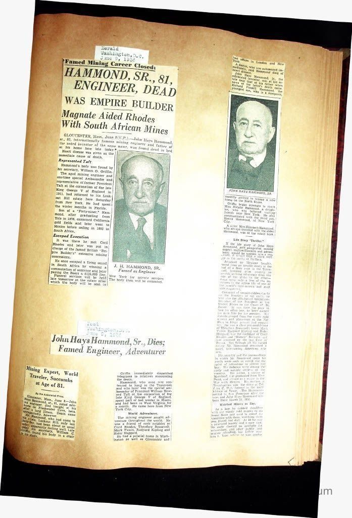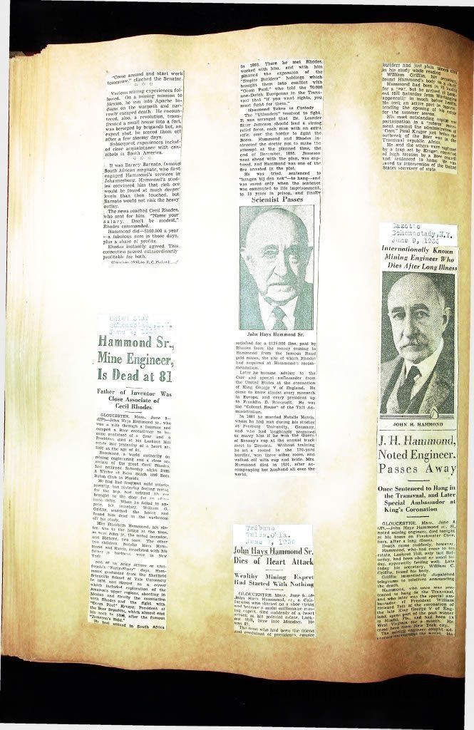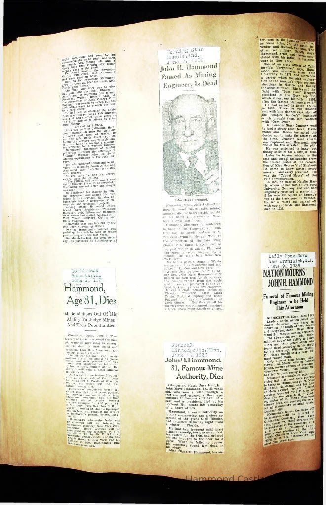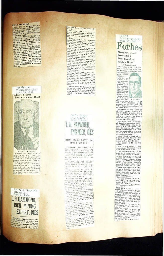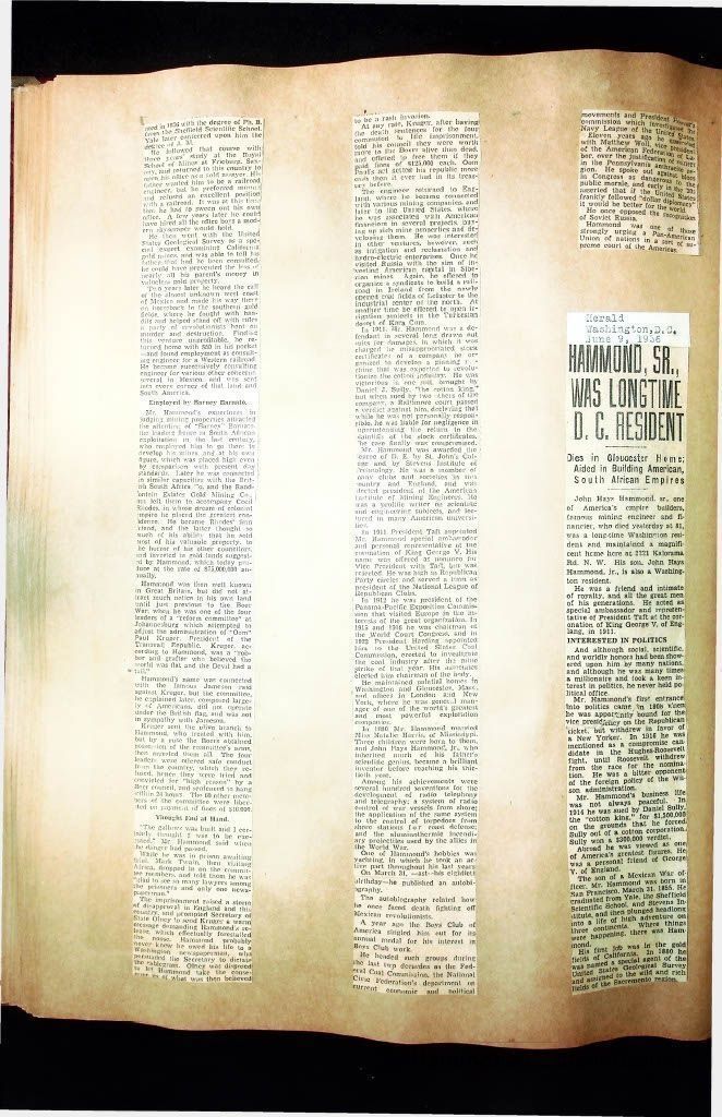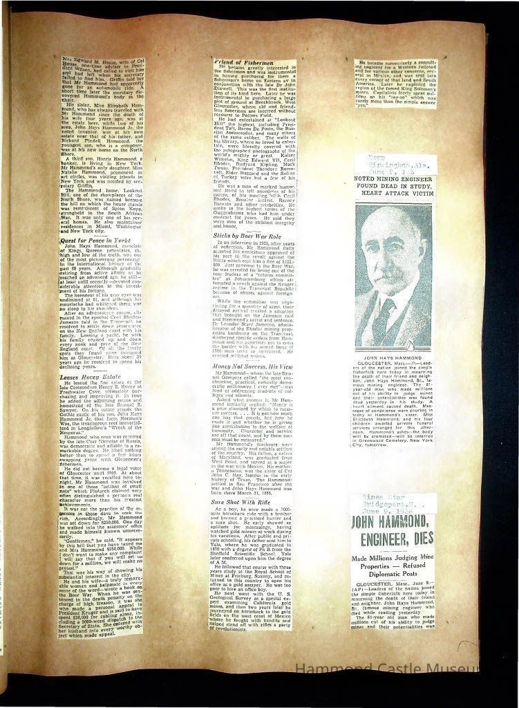 JHH 1936 - In Memoriam scrapbook Articles about John Hays Hammond Sr's death *see index