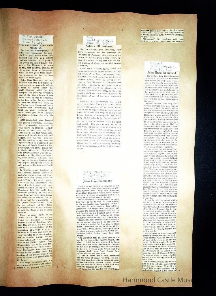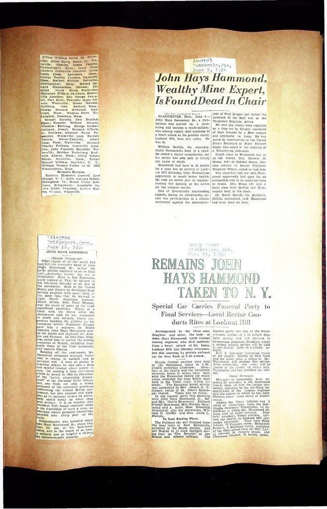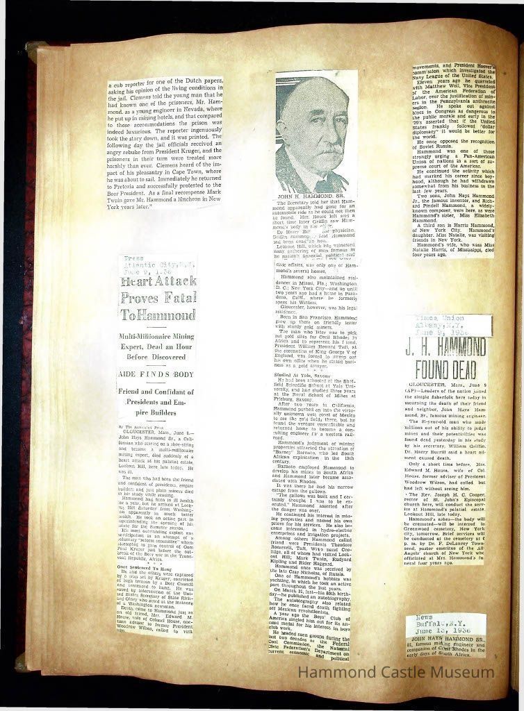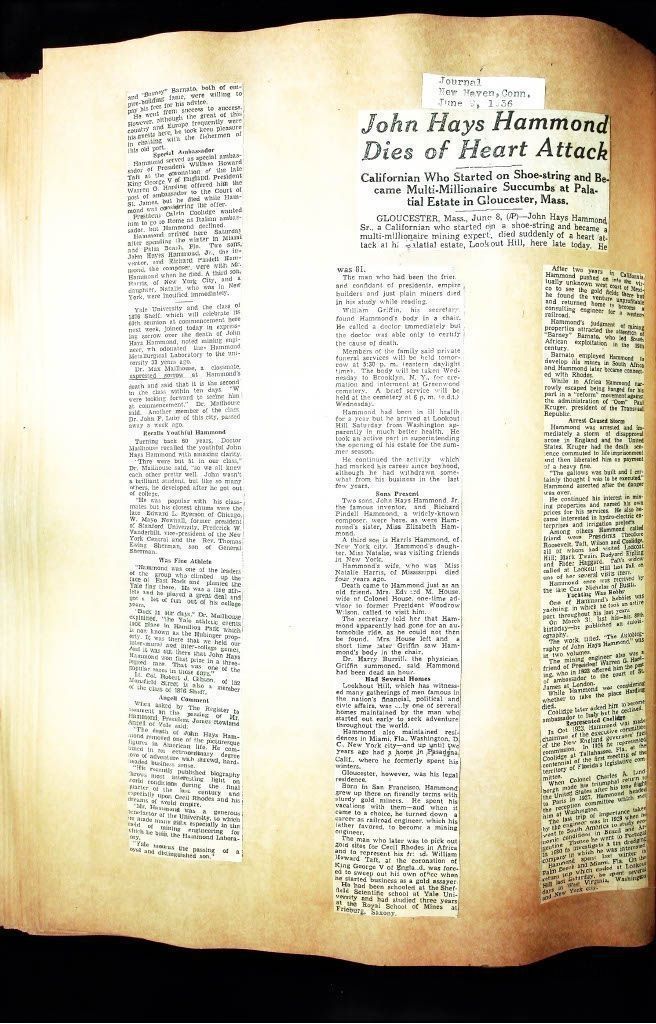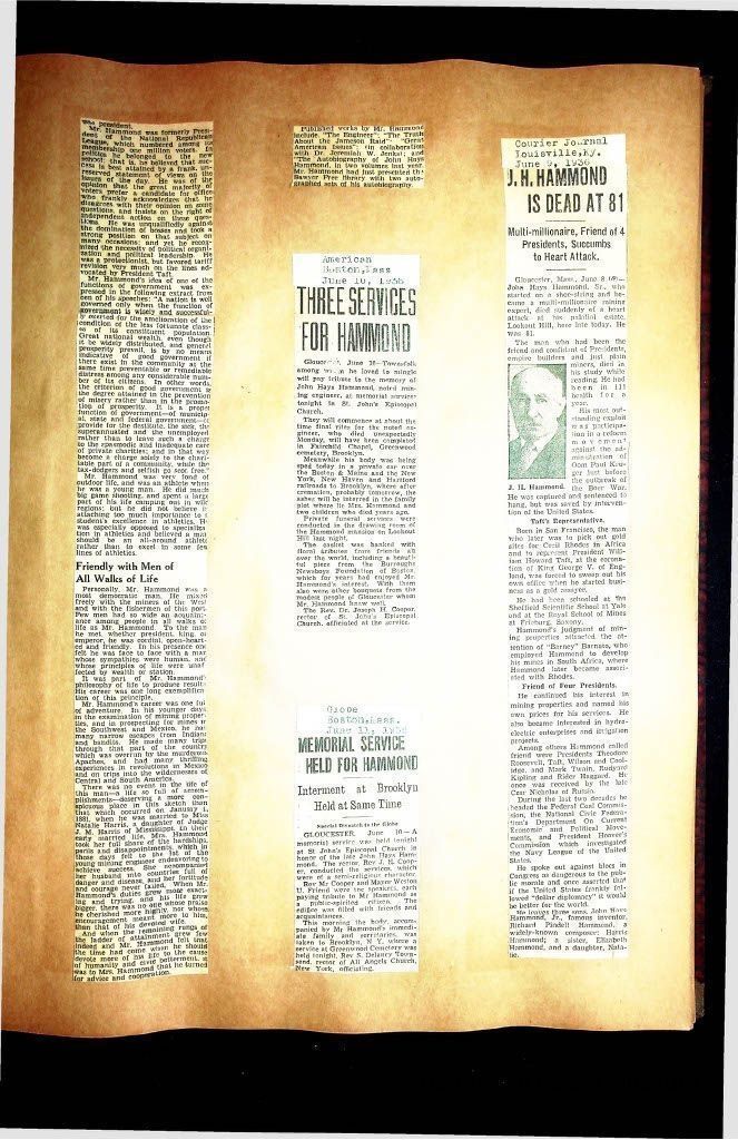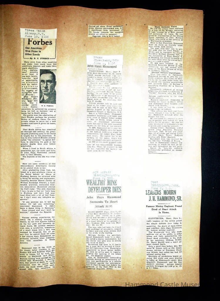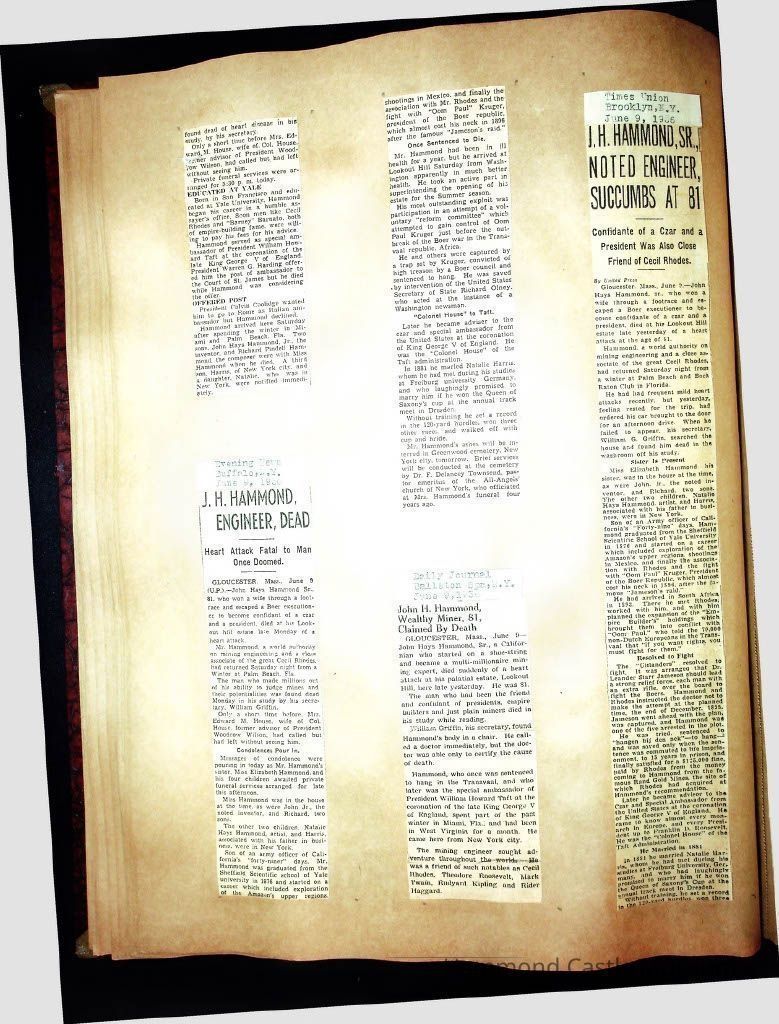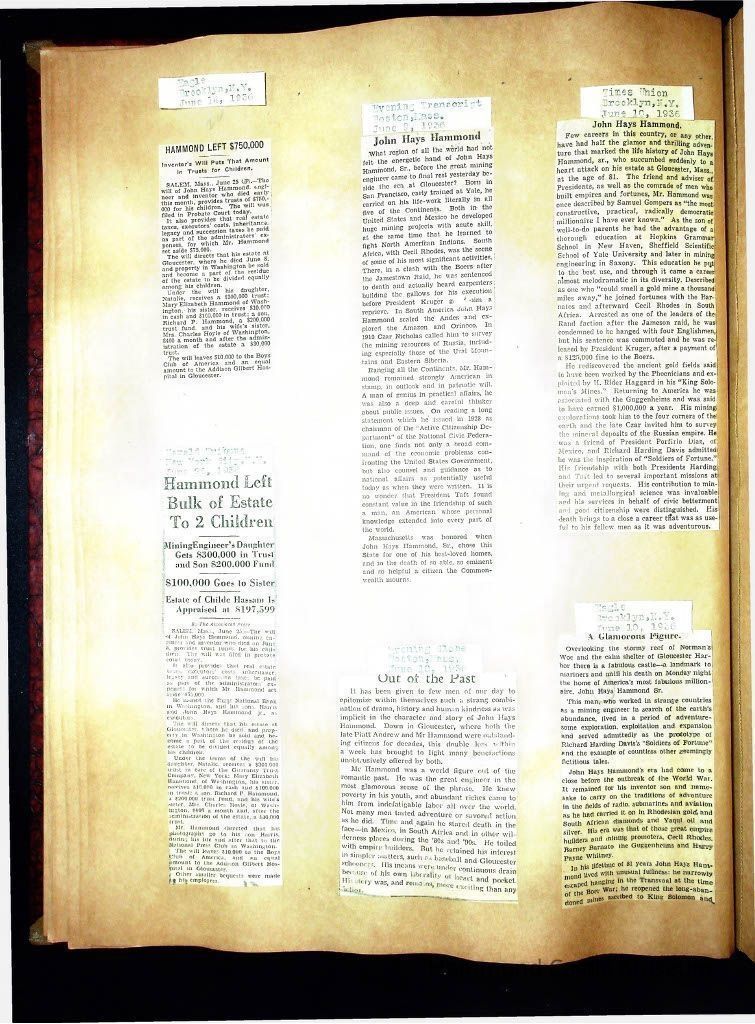 JHH 1936 - In Memoriam scrapbook Articles about John Hays Hammond Sr's death *see index