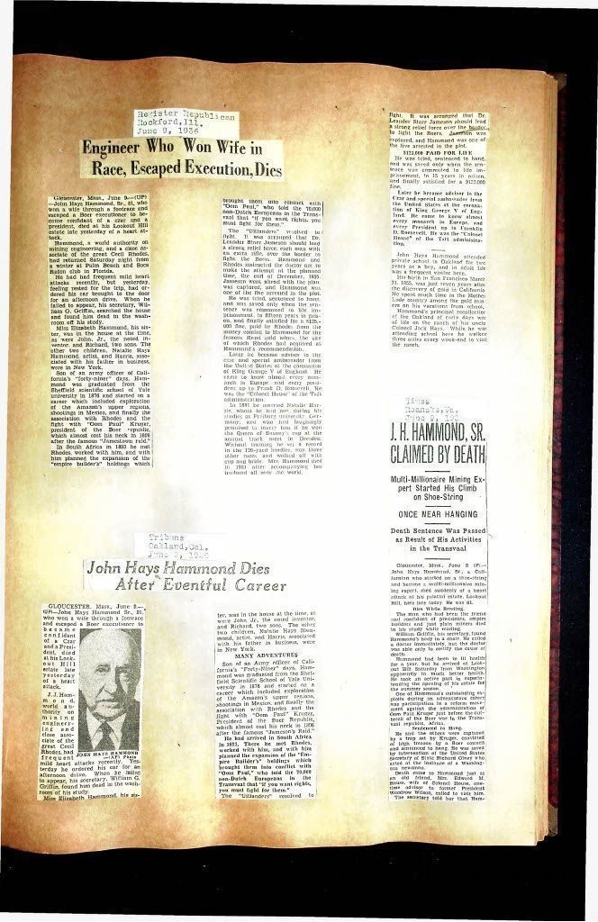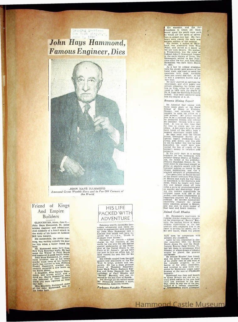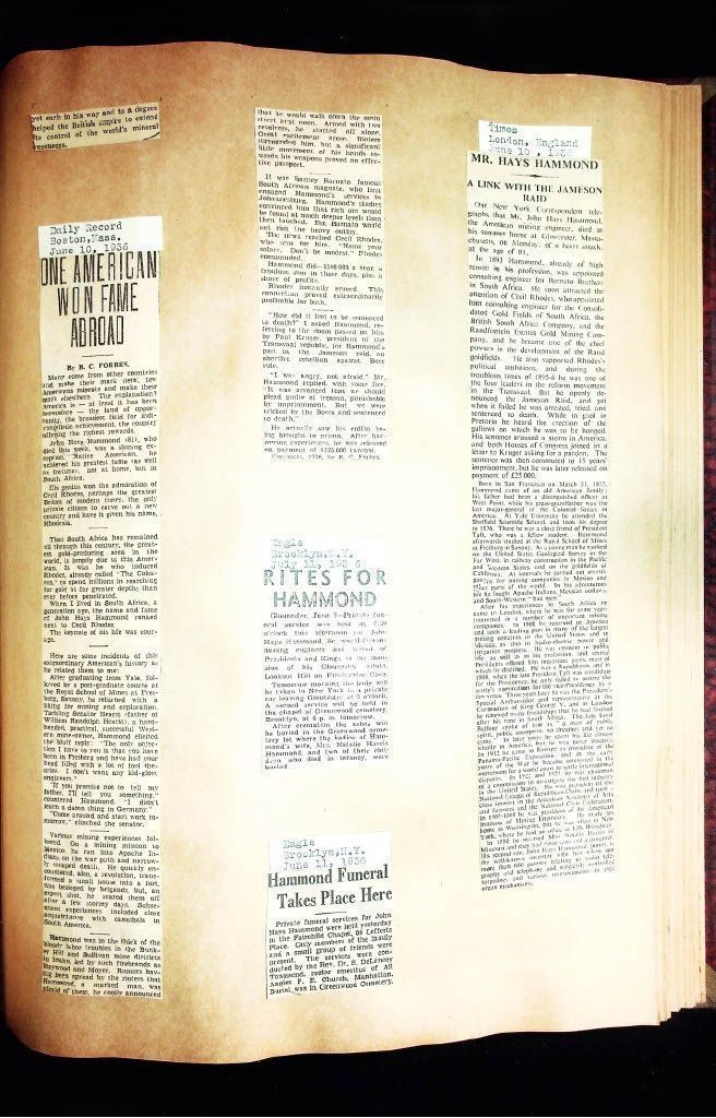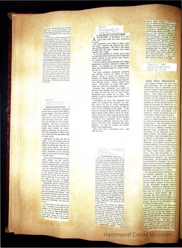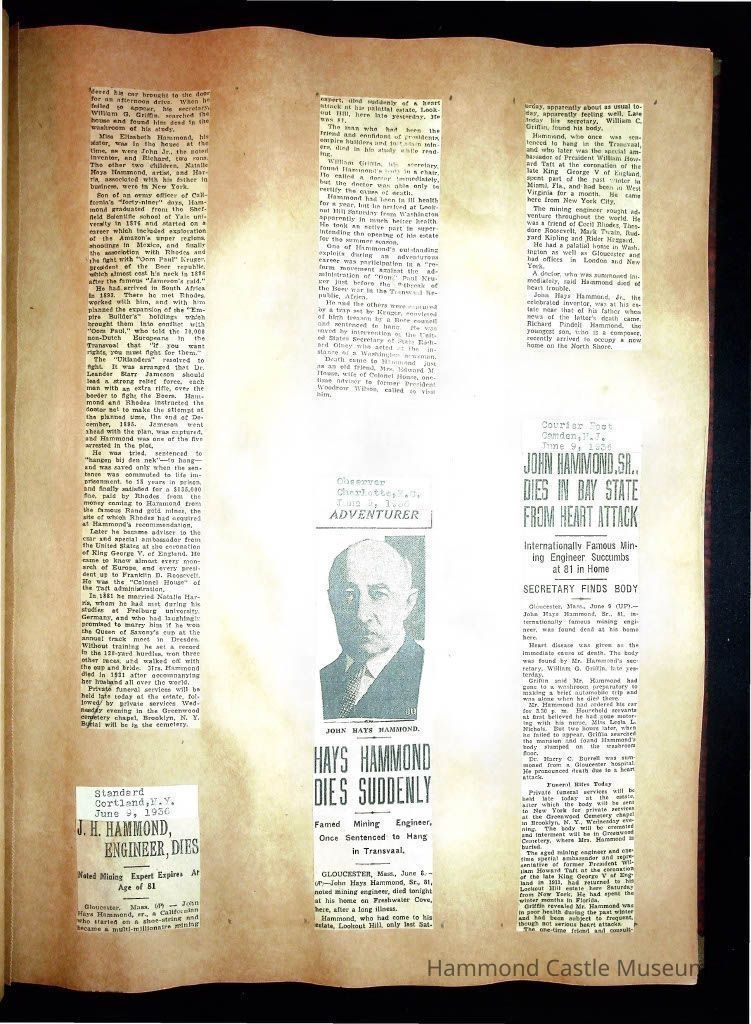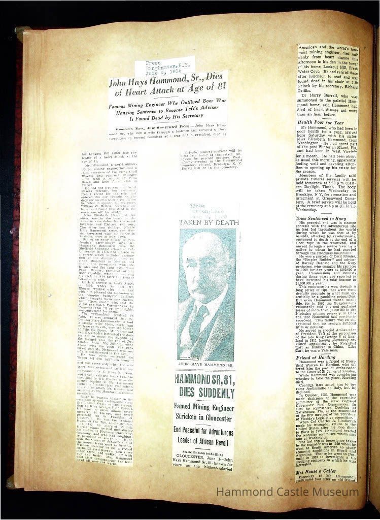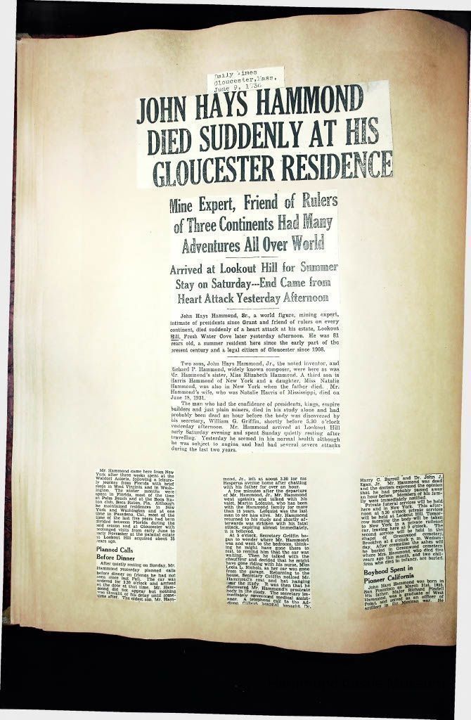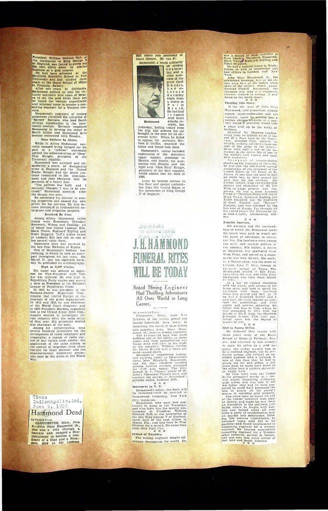 JHH 1936 - In Memoriam scrapbook Articles about John Hays Hammond Sr's death *see index