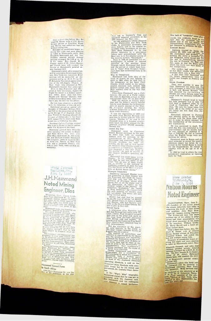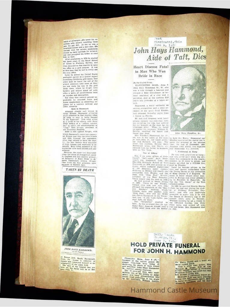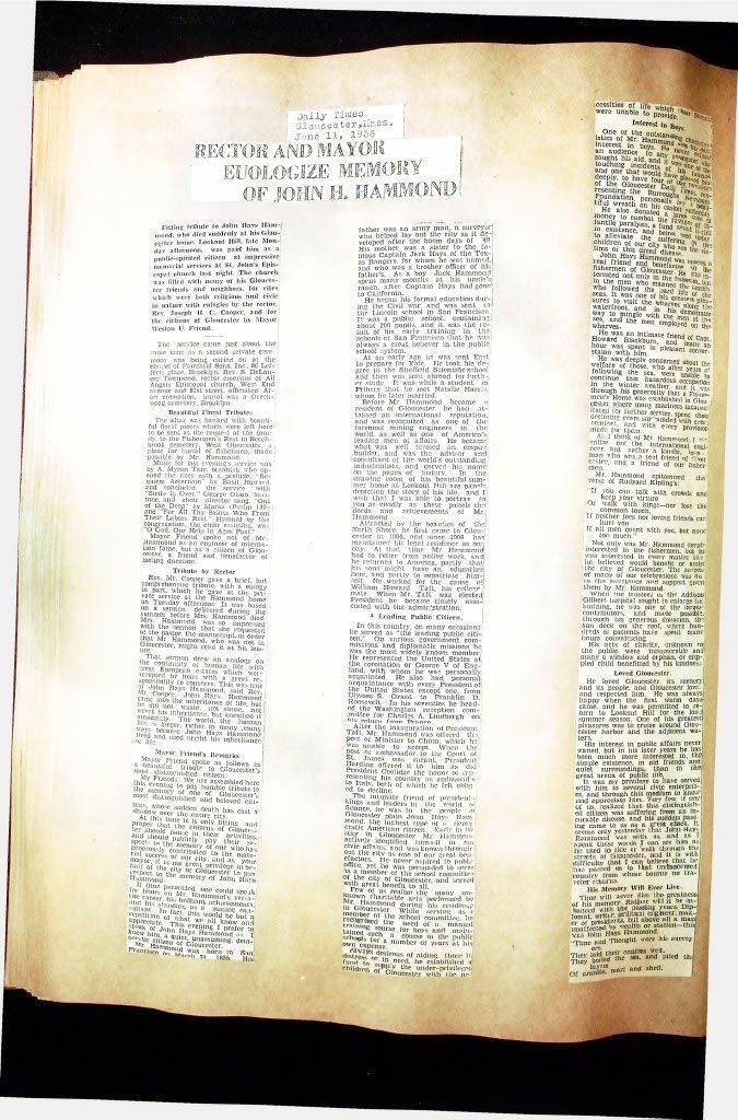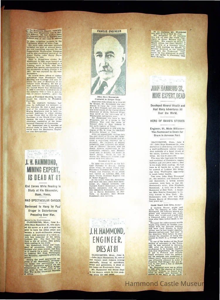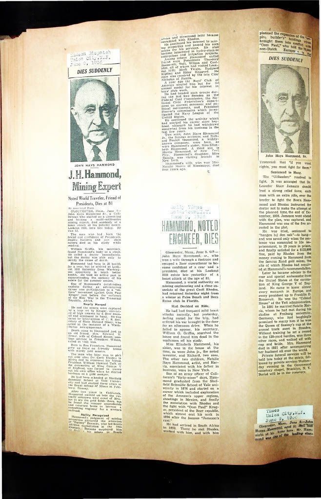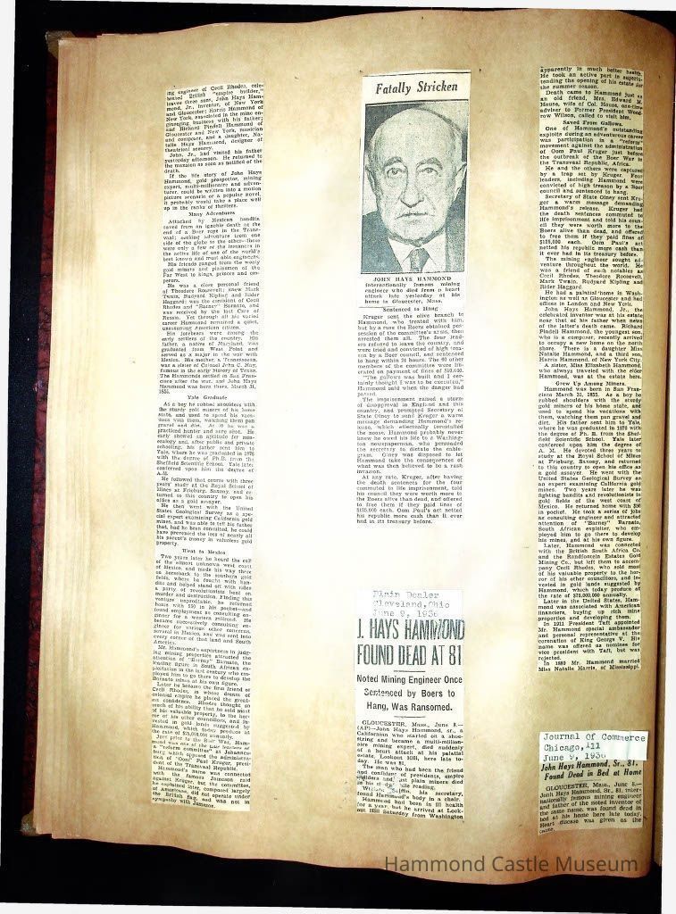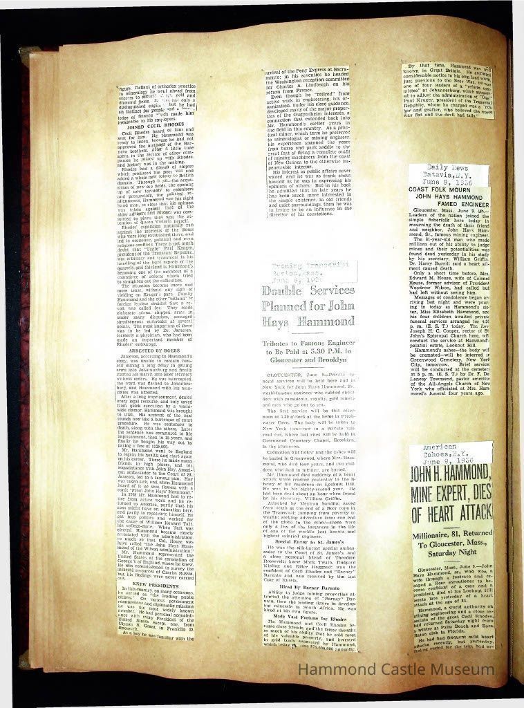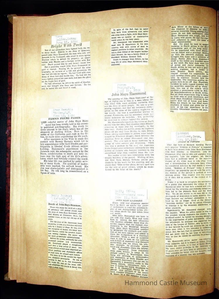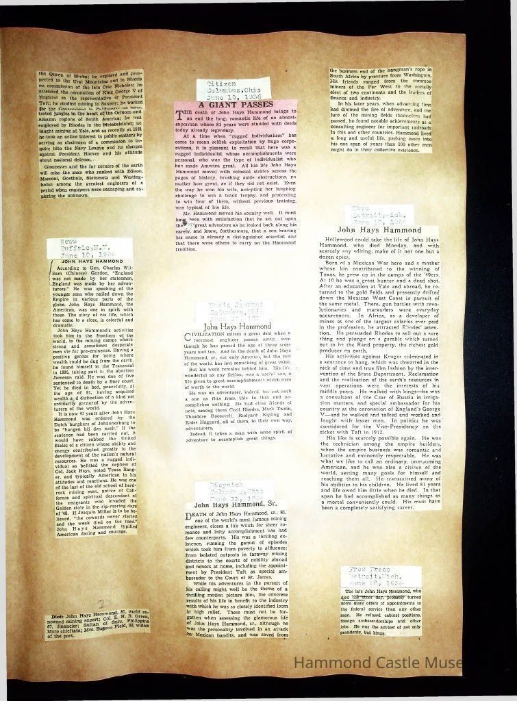 JHH 1936 - In Memoriam scrapbook Articles about John Hays Hammond Sr's death *see index