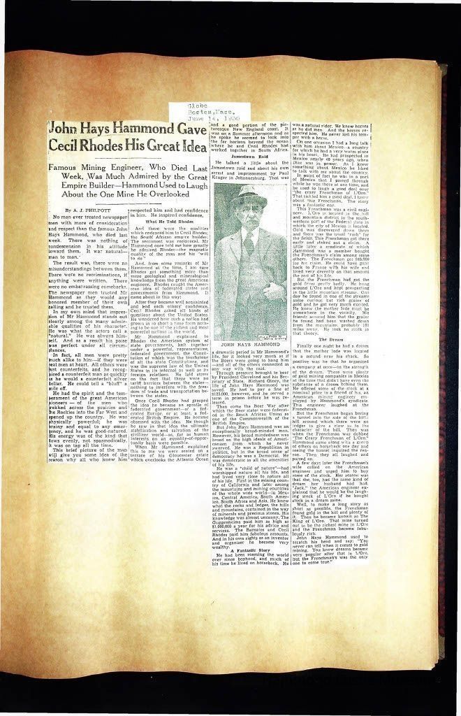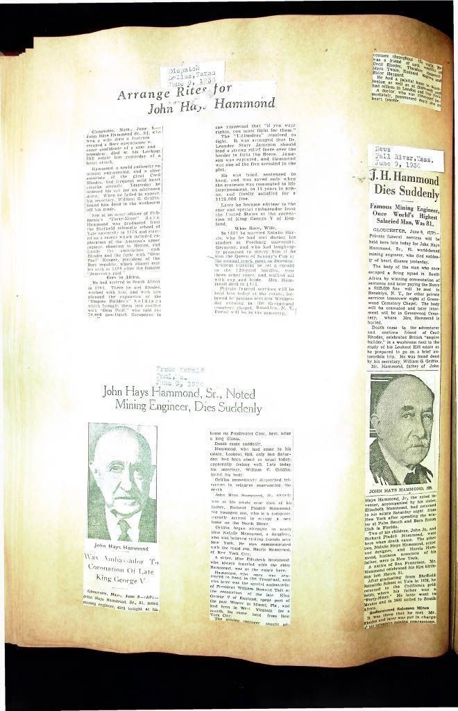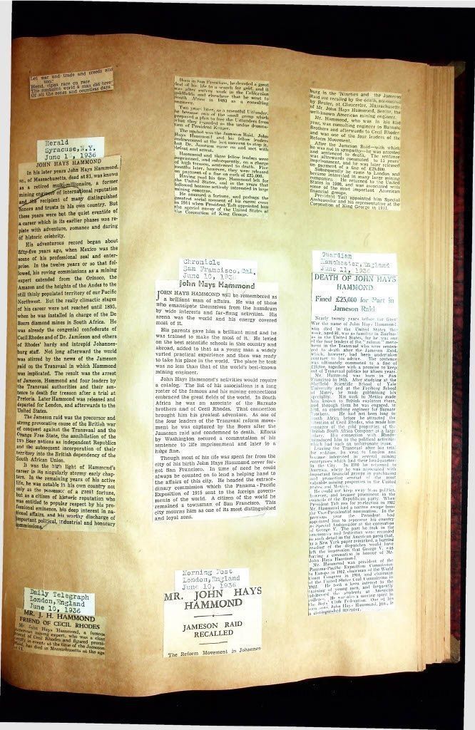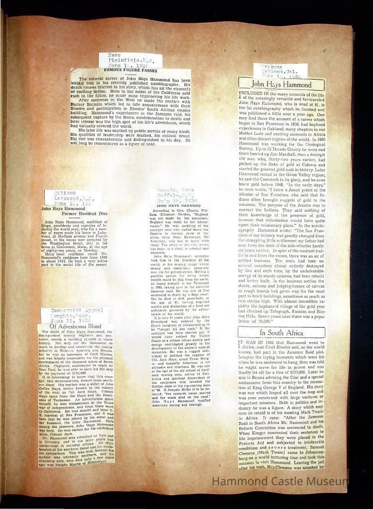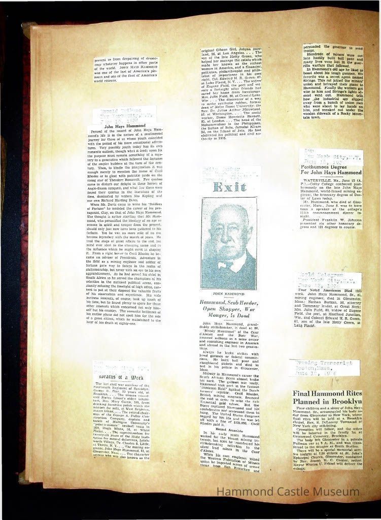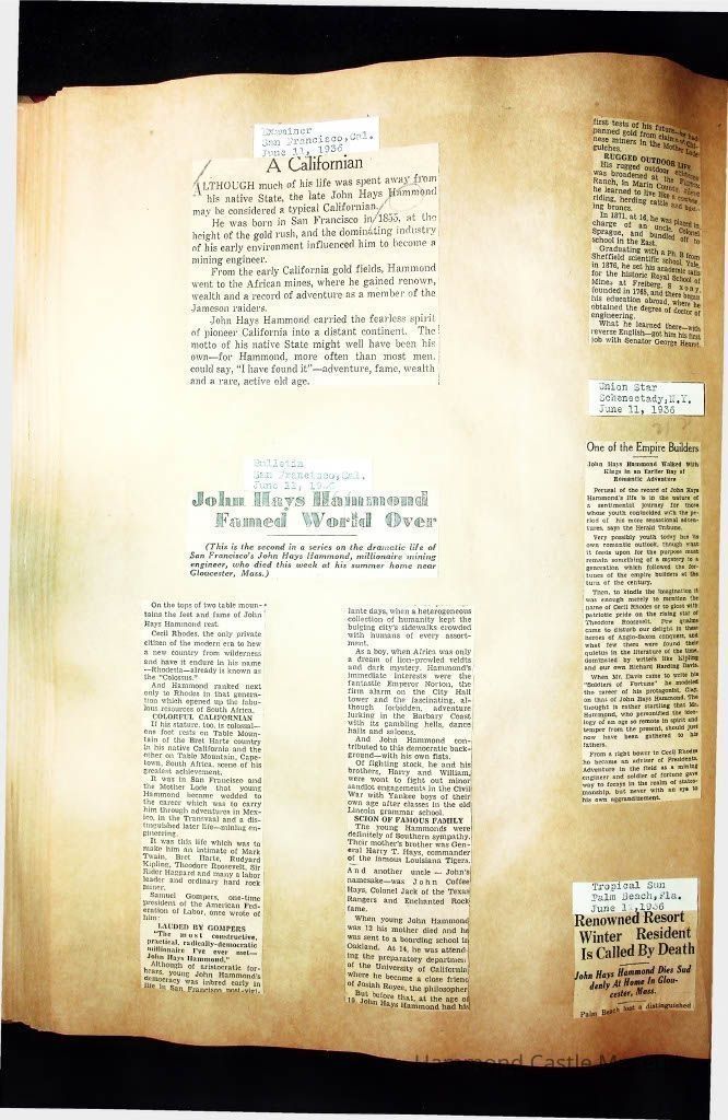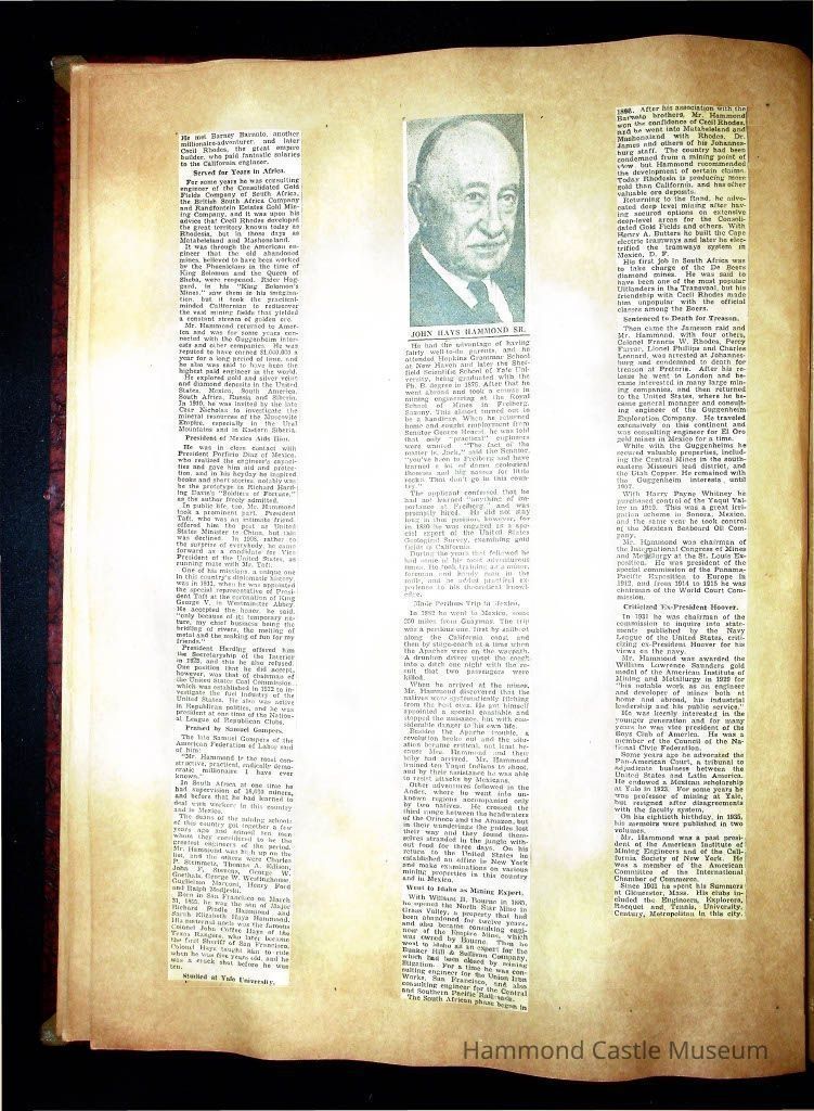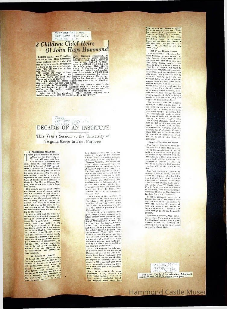 JHH 1936 - In Memoriam scrapbook Articles about John Hays Hammond Sr's death *see index