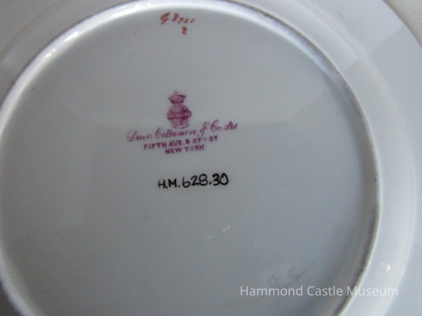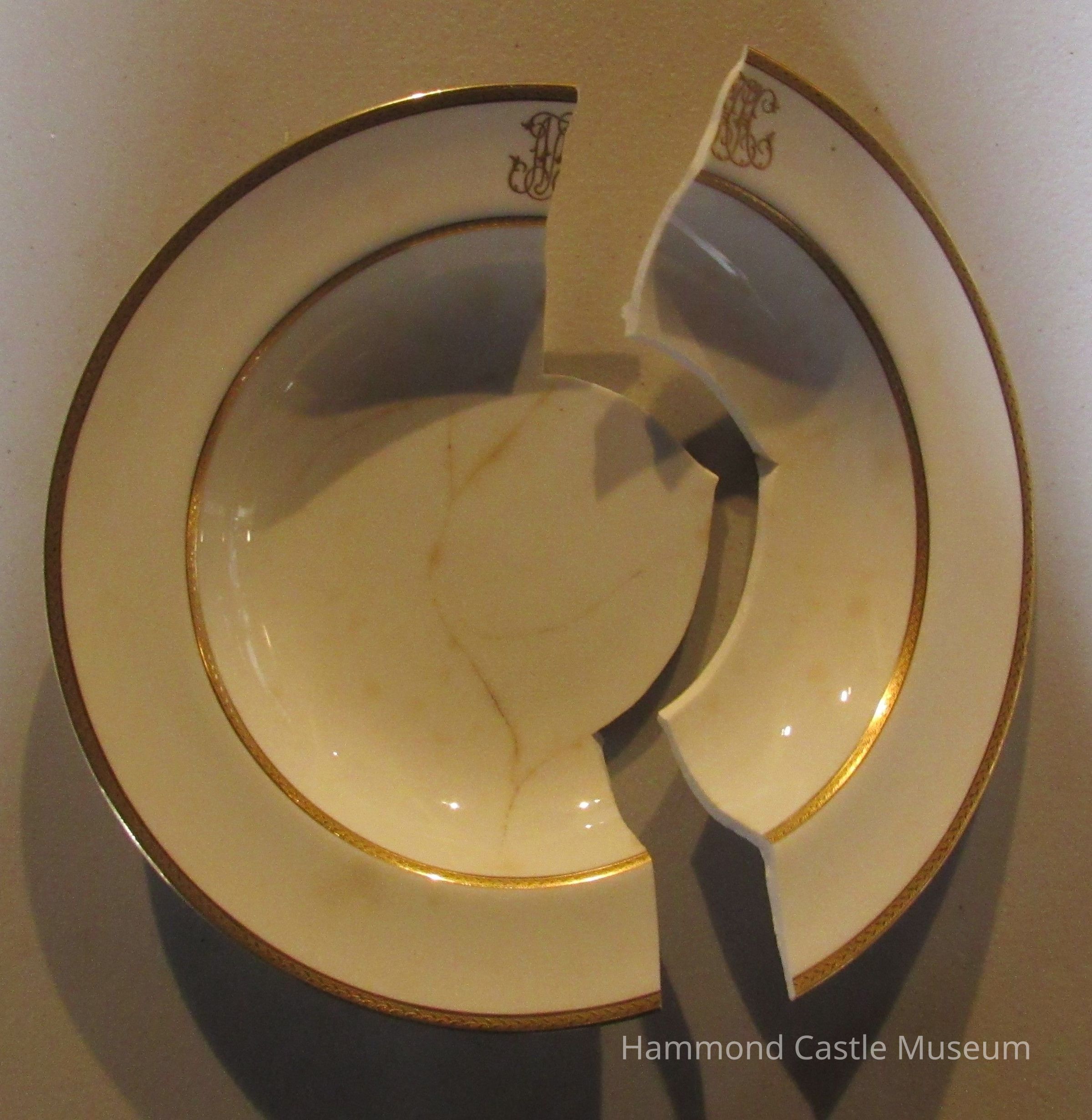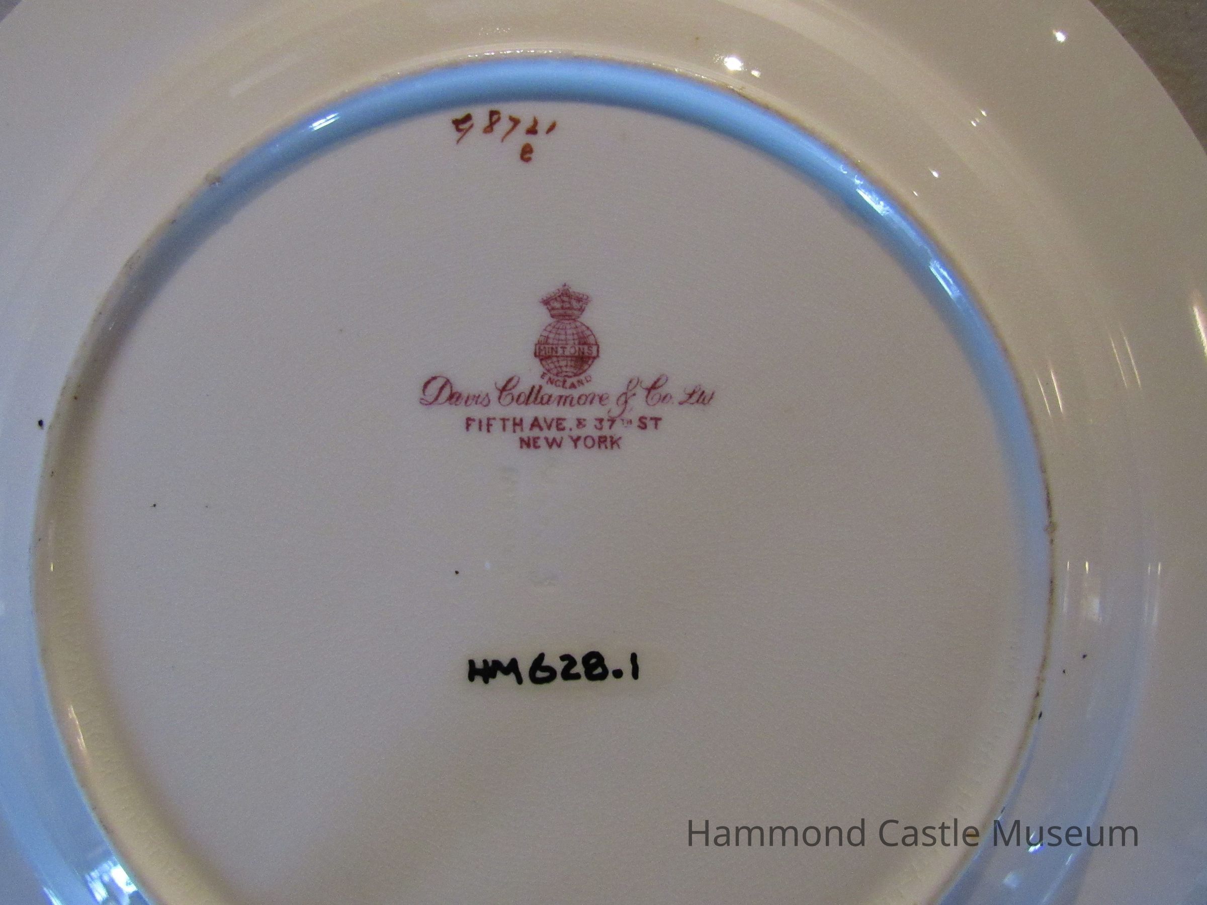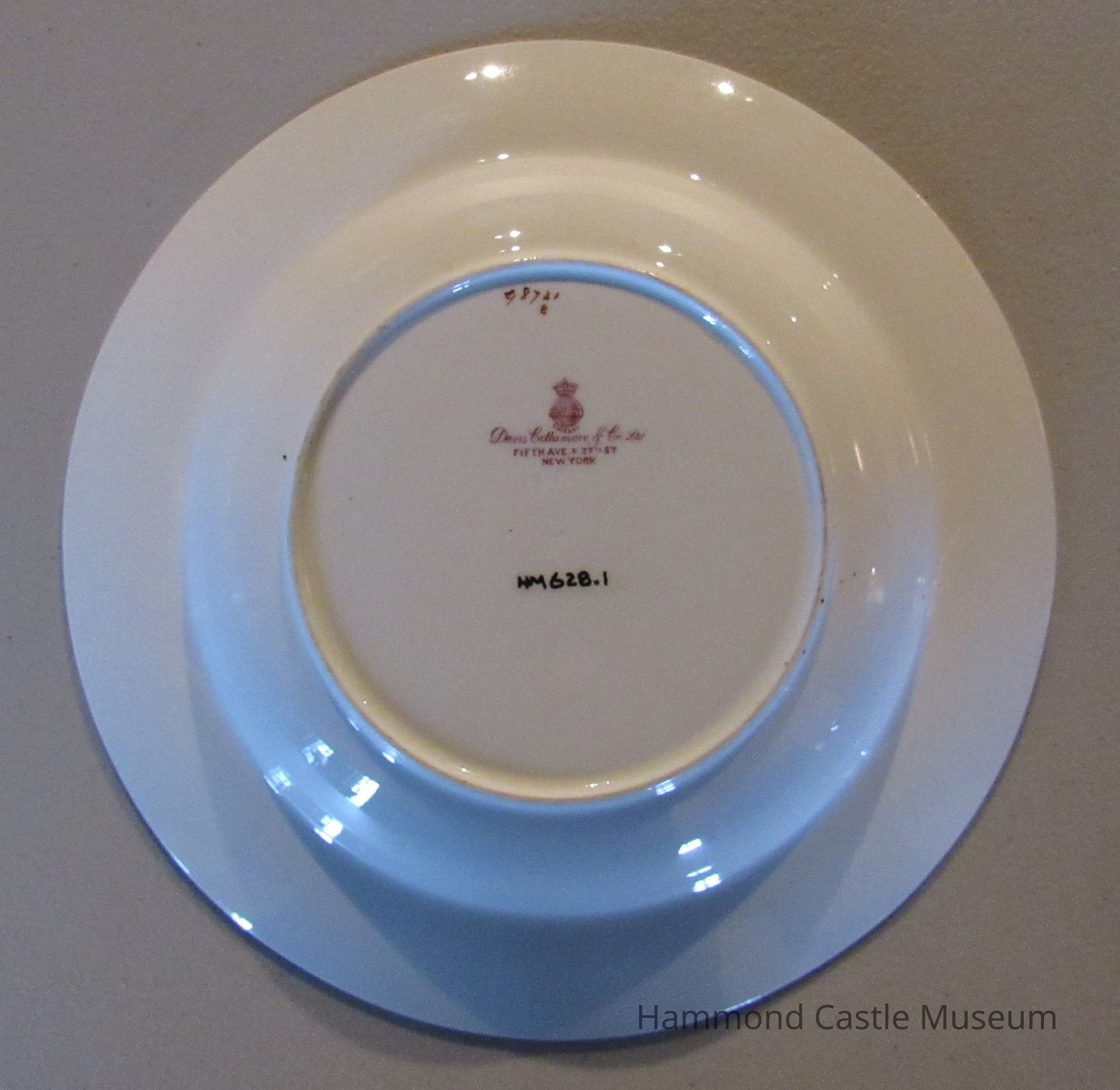 English ceramic soup bowls. Gold line border, wide lip with JHH monogram in gold.