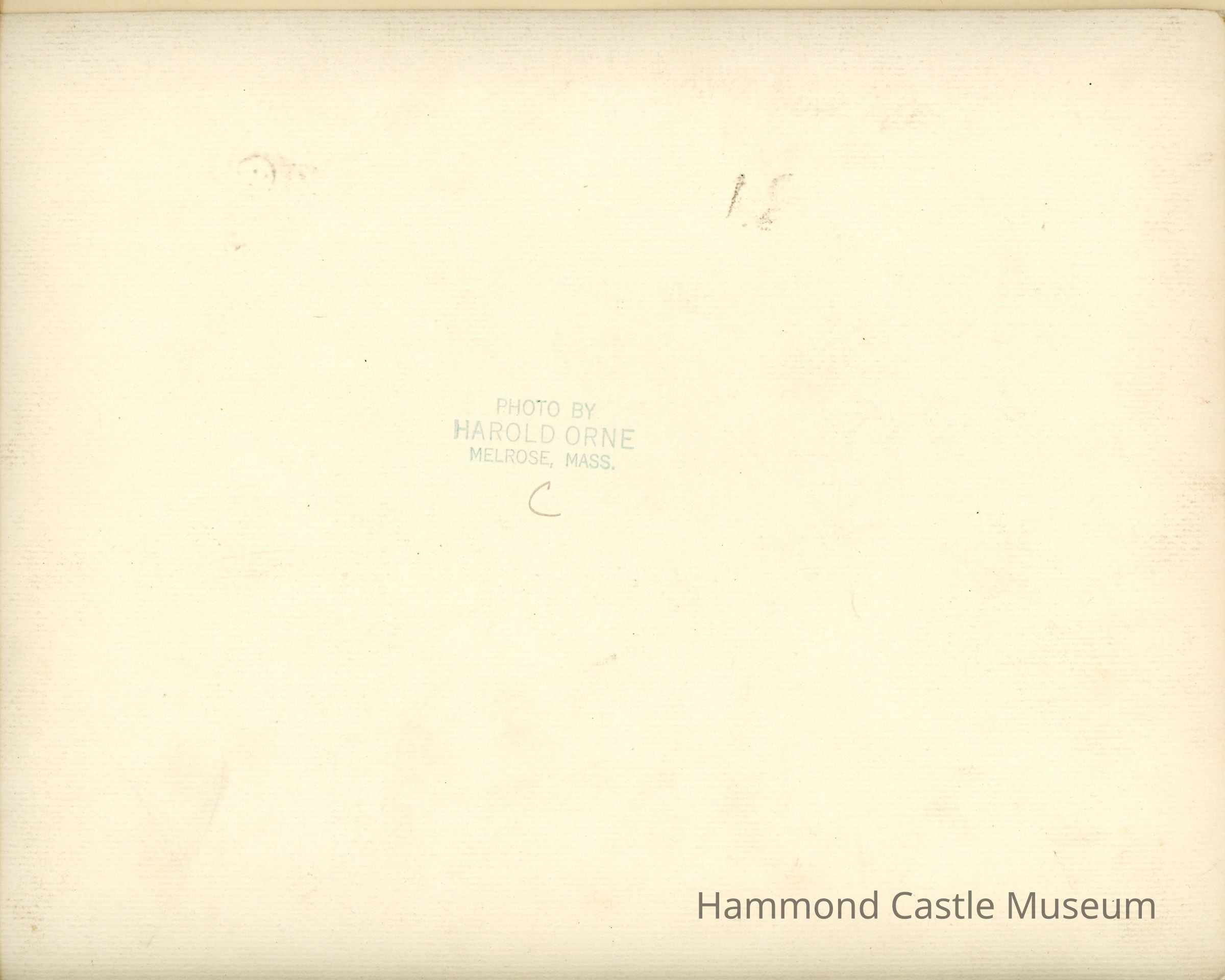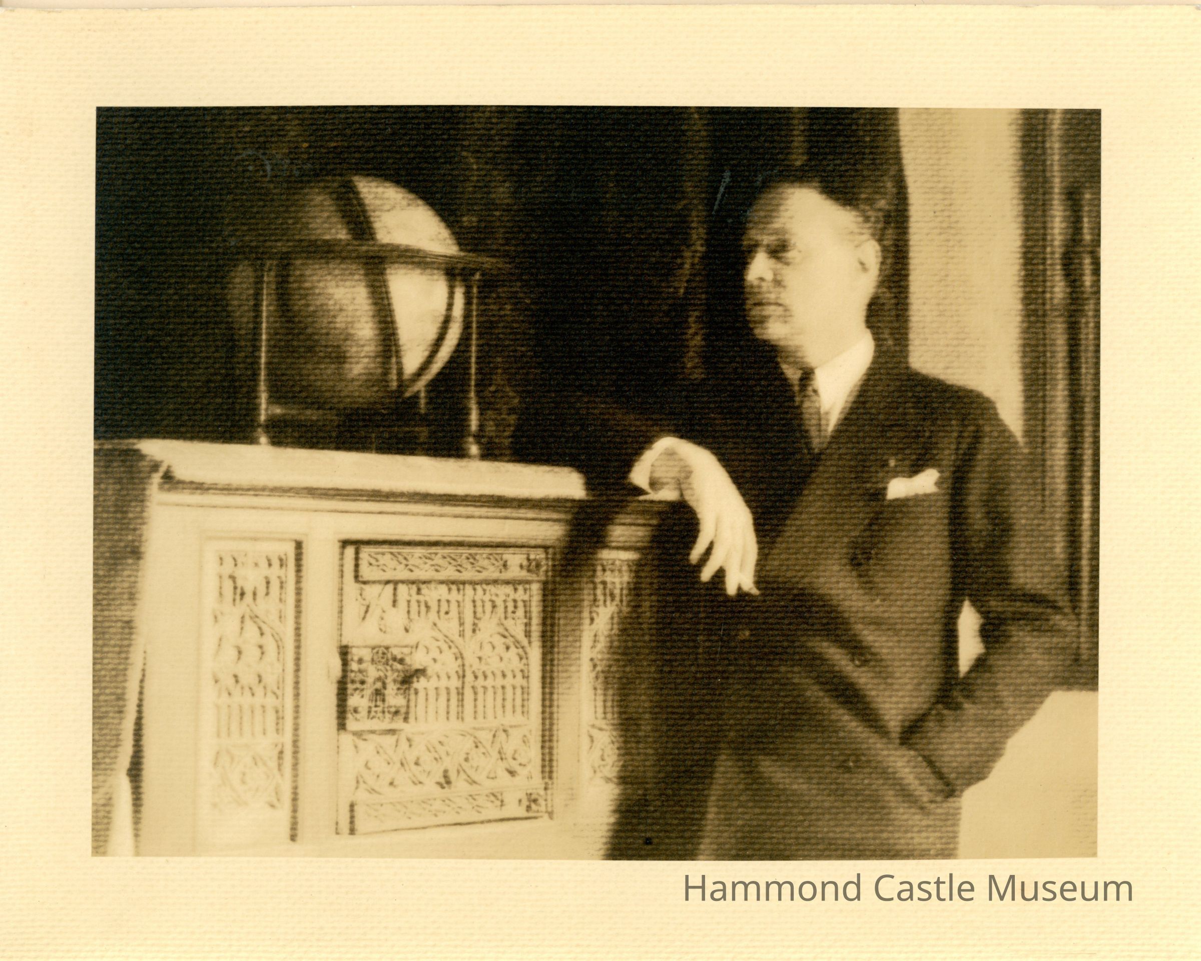 John Hays Hammond Jr in Gothic Guestroom, leaning on credence with astrological globe