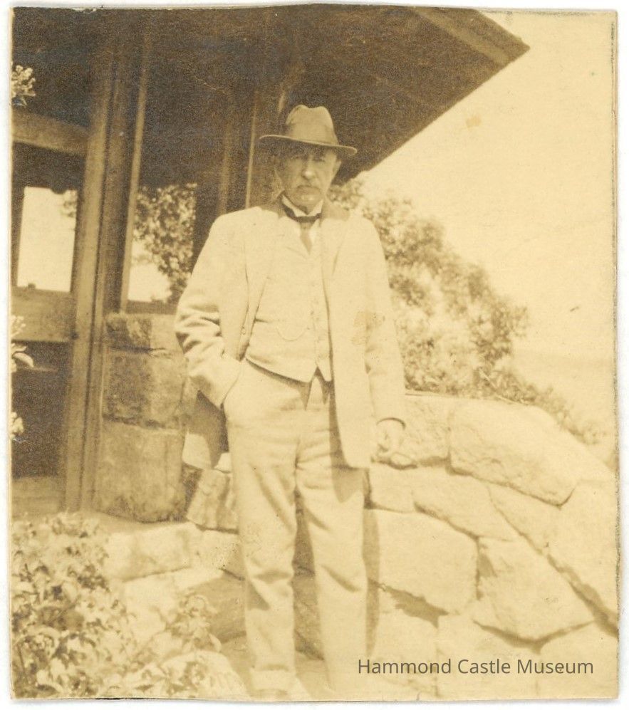 Photo of Hammond Sr outside a porch on a lookout point (possible at Lookout Hill)