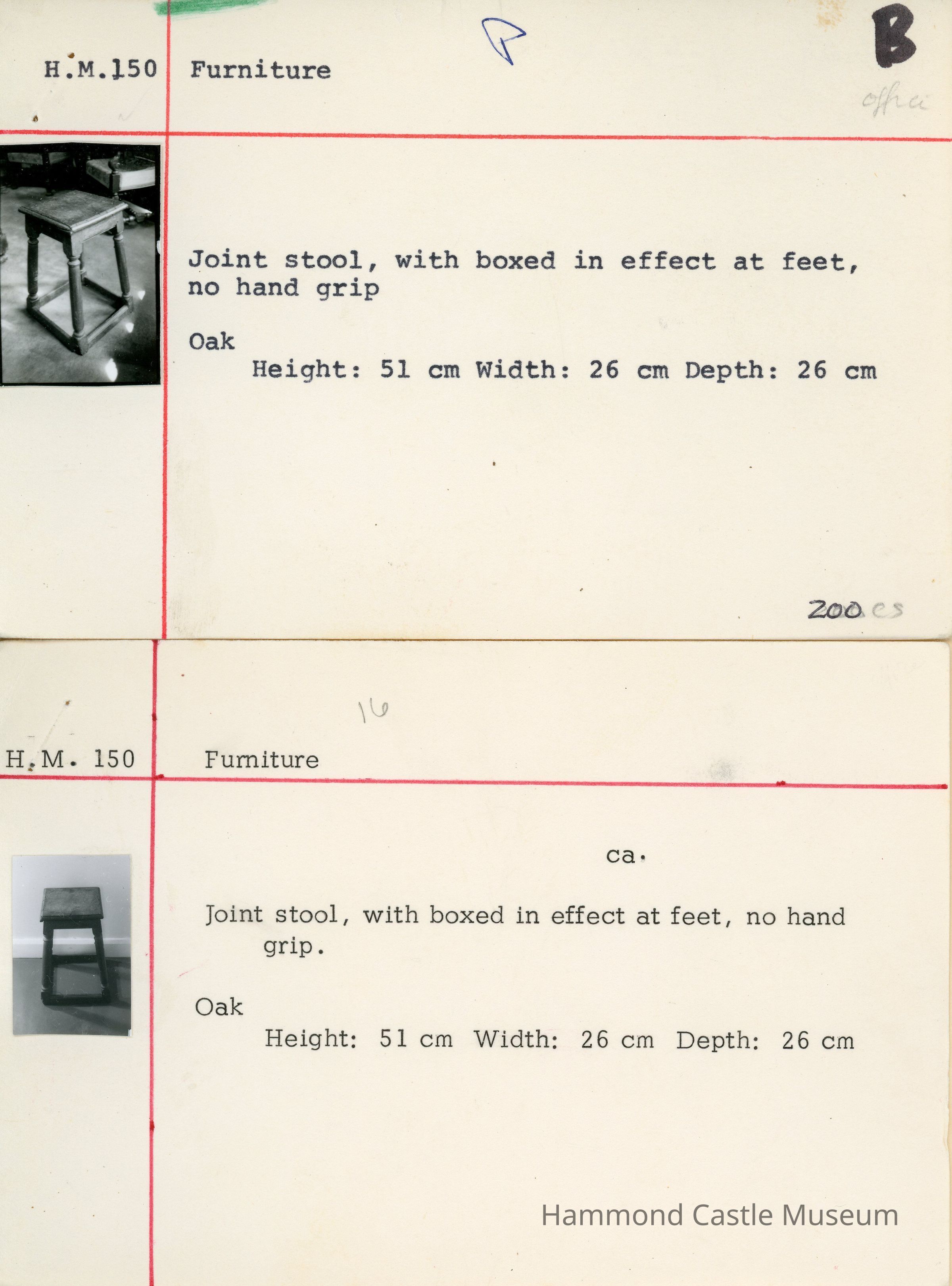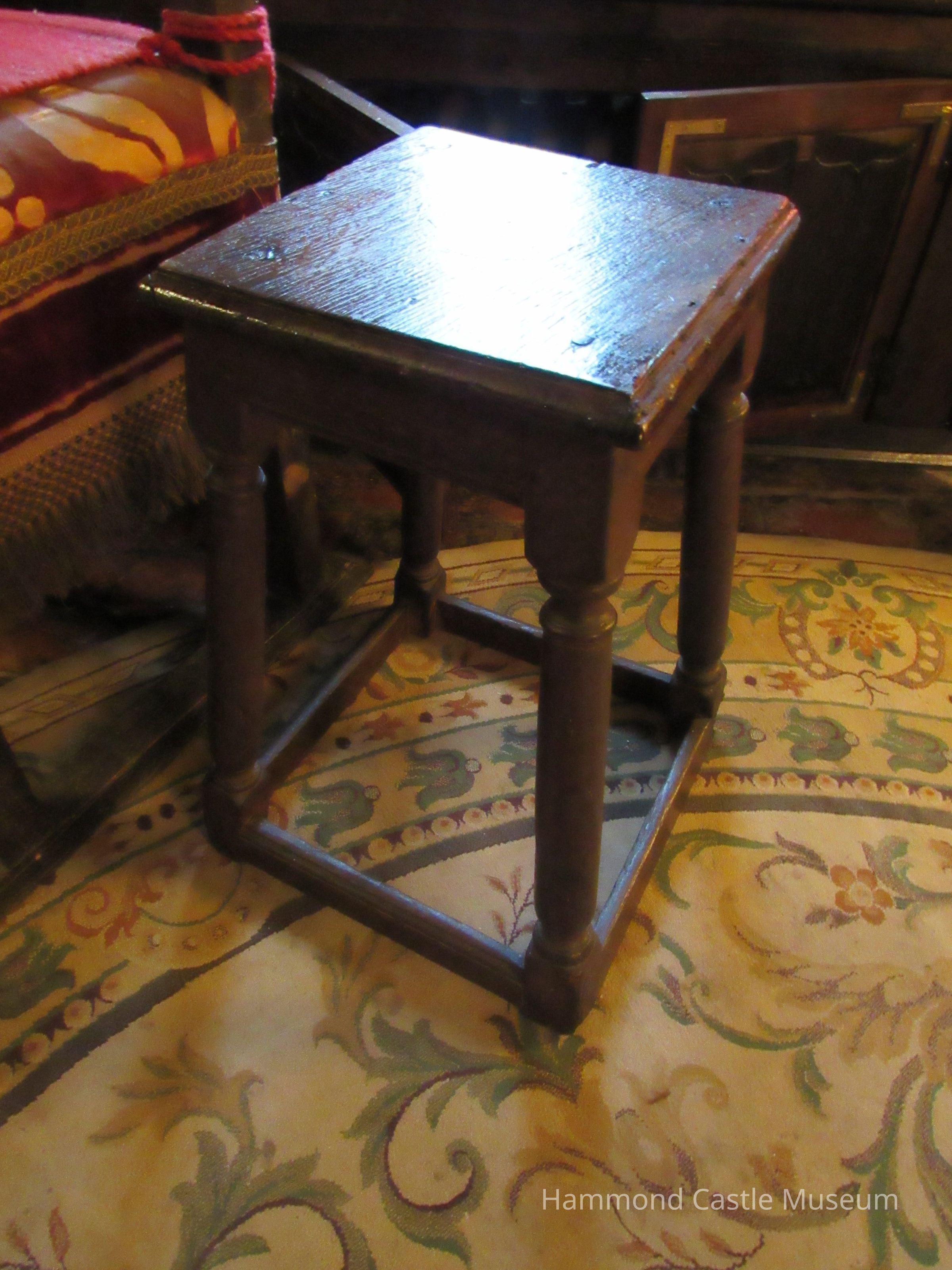 Joint stool, with boxed-in effect at feet, no hand grip.