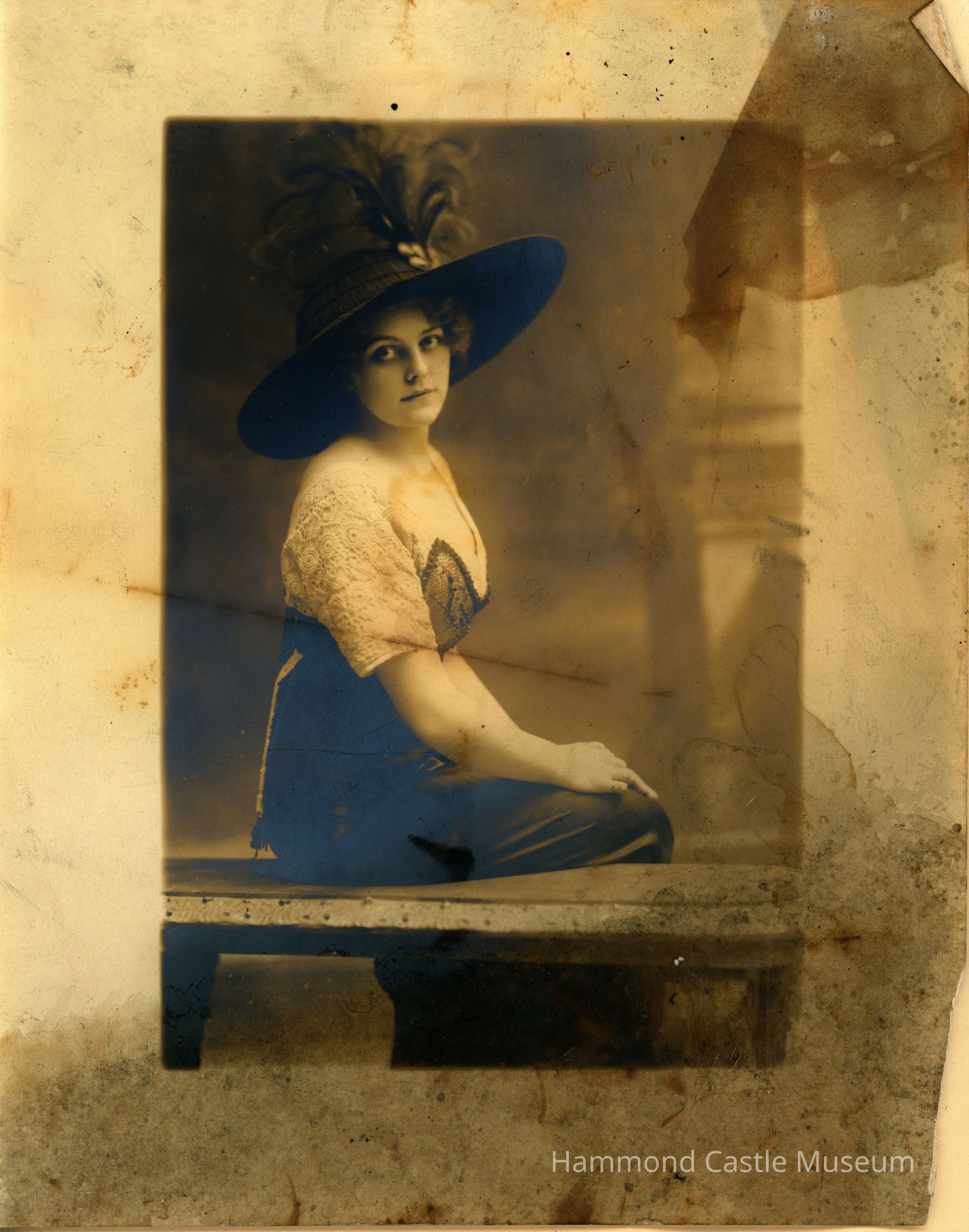 Photo of lady with hat sitting on bench