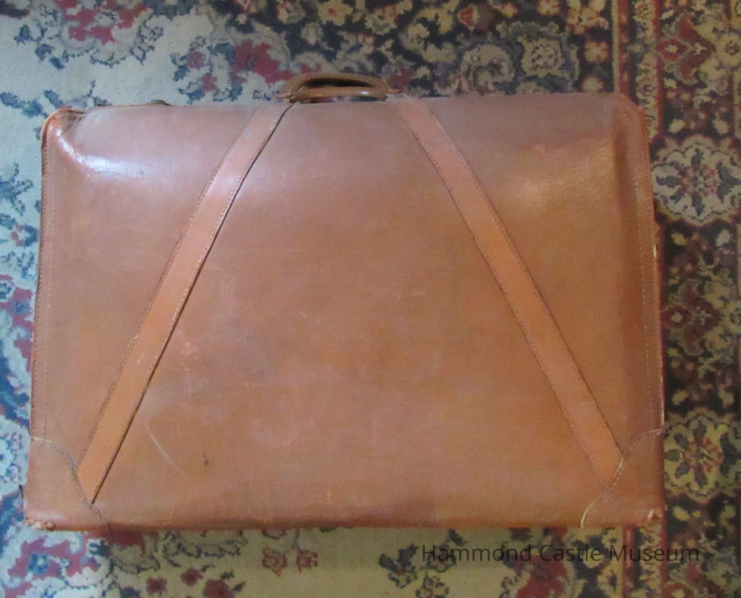 Small Leather Suitcase with diagonal reinforcing straps Though to be Irene's