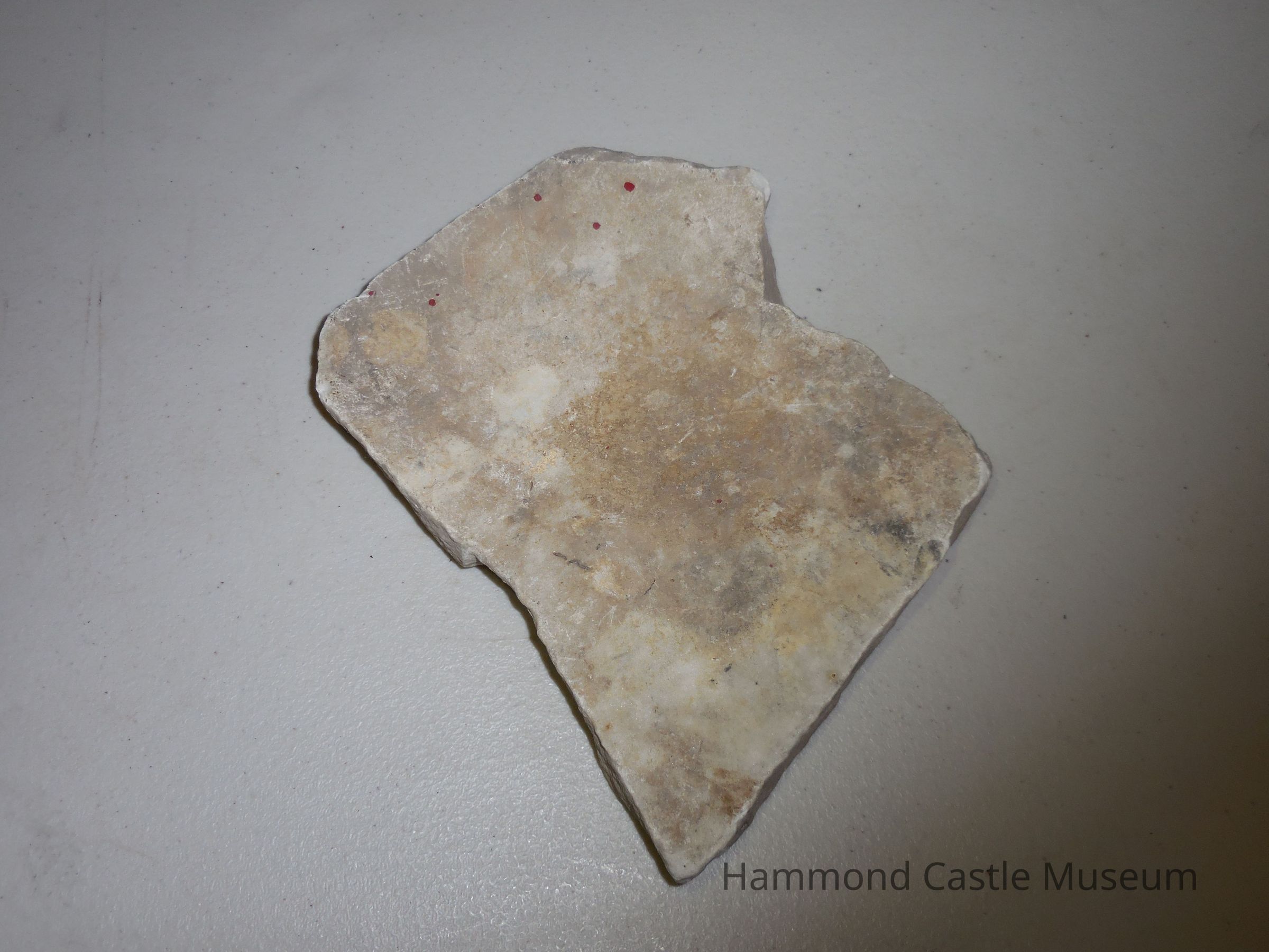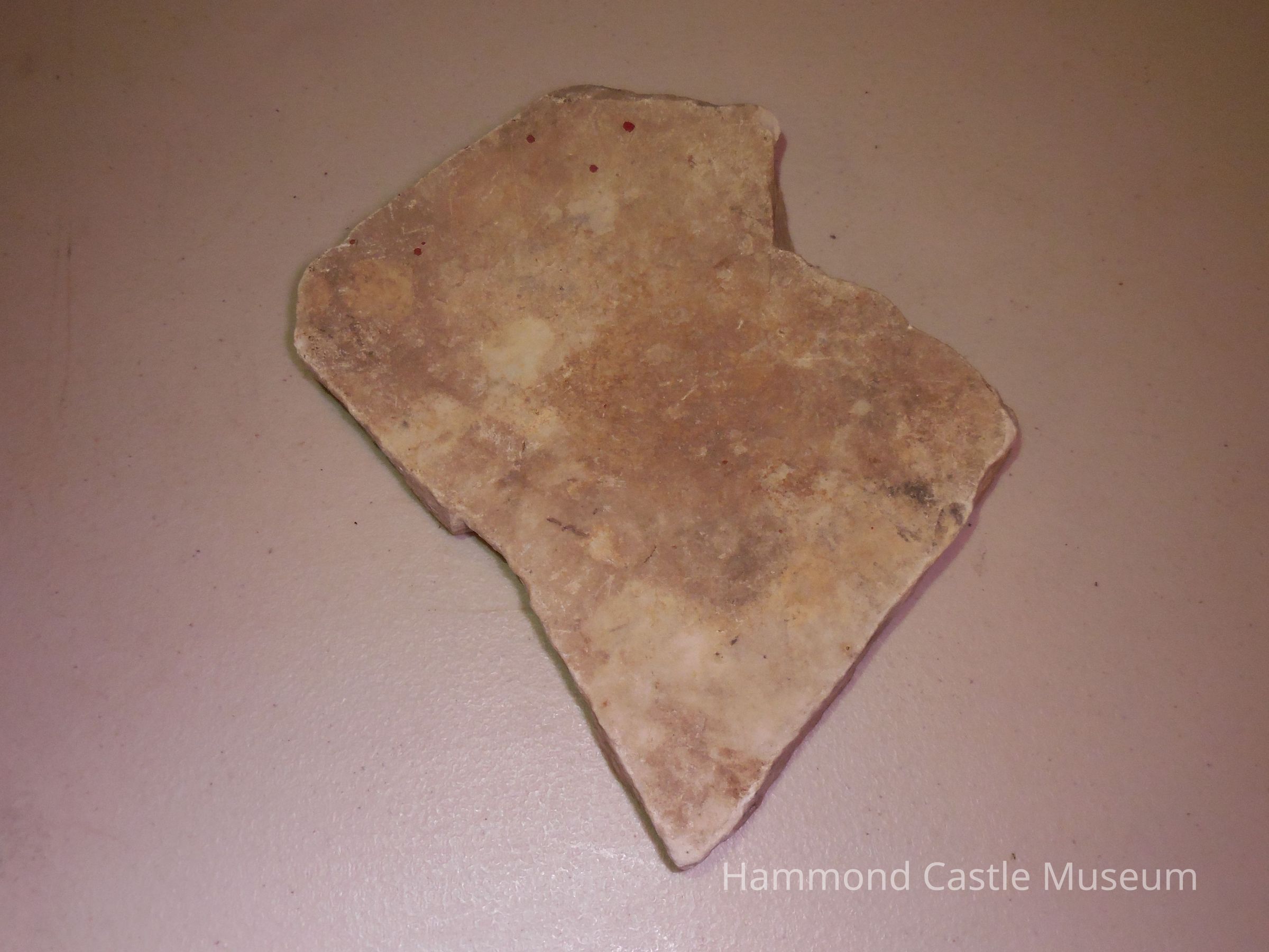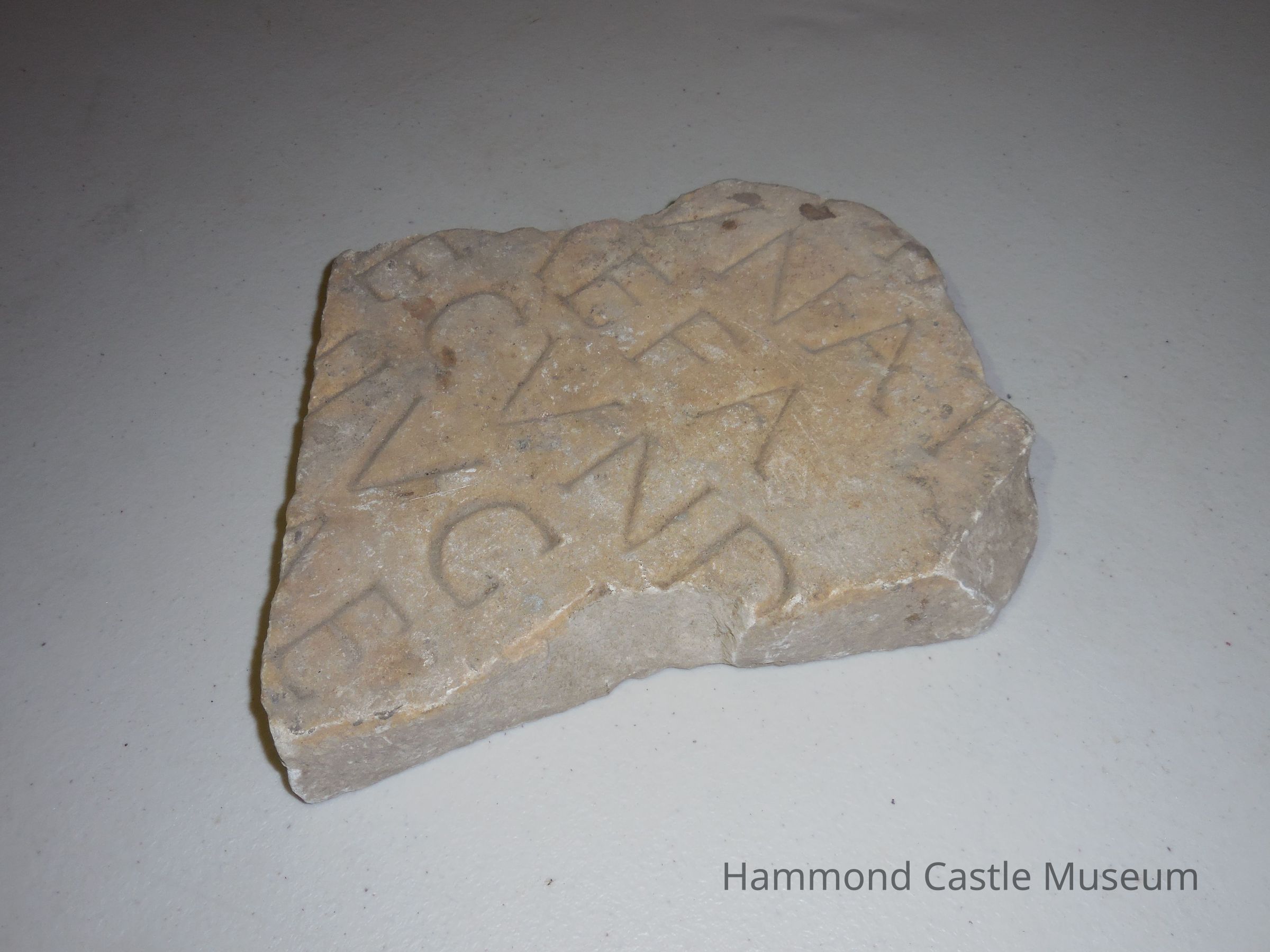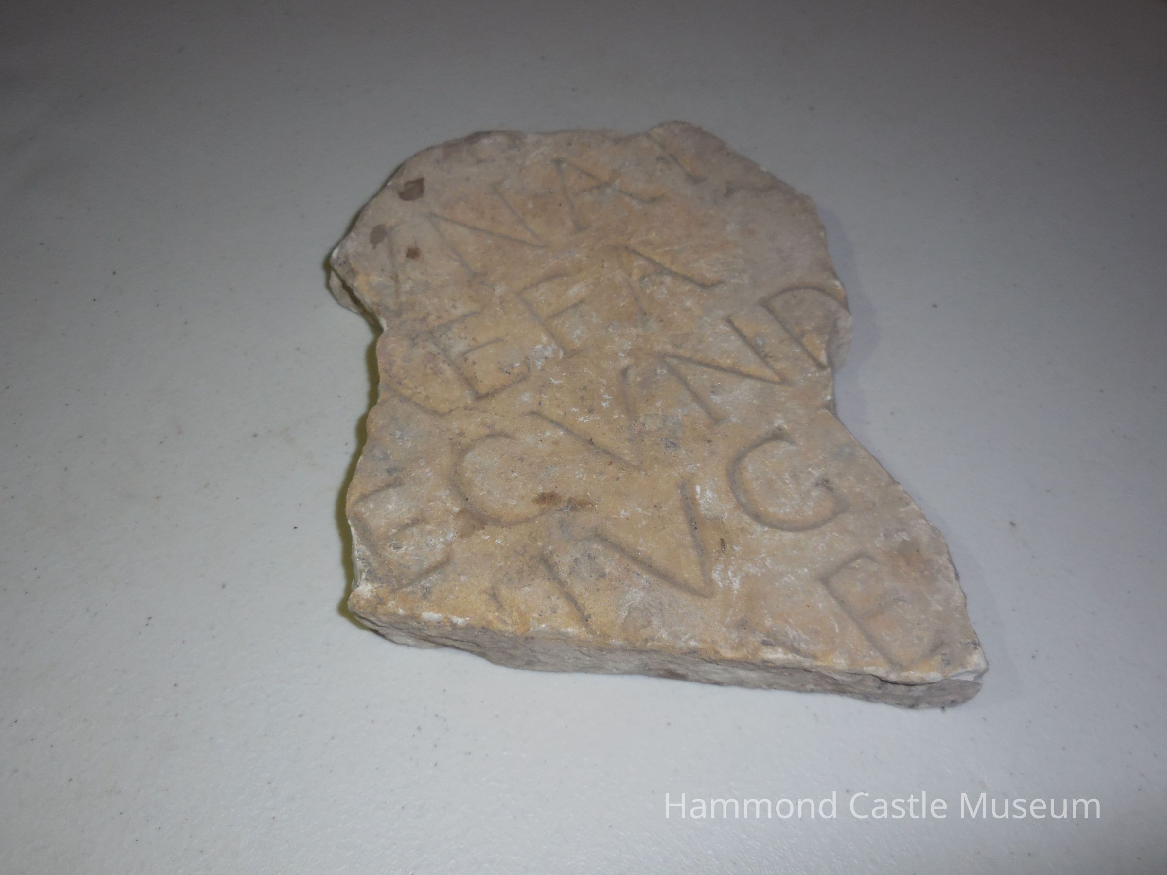 Marble fragment with inscription (in record-storage closet) 'Reportedly Roman, but possibly forgery Inscription - NAT AEFA ECVND IVG AE * no translation