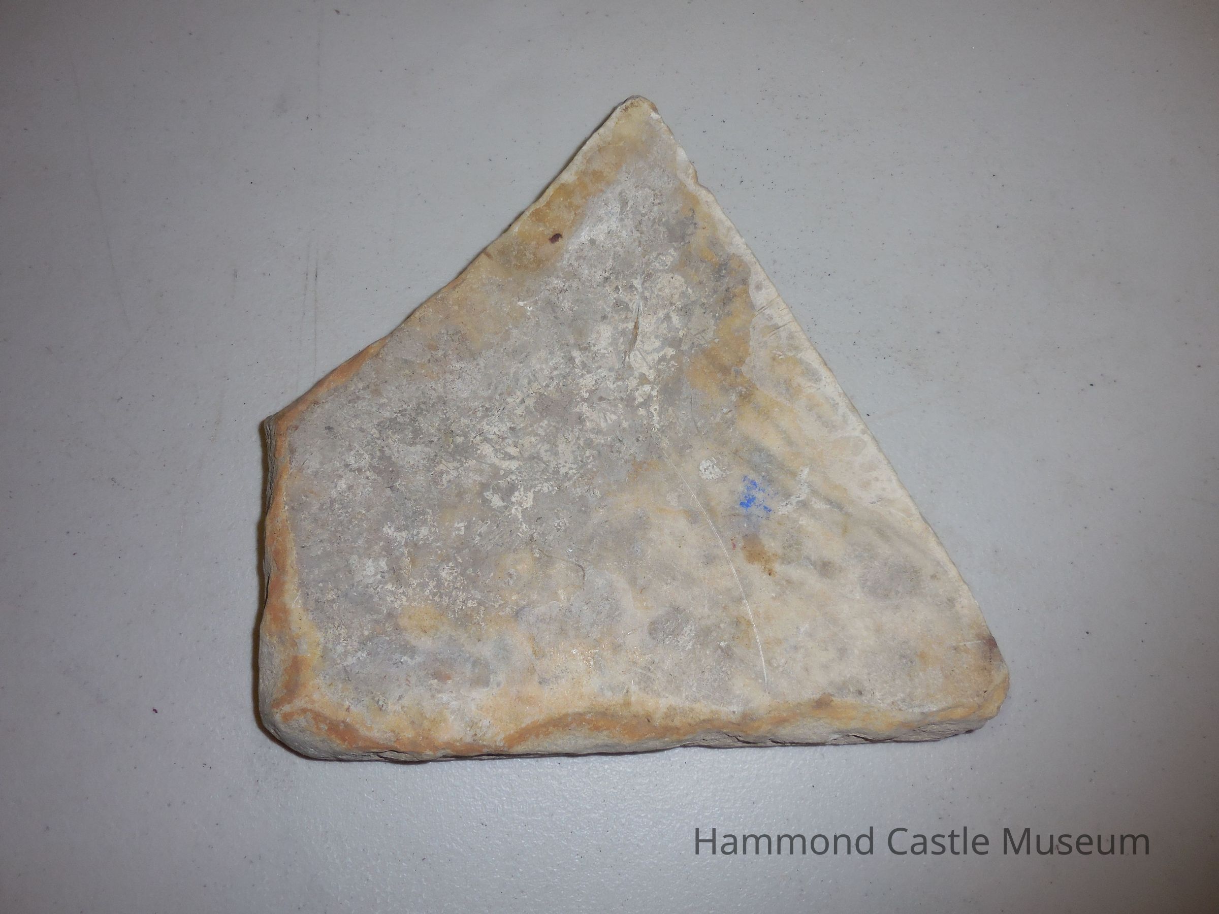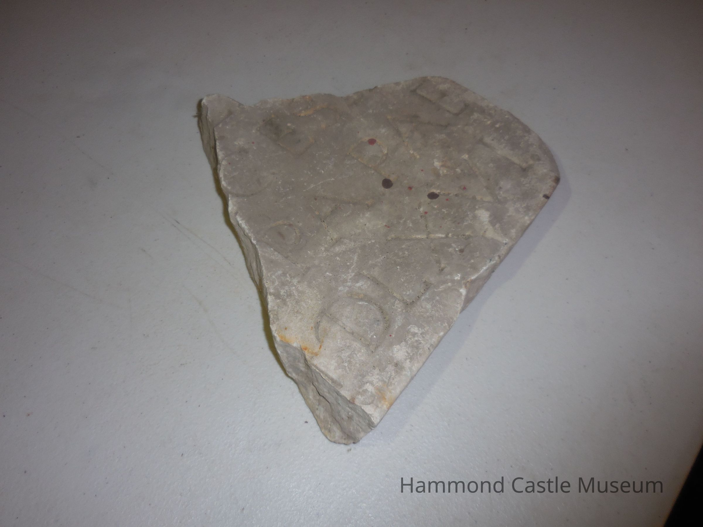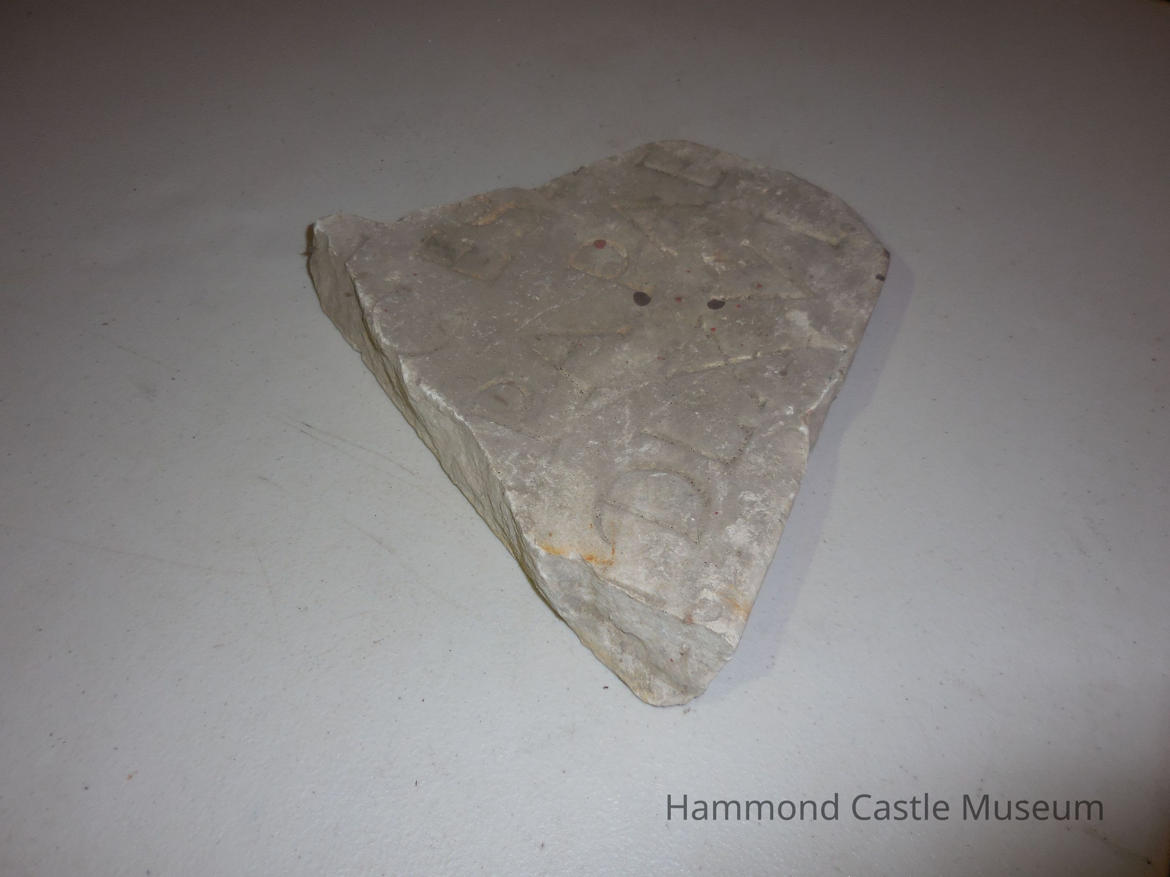 Marble fragment with inscription (in record-storage closet) 'Reportedly Roman, but possibly forgery inscribed - A PAPAE DLXVI * no translation