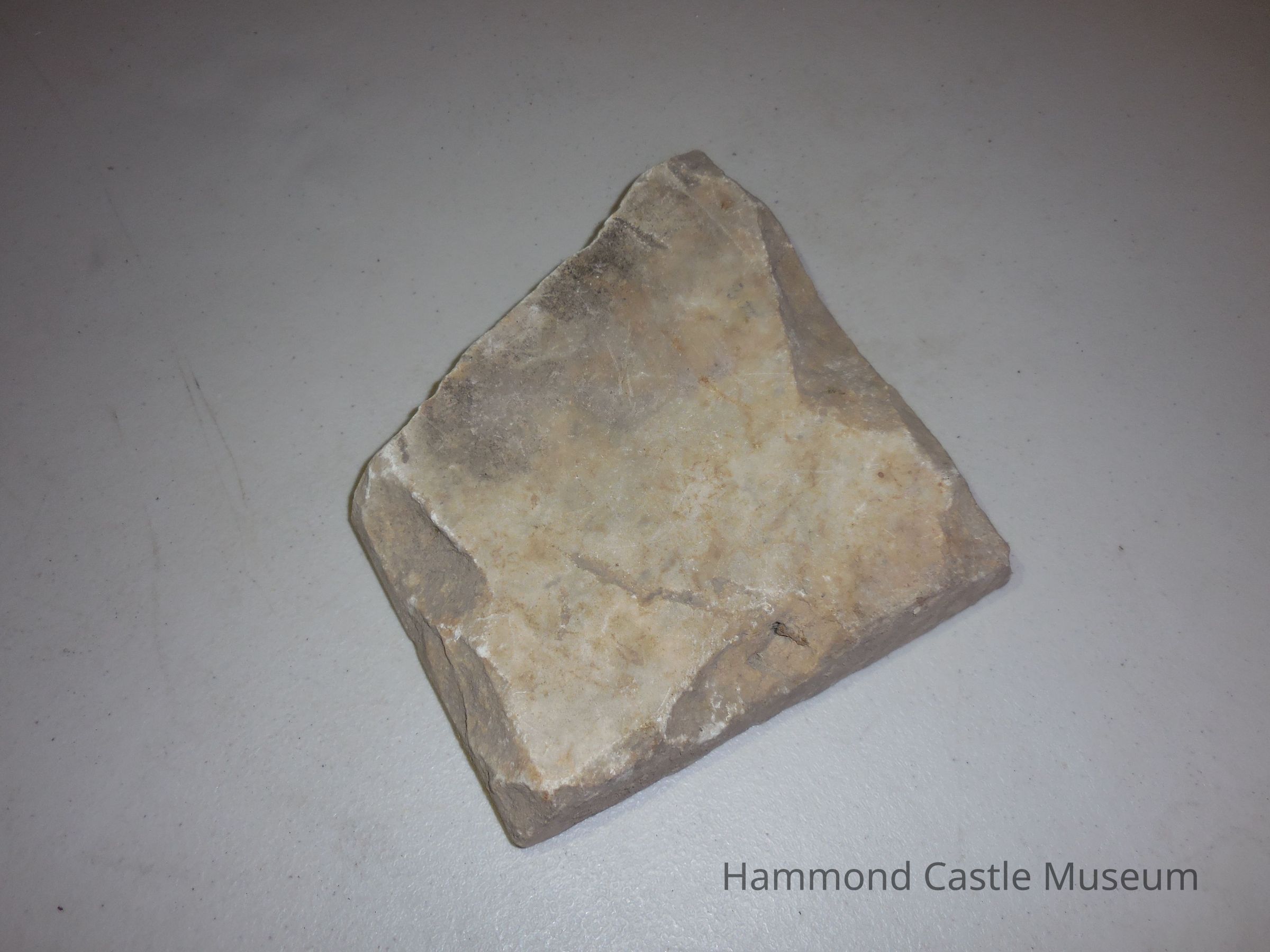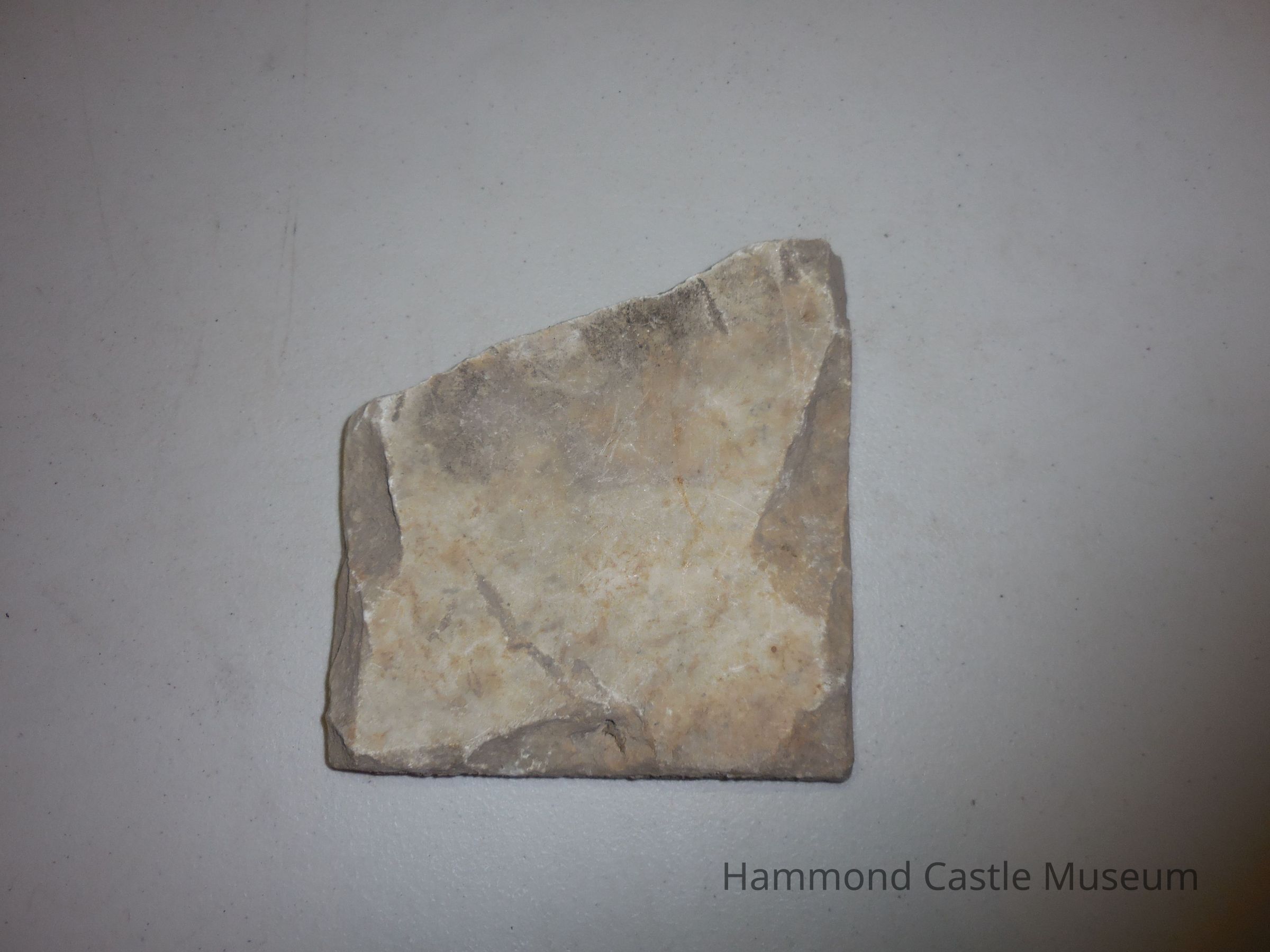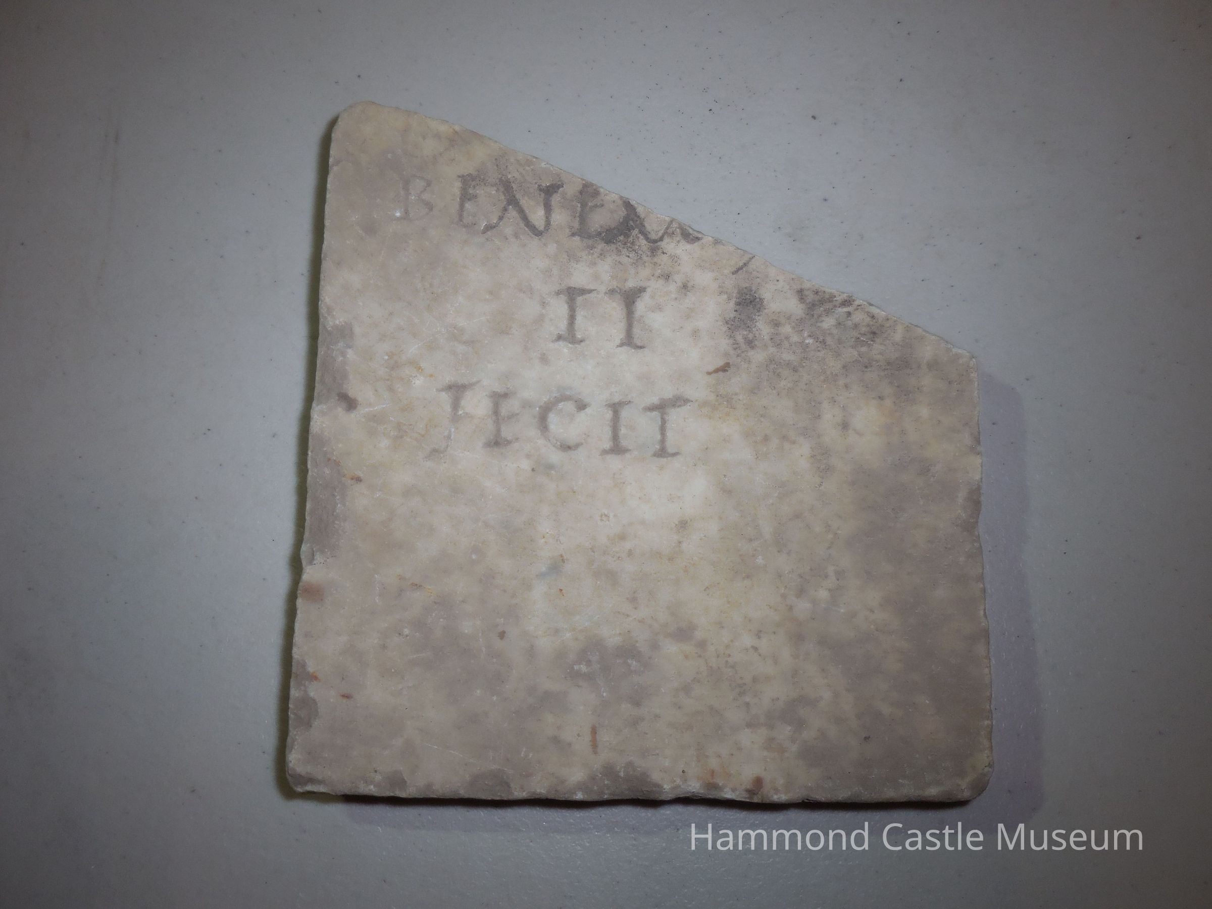 Marble fragment with inscription (in record-storage closet) 'Reportedly Roman, but possibly forgery inscribed - ENL II TECIT * no translation