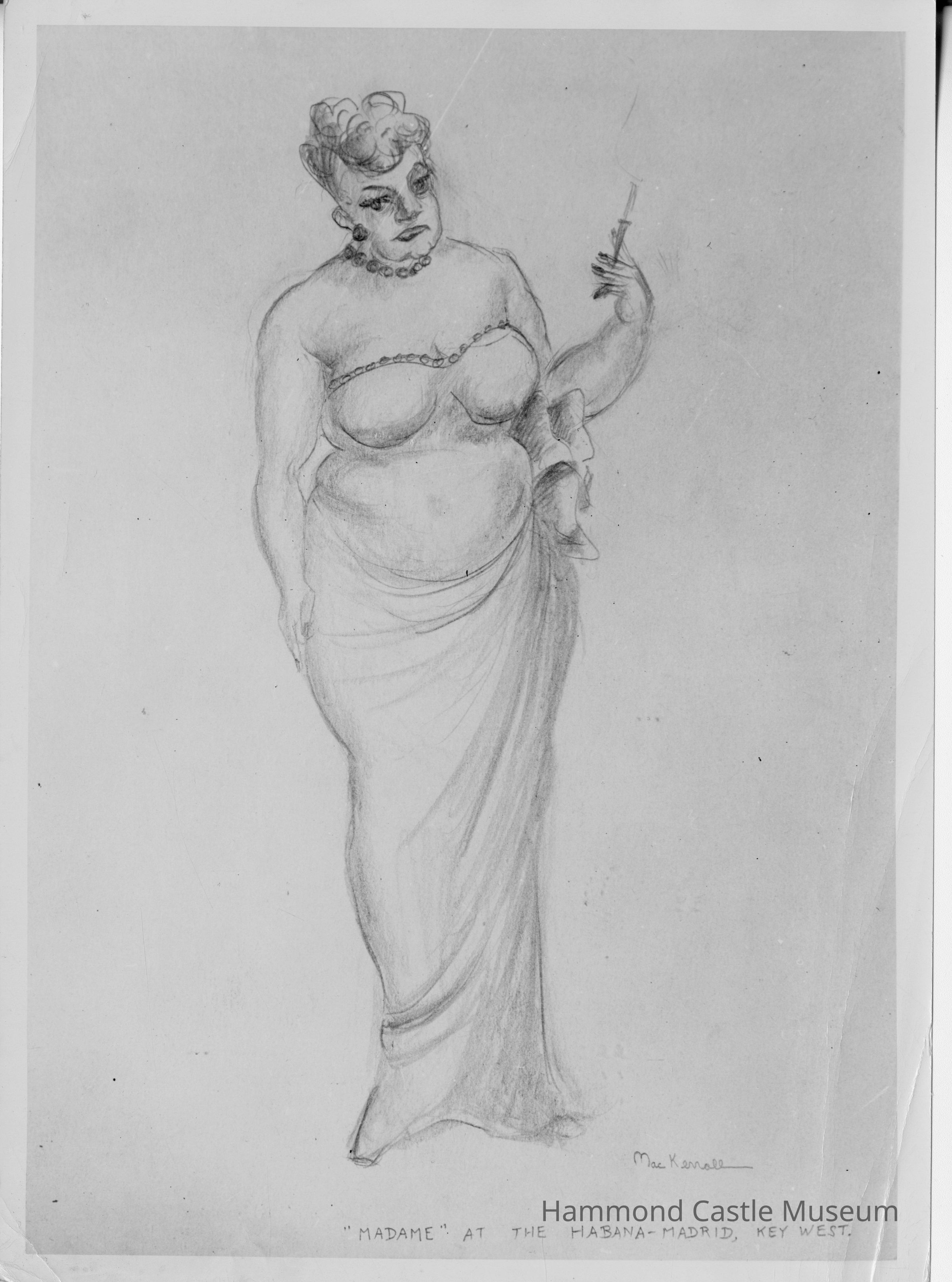 Photo of May West sketch Labeled - "Mae Kerral "Madame" at the Habana-Madrid, Key West"