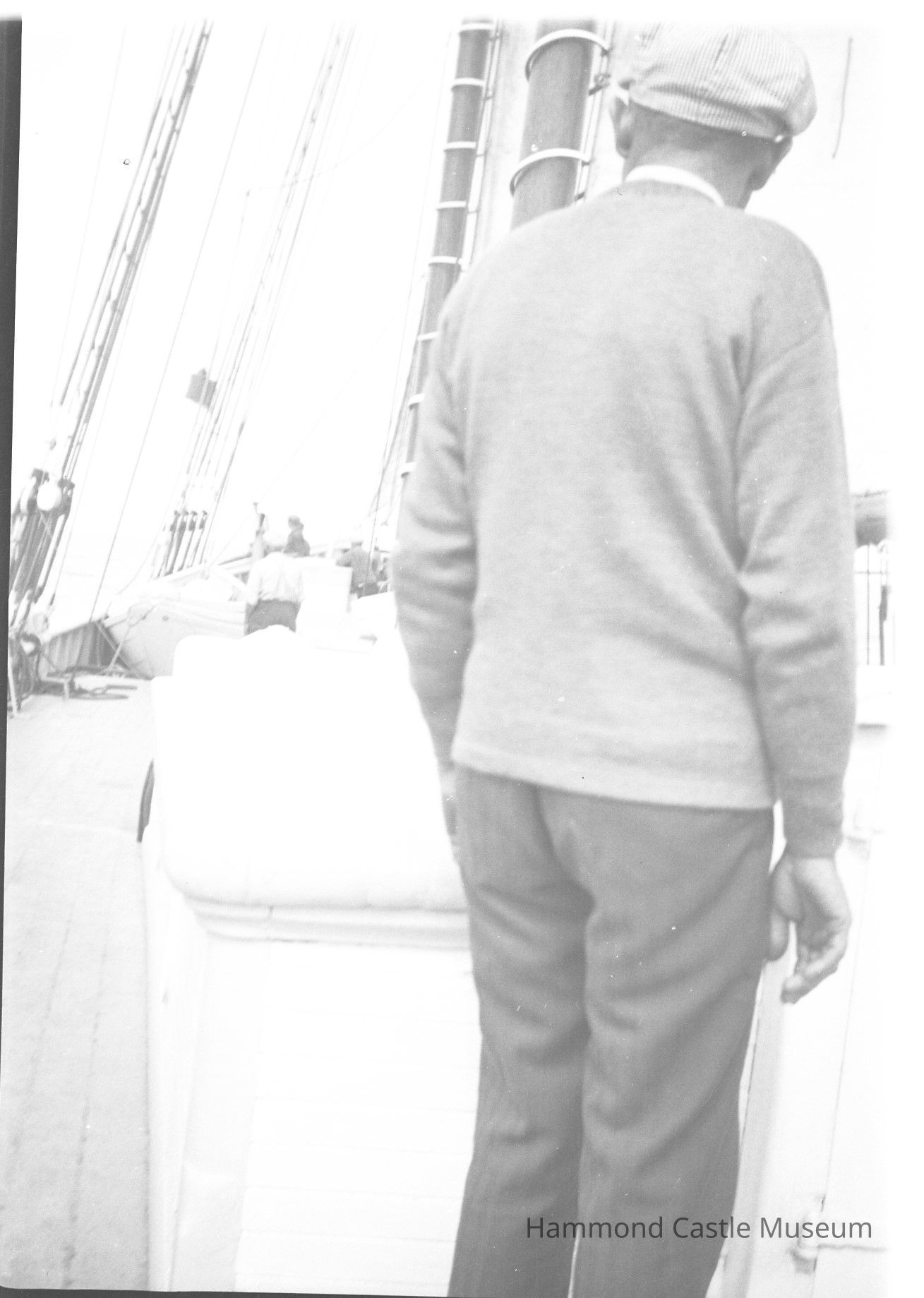 Negative of men in deck of Hammond schooner Odysseus