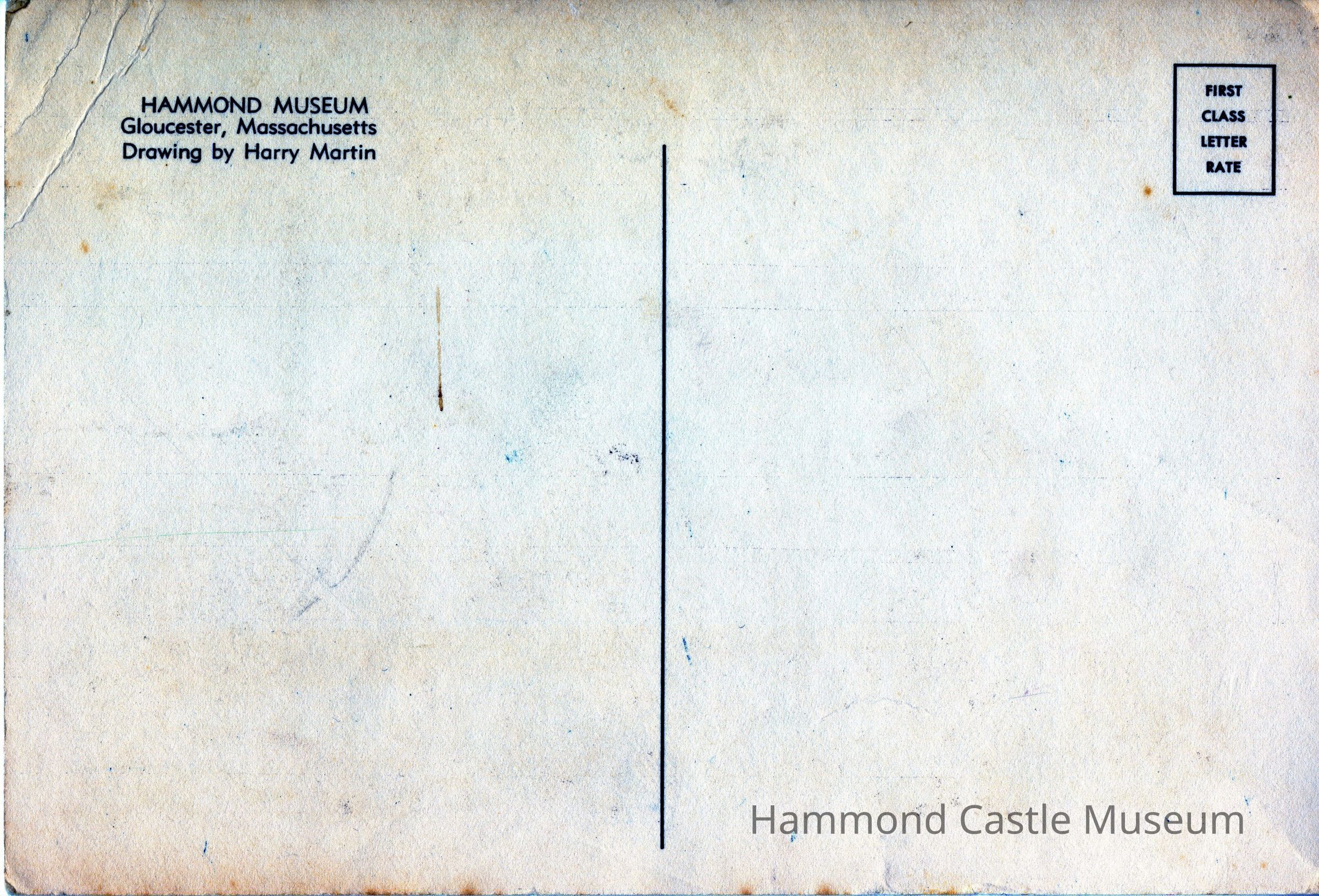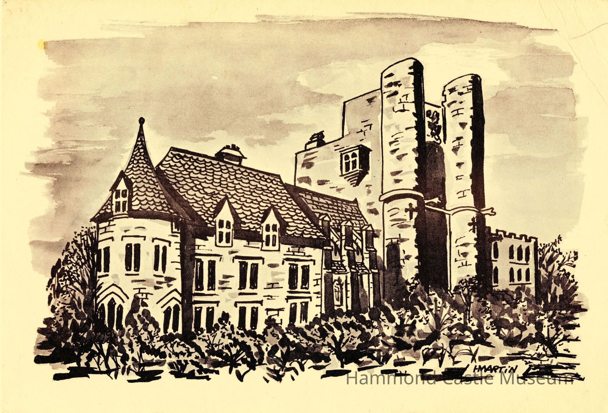 Postcard of Harry Martin drawing of ocean side of castle
