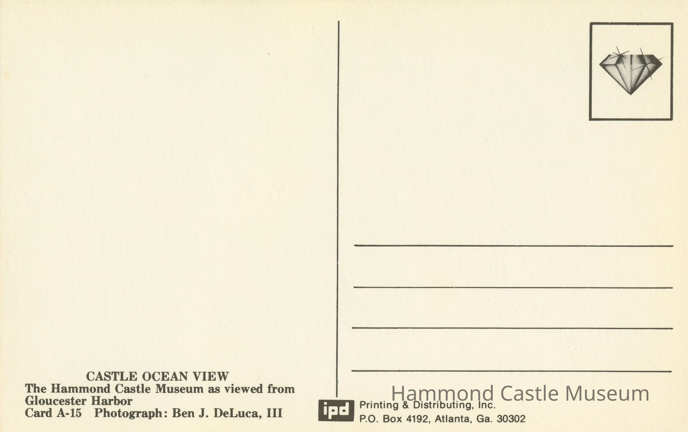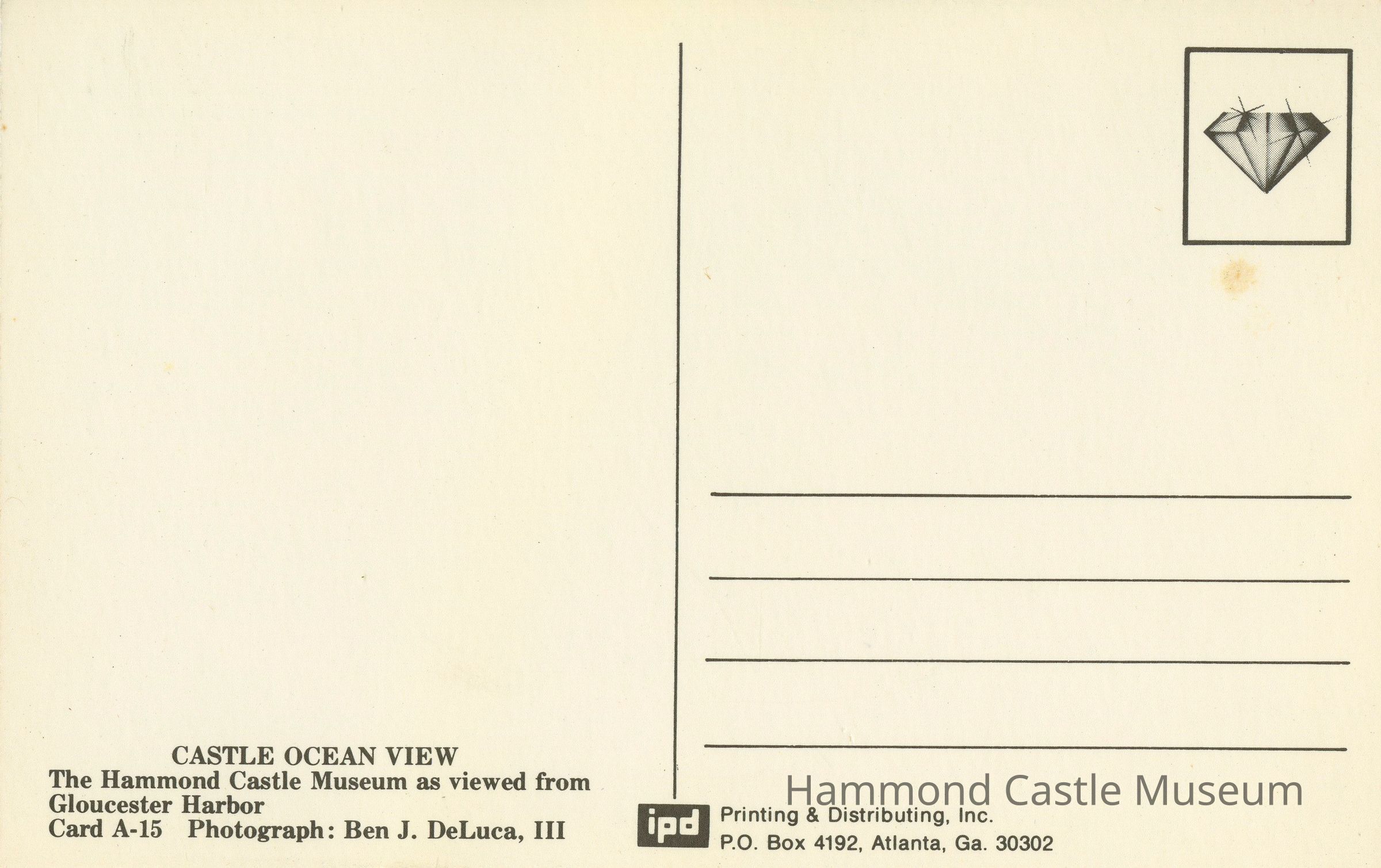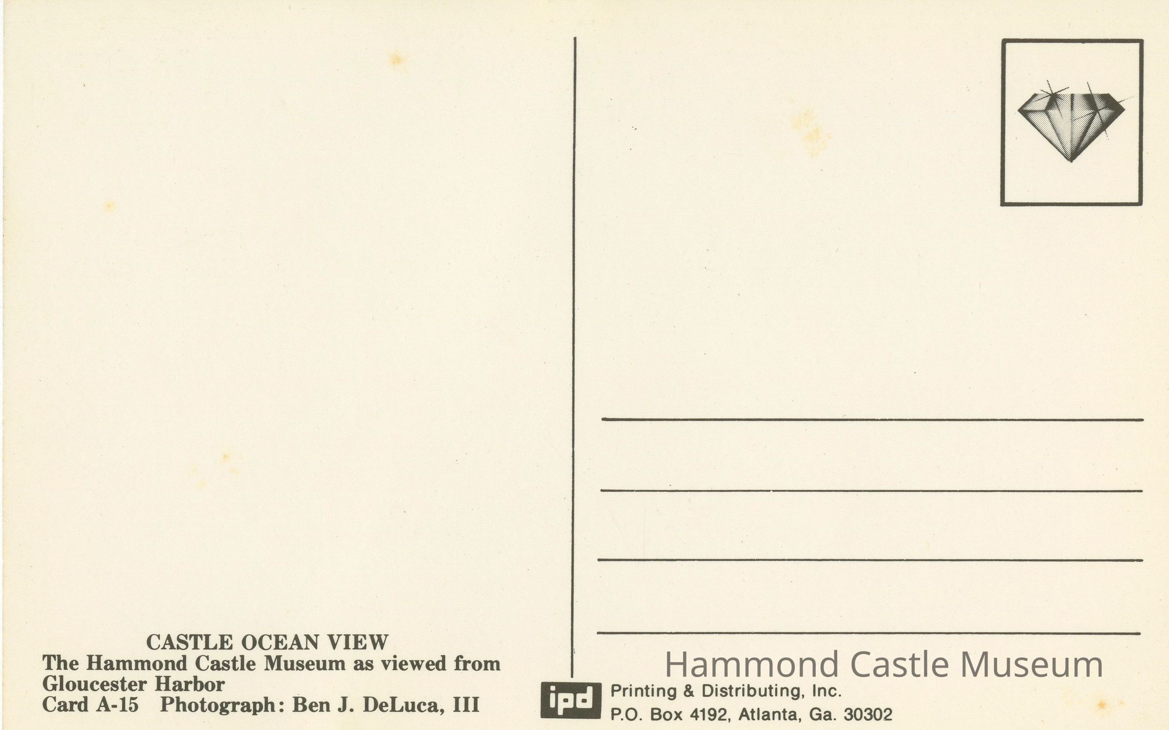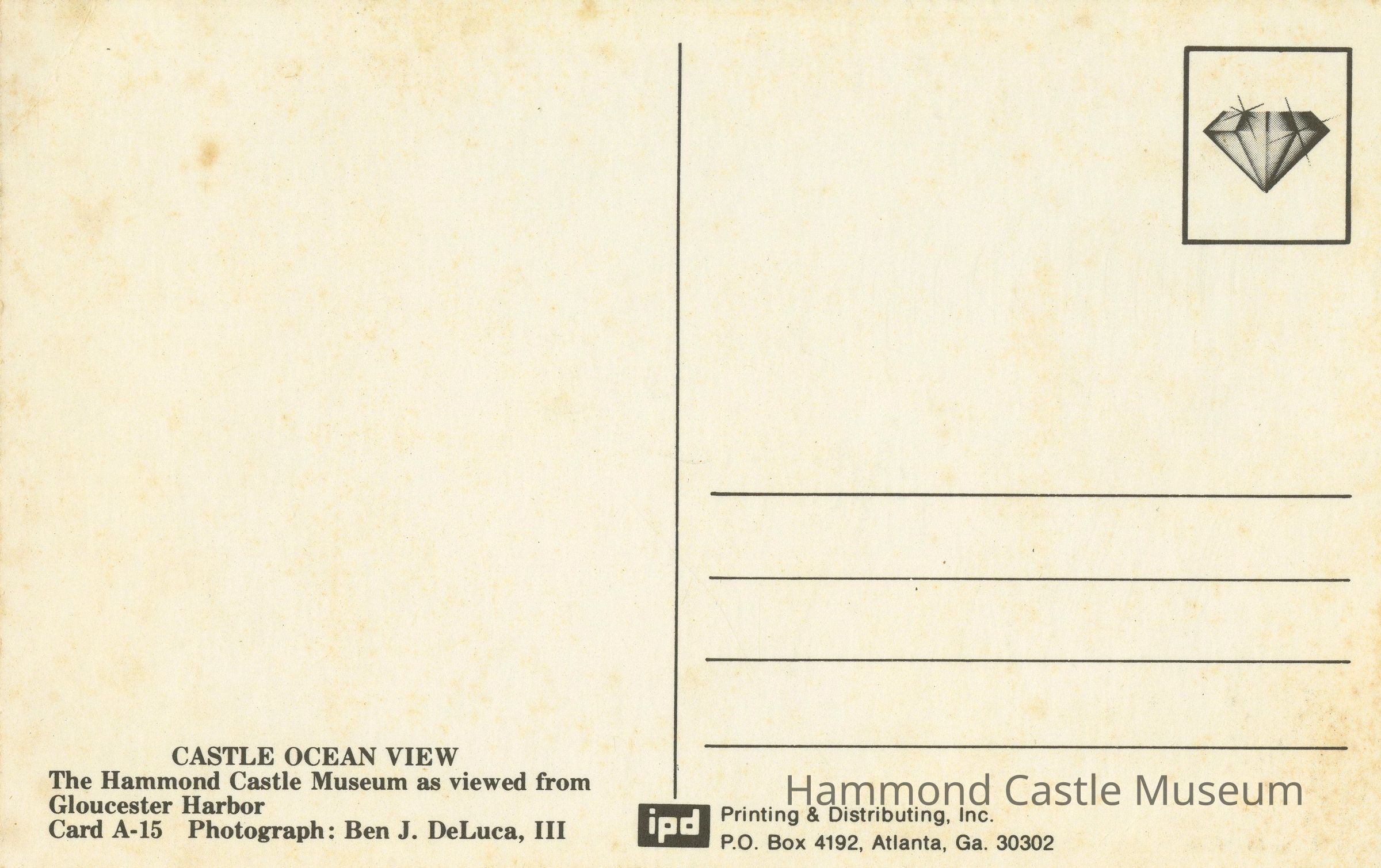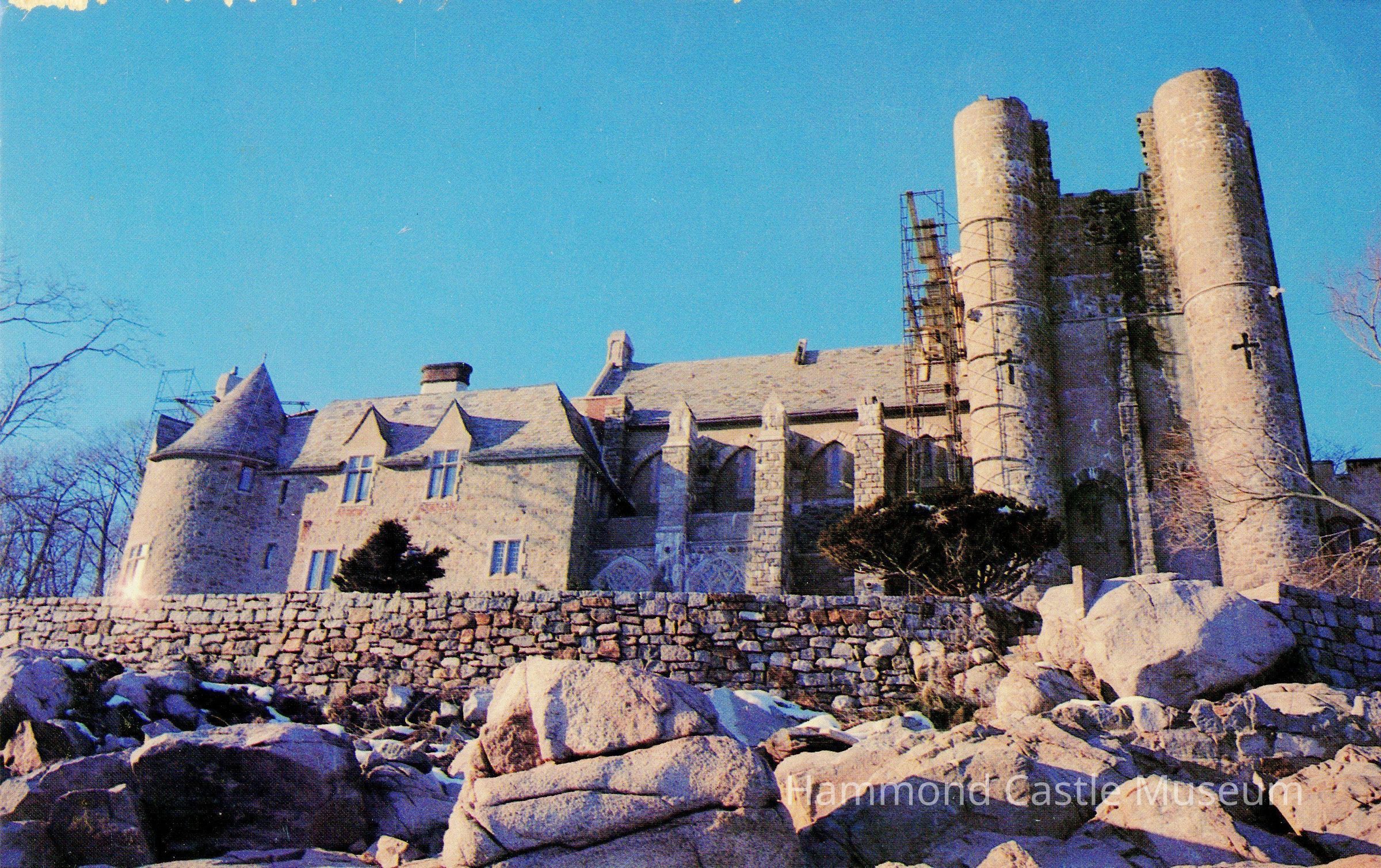 Postcard of ocean side facade from rocks, pre-cliff fencing & bushes, scaffolding up to oriel window Image by Ben Deluca 5 copies PCB-035, 036, 037, 038, 039