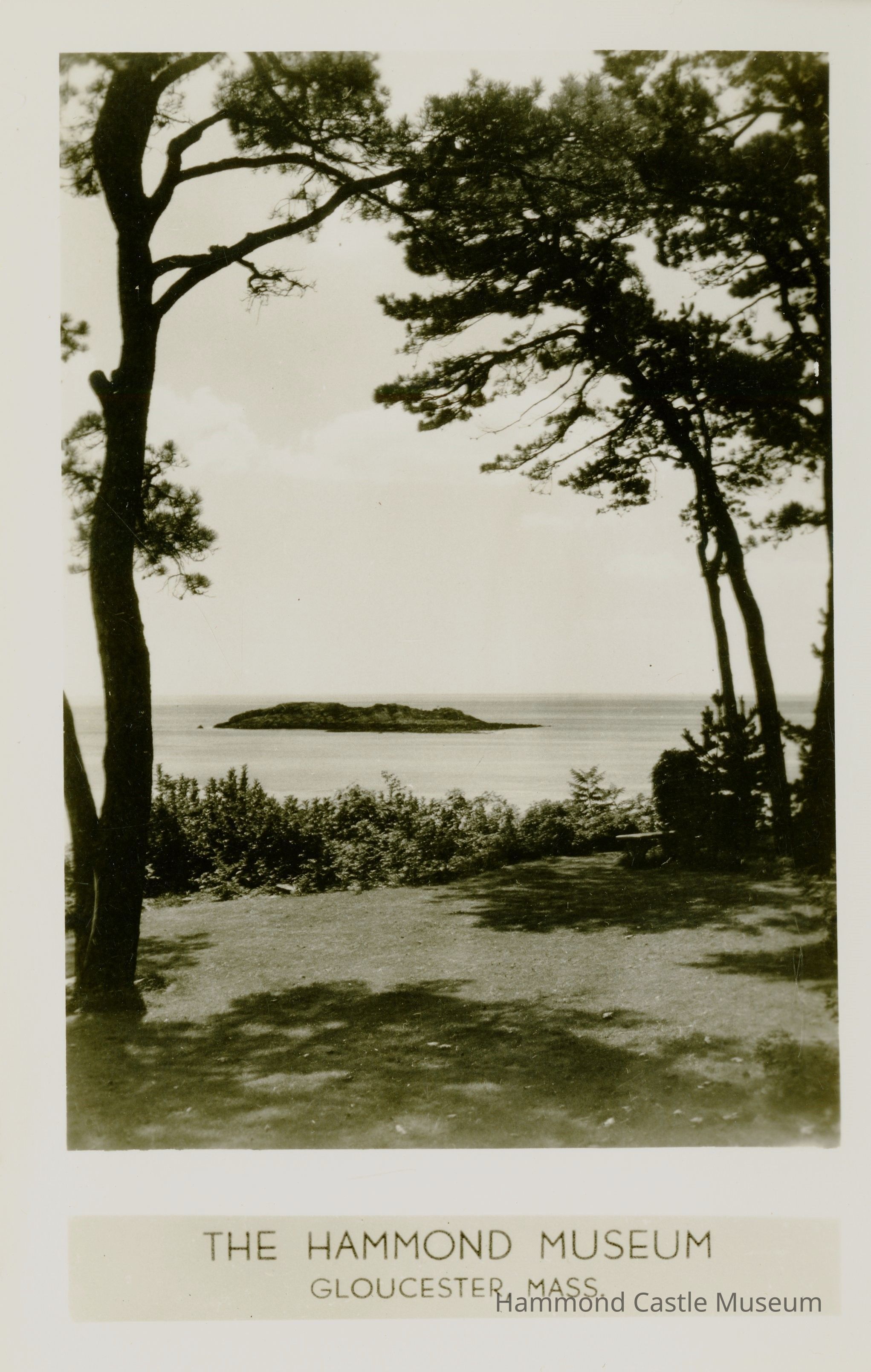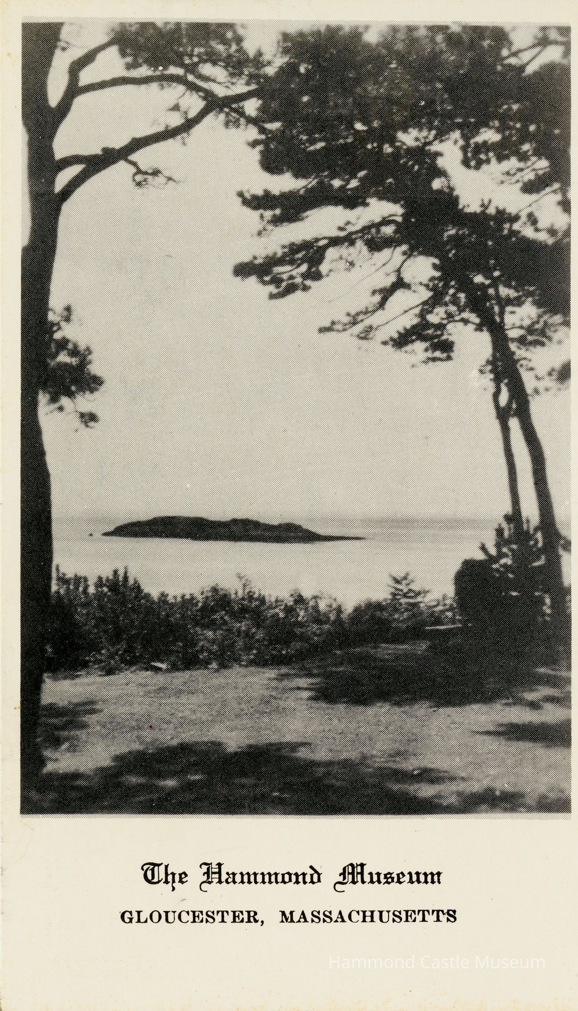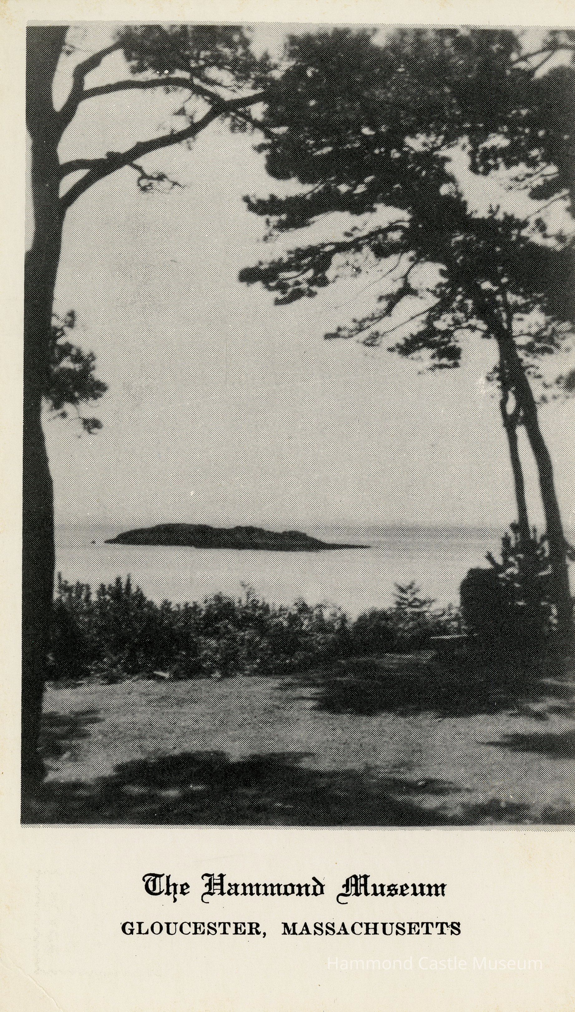 Early postcard of ocean view front lawn with trees, Norman's Woe 3 copies PCB-068, 069, 155