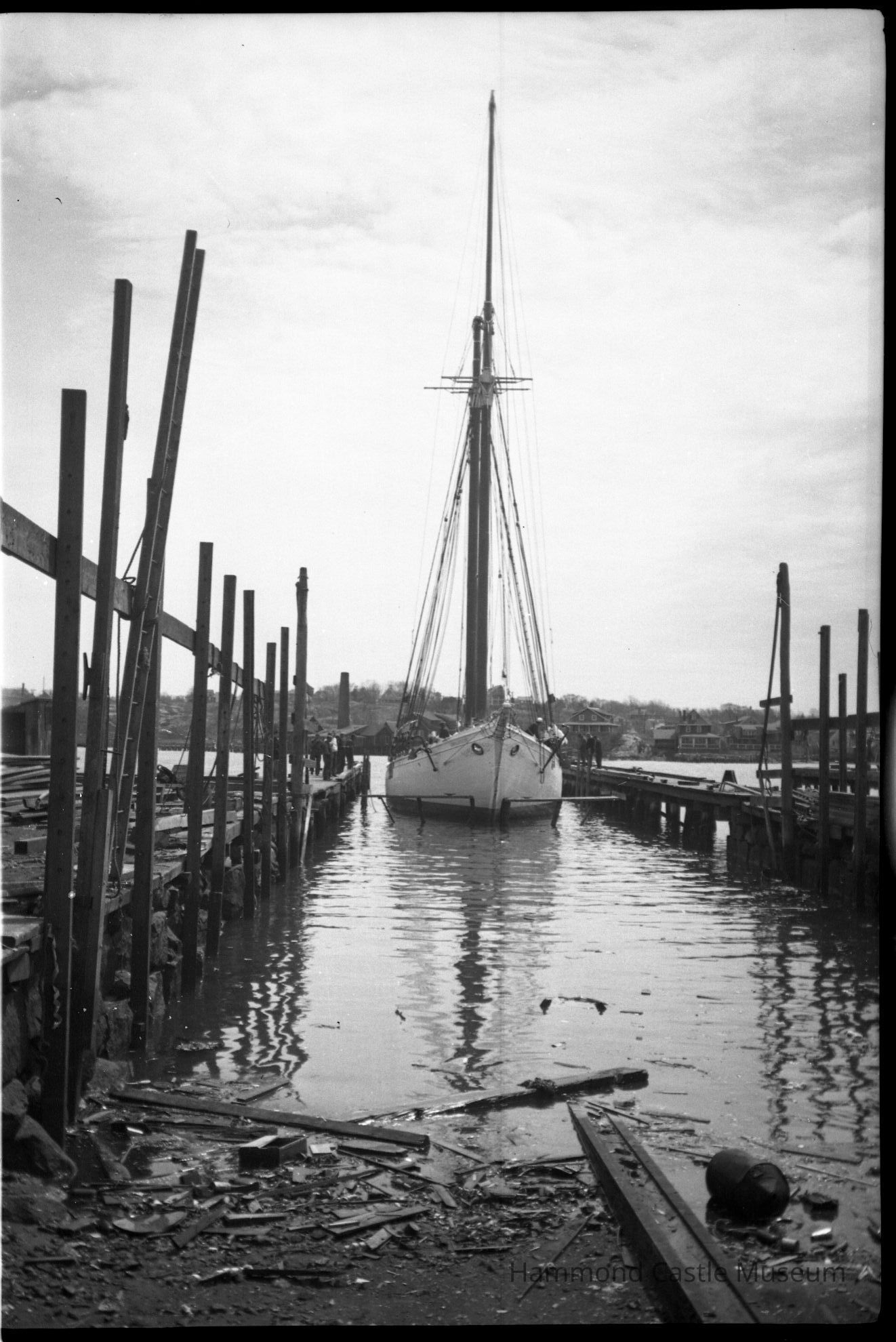 Negative of Odysseus leaving the rails at Parkhurst Railways in Gloucester Harbor