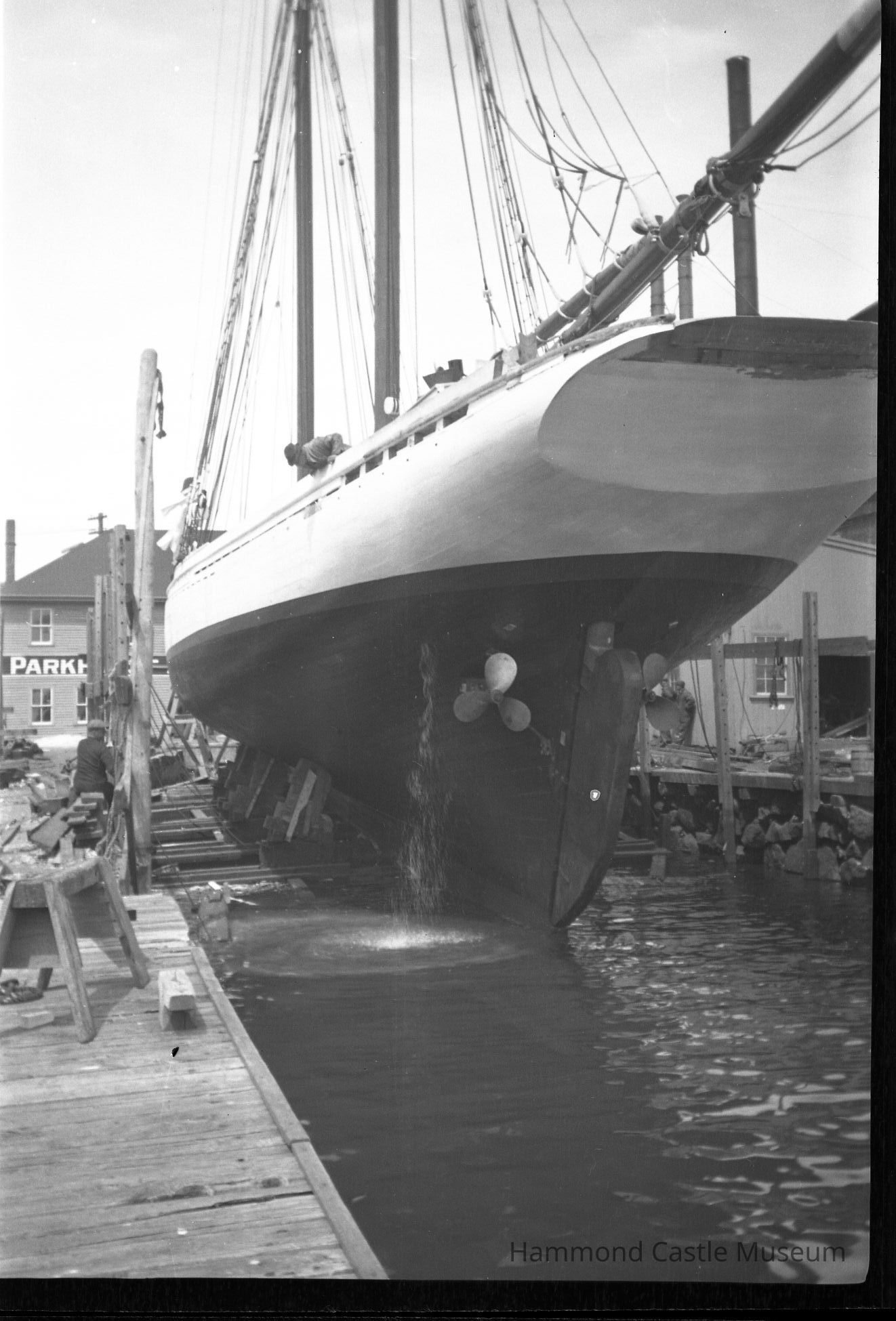 Negative of Odysseus on the rails at Parkhurst Railways in Gloucester Harbor