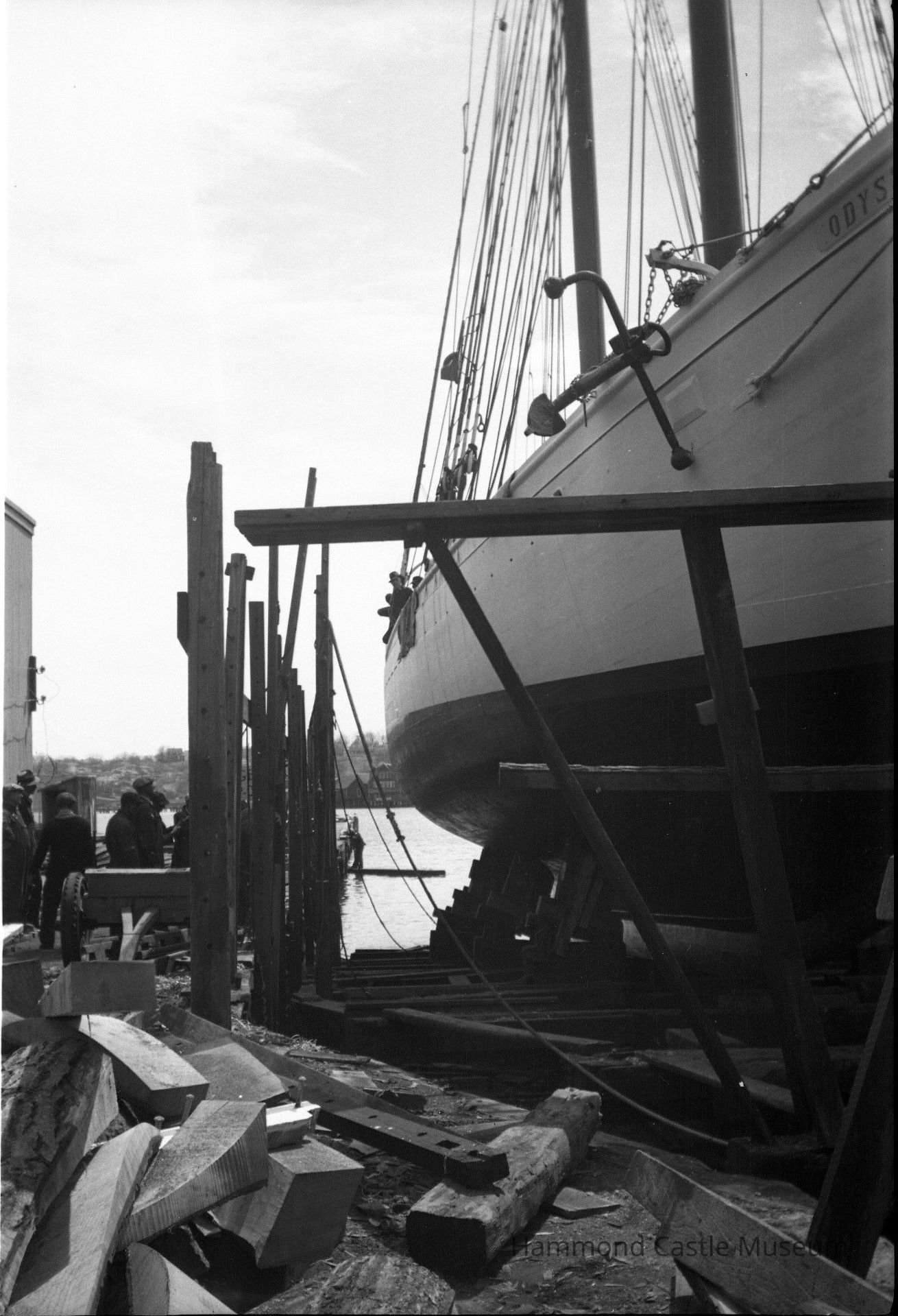 Negative of Odysseus on the rails at Parkhurst Railways in Gloucester Harbor