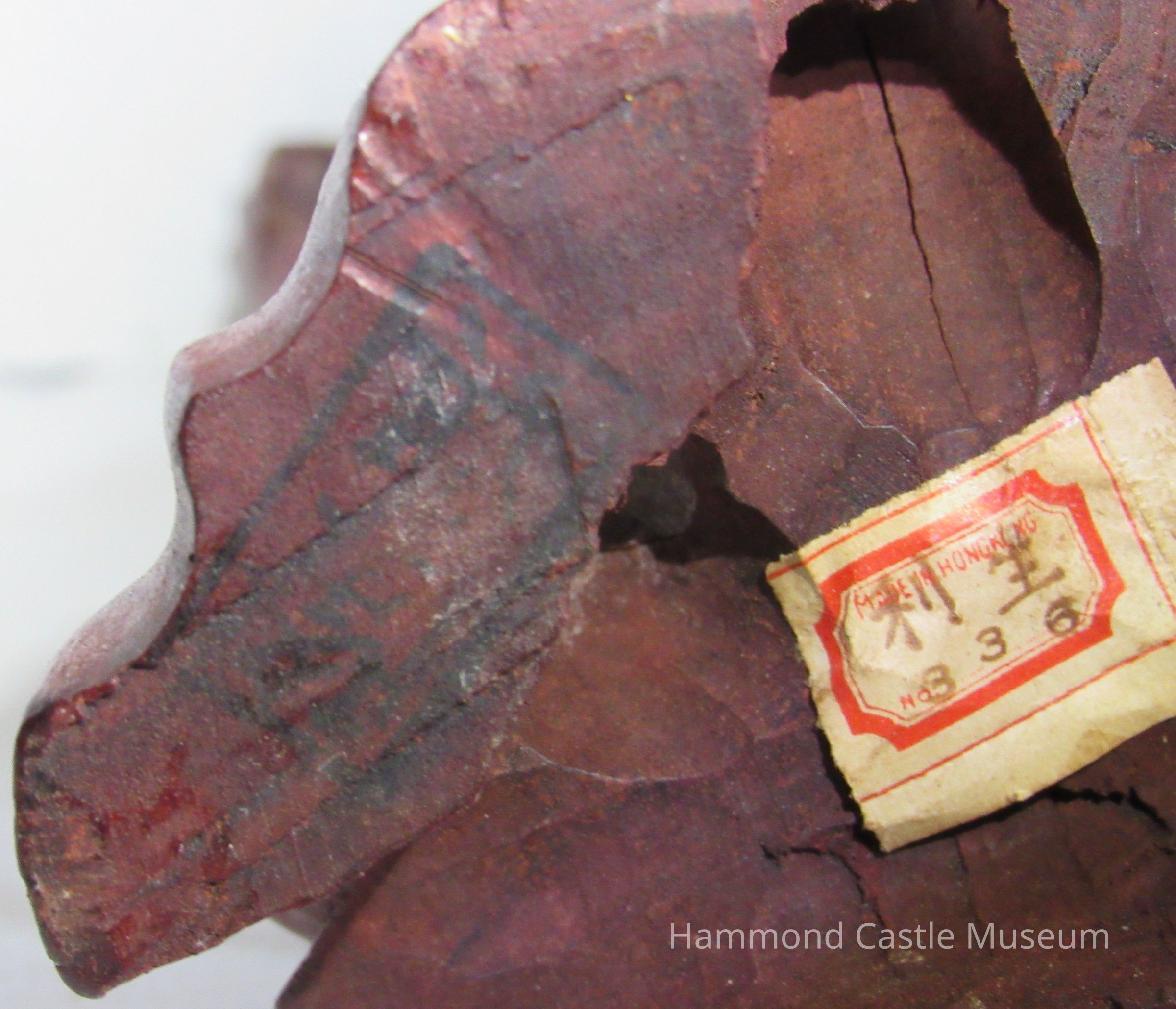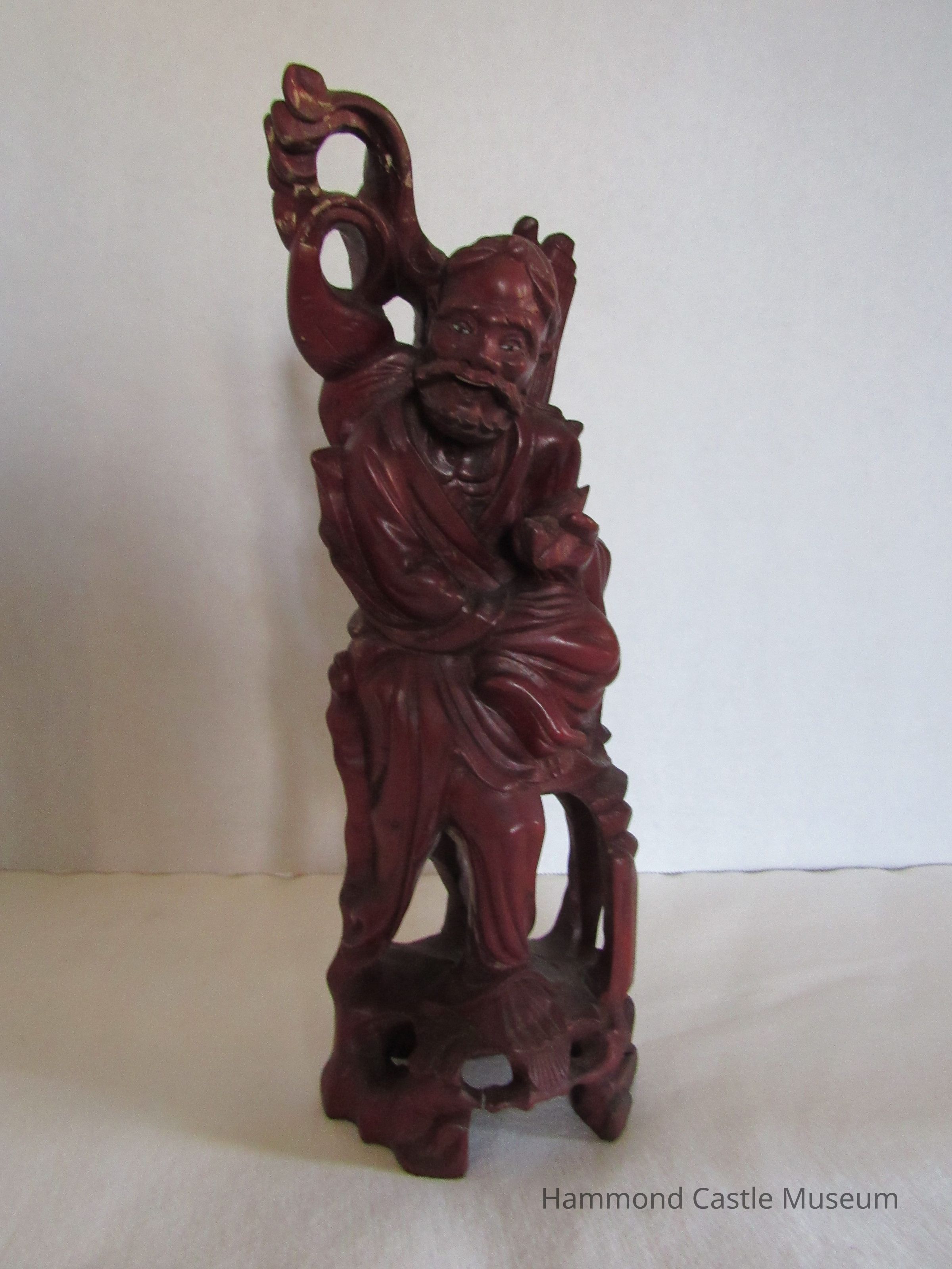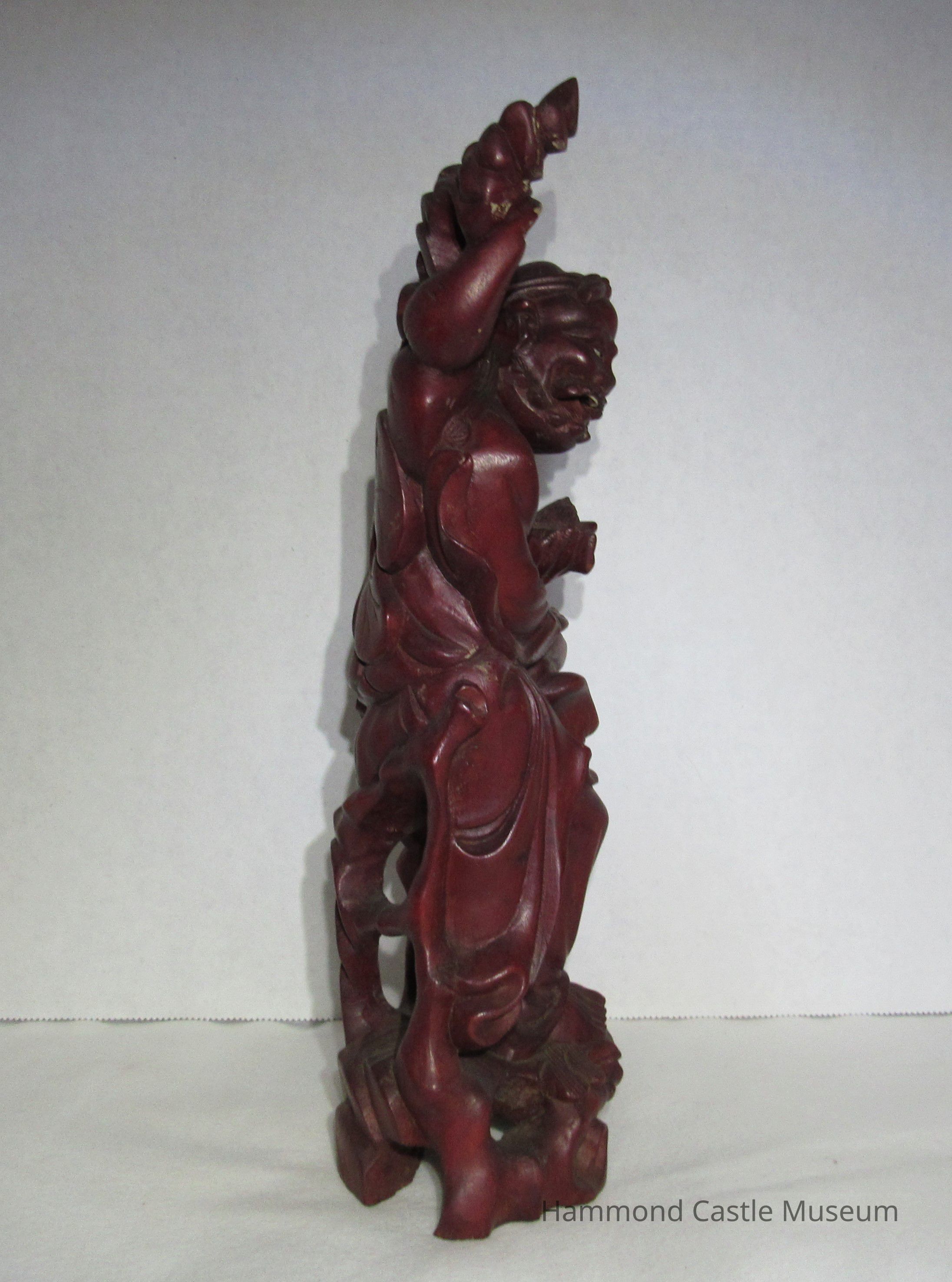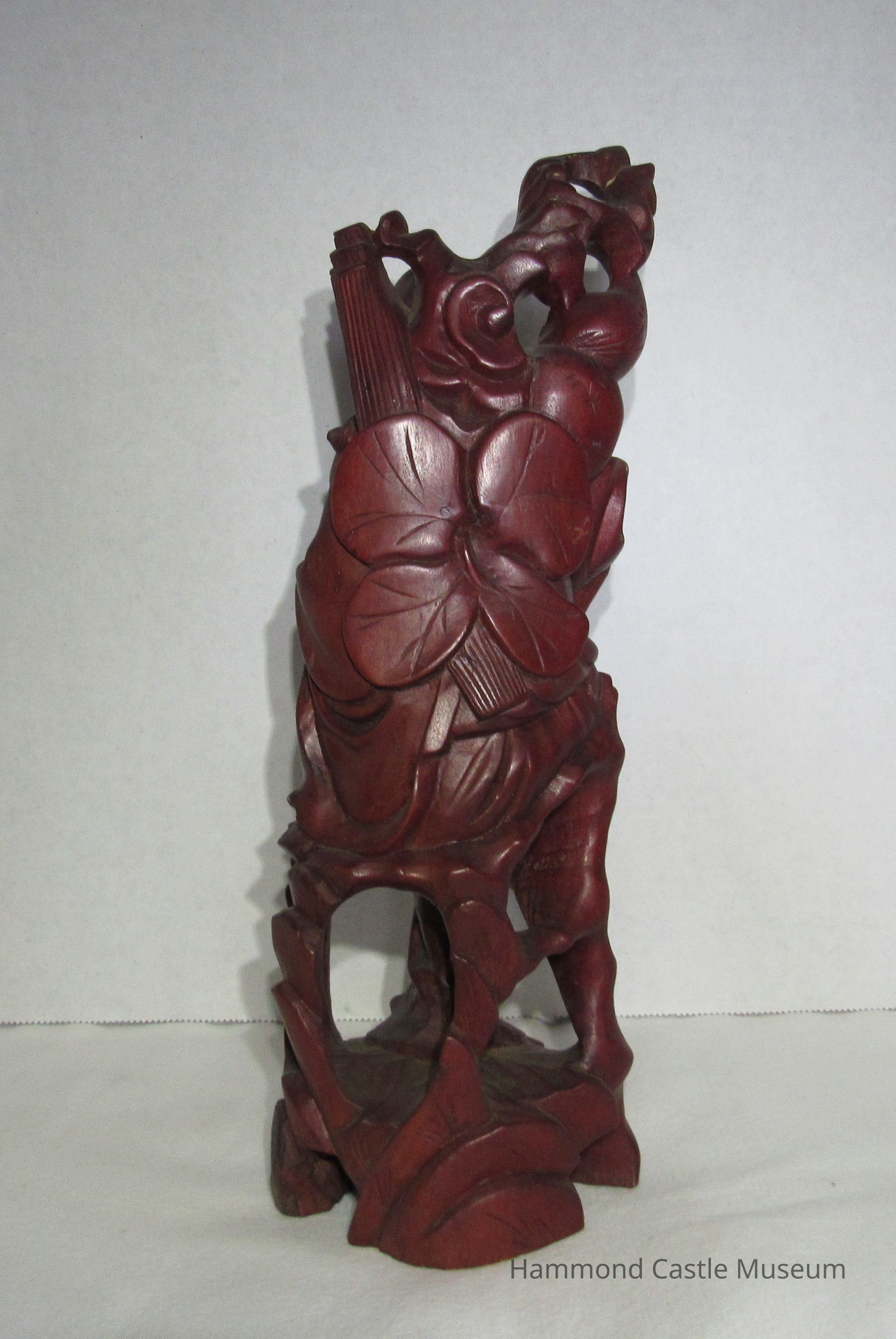 Oriental Man Carved Figure Reddish wood carving w oriental stickers on the bottom