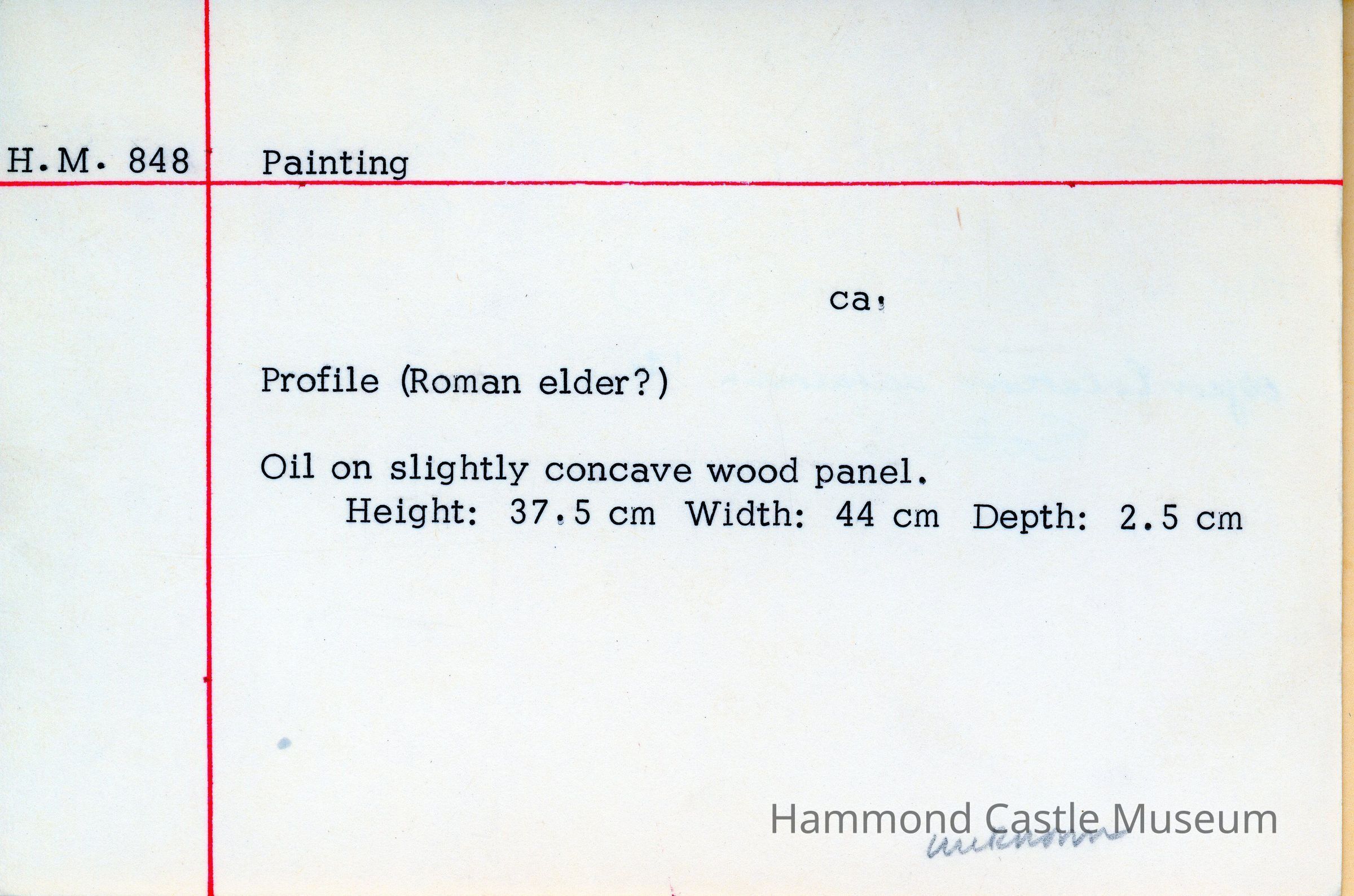 Profile, possibly of Roman elder. Oil on slightly concave wood panel.