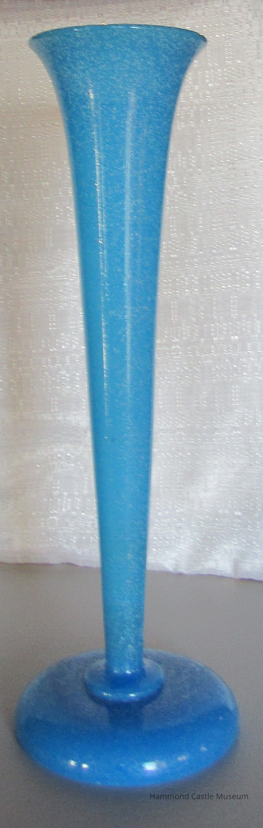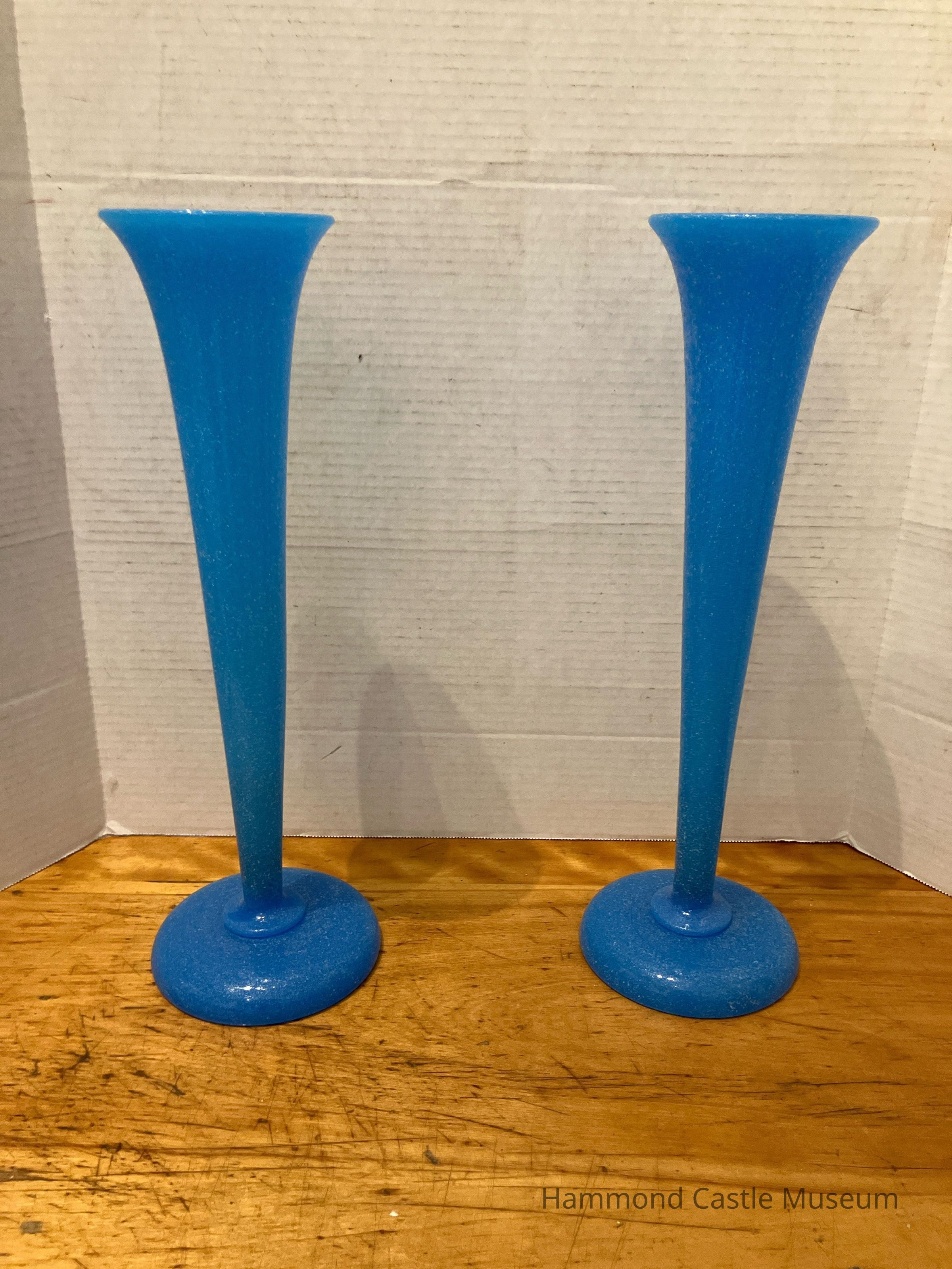 Pair of Blue Milk Glass Vases with White Specks