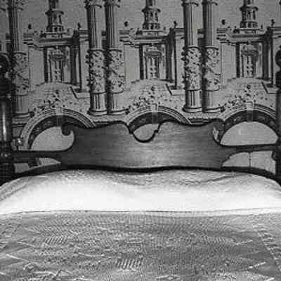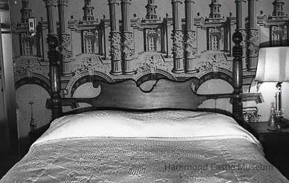 "Paul Revere House reproduction wallpaper, copied from the original by Thomas Strahan and Company of Chelsea, Massachusetts, on behalf of the Paul Revere House Association and used for its 1906-1908 restoration. Subsequently marketed by Strahan and Company and used extensively by Henry Davis Sleeper, beginning with Beauport in the Chapel Chamber (1911), and later for many of his clients.