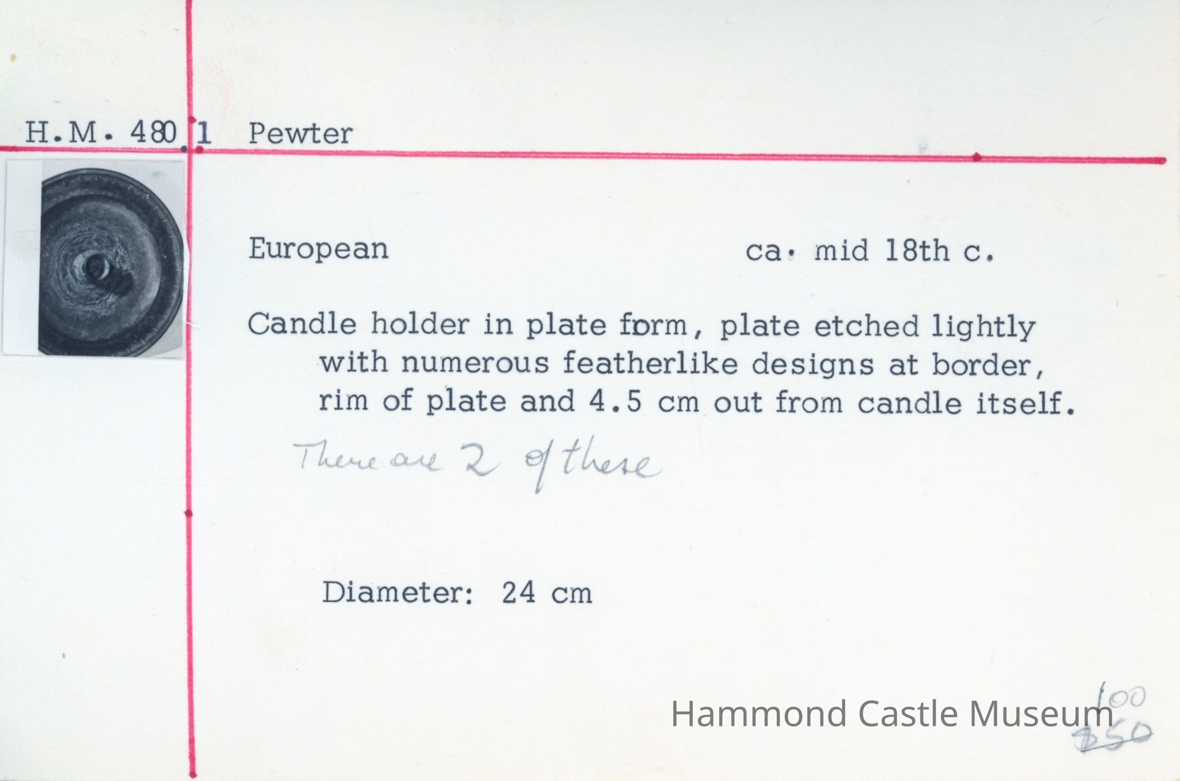 Pewter Candleholder, 1 of 2Entry/Object ID